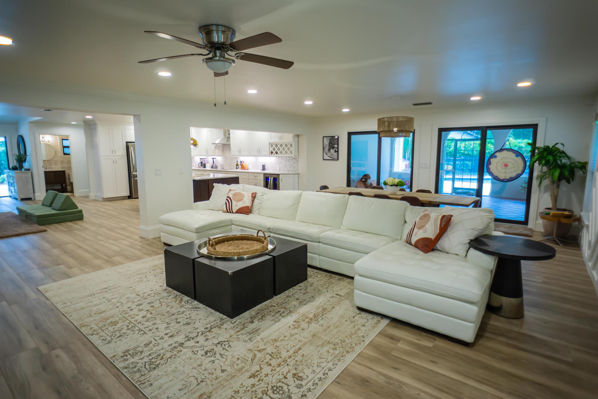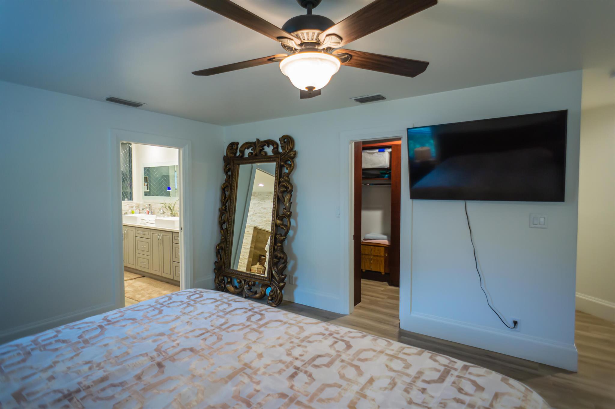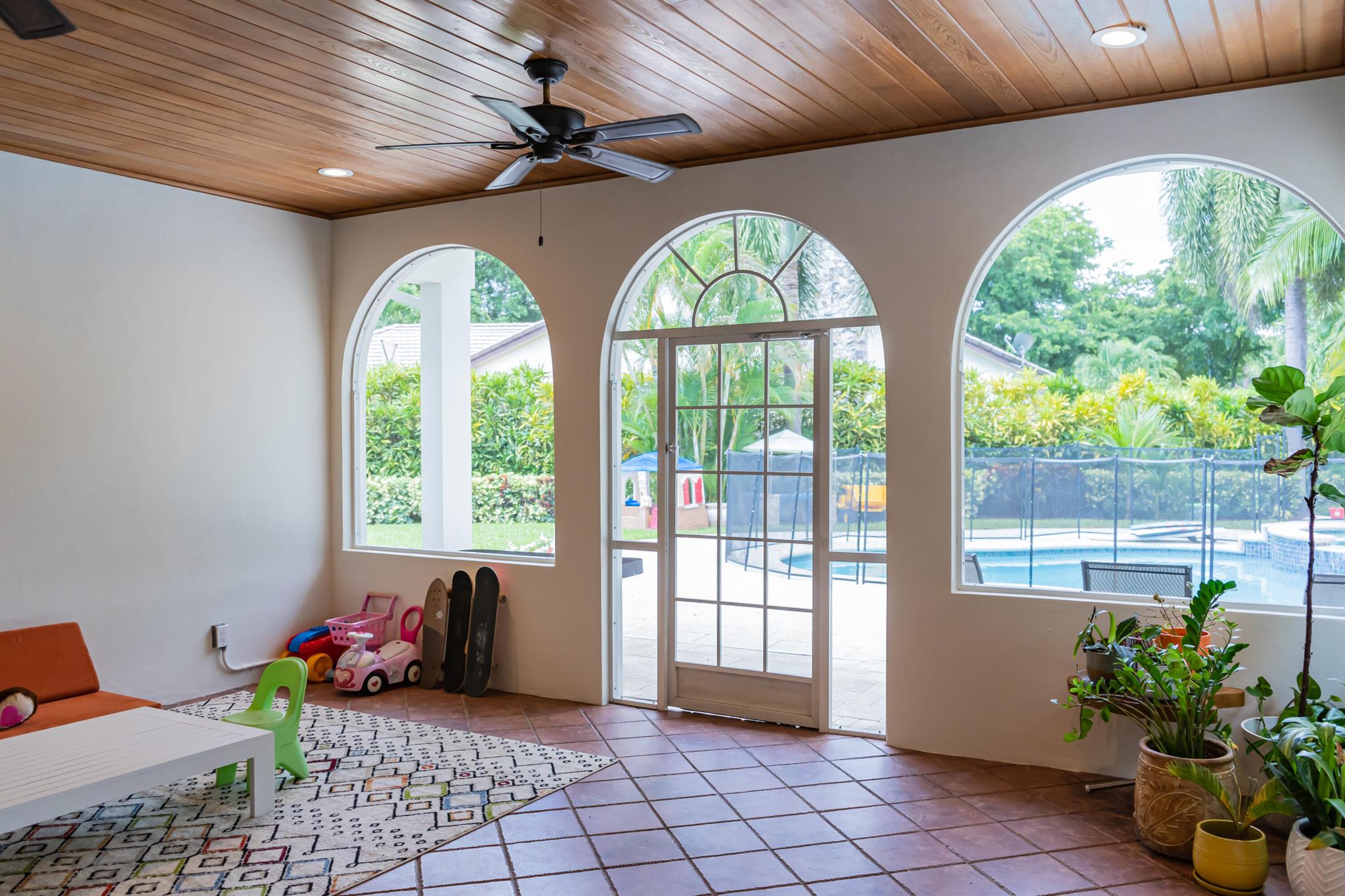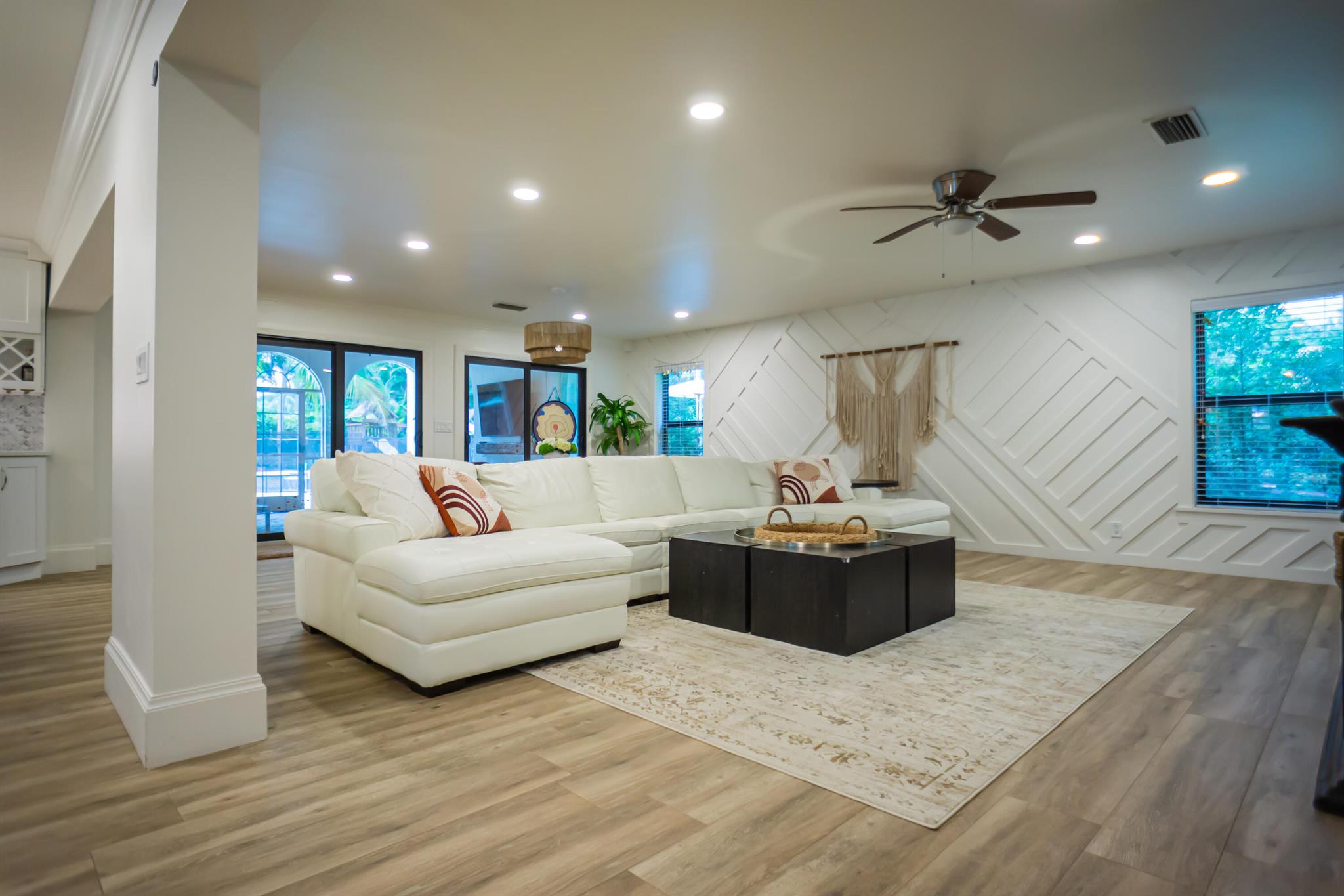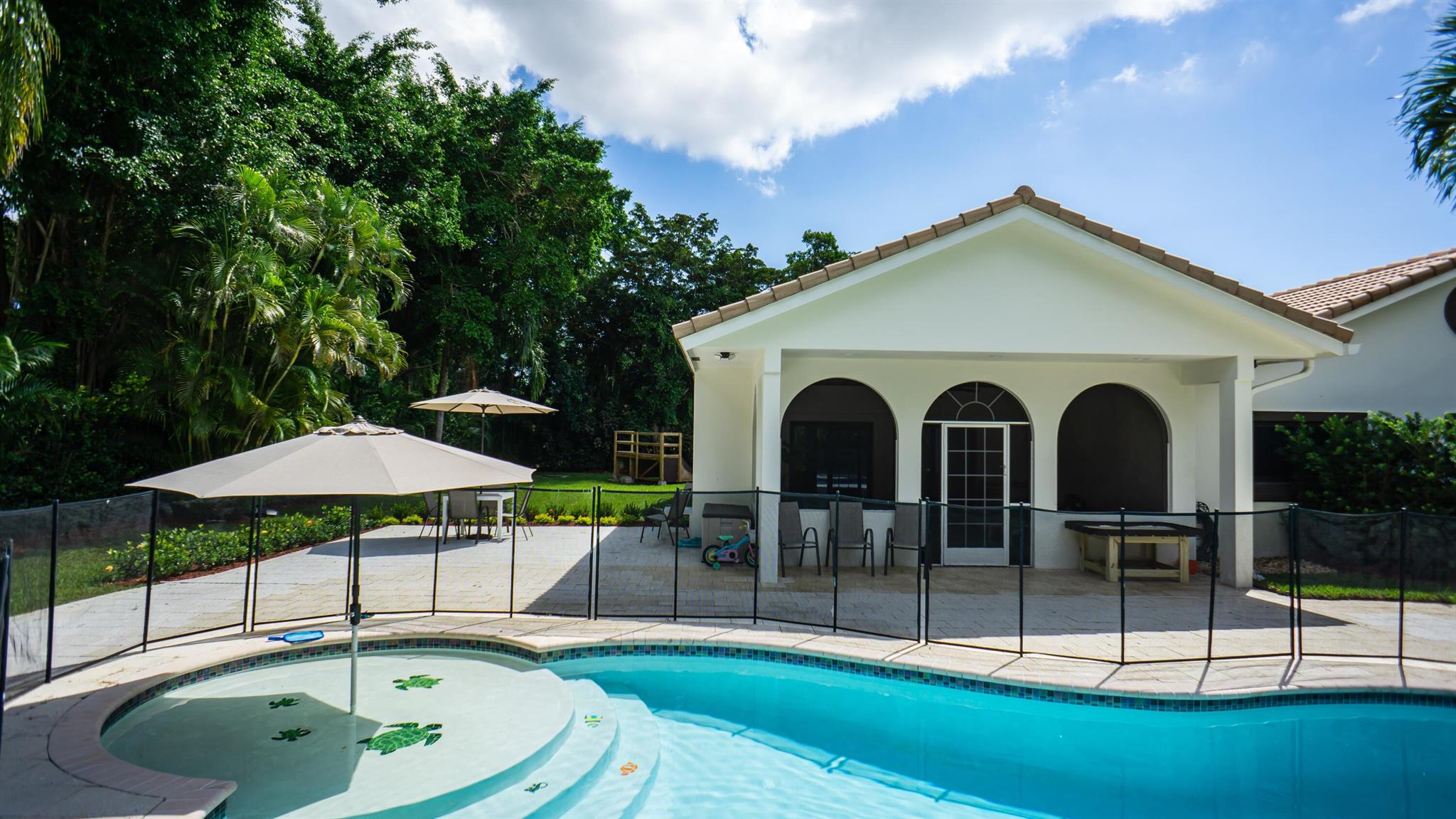 This beautiful 4-bedroom home, completely remodeled in 2020, newly painted with new hurricane windows and doors also features an inviting open layout, perfect for modern living and entertaining. As you step inside, you’re greeted by a spacious living area, seamlessly flowing into a contemporary kitchen equipped with stainless steel appliances, sleek countertops, and ample storage.Each bedroom offers generous space and comfort with custom closets, with the master boasting an en-suite bathroom, separate shower & jetted tub and a walk-in closet. Both showers with jets, hoses & waterfall shower heads. Step outside to your private oasis with an extra large back yard and heated salt water pool with spa and aqualink remote (brand new heater). Don’t miss your chance to make this home yours