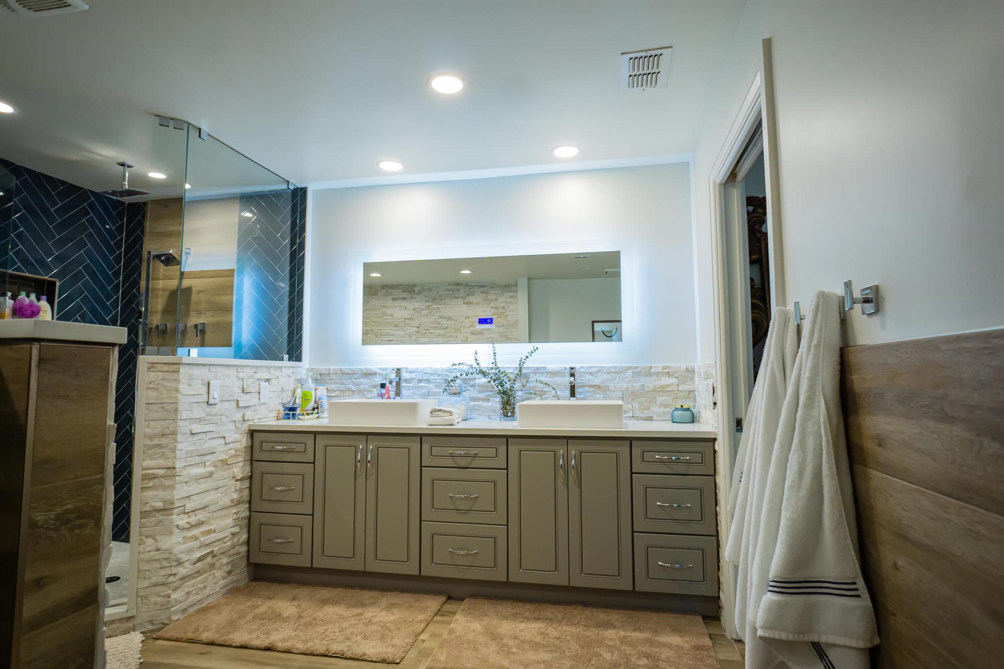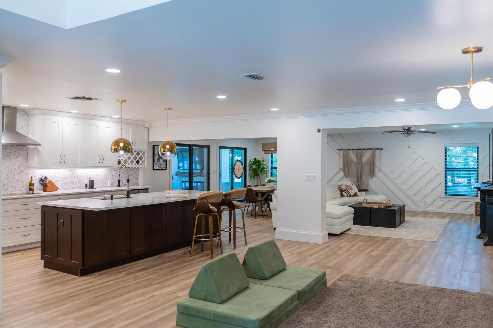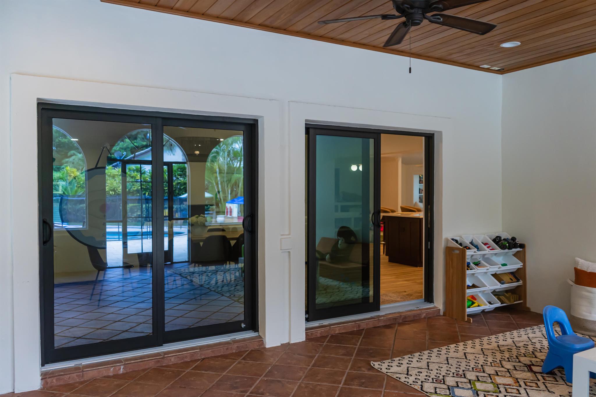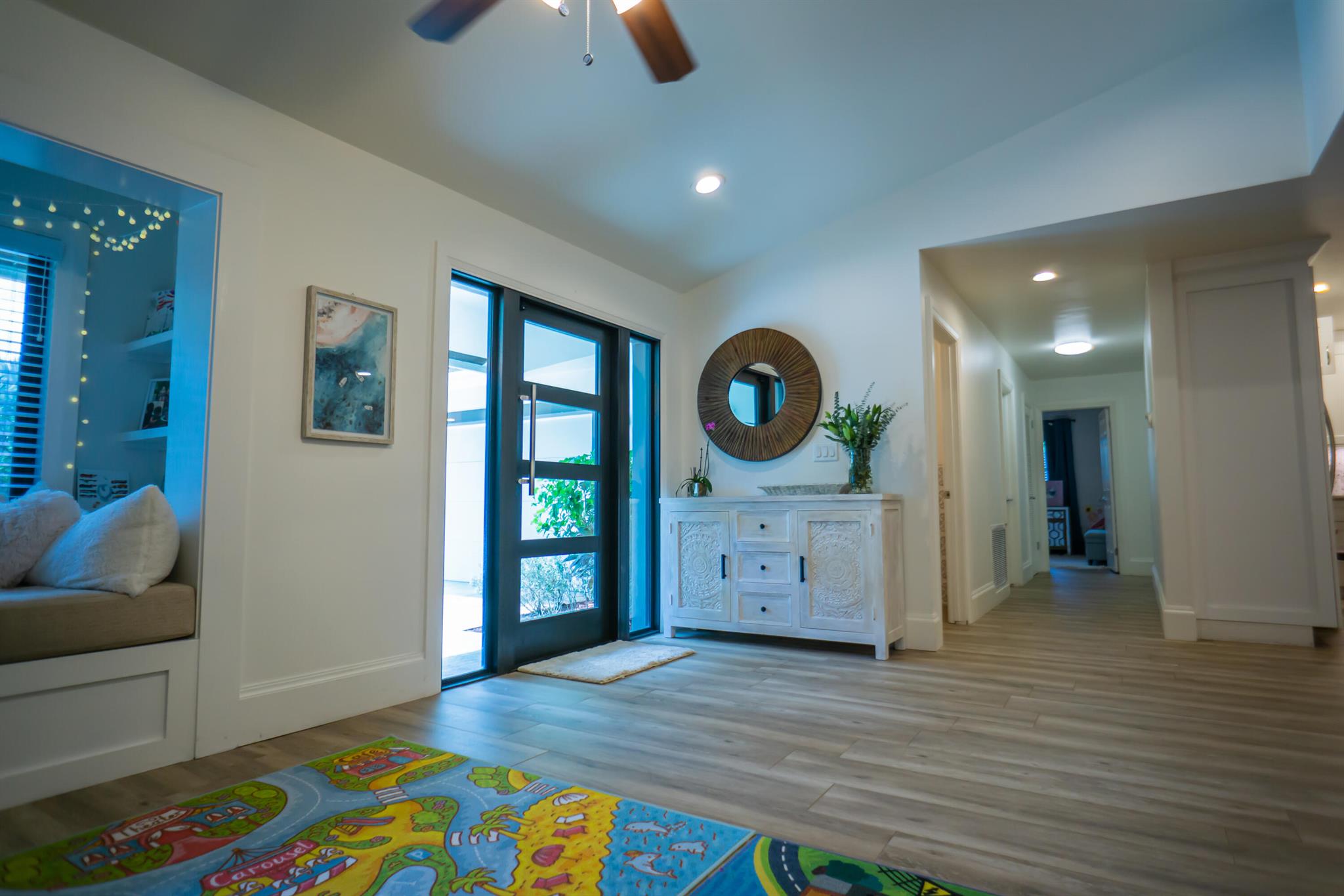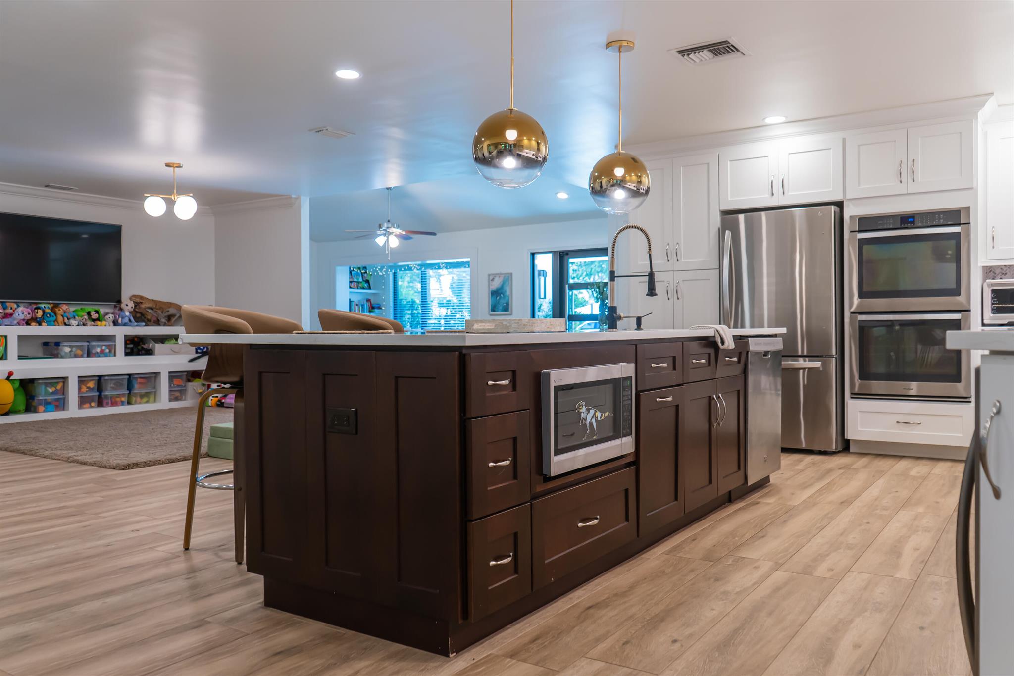 This beautiful 4-bedroom home, completely remodeled in 2020, newly painted with new hurricane windows and doors also features an inviting open layout, perfect for modern living and entertaining. As you step inside, you’re greeted by a spacious living area, seamlessly flowing into a contemporary kitchen equipped with stainless steel appliances, sleek countertops, and ample storage.Each bedroom offers generous space and comfort with custom closets, with the master boasting an en-suite bathroom, separate shower & jetted tub and a walk-in closet. Both showers with jets, hoses & waterfall shower heads. Step outside to your private oasis with an extra large back yard and heated salt water pool with spa and aqualink remote (brand new heater). Don’t miss your chance to make this home yours