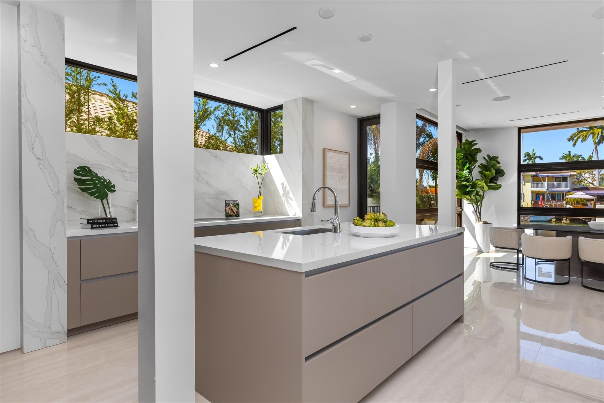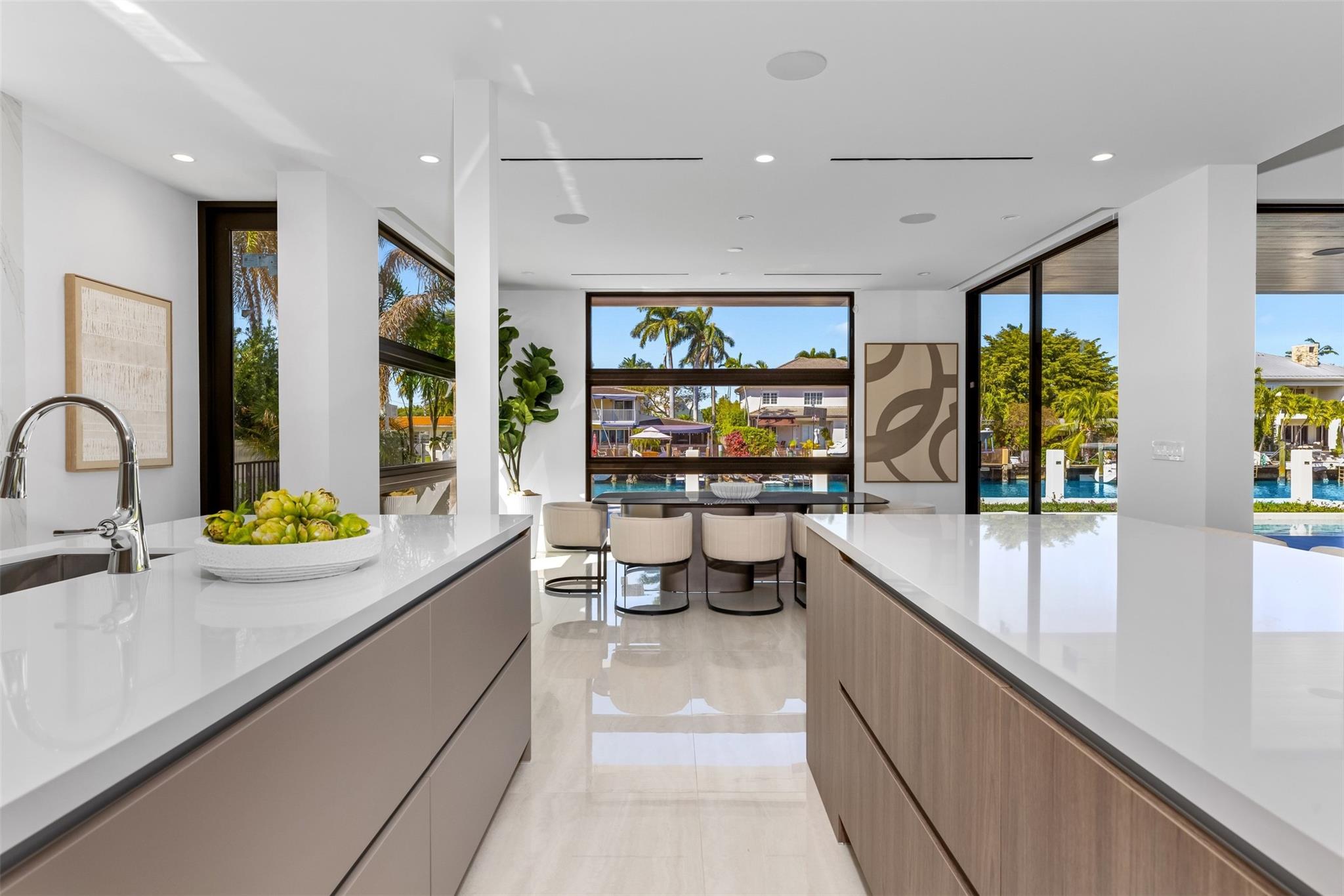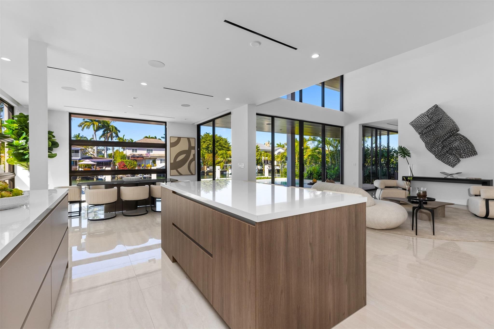 Luxurious three story waterfront estate newly constructed in Lauderdale Harbours. Envisioned by the renowned architect Robert Tuthill and erected in partnership with esteemed builder Jeff Hendricks, this ultra modern residence provides plenty of convertible living space. Seamless flow of indoor and outdoor entertainment environments makes transitioning guests simple. Appreciate the aesthetic 360-degree views of downtown Fort Lauderdale and the Intracoastal Waterways from the wrap around third floor balcony. Sited along deep water and on a wide canal with no fixed bridges, boaters can access open ocean in just 5 minutes. Close proximity to the airport, fine dining, Lauderdale Yacht Club, and the beach. Other features include: 6/7 bedrooms, resort style pool, loggia, and large