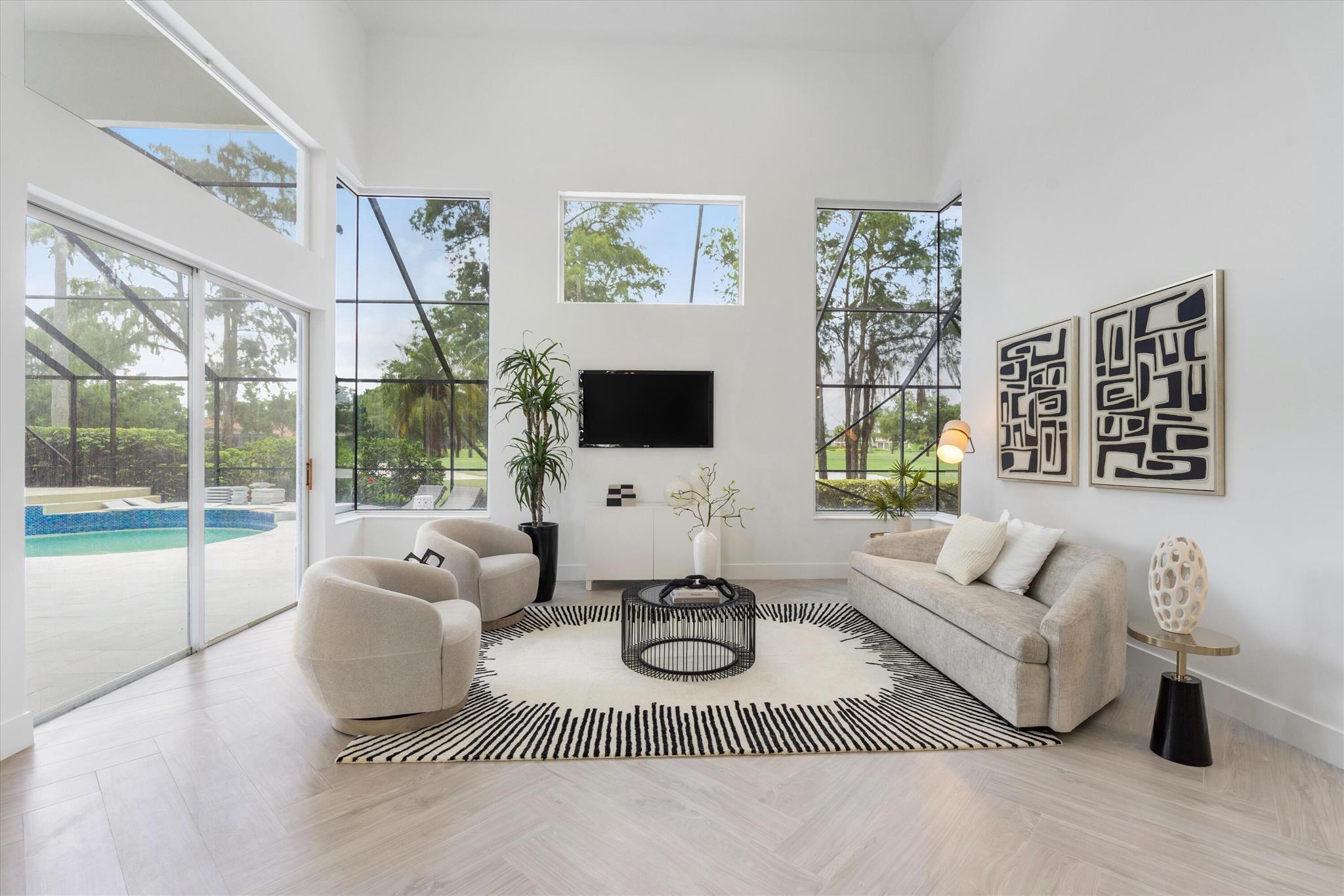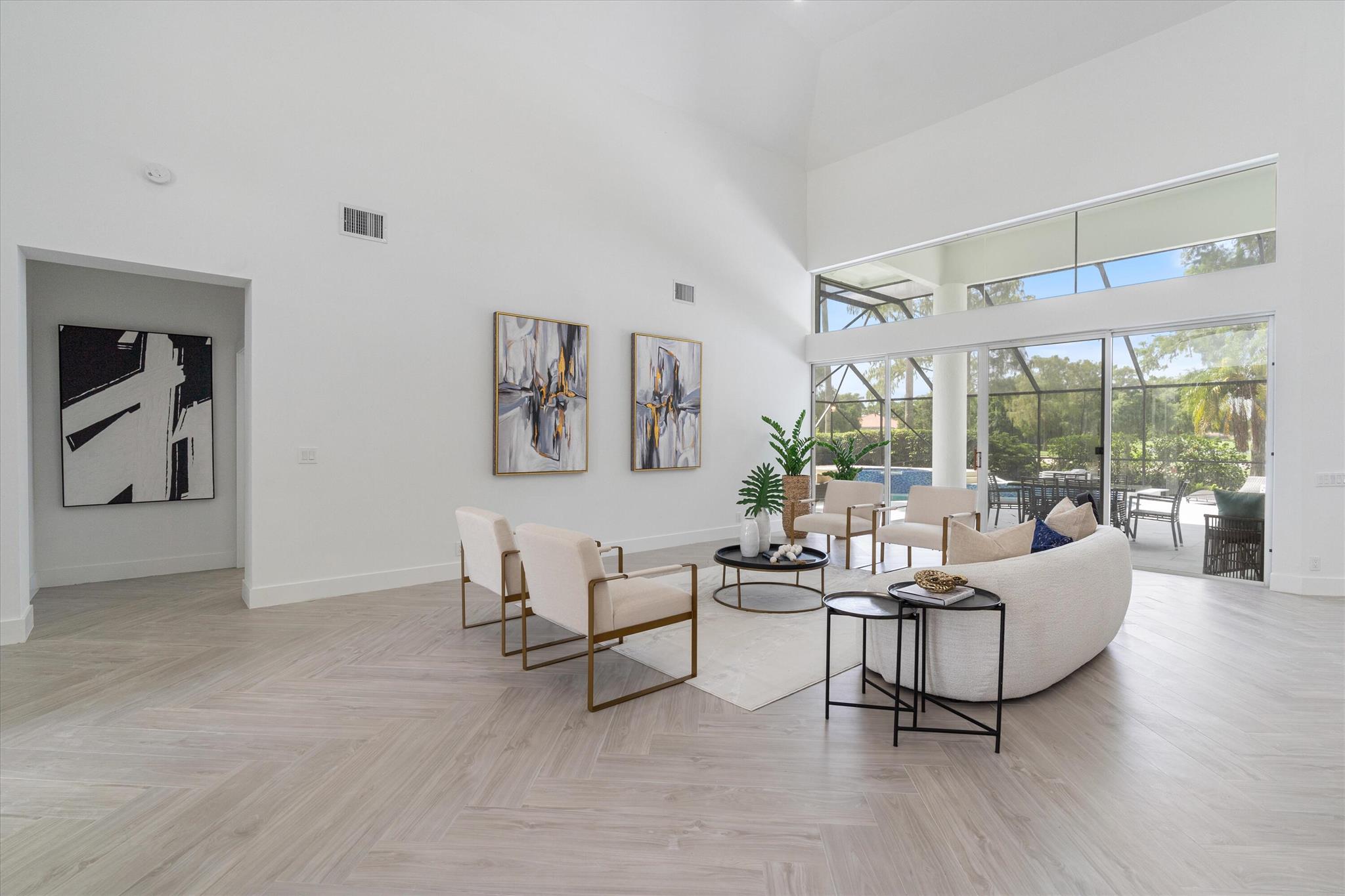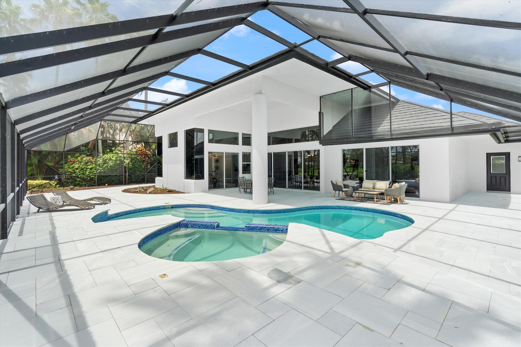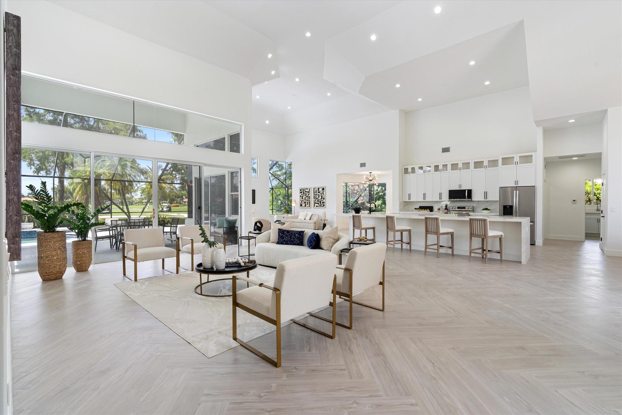 Professionally remodeled and fully updated estate home in prestigious Stonebridge Country Club. This 3 bedroom home has a huge open floor plan perfect for entertaining. Delightfully remodeled including new porcelain tile wood-look flooring throughout. Brand new pool decking, and diamond bright, and waterline tile. Stainless steel appliances, slipper tub in primary bedroom, freshly painted, and all new LED lighting. Huge master suite with his and her vanities, the list goes on. Right on the golf course with water views, locations don’t get much better than this! Roof has been inspected, sealed, and has 9 years life left. Best views in all of the community. Stonebridge Country Club is a mandatory Membership Club, details in the documents section attached.