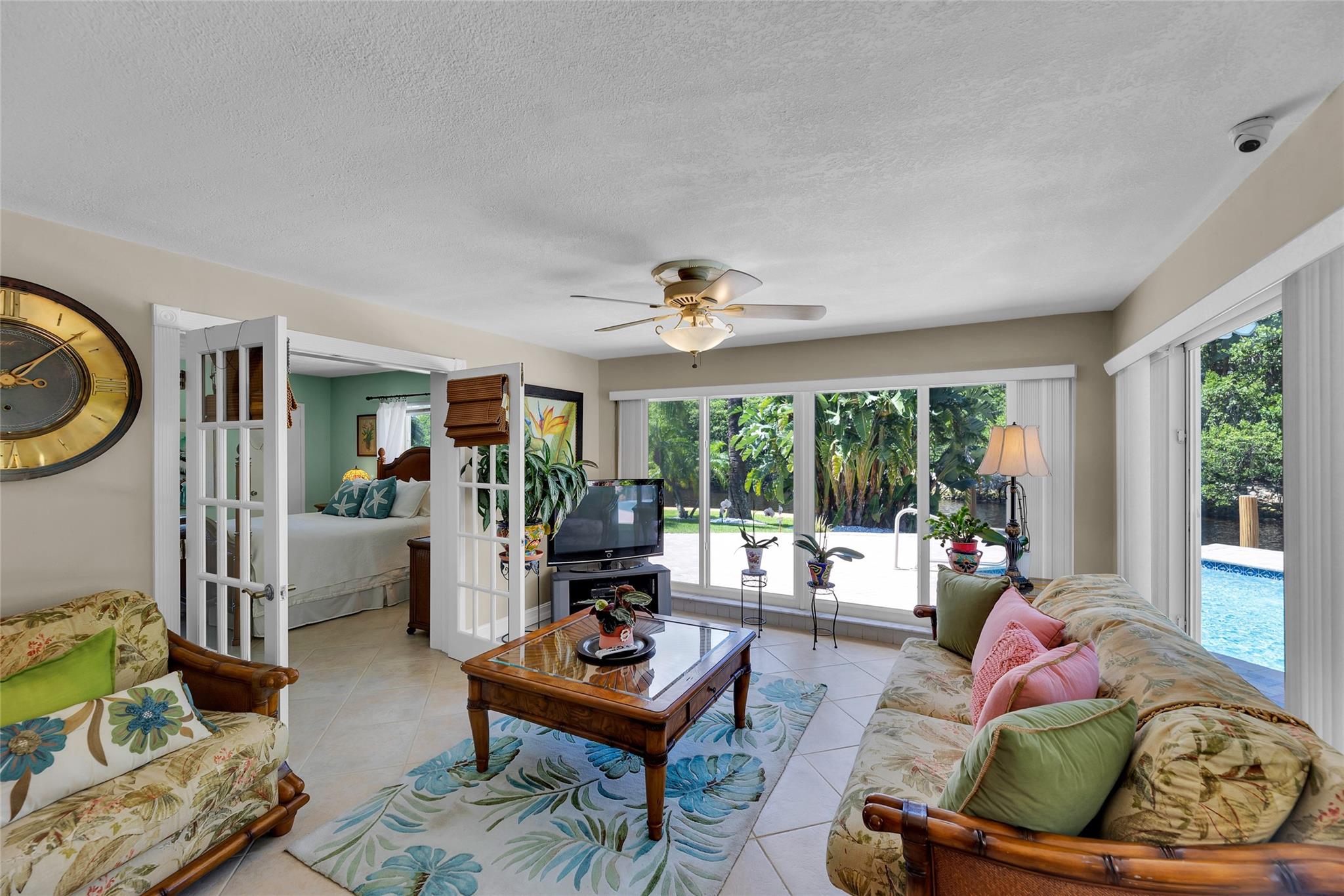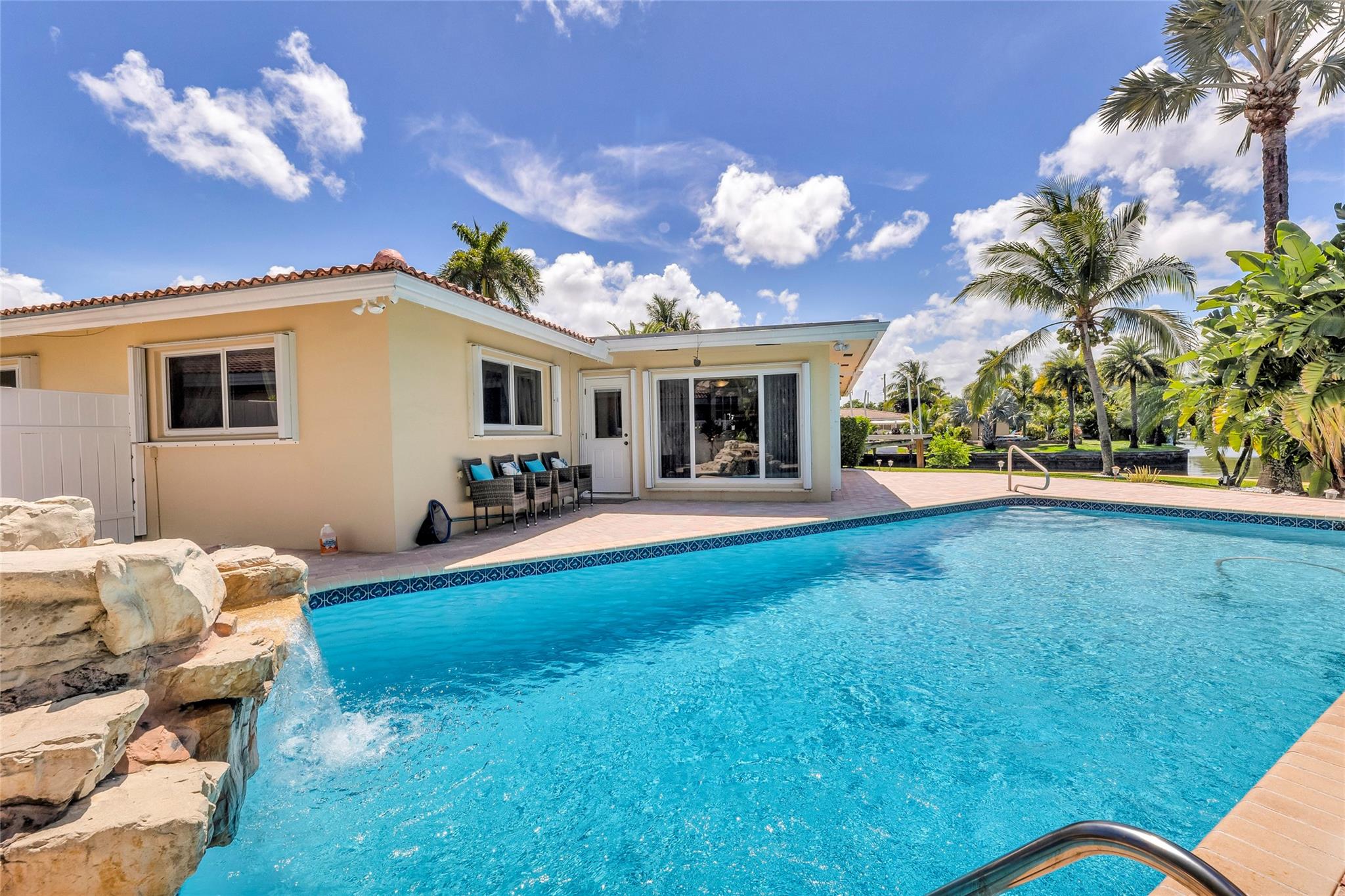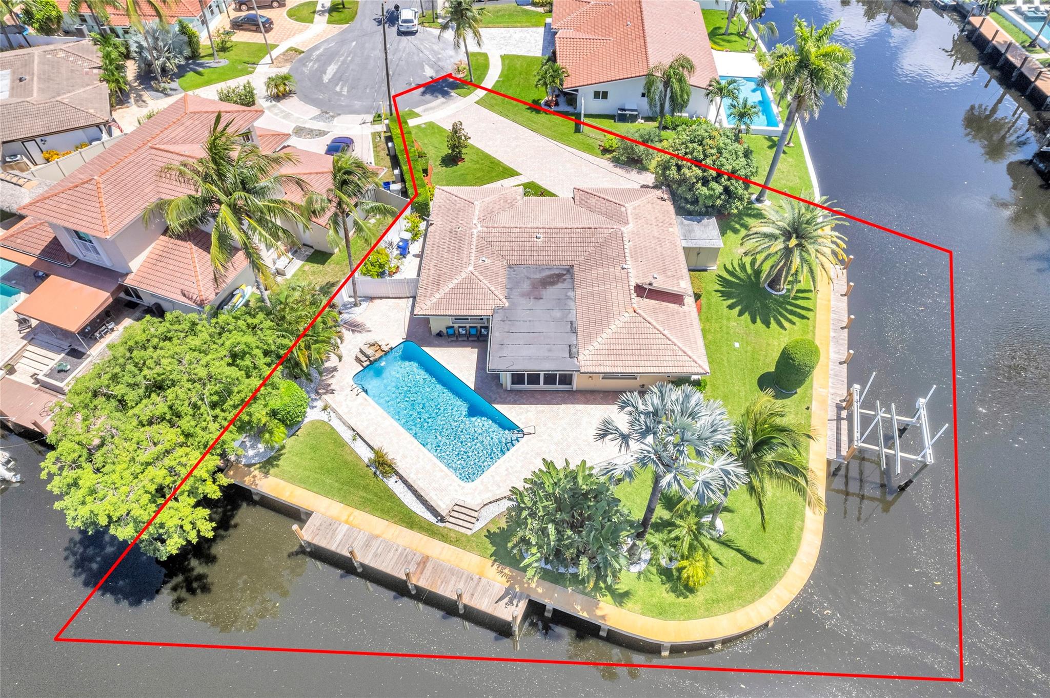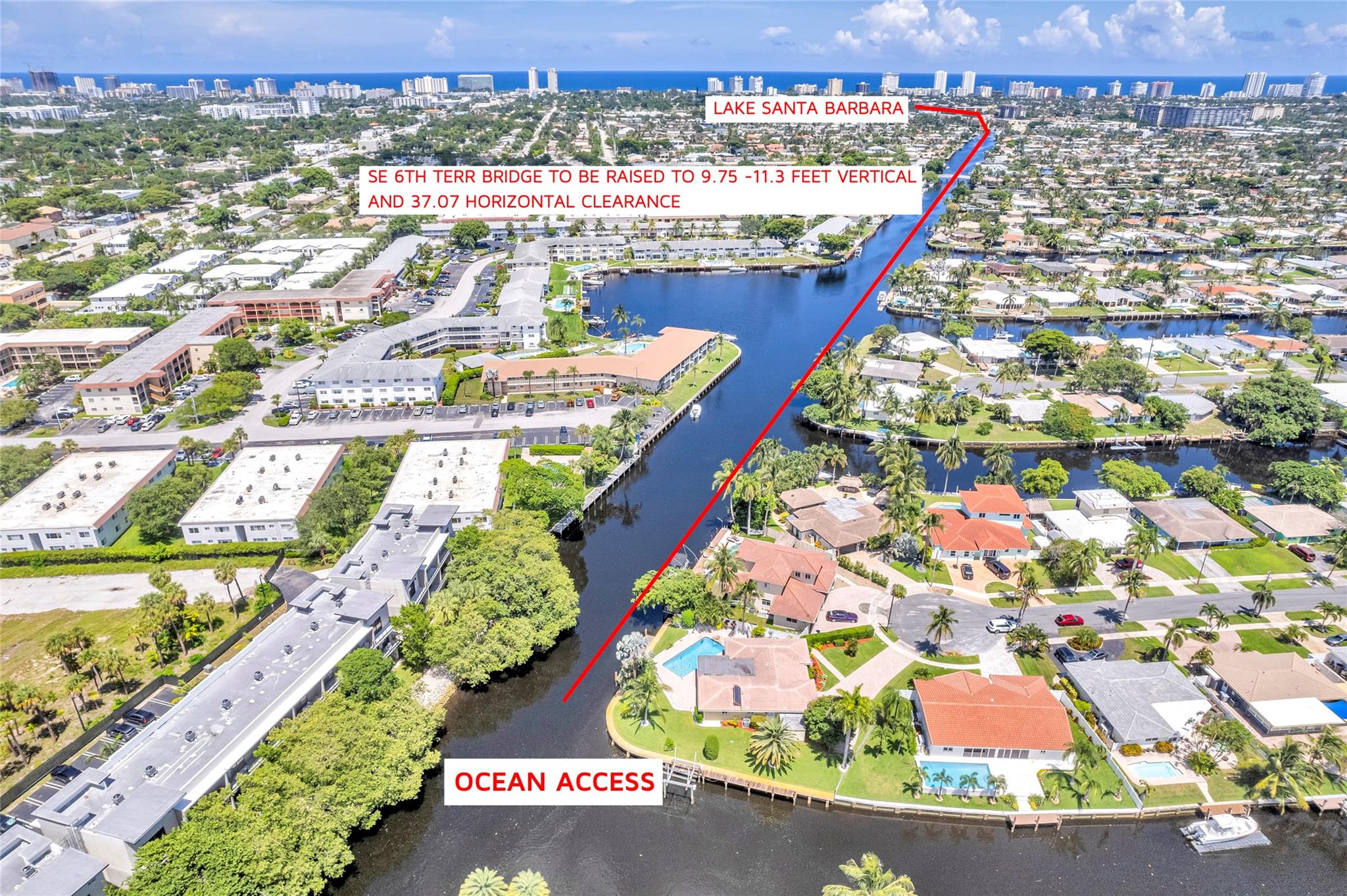 Immaculately maintained waterfront retreat w/ Ocean access! LISTED BELOW APPRAISAL. Expansive private corner lot with 200 ft waterfront frontage and private boat lift – perfect for boating enthusiasts. NEW SEA WALL! Saltwater pool, resurfaced 2024. All impact windows plus shutters for double security, new solar water heater, new electric panel, timeless clay tile roof. Bonus for boaters: the existing fixed bridge at SE 6th Ter is currently raised to a vertical clearance between 9.75 and 11.3 feet. Seize this unparalleled opportunity to own a piece of paradise — schedule your private showing today!