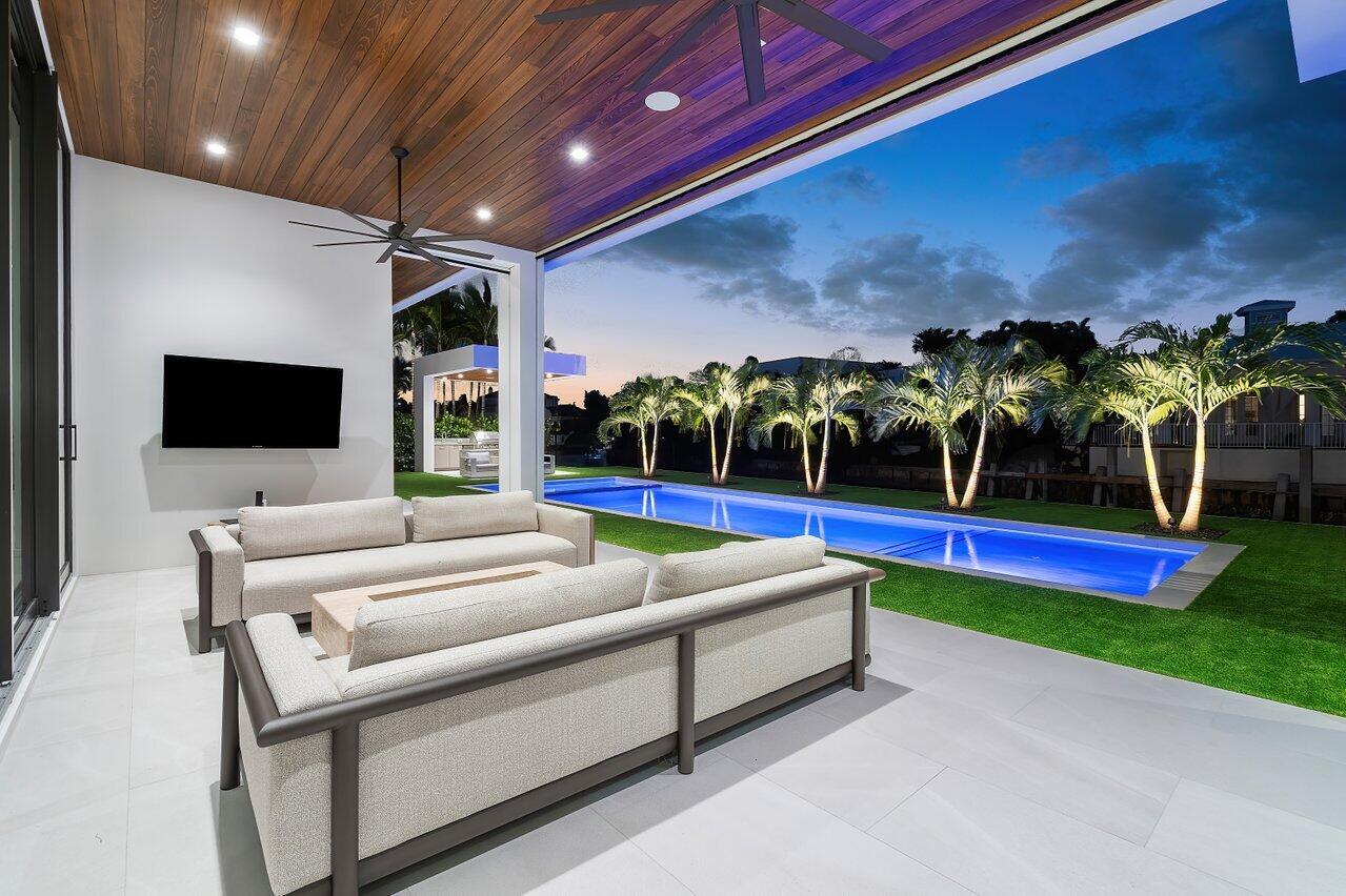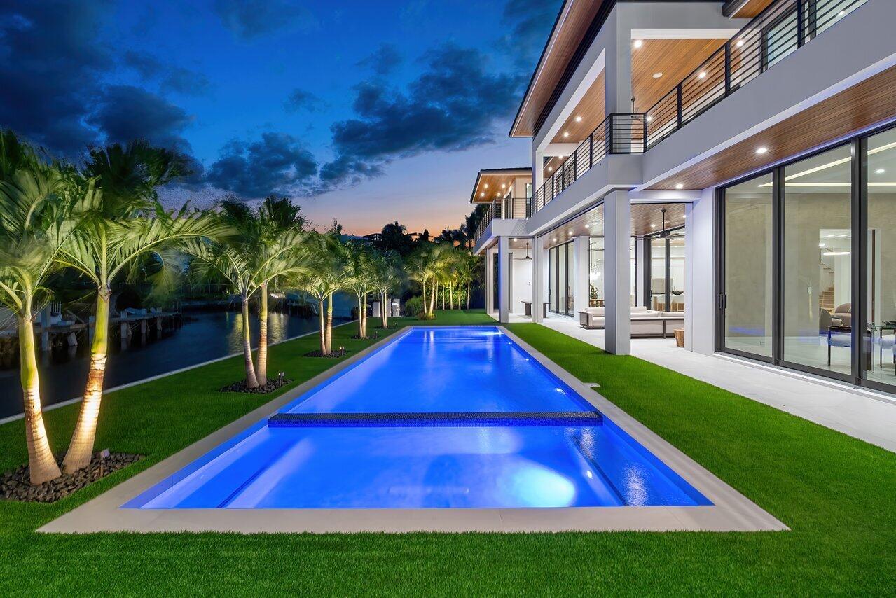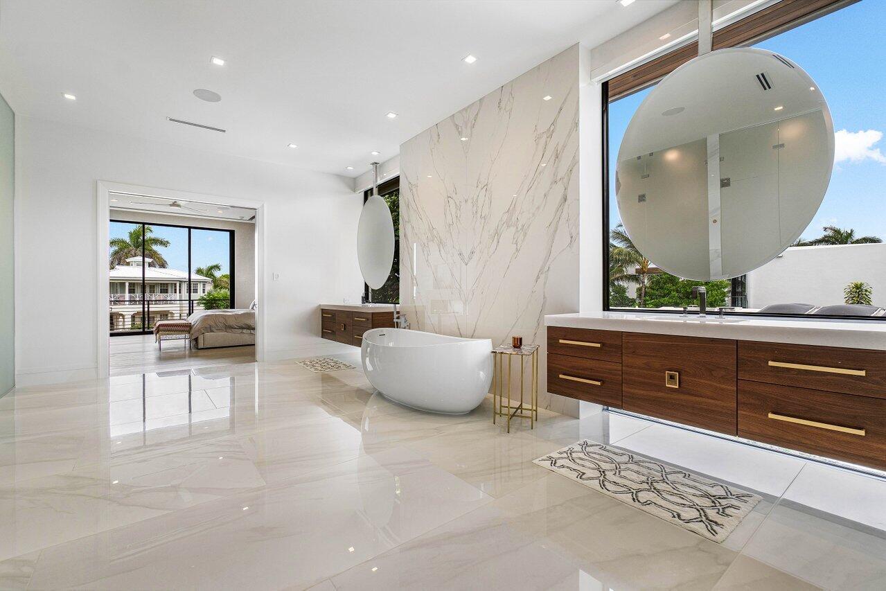 Walk to the beach from this stunning, new construction, British West Indies styled home, .This new, modern masterpiece boasts 5 bedrooms and 5.2 baths on 119 feet of deep water. Highlights include a magnificent clubroom with a spacious walk-in wine room, a gourmet chef’s kitchen with Wolf & Subzero appliances, and a luxurious second-floor primary suite. The backyard is an entertainer’s paradise, complete with a well-appointed summer kitchen. The home is equipped with a state-of-the-art integrated smart home system and a digital security gate. Situated in East Boca Raton, this estate is just steps from the beach and moments away by boat to the Intracoastal with ocean access. Architecture by Brenner Architects and built by National Custom Homes!