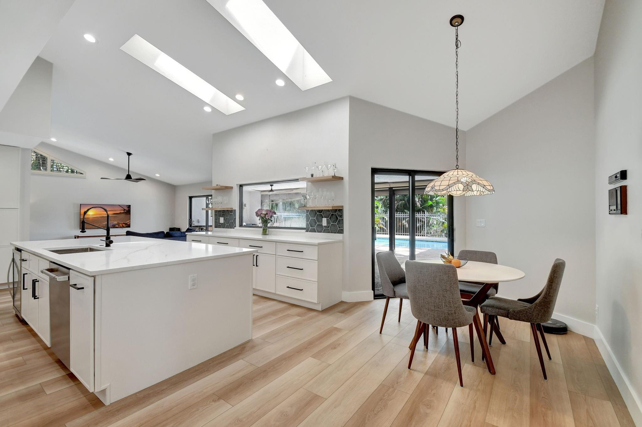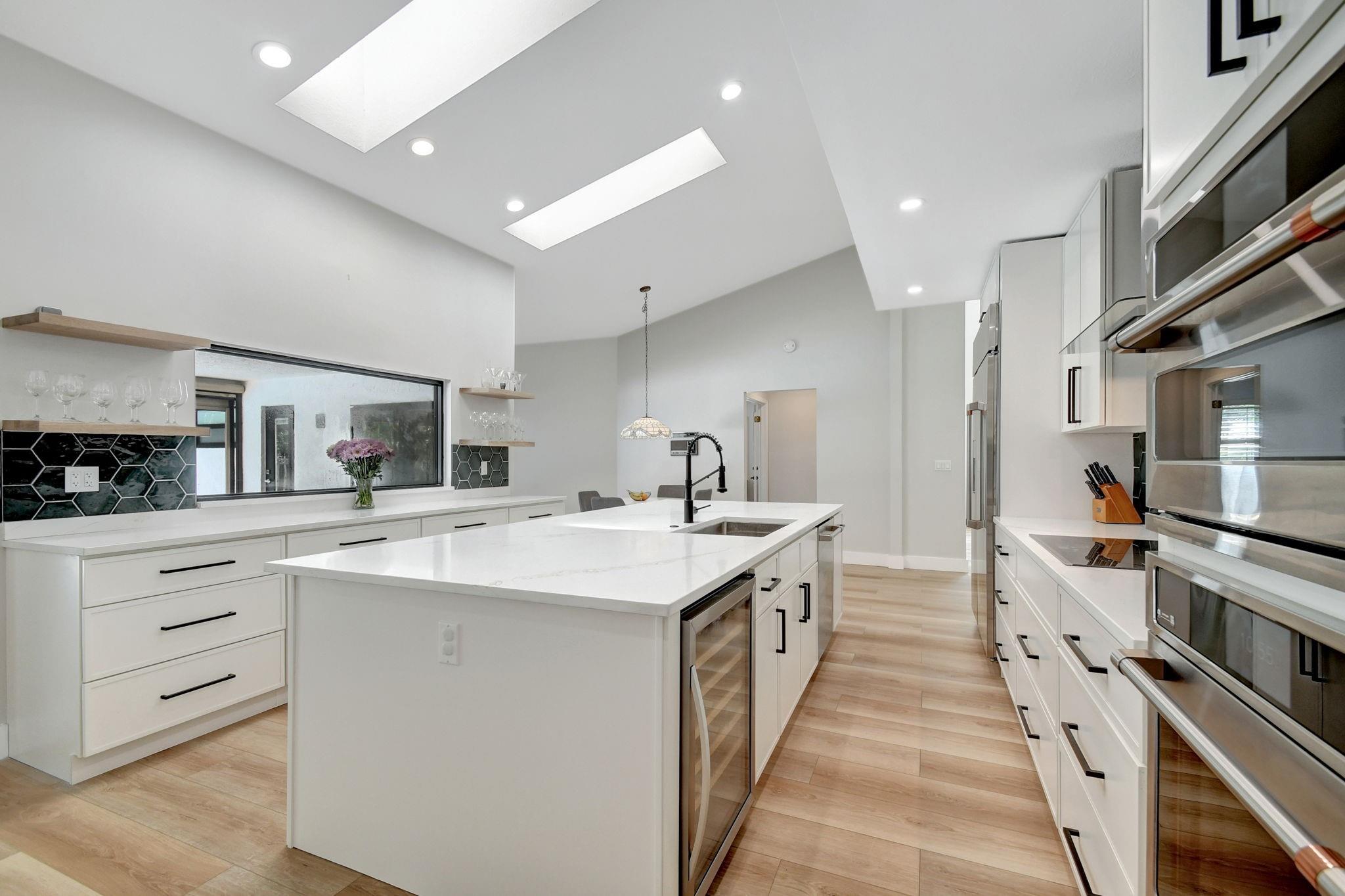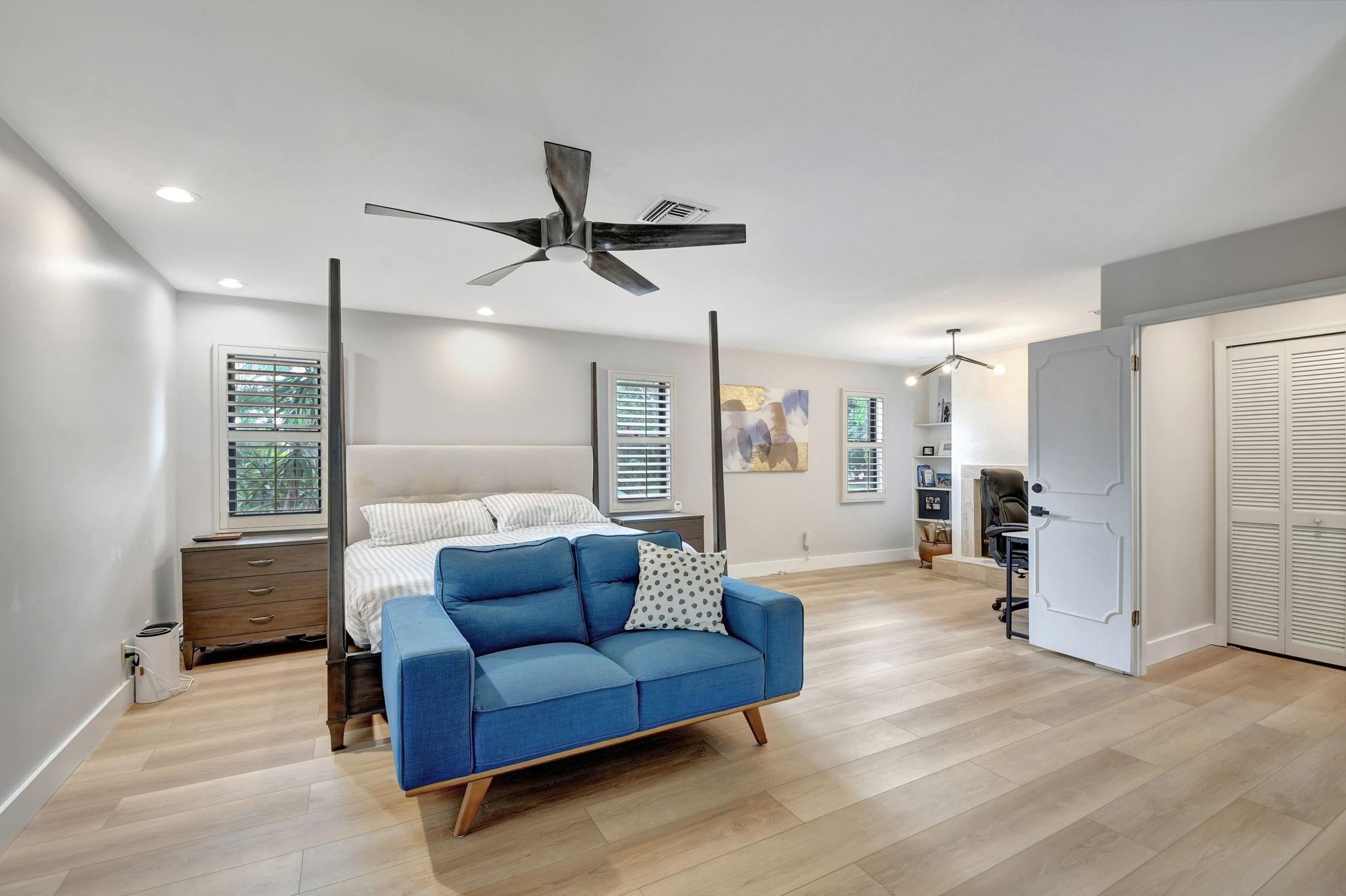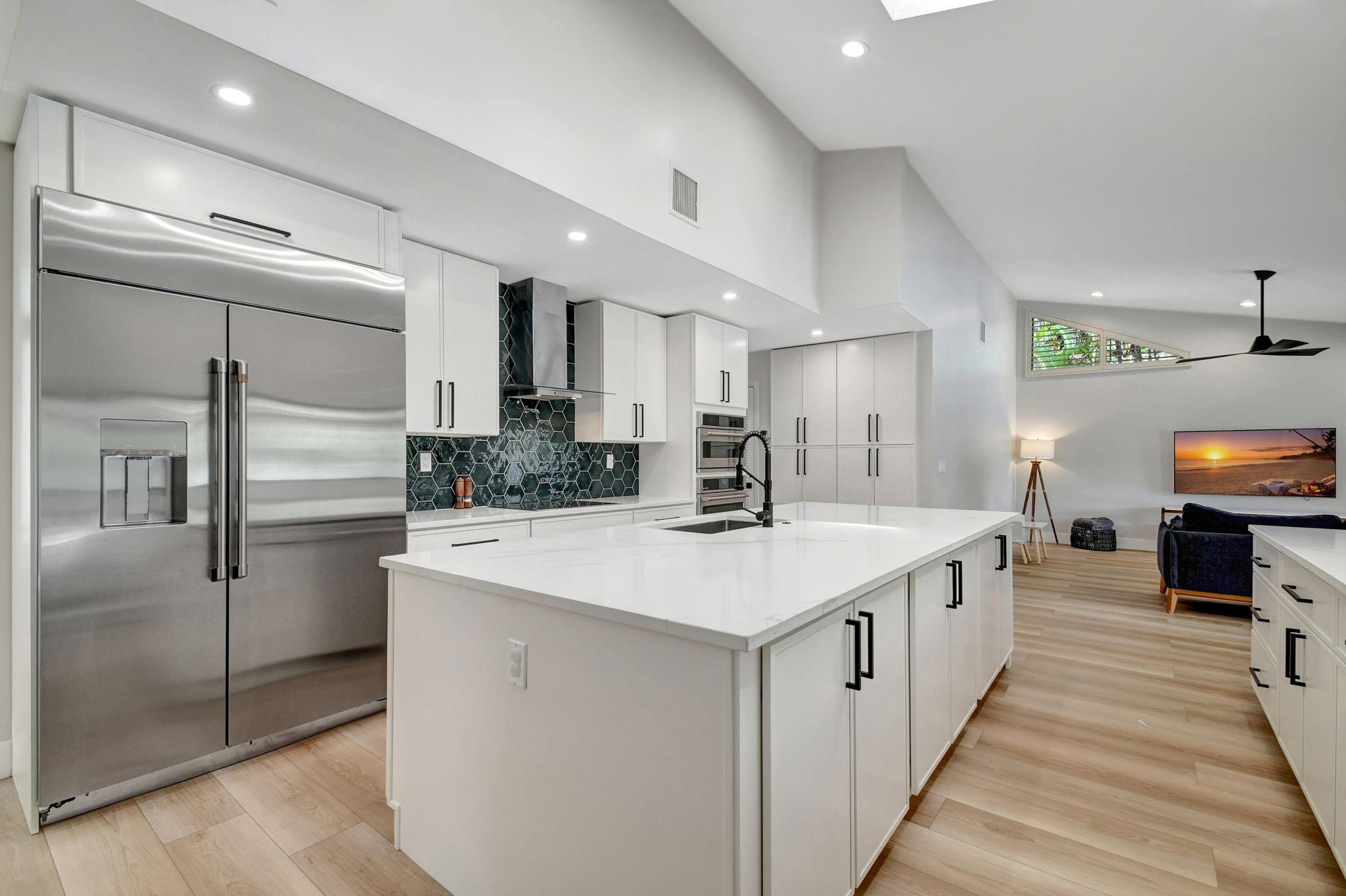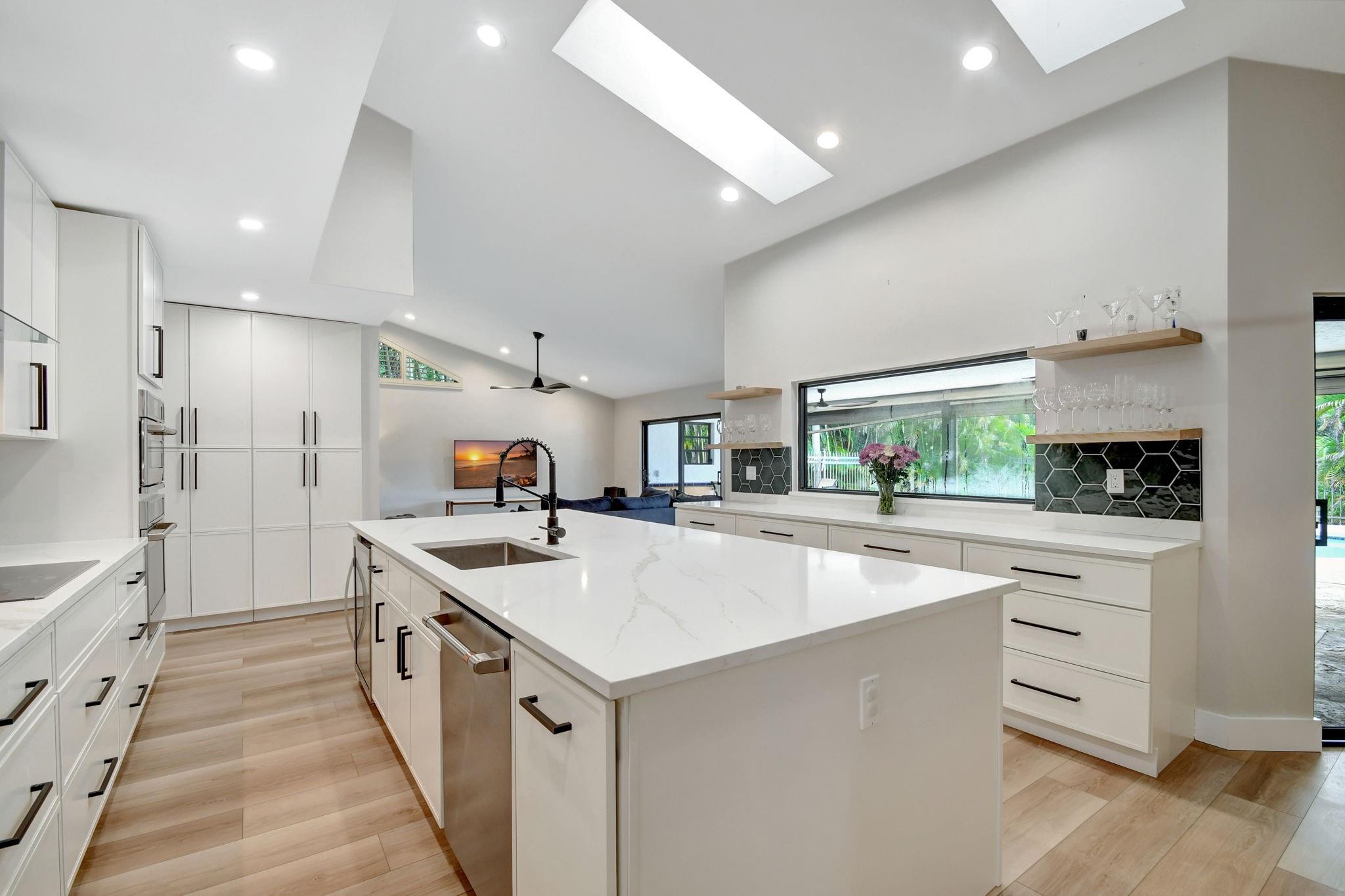 This Beautifully renovated modern home is situated on a secluded one-acre lot in a coveted mulit-million $ neighborhood. It offers both space and convenience, being close to the trnpke, downtown Delray, Marketplace, & new shops. This property is zoned for A-rated schools and the home features a sleek new Metal roof, impact windows ,doors & skylights. The Chef’s kitchen stands out with high-end Cafe appl’s, a 42″ refrig, a magnificent oversized island, and large picture window that overlooks a private patio & pool area .Elegant LVP flooring to compliment, along with an expansive primary suite that includes a cozy wood-burning fireplace with space suitable for a nursery or office. An oversized 2-car gar., back up generator & starlink ensures ultimate convenience. Man gated HOA only $267. mo