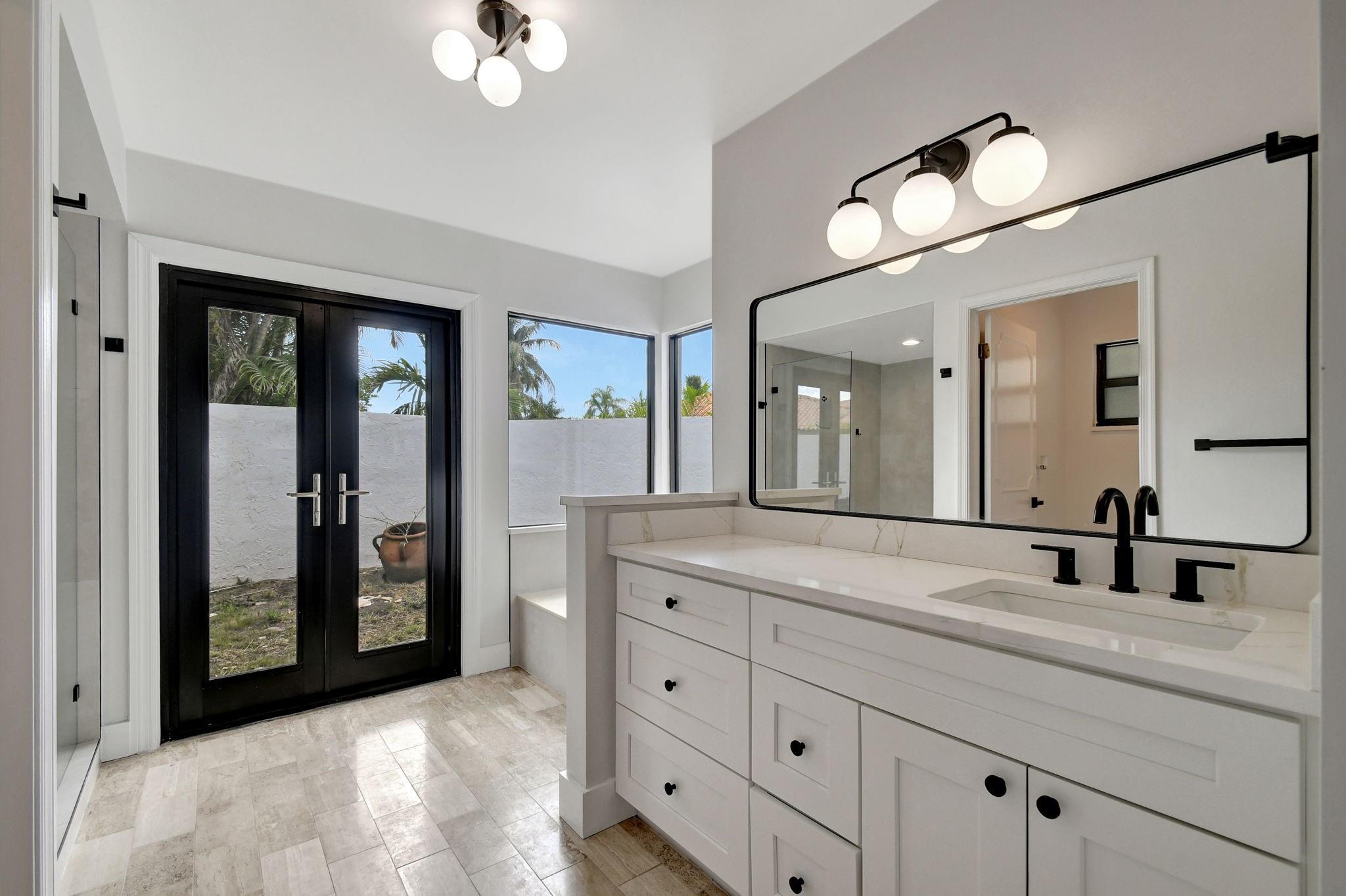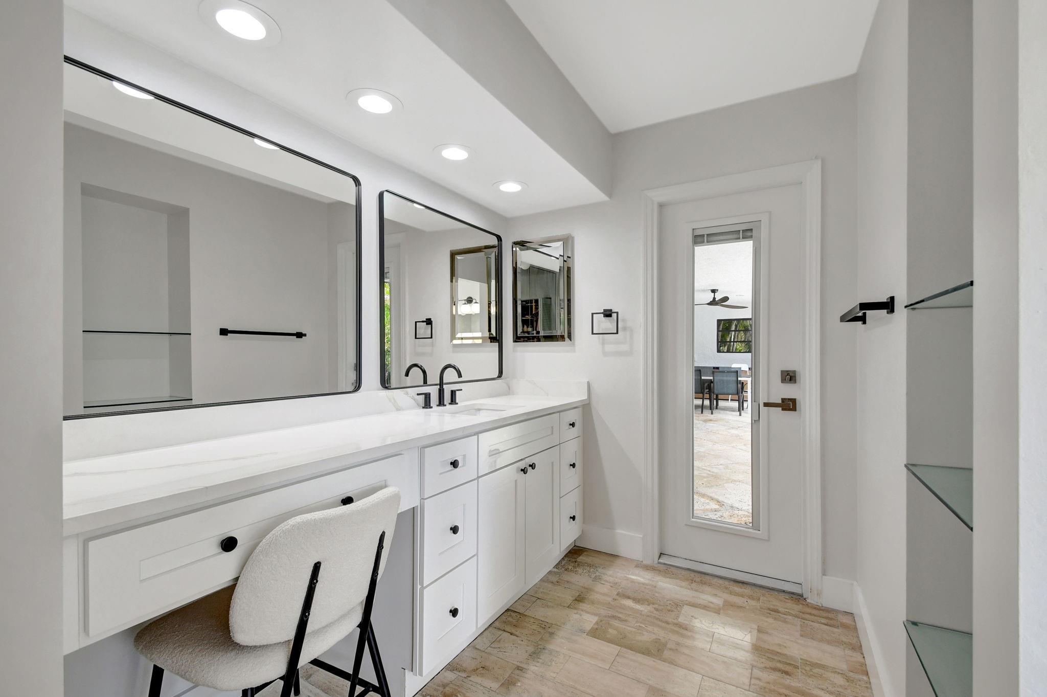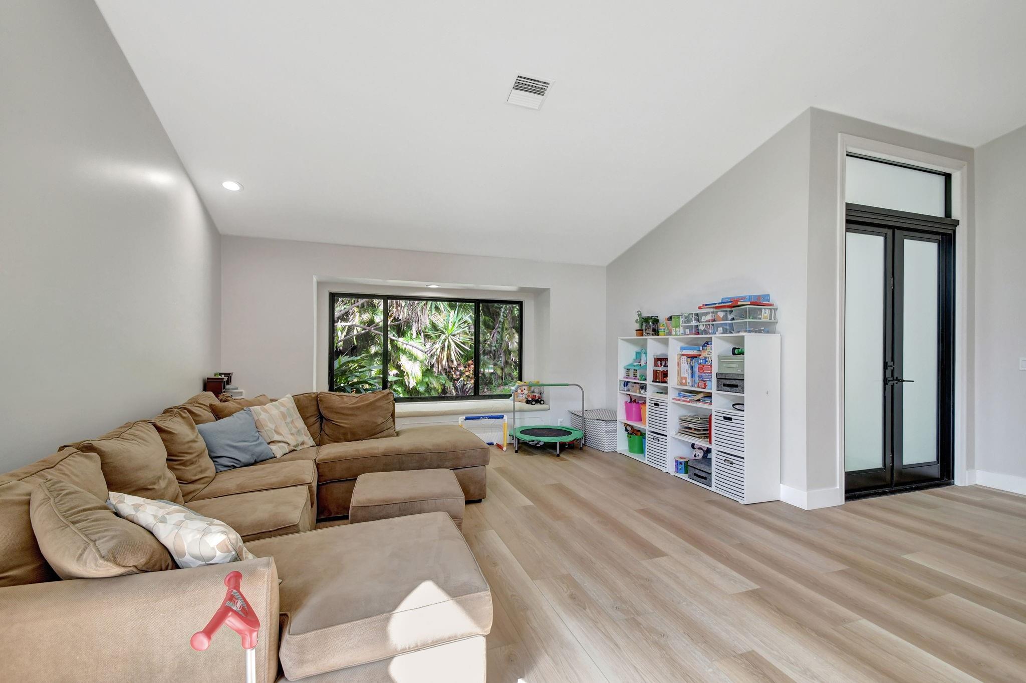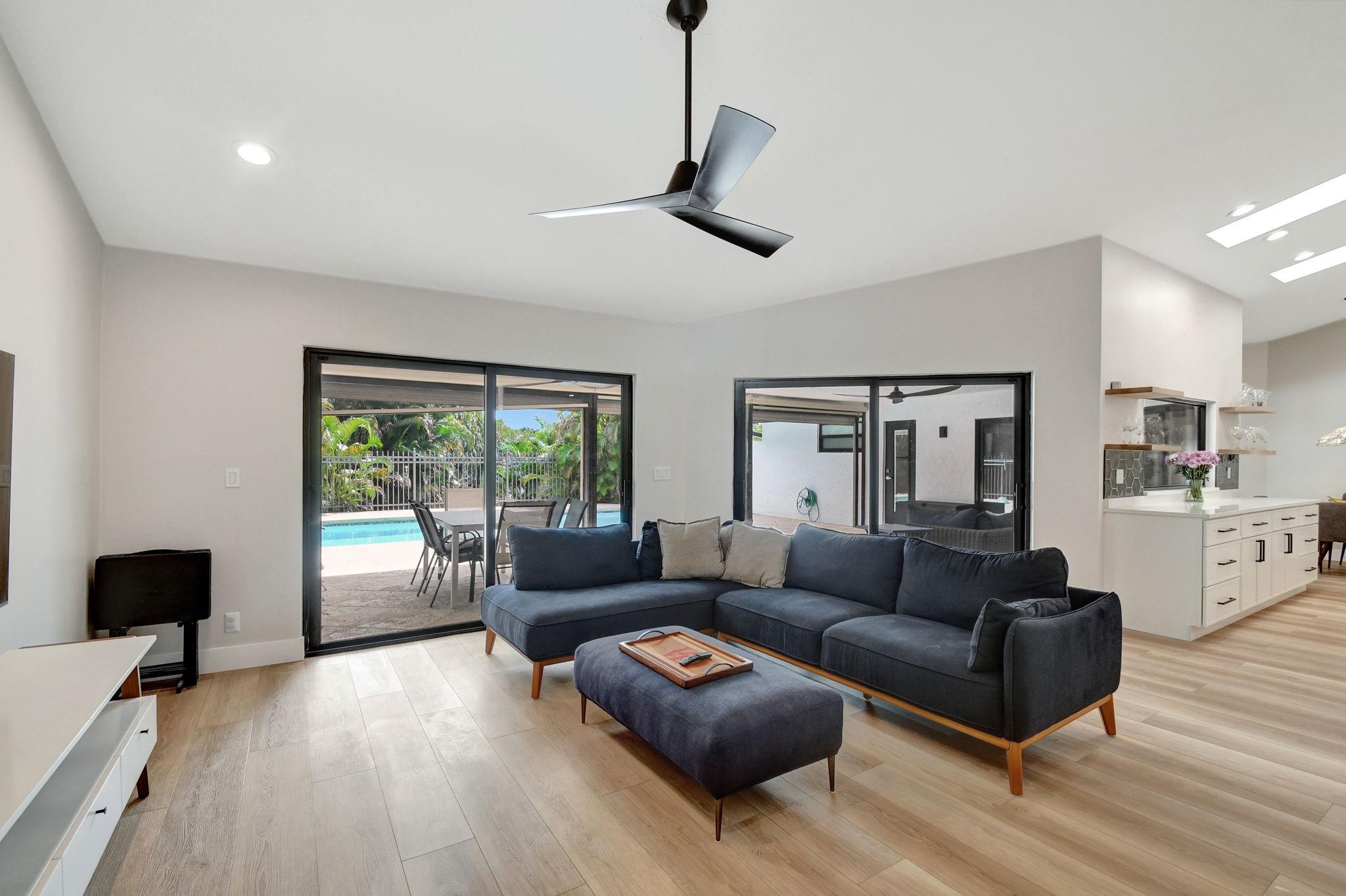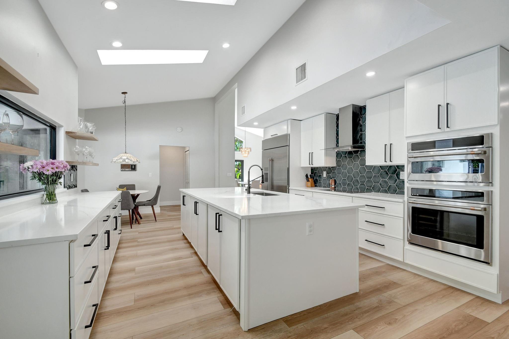 This Beautifully renovated modern home is situated on a secluded one-acre lot in a coveted mulit-million $ neighborhood. It offers both space and convenience, being close to the trnpke, downtown Delray, Marketplace, & new shops. This property is zoned for A-rated schools and the home features a sleek new Metal roof, impact windows ,doors & skylights. The Chef’s kitchen stands out with high-end Cafe appl’s, a 42″ refrig, a magnificent oversized island, and large picture window that overlooks a private patio & pool area .Elegant LVP flooring to compliment, along with an expansive primary suite that includes a cozy wood-burning fireplace with space suitable for a nursery or office. An oversized 2-car gar., back up generator & starlink ensures ultimate convenience. Man gated HOA only $267. mo