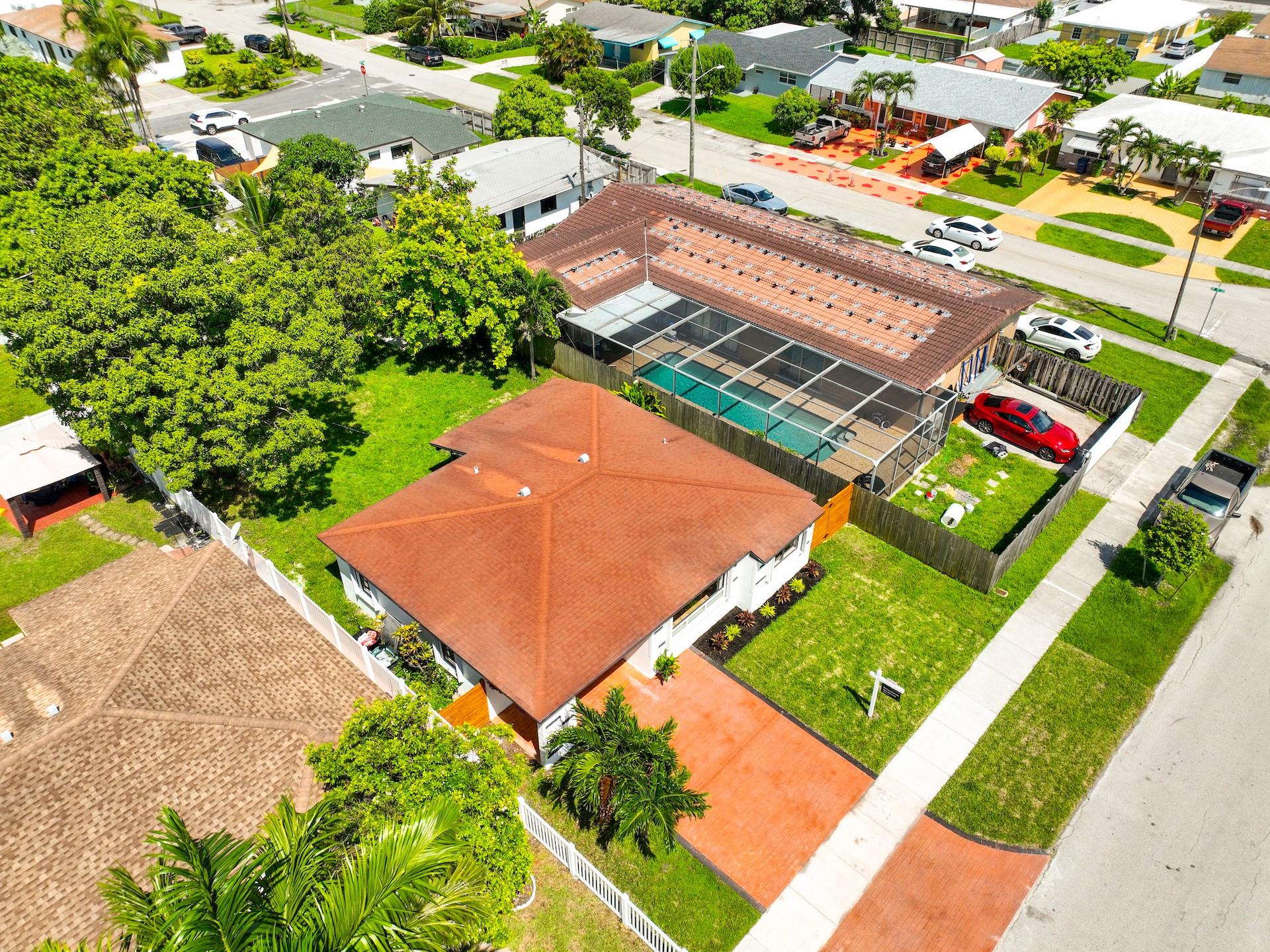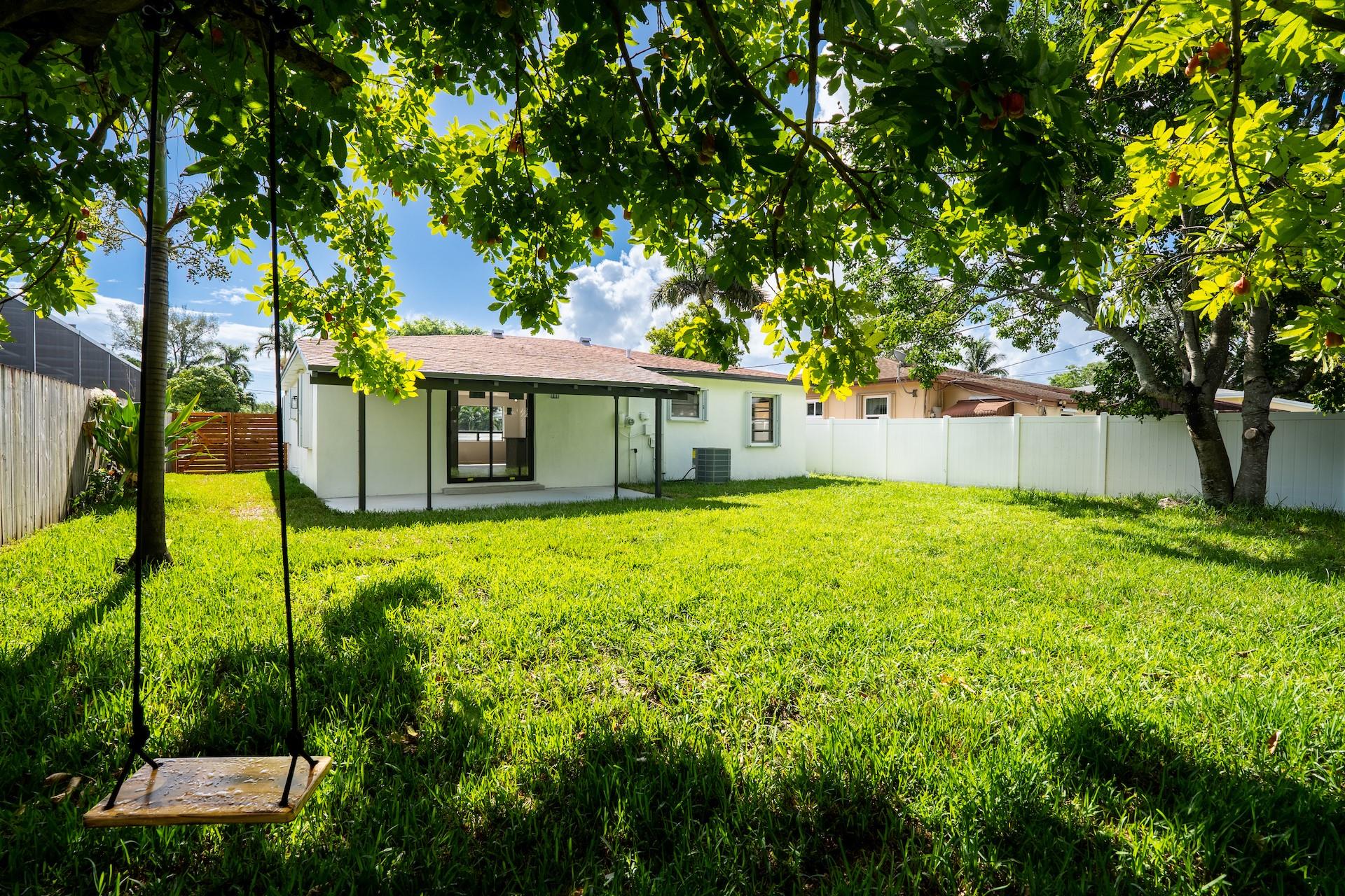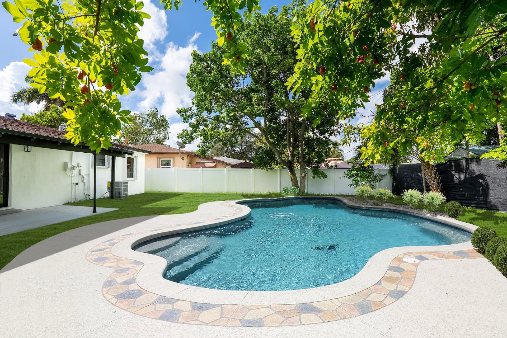 BEST PRICE IN TOWN! This totally remodelled one story 3 bedrooms, 2 bathroom home located on a private oversized fenced in lot in famous Hallandale Garden Park features a great split floorplan. Brand new AC & duct work. Step into the bright living & dining room that leads to a brand new kitchen with new stainless steel appliances, custom pantry, quartz countertops and eat in breakfast area overlooking a huge private backyard with 4 fruit trees (lime & mango). PLENTY OF ROOM FOR A POOL(see rendering) Washer & dryer hookup. Vinyl floors throughout. Walk in closets. Hurricane shutters. No HOA’s or any restrictions. Park your RV/boat and up to 4 cars in your long driveway. Great curb appeal. Close to major highways & cities, airports, Aventura Mall, restaurants & minutes away from the beach.