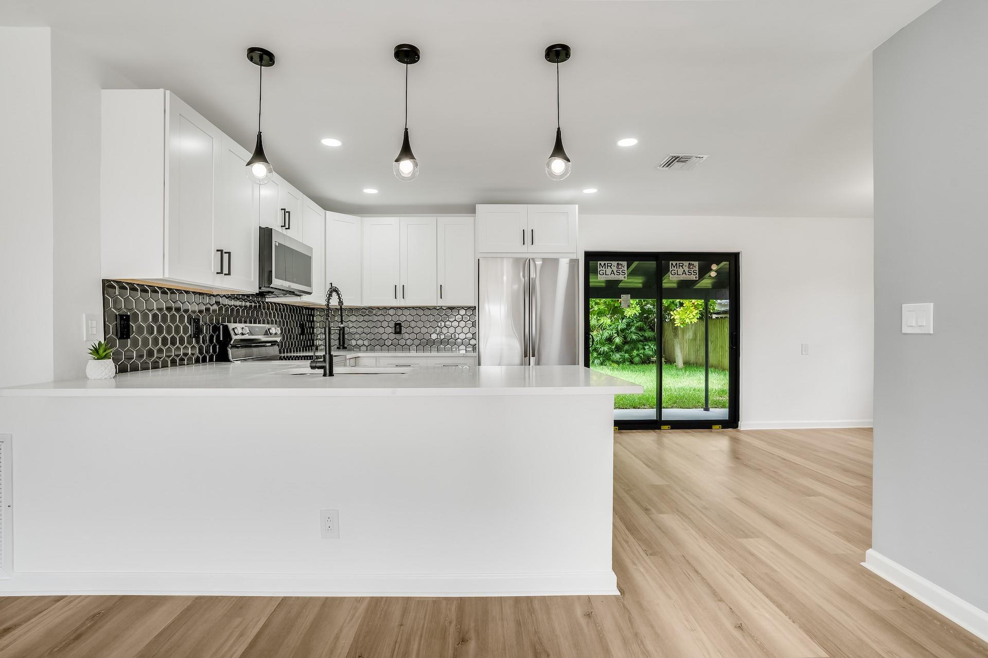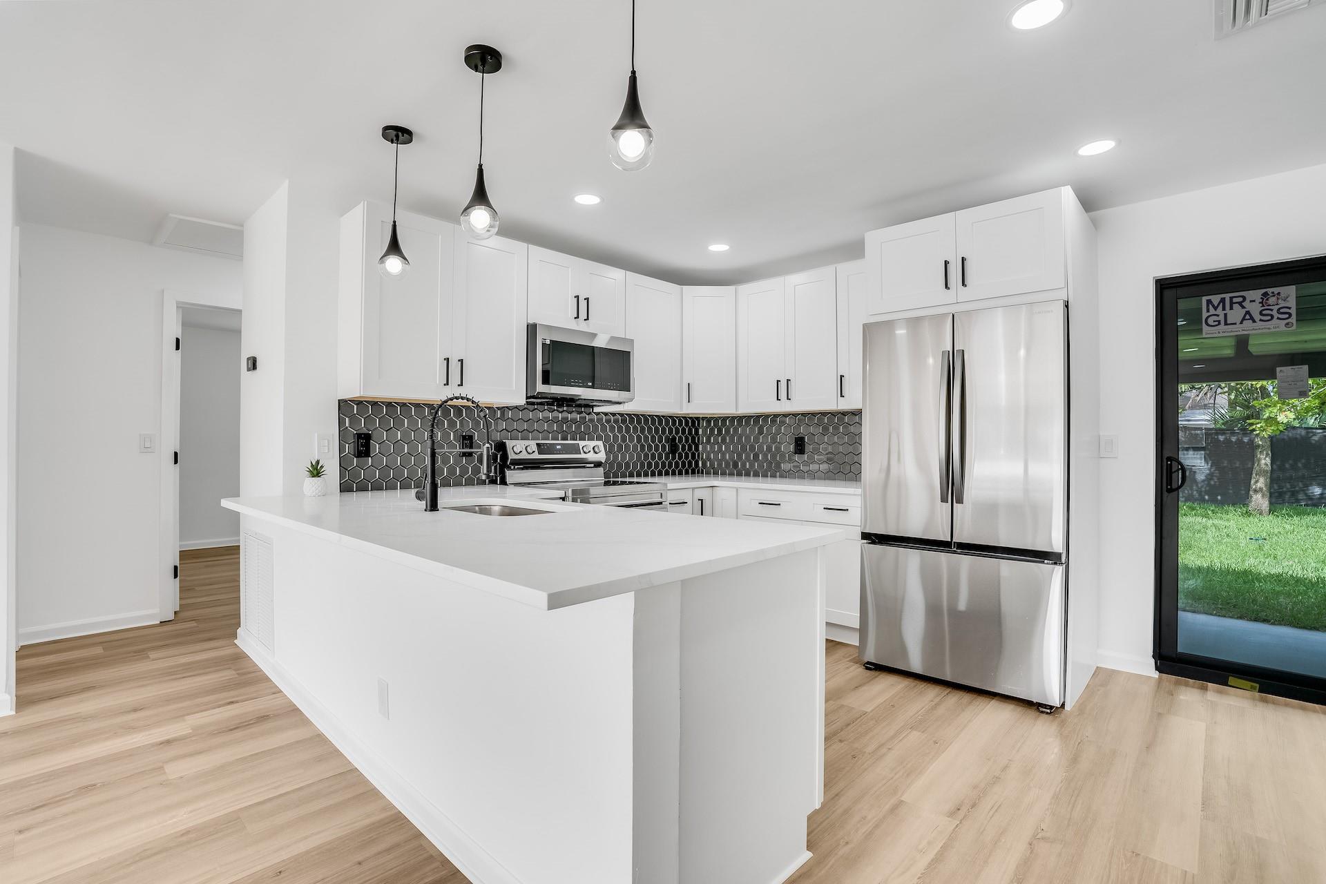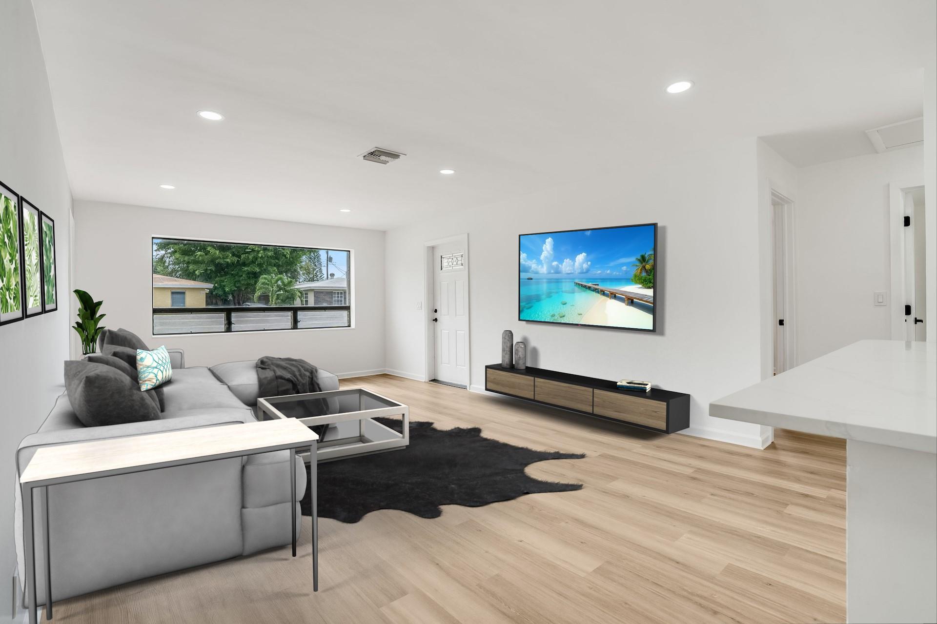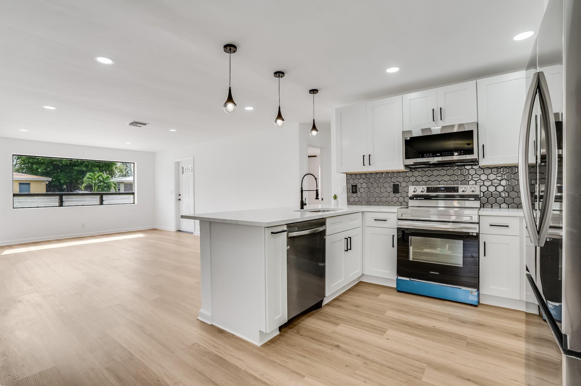 BEST PRICE IN TOWN! This totally remodelled one story 3 bedrooms, 2 bathroom home located on a private oversized fenced in lot in famous Hallandale Garden Park features a great split floorplan. Brand new AC & duct work. Step into the bright living & dining room that leads to a brand new kitchen with new stainless steel appliances, custom pantry, quartz countertops and eat in breakfast area overlooking a huge private backyard with 4 fruit trees (lime & mango). PLENTY OF ROOM FOR A POOL(see rendering) Washer & dryer hookup. Vinyl floors throughout. Walk in closets. Hurricane shutters. No HOA’s or any restrictions. Park your RV/boat and up to 4 cars in your long driveway. Great curb appeal. Close to major highways & cities, airports, Aventura Mall, restaurants & minutes away from the beach.