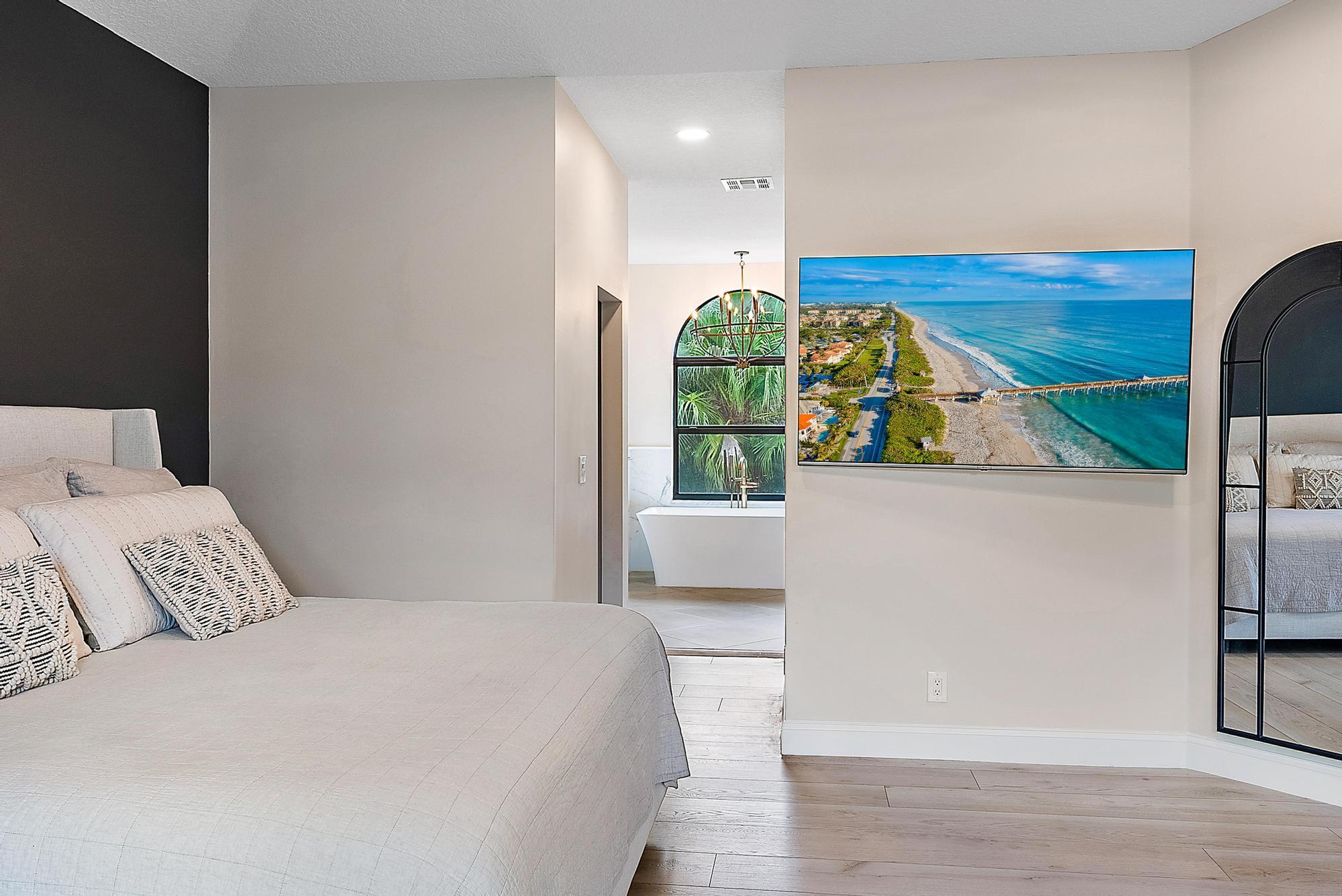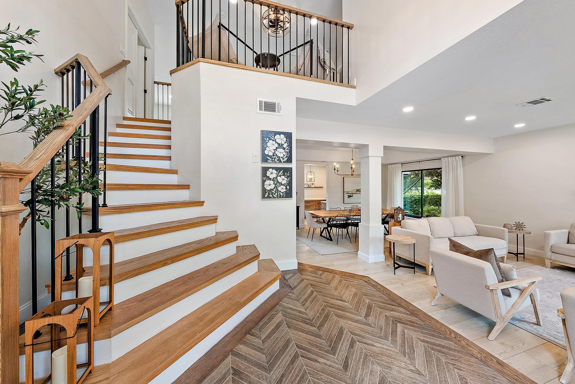 BRAND NEW ROOF !Welcome to your STUNNINGLY RENOVATED dream home in beautiful Jupiter, Florida! This immaculate two-story residence is located in the highly sought after neighborhood of LOXAHATCHEE POINTE on a completely PRIVATE cul-de-sac. This home offers 5 spacious bedrooms and 3 luxurious bathrooms, perfectly combining MODERN elegance with family-friendly functionality. As you step inside the foyer with elevated ceilings, you’ll immediately notice the high-end finishes and thoughtful upgrades starting with the beautiful chevron tiled entryway opening up to a sleek staircase and formal living room. Stepping down into the formal living room you overlook an ample open dining space suitable for an oversized table!