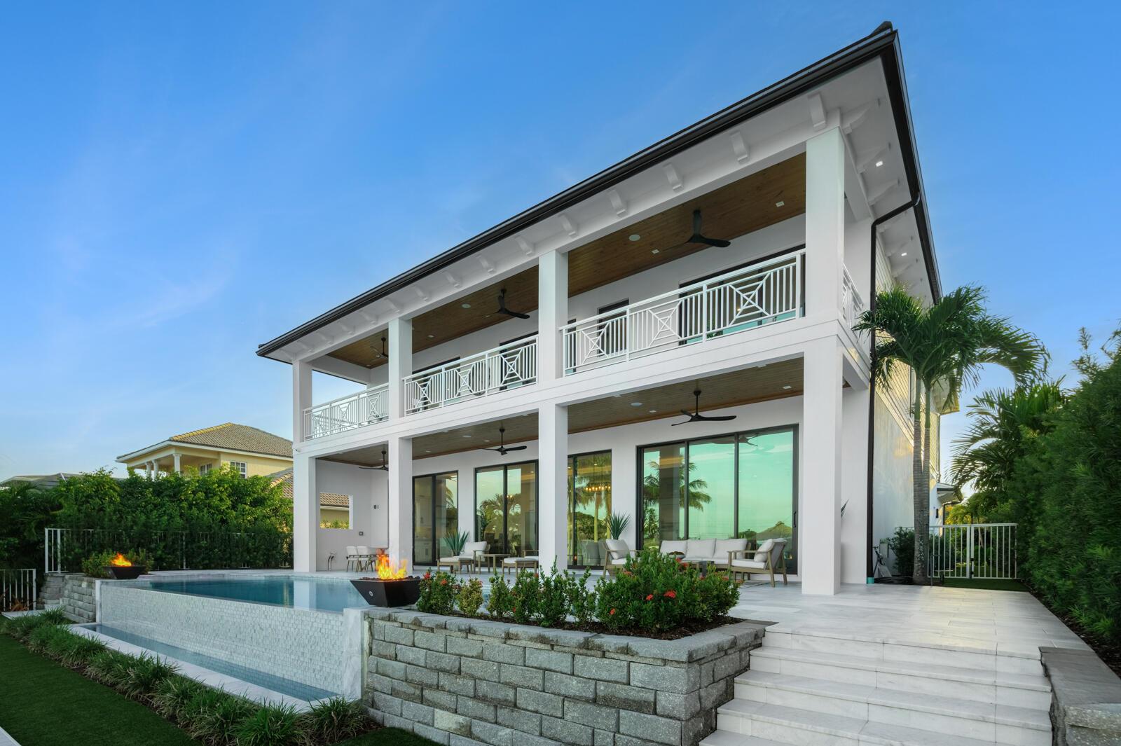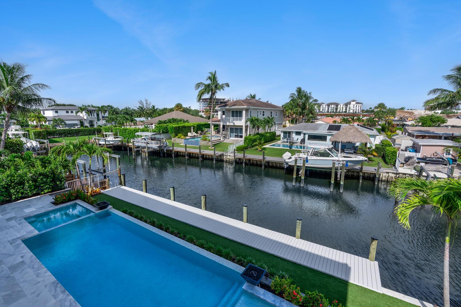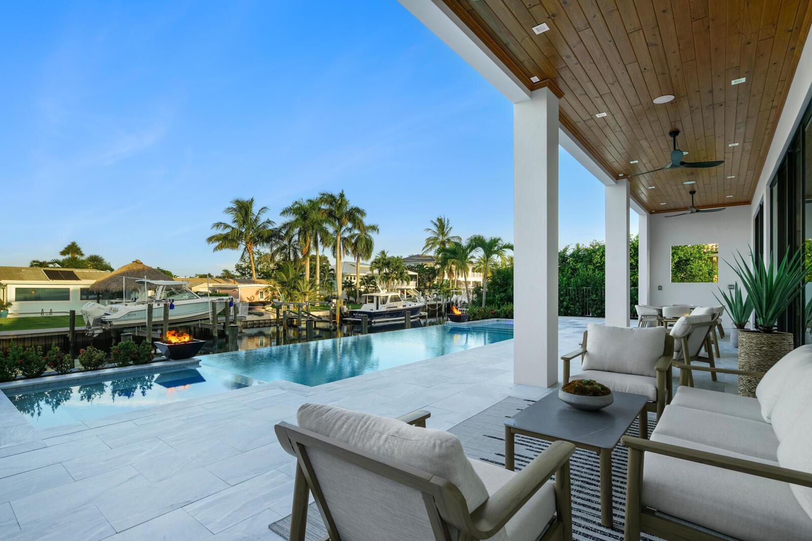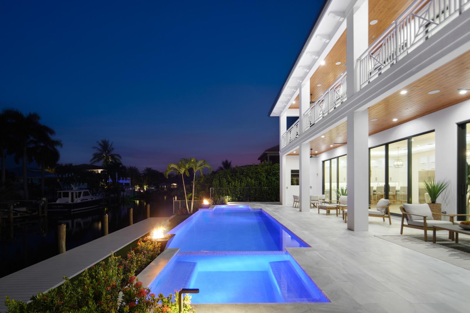 Waterfront New Construction! 4BR, plus office, and a Bonus Room that could function as a Game/Media Room or Gym, 4.1 BA, 3.5CG CBS home built with the finest and most Luxurious finishes. Fully Furnished/Move In Ready with all interior/exterior appointments including wall mounted TVs. 75′ of water frontage on a deep wide water canal with a brand new seawall and 65′ composite dock. Ocean access with no fixed bridges and less than 150 yards to the main Intracoastal. Abundant living space including great room, family room, and large bonus room upstairs. Heated Saltwater Infinity pool/spa, marble paver decking with 2 gas fire bowls. A gourmet kitchen that offers a Wolf 48” 6 burner sealed Gas stainless steel cooktop with griddle and Wolf double convection oven. See Supplement…