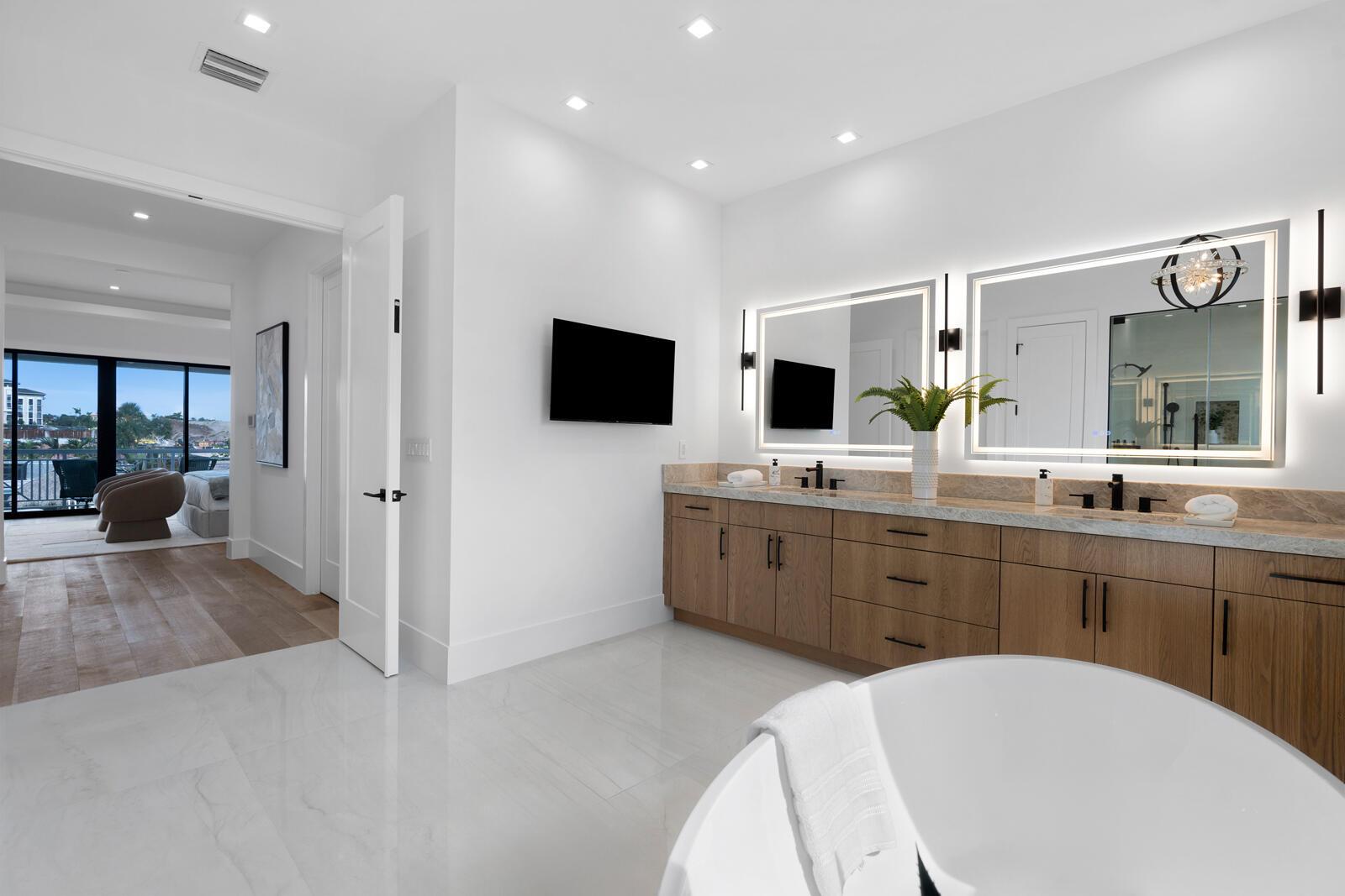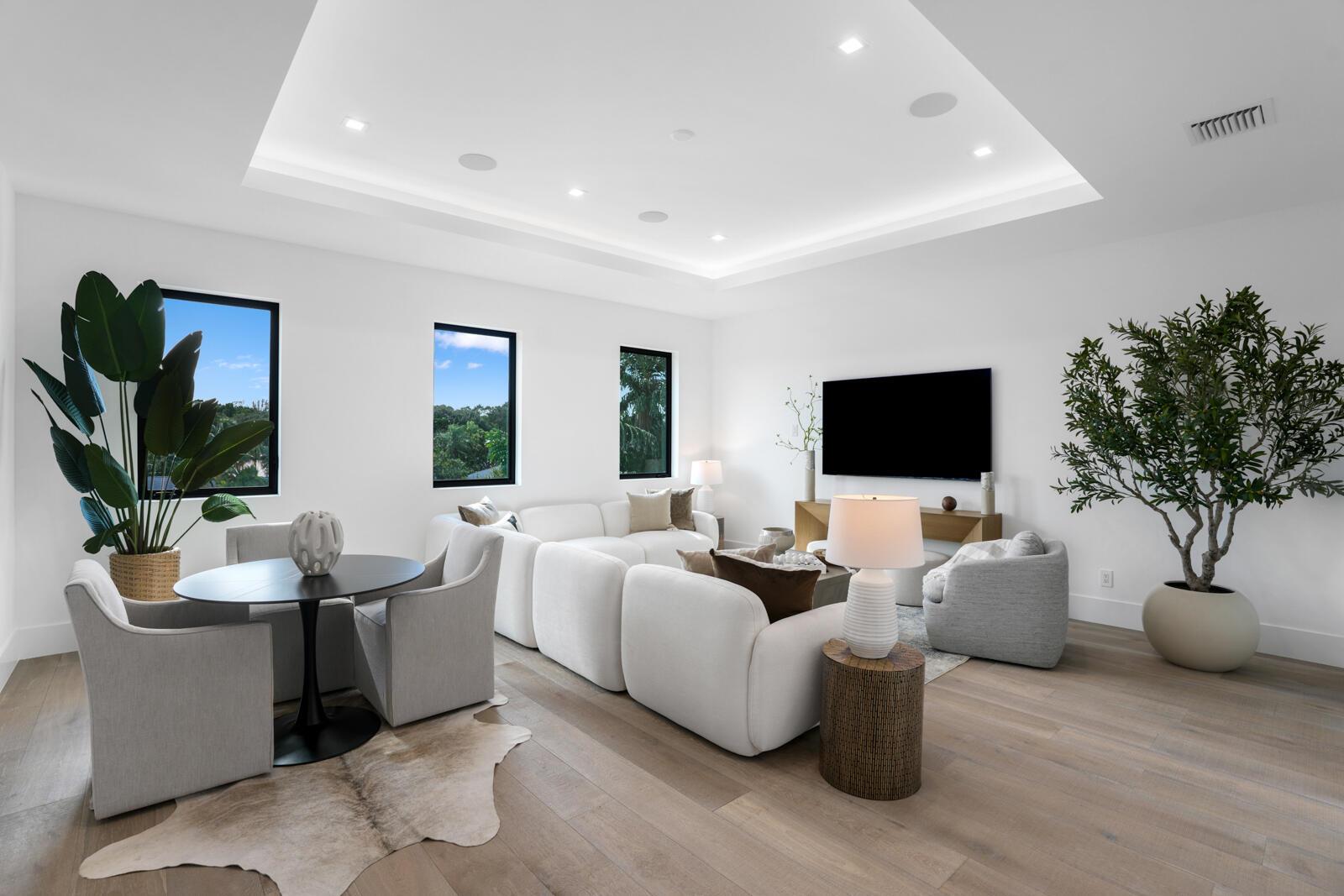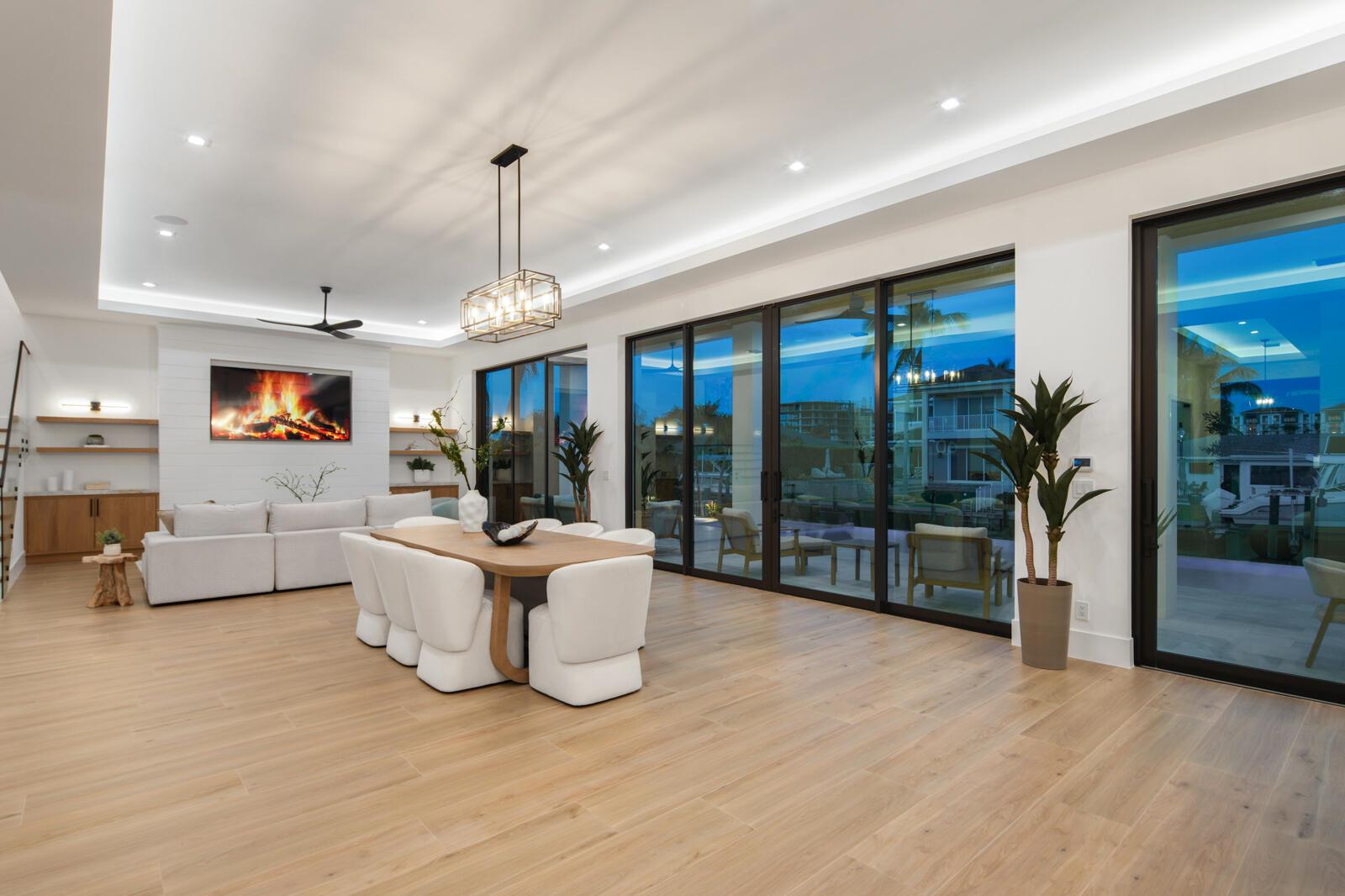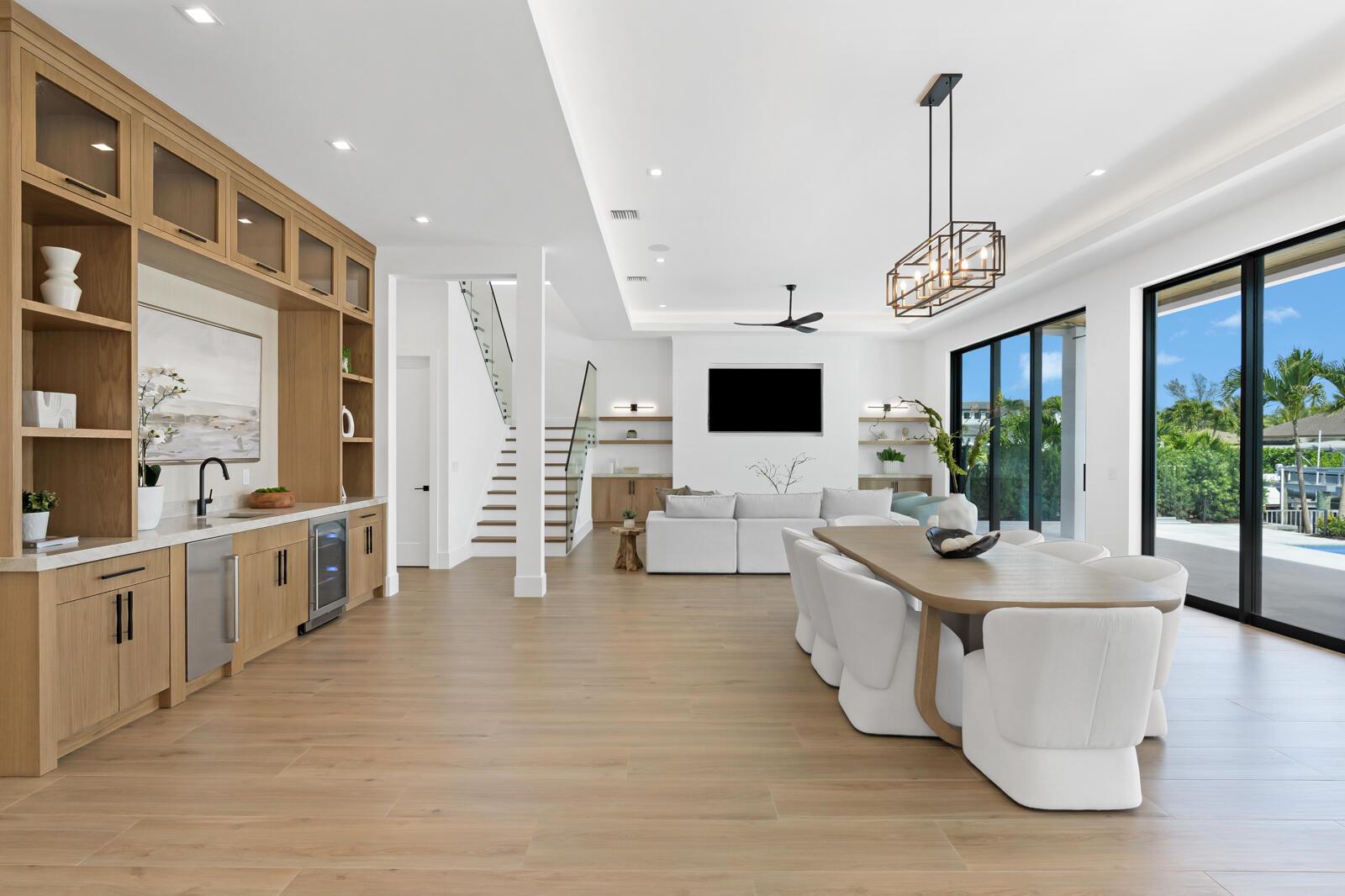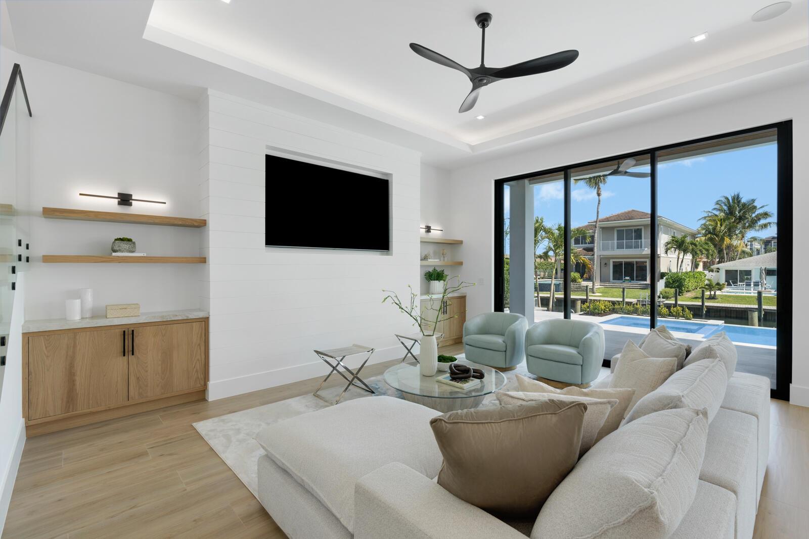 Waterfront New Construction! 4BR, plus office, and a Bonus Room that could function as a Game/Media Room or Gym, 4.1 BA, 3.5CG CBS home built with the finest and most Luxurious finishes. Fully Furnished/Move In Ready with all interior/exterior appointments including wall mounted TVs. 75′ of water frontage on a deep wide water canal with a brand new seawall and 65′ composite dock. Ocean access with no fixed bridges and less than 150 yards to the main Intracoastal. Abundant living space including great room, family room, and large bonus room upstairs. Heated Saltwater Infinity pool/spa, marble paver decking with 2 gas fire bowls. A gourmet kitchen that offers a Wolf 48” 6 burner sealed Gas stainless steel cooktop with griddle and Wolf double convection oven. See Supplement…