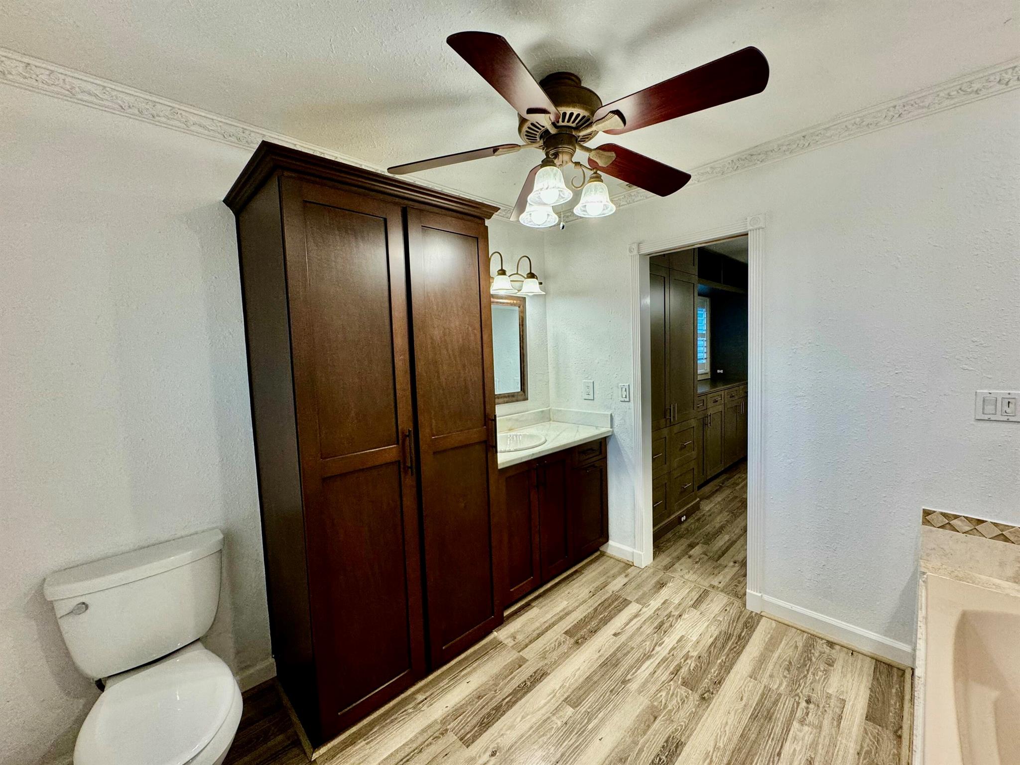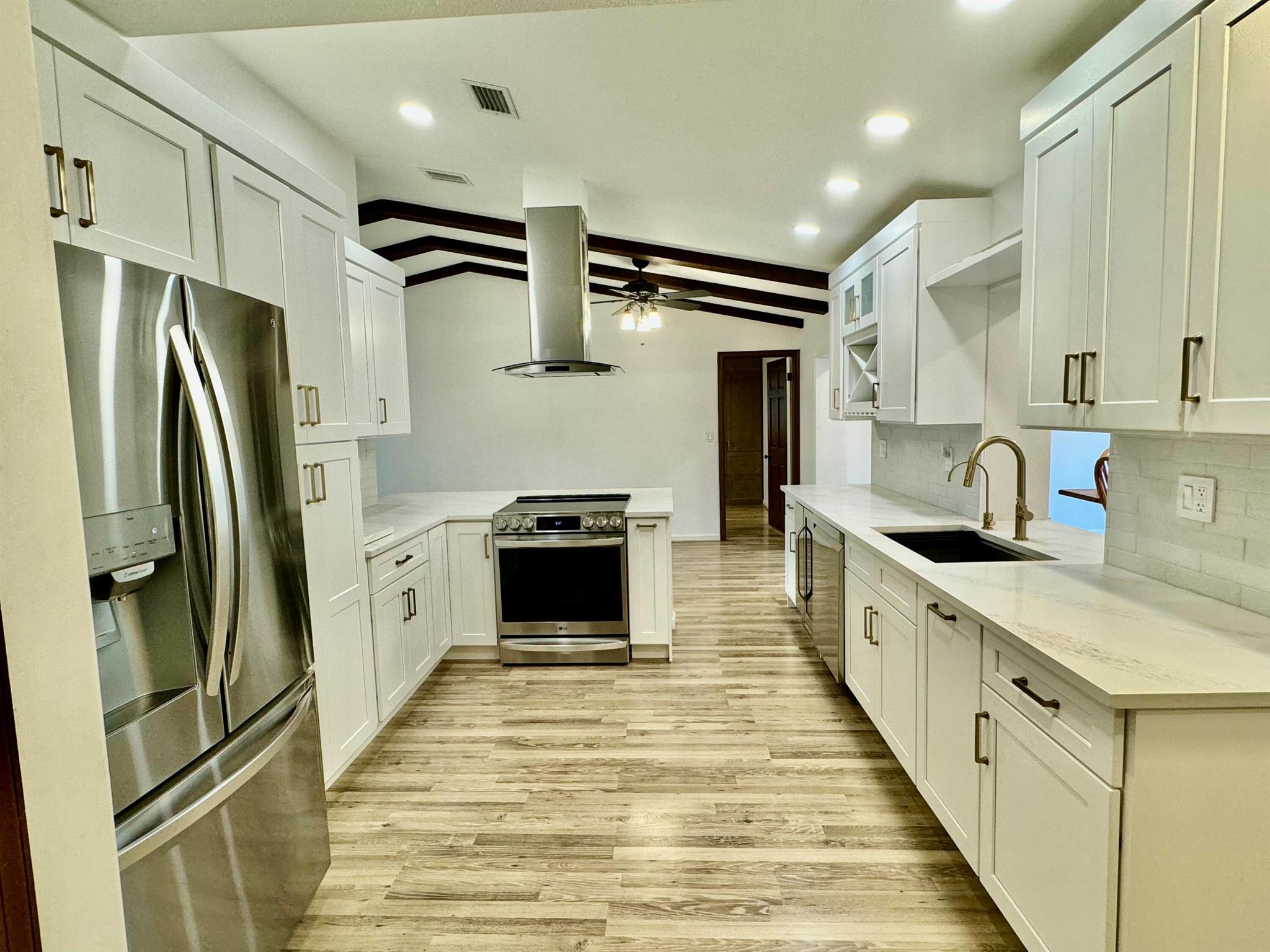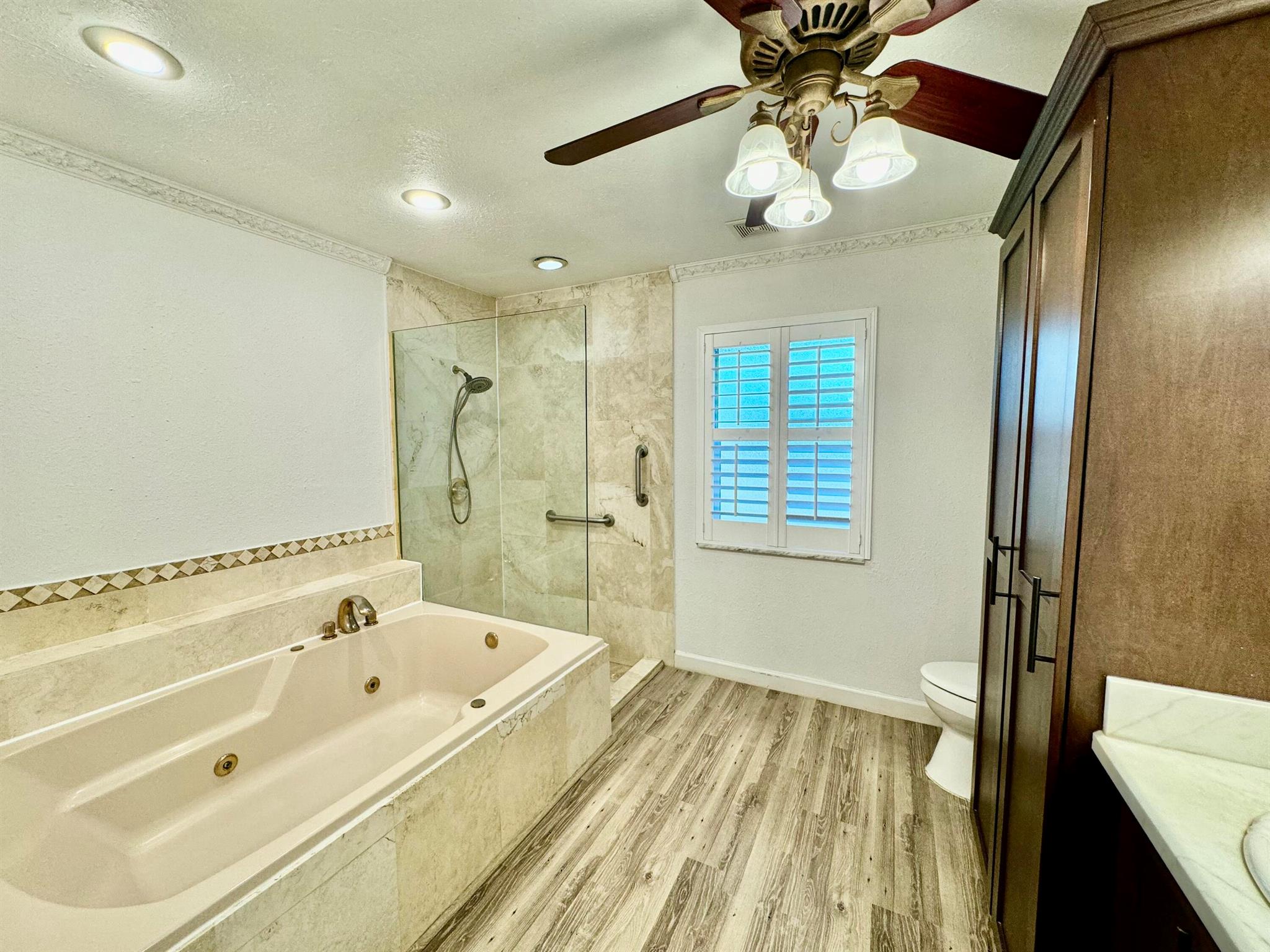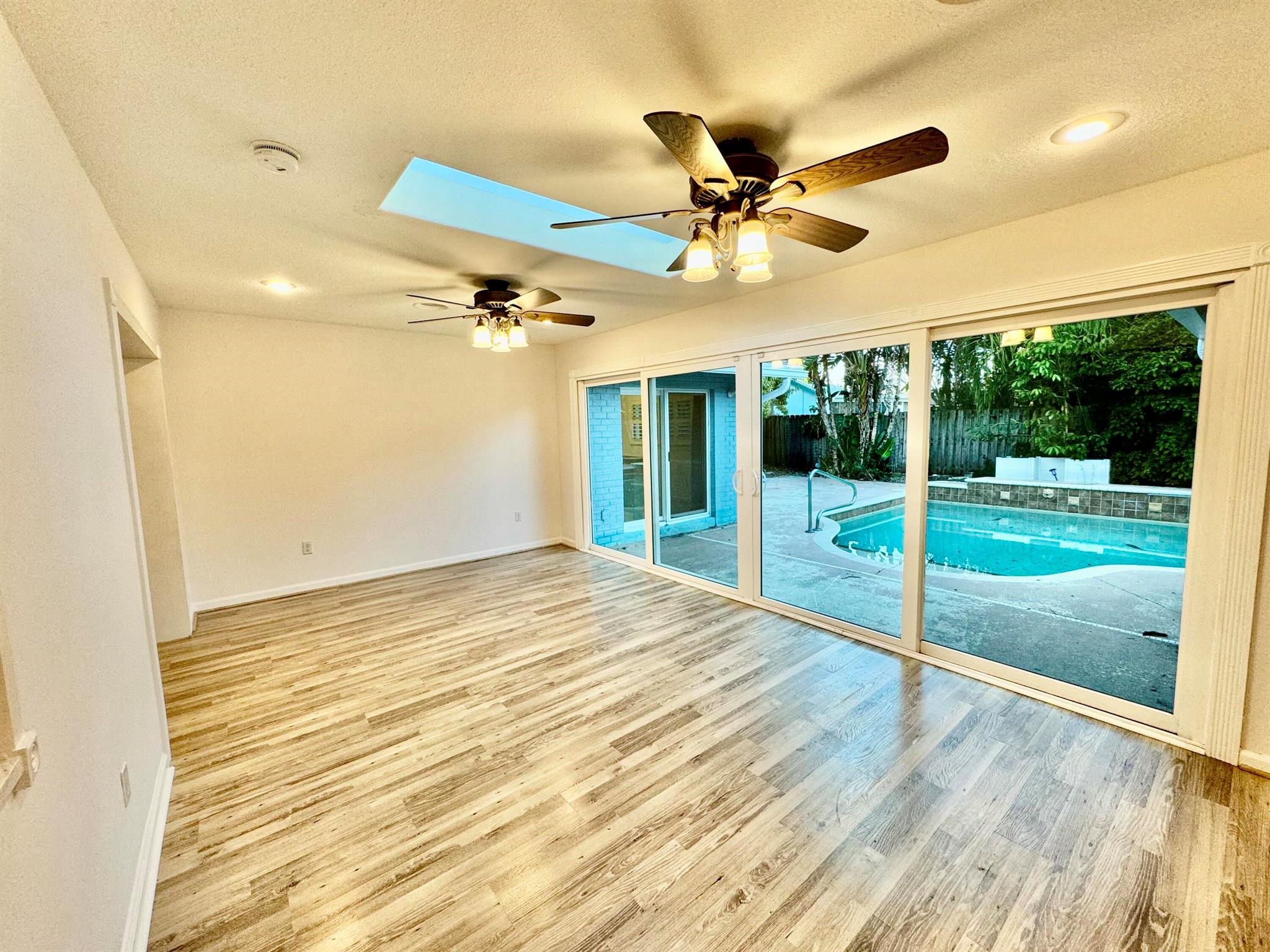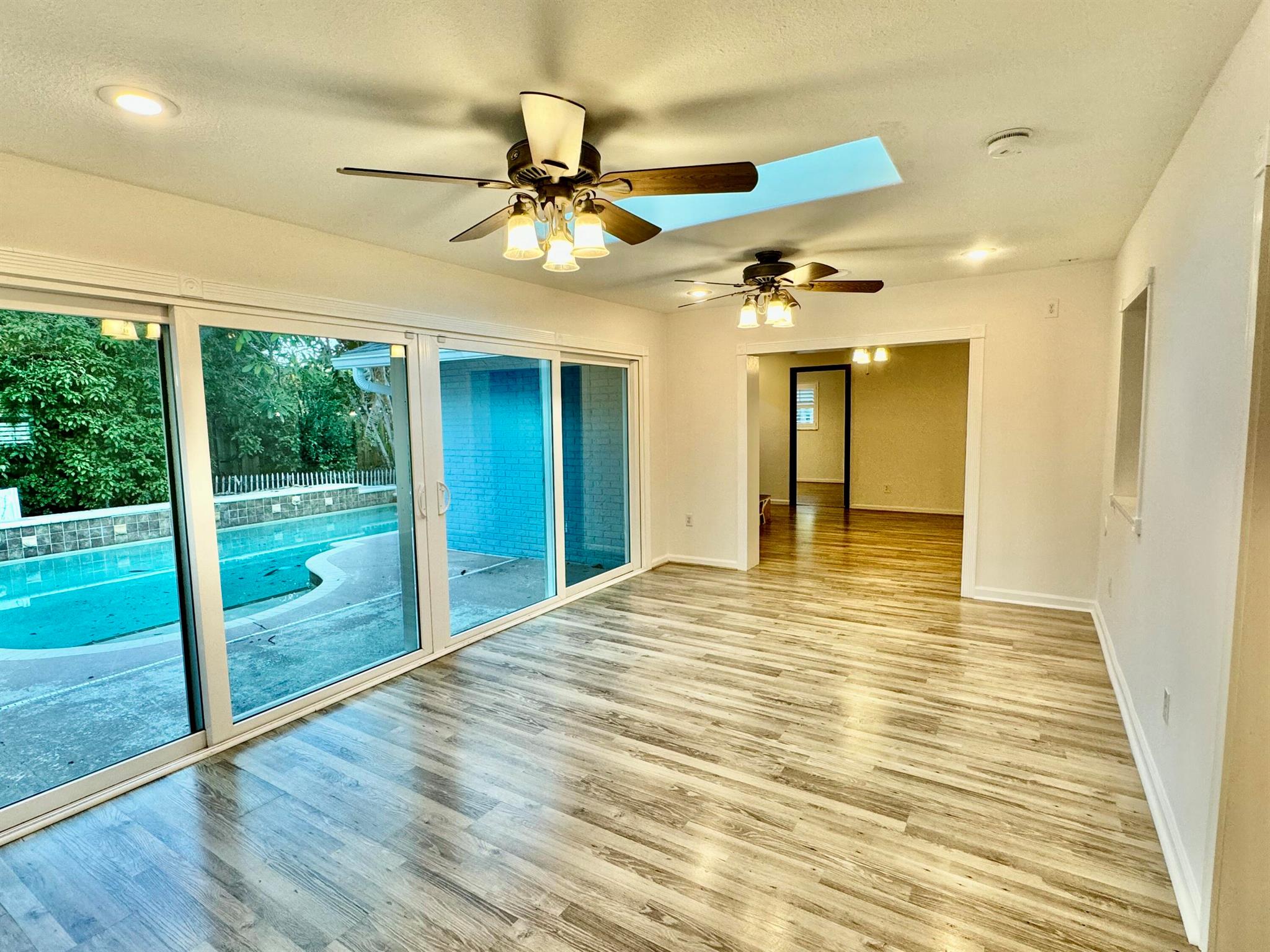 NO HOA! BRAND NEW KITCHEN & GUEST BATHROOM! Step into resort-style living with this beautiful saltwater pool home located in the heart of Wellington! Upgraded wood laminate flooring throughout this spacious split-floorplan and many upgrades to list. Complete with a permitted addition to the primary bedroom, you’ll be impressed by the abundant built-in cabinetry and wardrobe space.As you walk outside to the saltwater pool, you’ll see this home is powered by solar energy! New solar panels installed 2023, 2019 solar assisted hot water heater, and even a solar pool heater!More features include: New roof 2021, new variable speed A/C 2022, second A/C 2017, impact glass throughout, solar assisted hot water heater 2019, recent exterior paint, 2019 garage door opener.