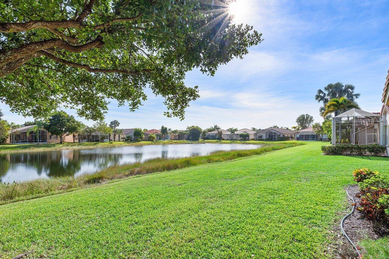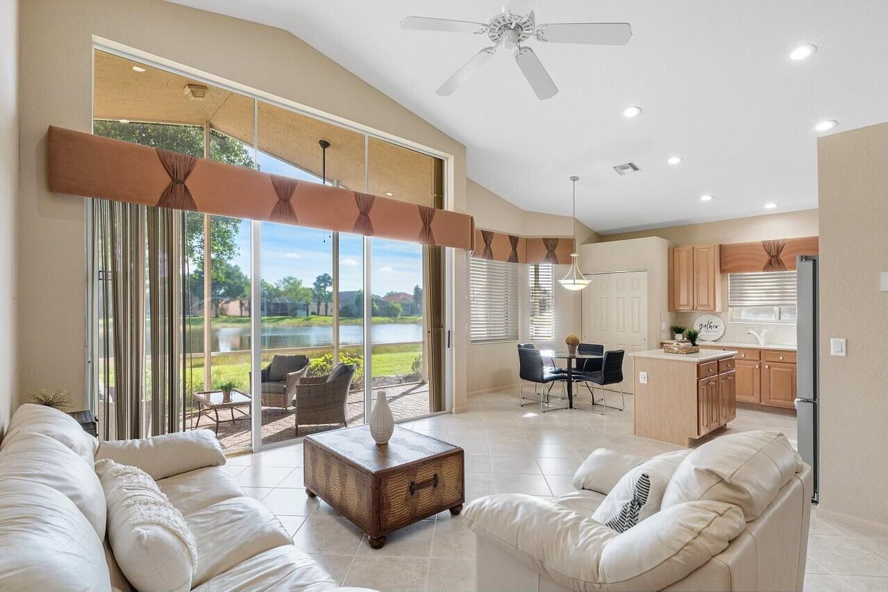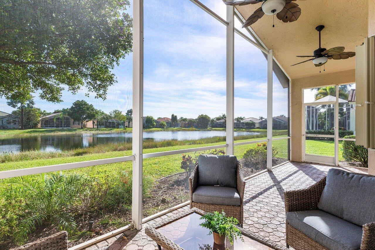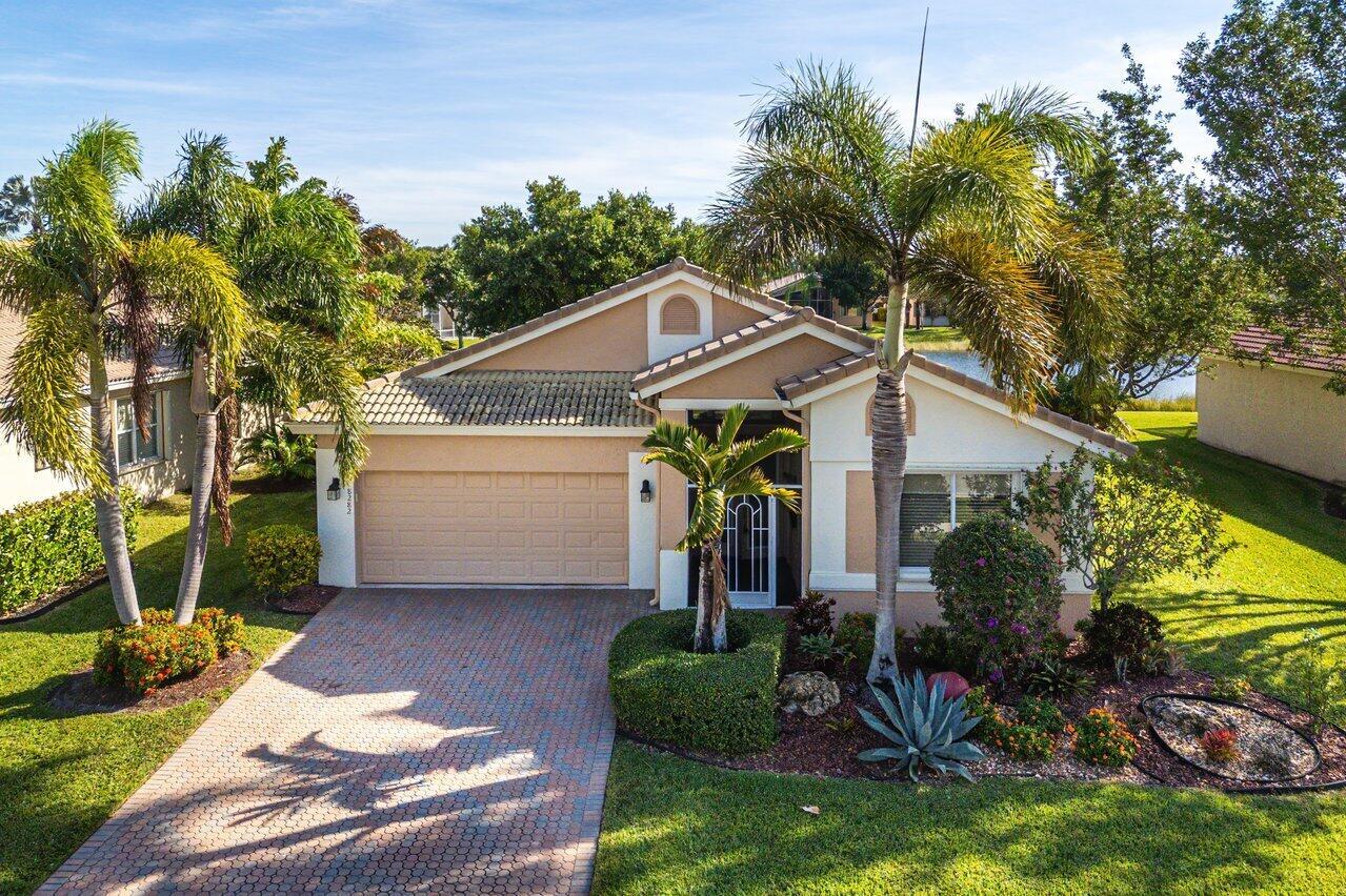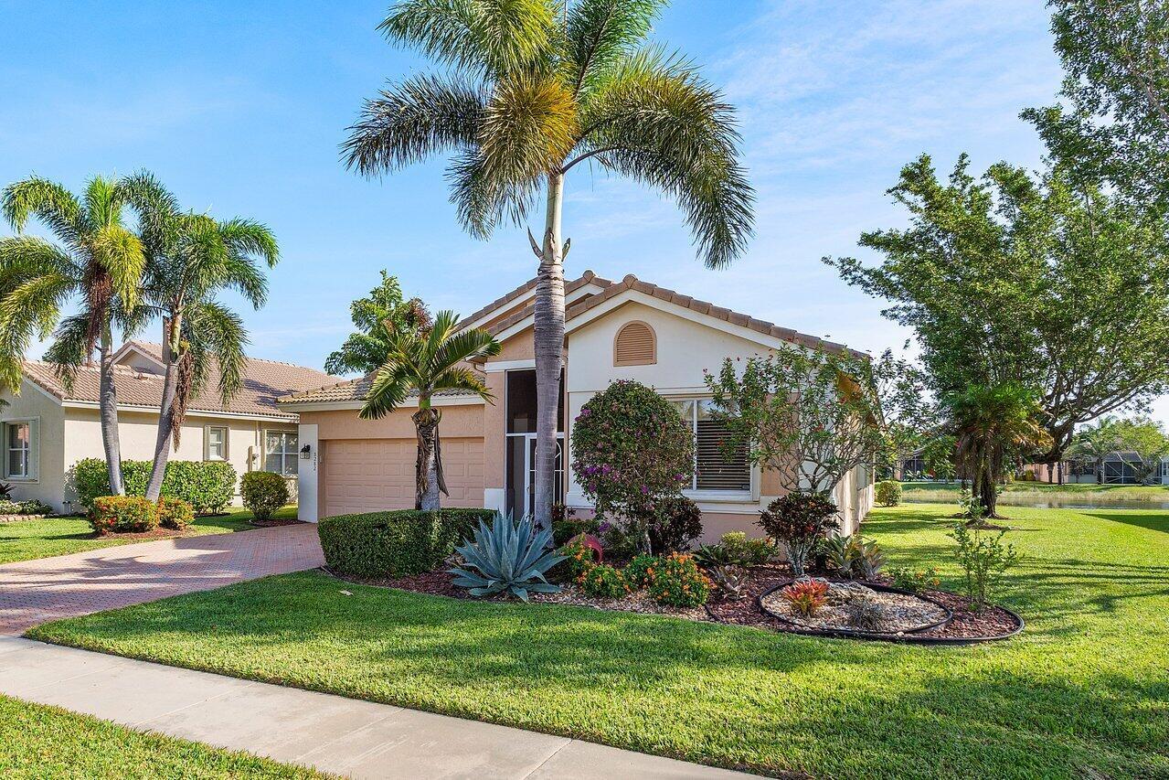 Beautiful lakefront 3/2 single family home w/ two car garage in highly sought after Venetian Isles. This move-in ready home features an open floor plan w/ tile and laminate flooring throughout, an eat-in kitchen with wood cabinets, granite countertops, stainless steel appliances, and a center island, accordion shutters, custom closets, large private laundry room, screened in front patio, and a lovely & spacious screened back patio w/ serene lake views. Property is available furnished or unfurnished. Premier 55+ community w/ resort style amenities including a full-service restaurant, library, arts and crafts rooms, an amazing new social hall w/ theatre, fitness center, yoga, aerobics, weight training and so much more! Outdoor Olympic pool, jacuzzi, pickleball, tennis, bocce ball and more!