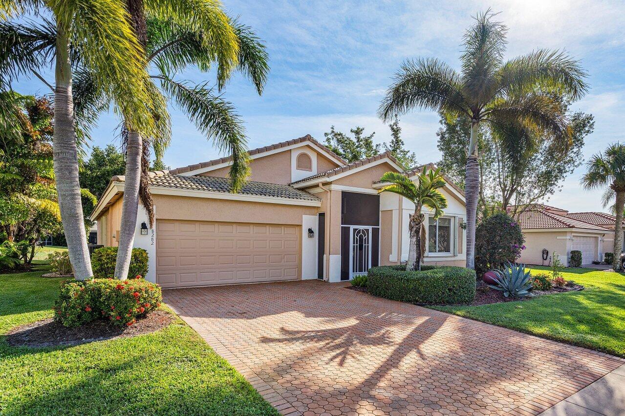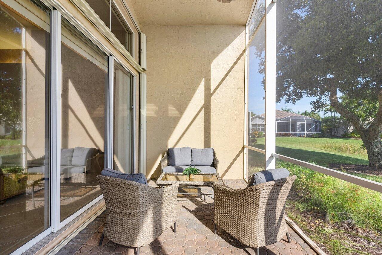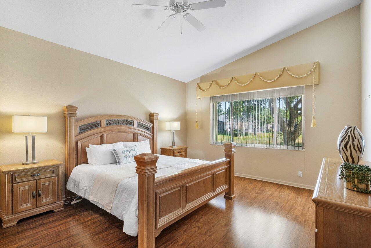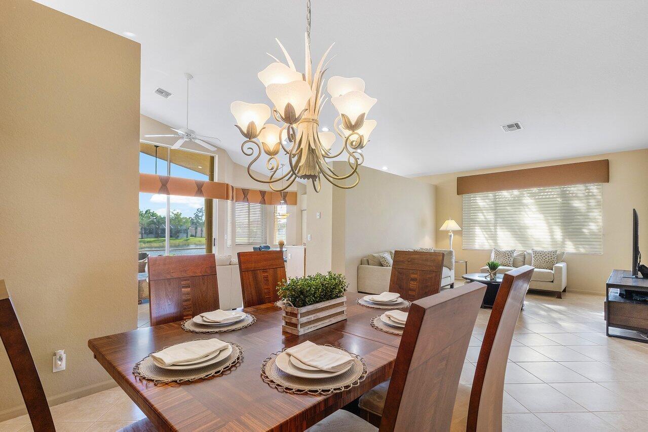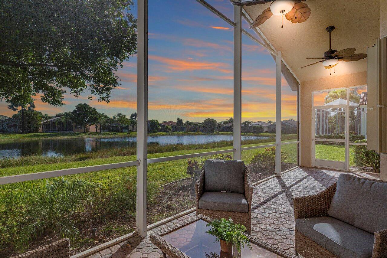 Beautiful lakefront 3/2 single family home w/ two car garage in highly sought after Venetian Isles. This move-in ready home features an open floor plan w/ tile and laminate flooring throughout, an eat-in kitchen with wood cabinets, granite countertops, stainless steel appliances, and a center island, accordion shutters, custom closets, large private laundry room, screened in front patio, and a lovely & spacious screened back patio w/ serene lake views. Property is available furnished or unfurnished. Premier 55+ community w/ resort style amenities including a full-service restaurant, library, arts and crafts rooms, an amazing new social hall w/ theatre, fitness center, yoga, aerobics, weight training and so much more! Outdoor Olympic pool, jacuzzi, pickleball, tennis, bocce ball and more!