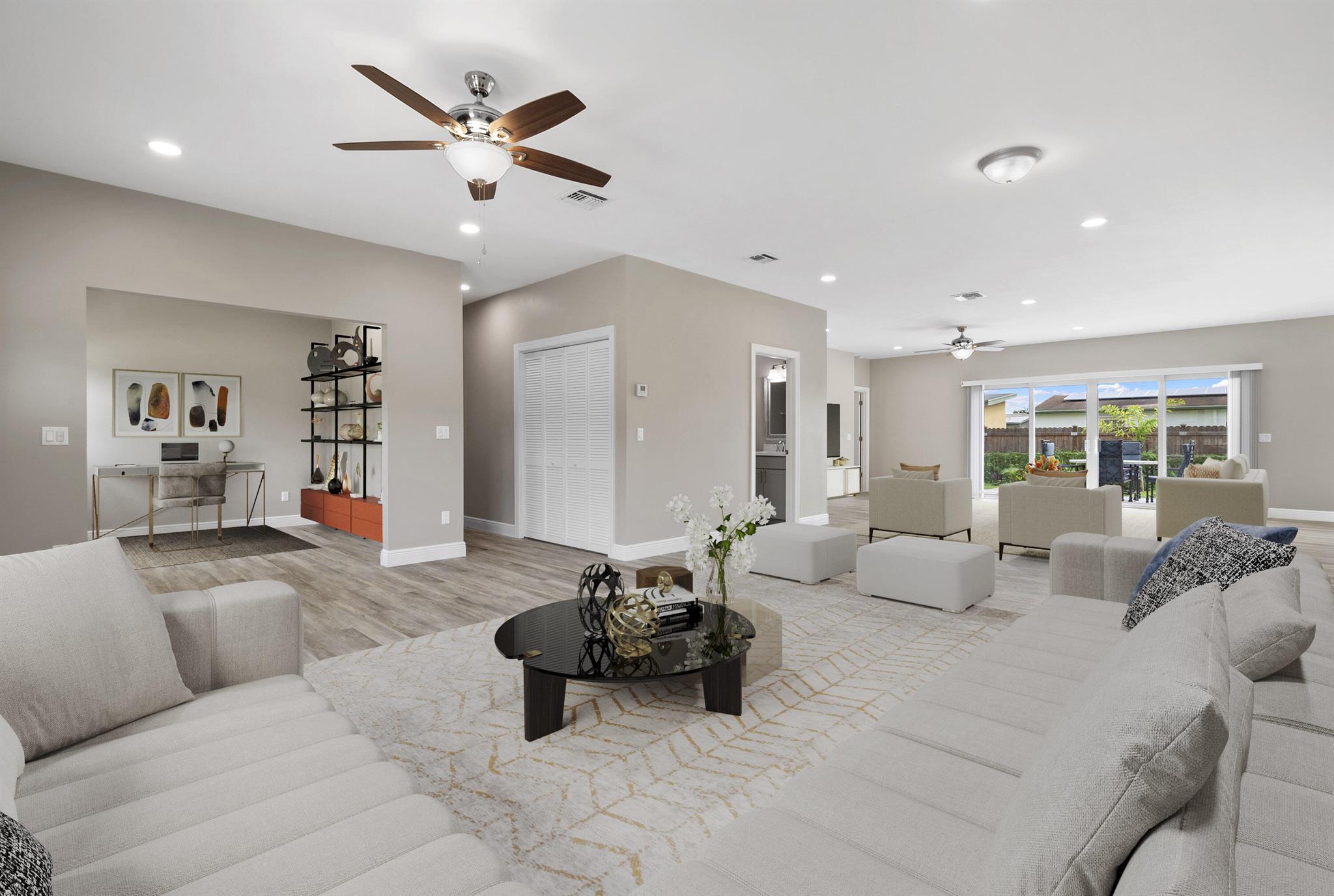 BRAND NEW CBS BUILT HOME, NO HOA! Located in the heart of Palm Beach Gardens! Welcome home to this beautifully crafted 3 bedroom plus den/office, 2.5 bath with laundry room and an oversized 1 car garage. Built with impact rated doors and windows throughout. Inside features include 9 ft ceilings, granite countertops, solid wood cabinets, custom wide moldings, luxury vinyl plank flooring, large walk in primary closet and more. This home is thoughtfully designed for both comfort and style with room for a pool and space for your boat or RV!