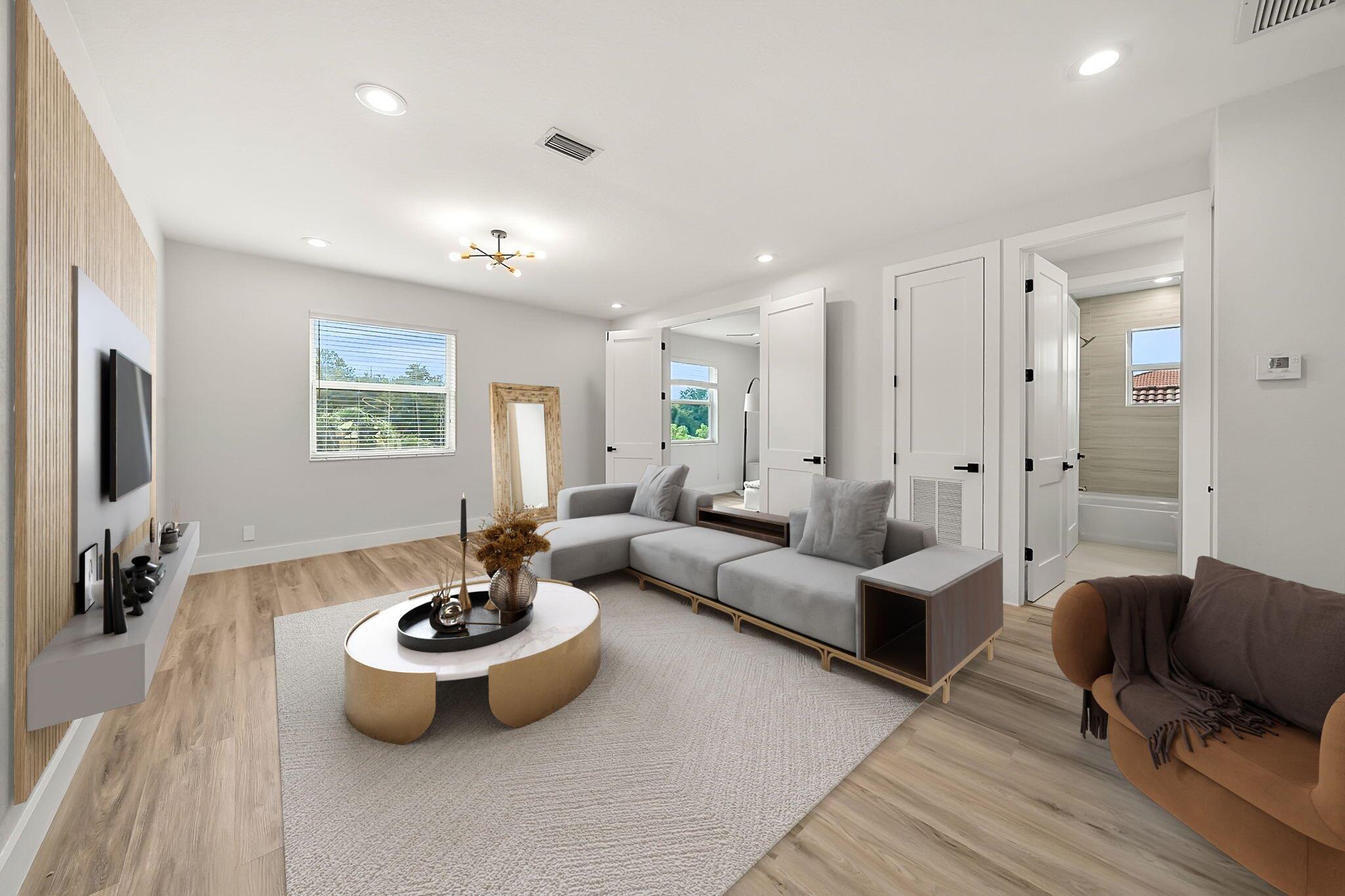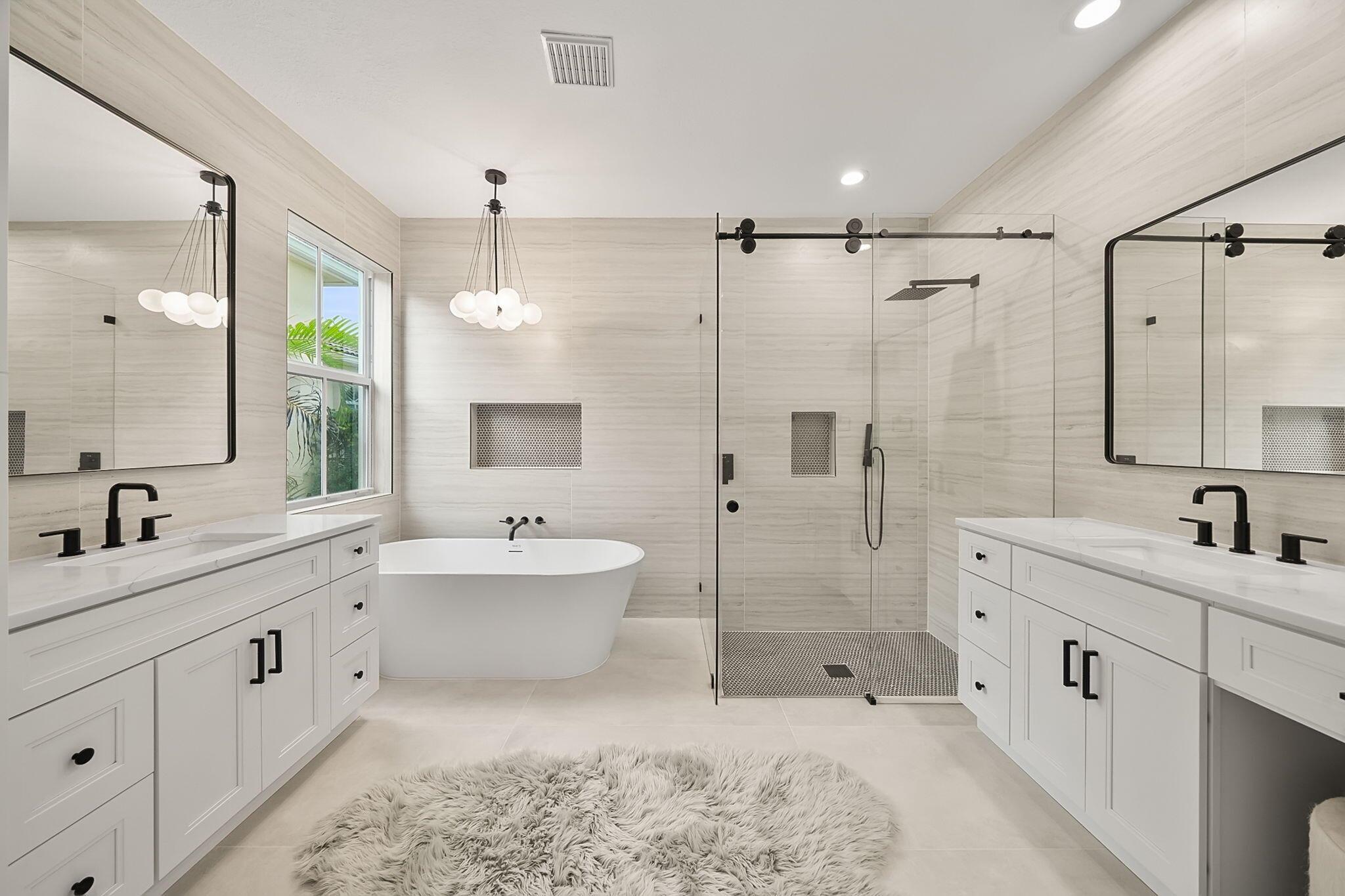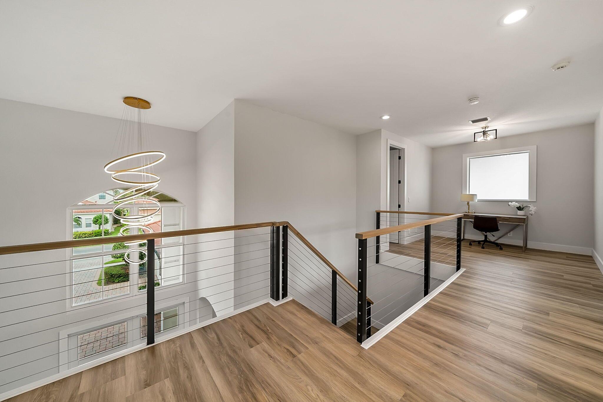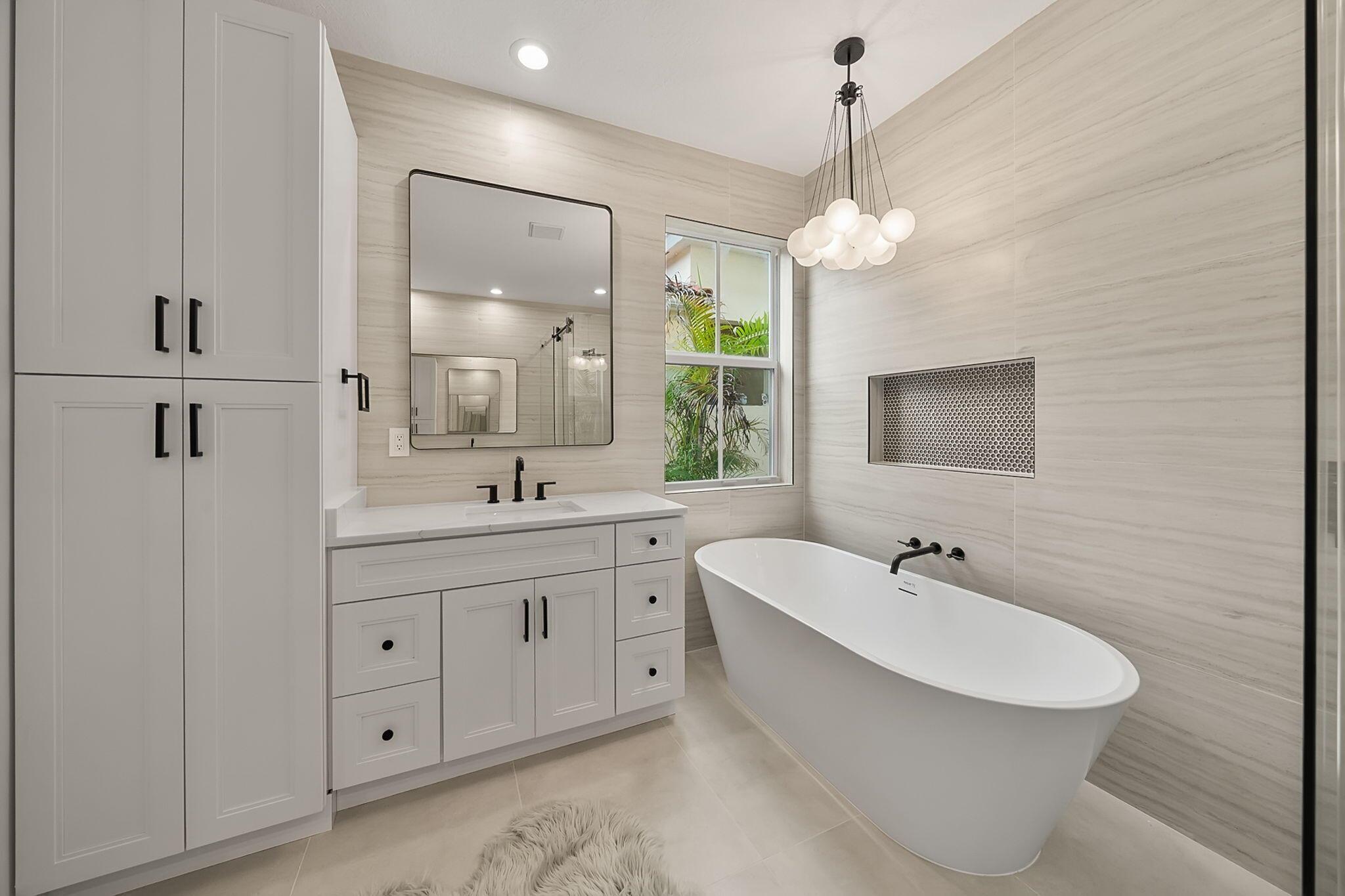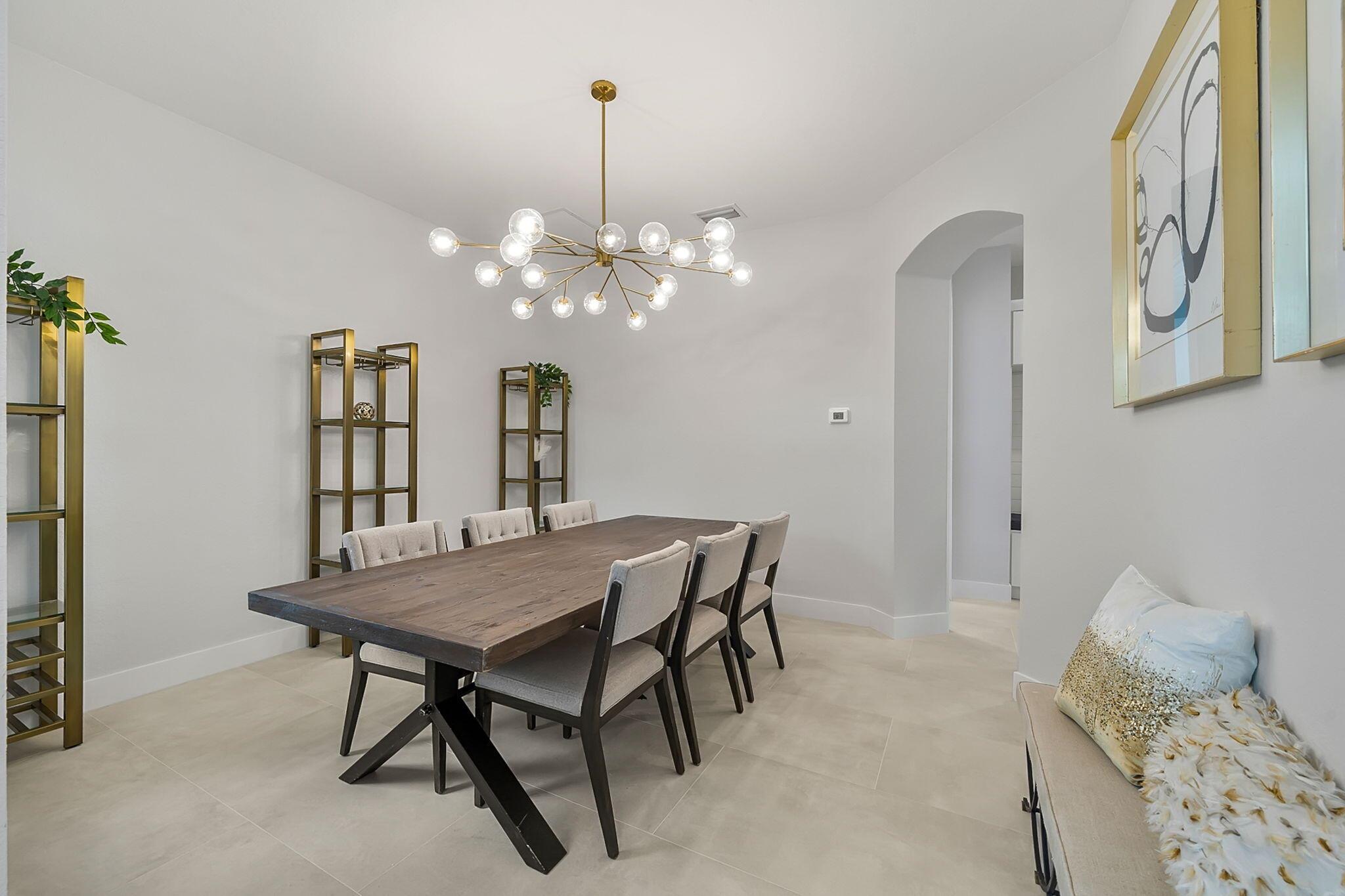 This stunning home will leave you speechless. Boasting 4 bedrooms, 3.5 bathrooms, 2 lofts, mudroom, pool and 3 car garage. This renovated lake view gem features an array of upgrades; pristine new kitchen with large quartz waterfall island, fresh spa-like bathrooms, decorative tile accent walls, 24×48 porcelain tile floors, modern interior doors, new light fixtures, plumbing fixtures, and chic stair railings. The 2 lofts offer versatile living spaces. The large covered patio overlooks a lake, perfect for enjoying serene evenings. With a new marble pool deck, pet friendly turf and impact windows, this oasis is truly one of a kind. Situated in the coveted neighborhood of Mirabella, you’re just moments away from top-rated schools, parks, and restaurants.