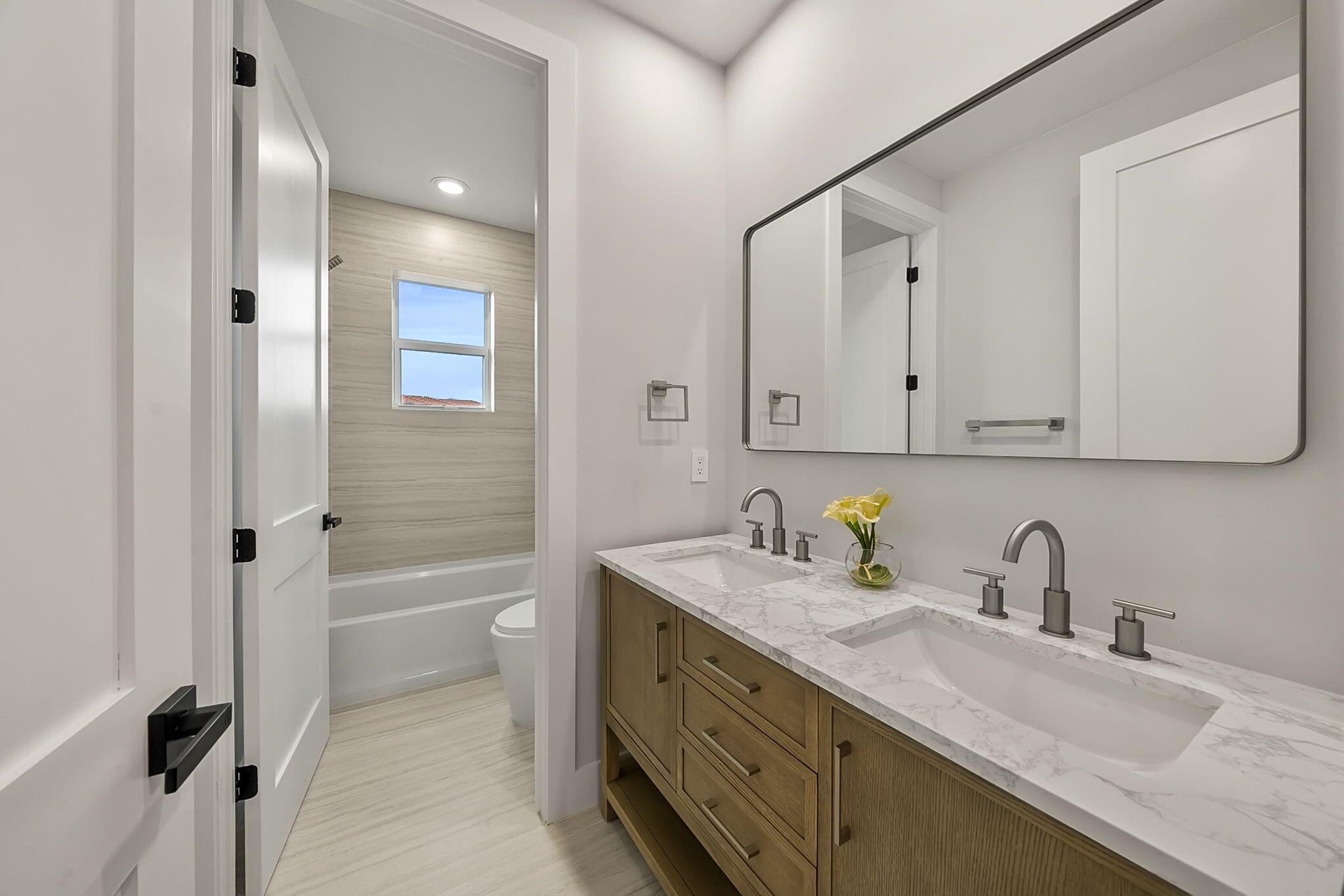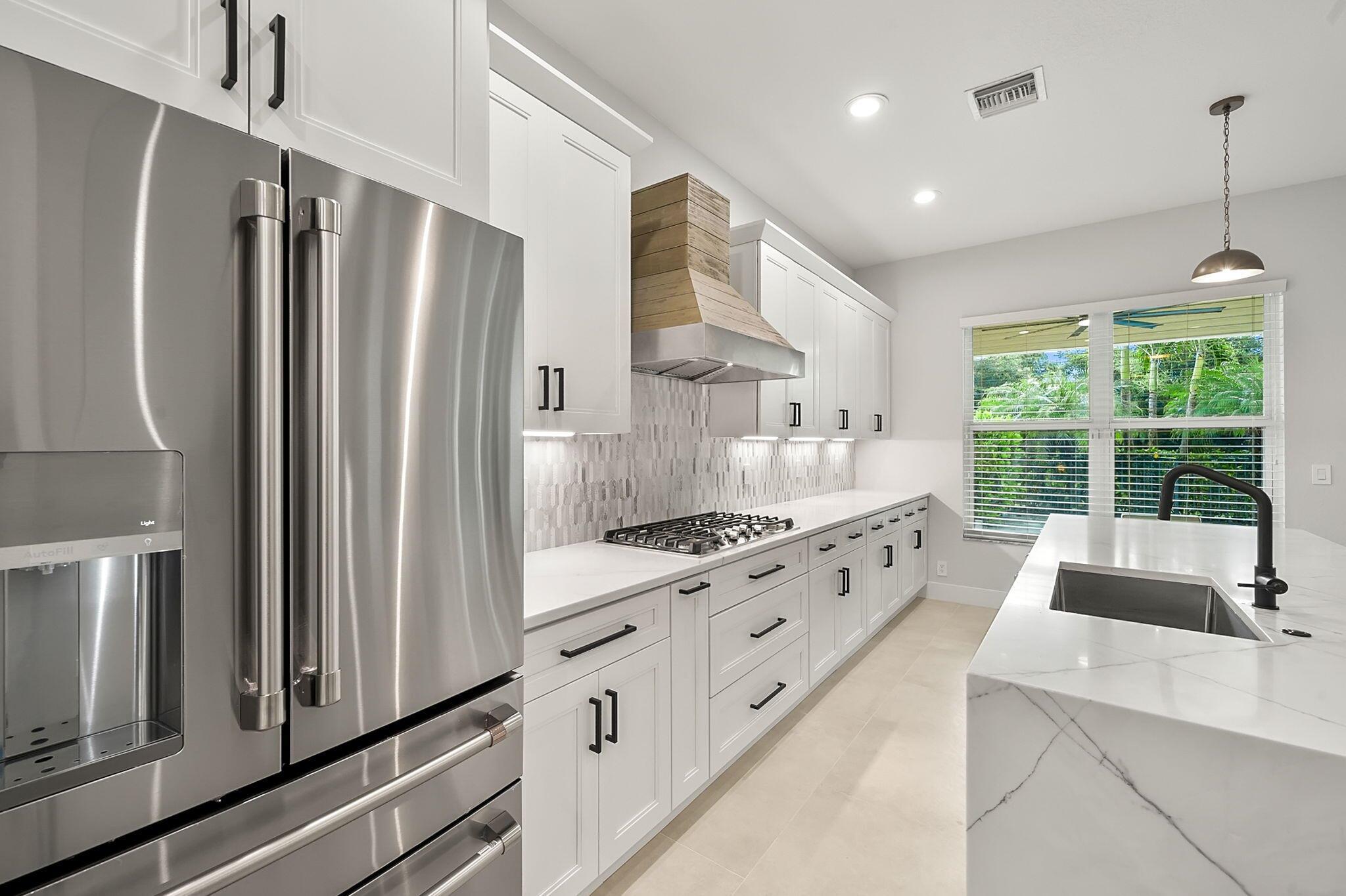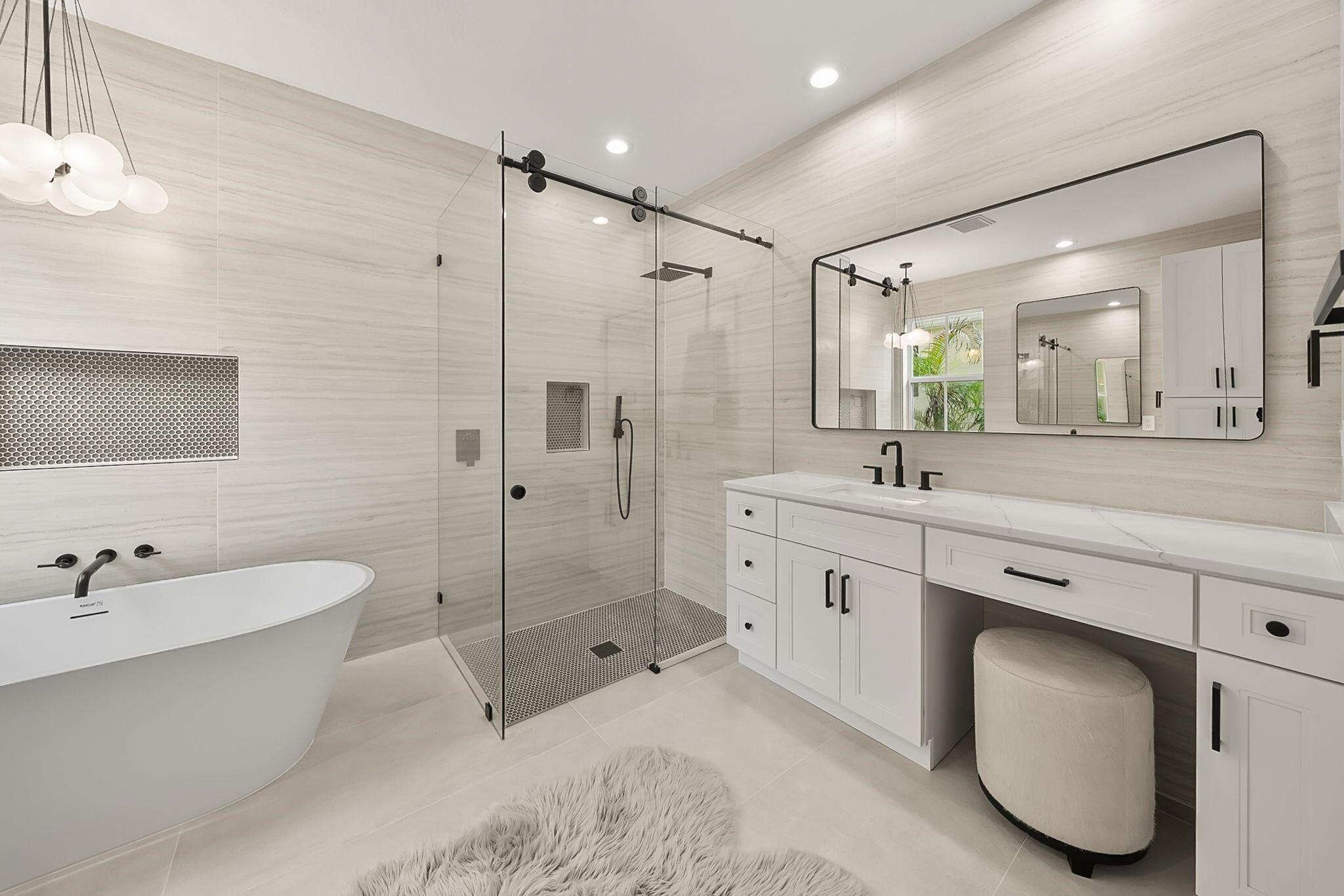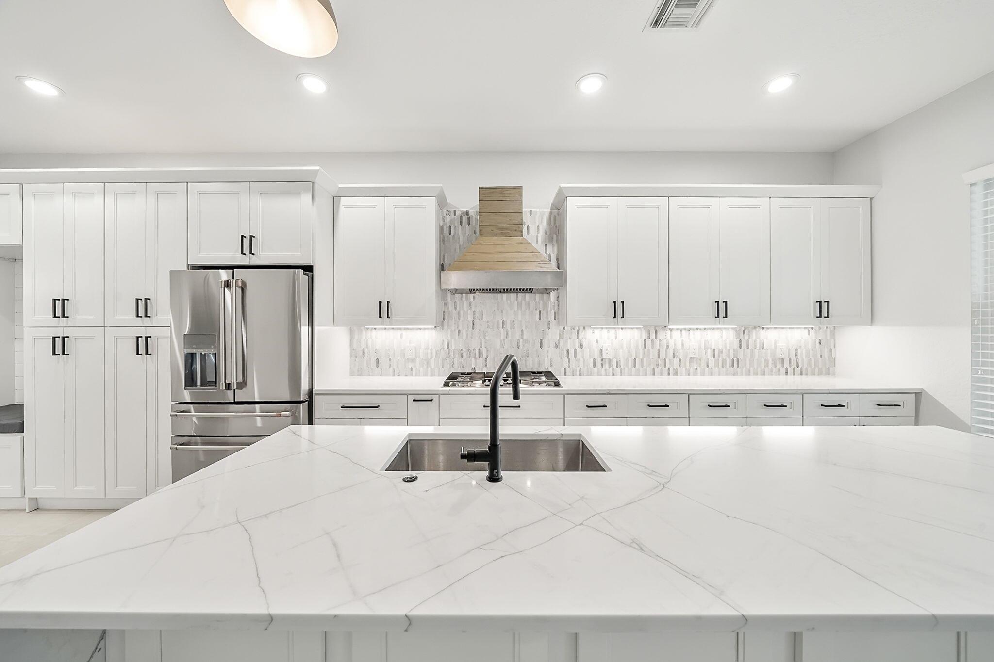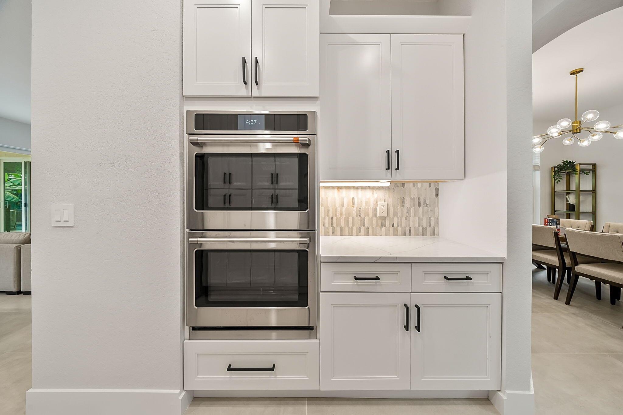 This stunning home will leave you speechless. Boasting 4 bedrooms, 3.5 bathrooms, 2 lofts, mudroom, pool and 3 car garage. This renovated lake view gem features an array of upgrades; pristine new kitchen with large quartz waterfall island, fresh spa-like bathrooms, decorative tile accent walls, 24×48 porcelain tile floors, modern interior doors, new light fixtures, plumbing fixtures, and chic stair railings. The 2 lofts offer versatile living spaces. The large covered patio overlooks a lake, perfect for enjoying serene evenings. With a new marble pool deck, pet friendly turf and impact windows, this oasis is truly one of a kind. Situated in the coveted neighborhood of Mirabella, you’re just moments away from top-rated schools, parks, and restaurants.