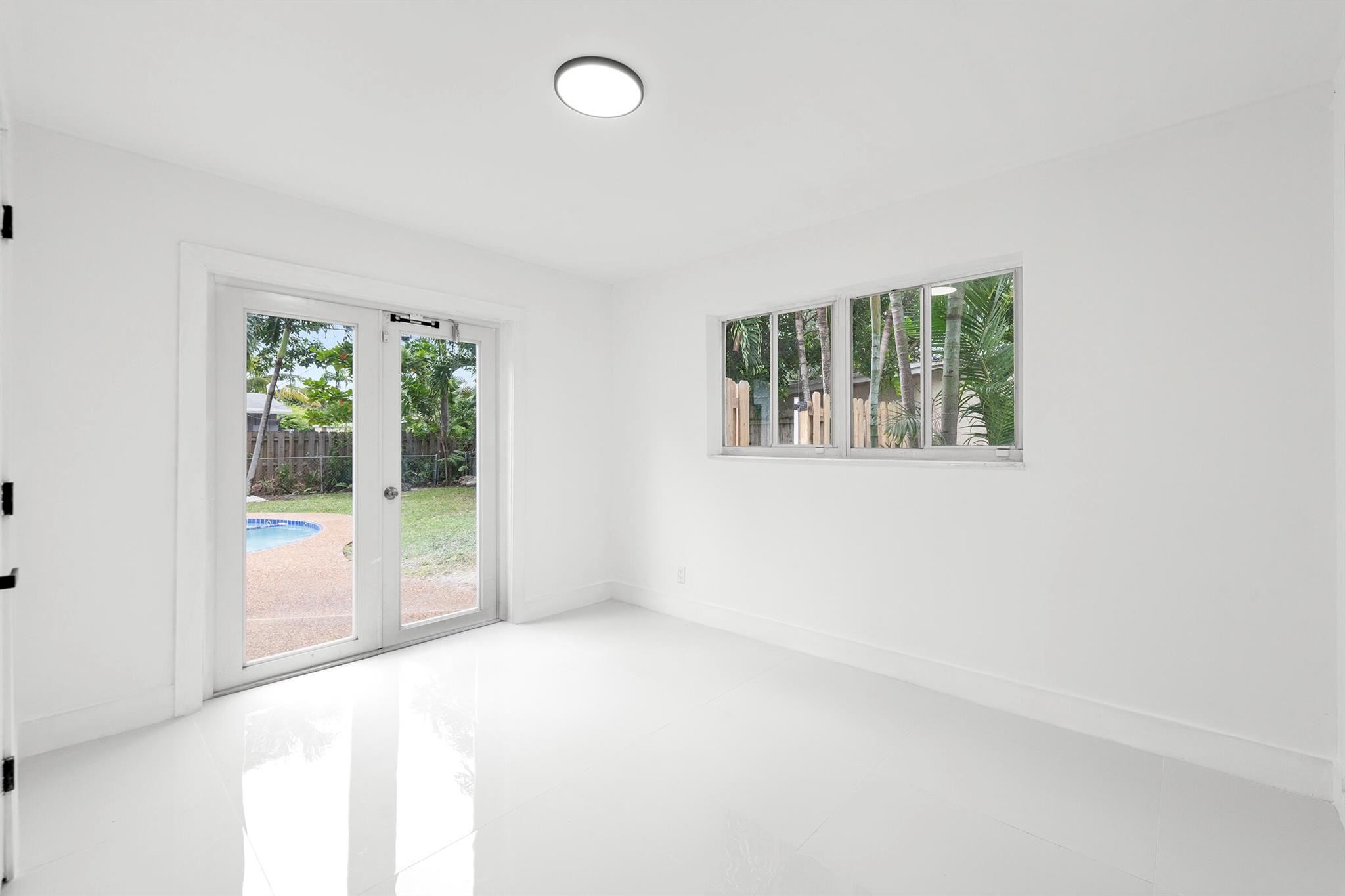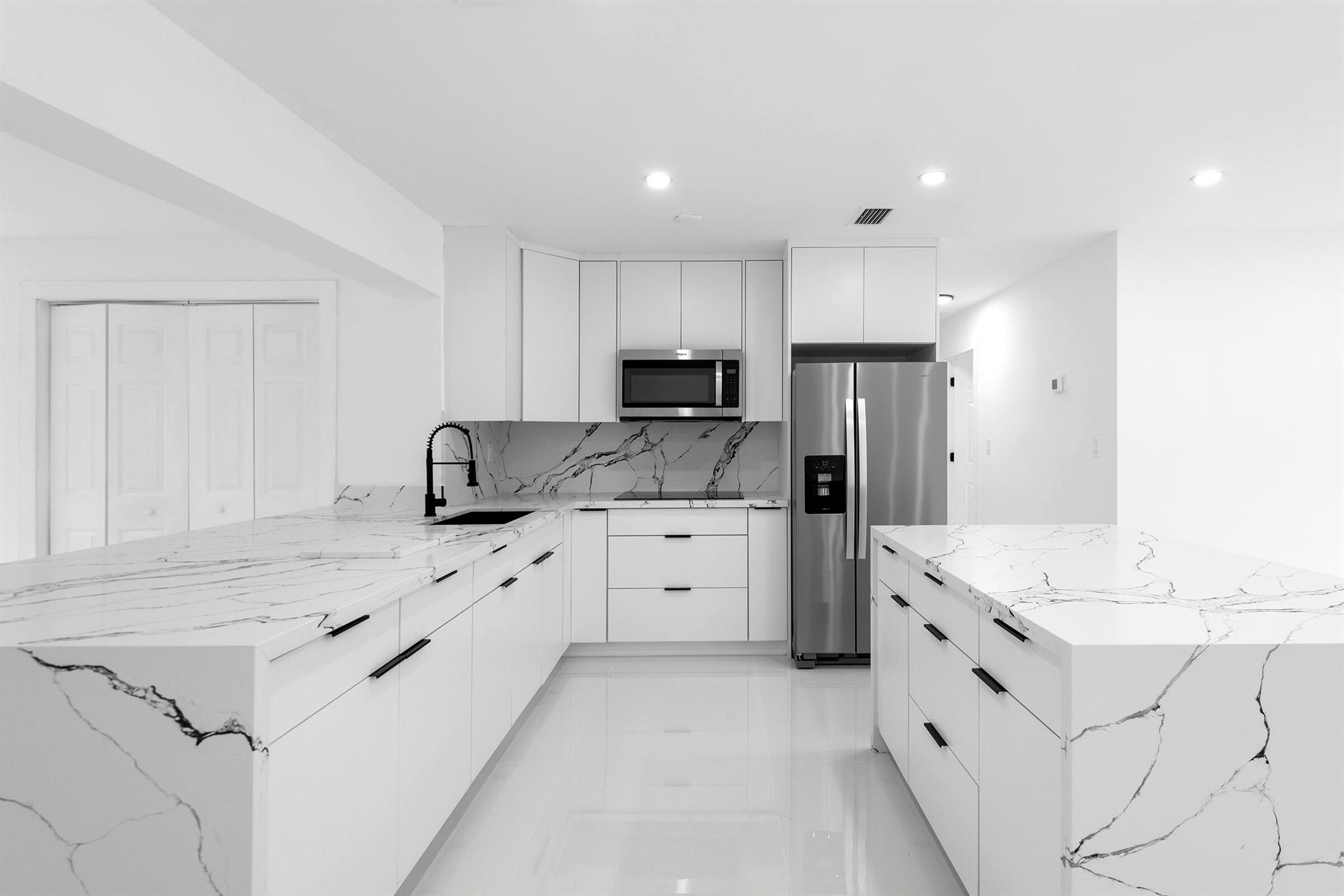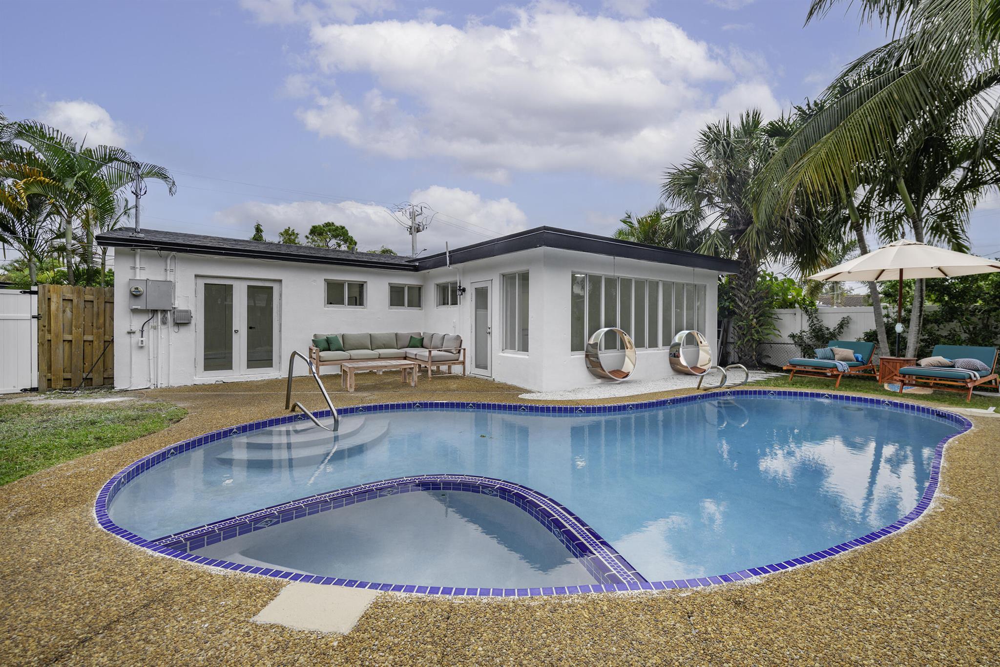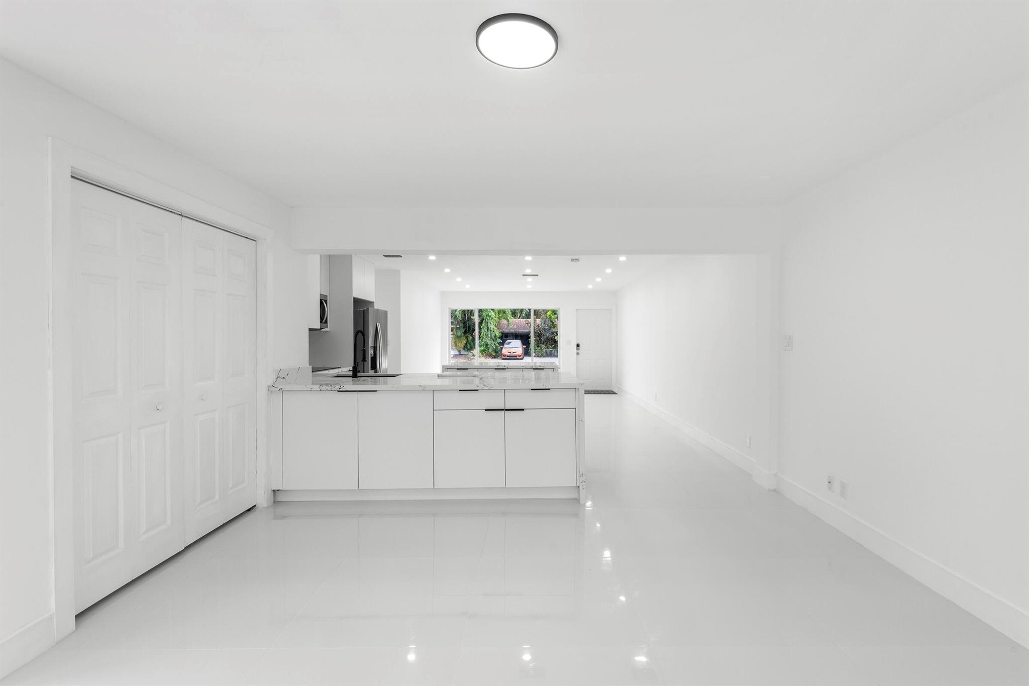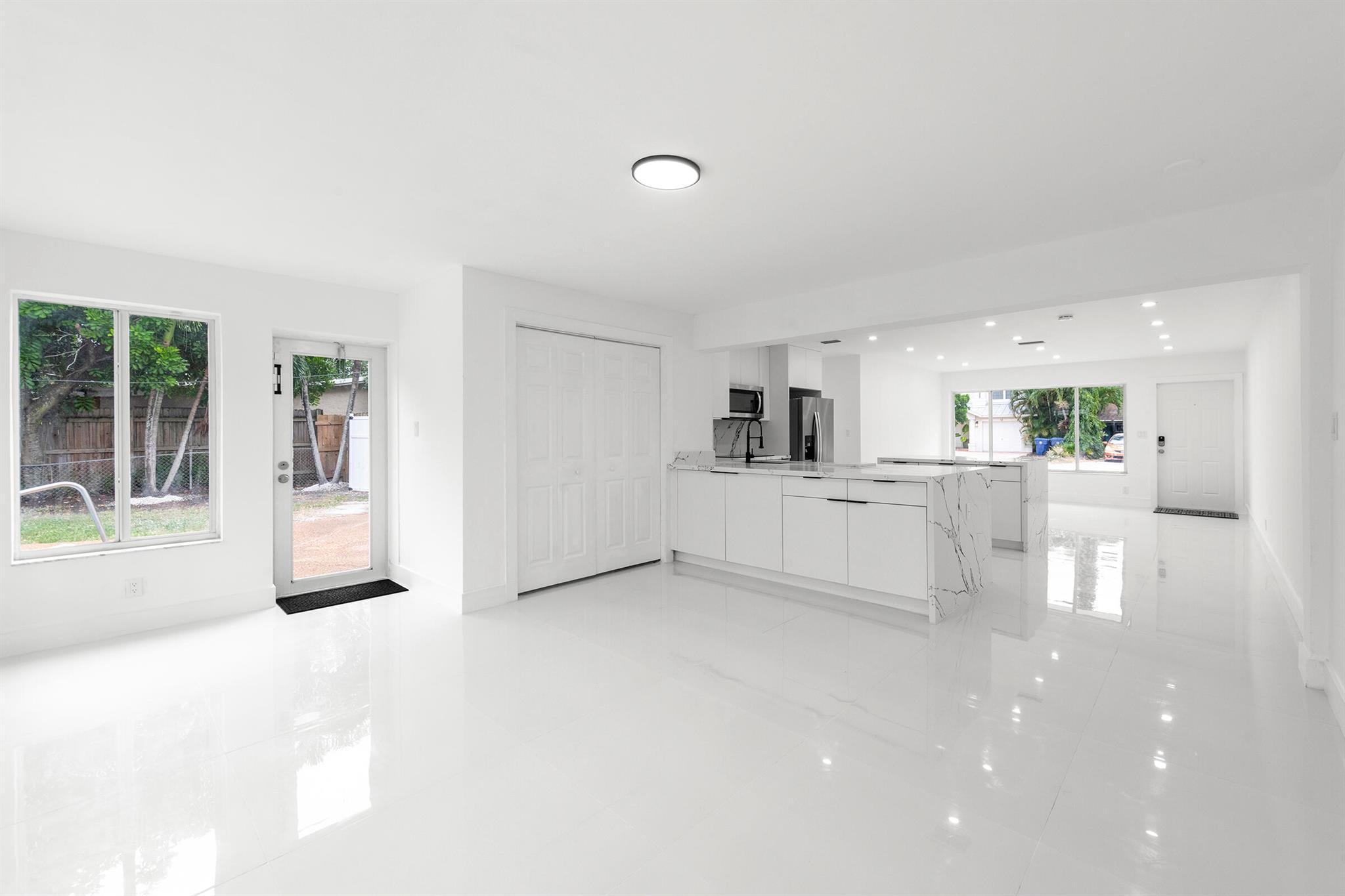 Discover this fully remodeled 3-bedroom, 2-bathroom home featuring a private pool and an open-concept design perfect for modern living. The chef’s kitchen boasts a central island and peninsula ideal for hosting friends and family, quartz countertops, sleek white gloss cabinets, and brand-new stainless steel appliances. The bathrooms have been completely updated with elegant floor-to-ceiling tiles, while the entire home features white porcelain flooring, creating a bright and welcoming atmosphere.Set on a spacious lot, the backyard is a true oasis with a cozy covered patio and a large pool, perfect for enjoying South Florida’s sunny climate year-round. Some pictures has been virtually staged.