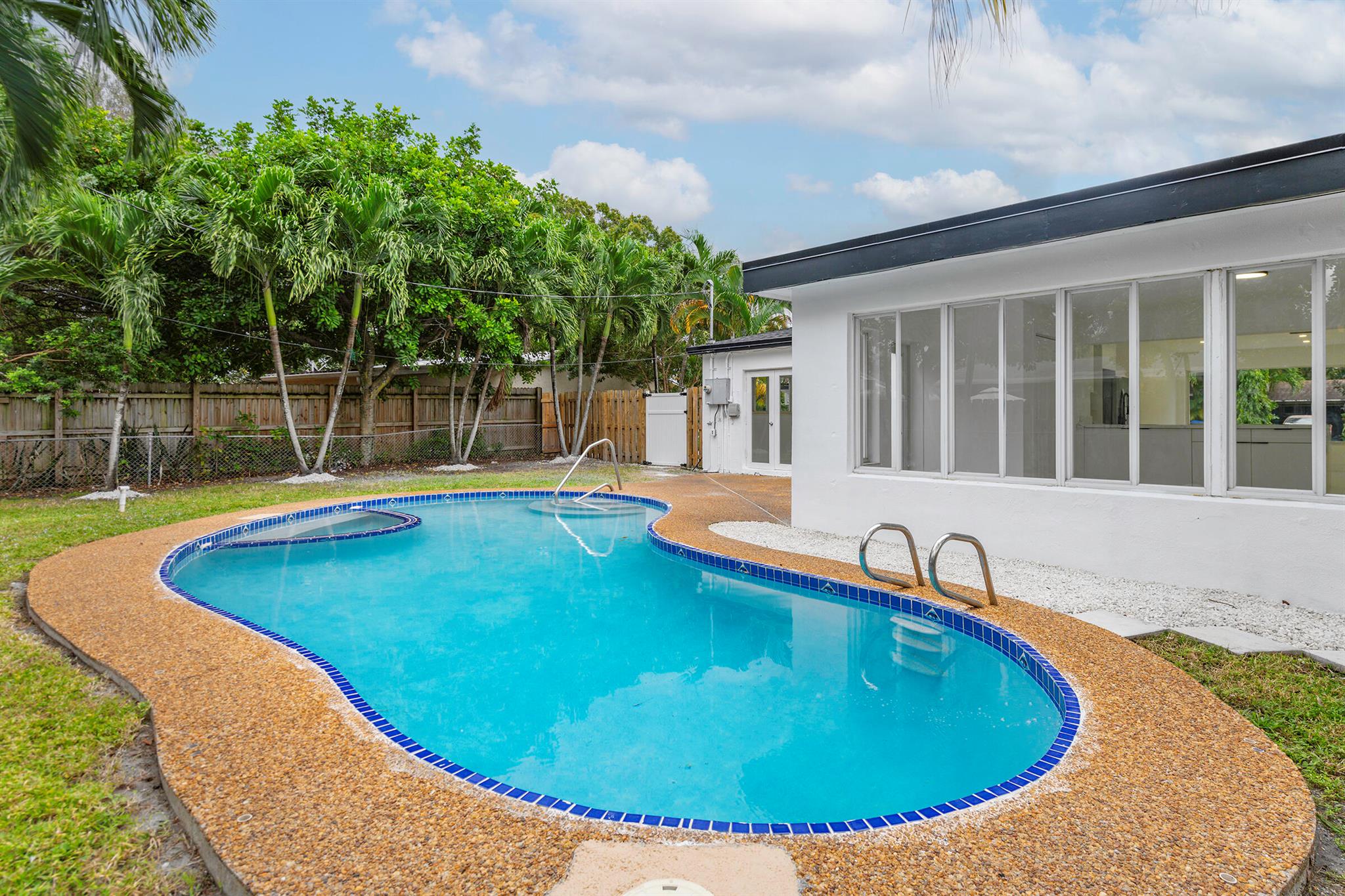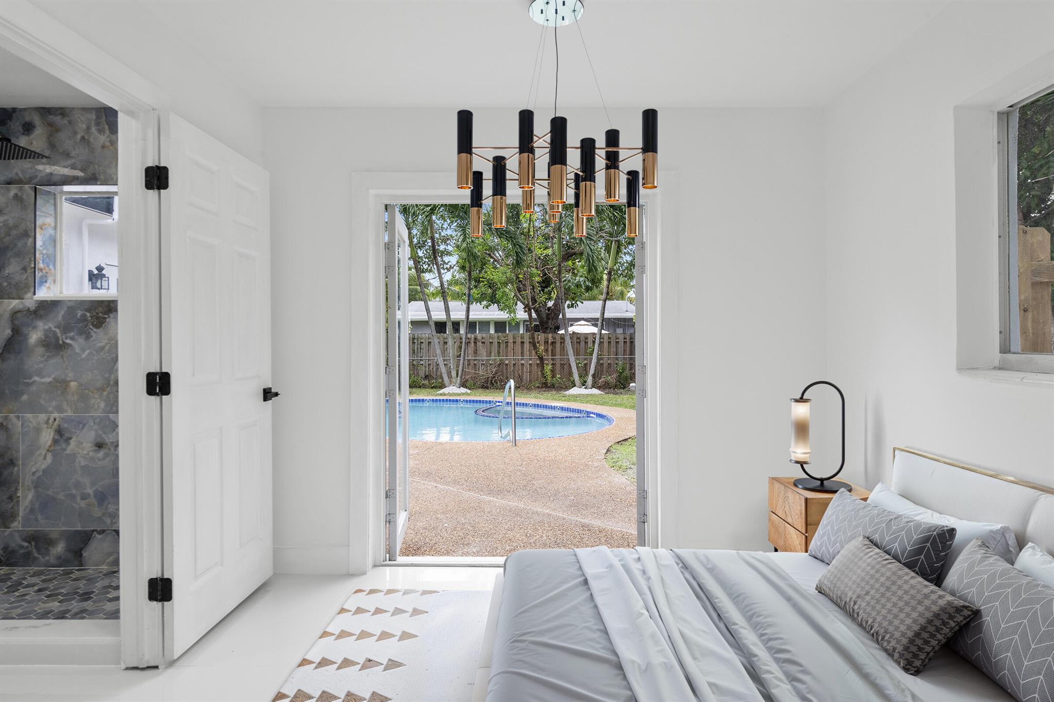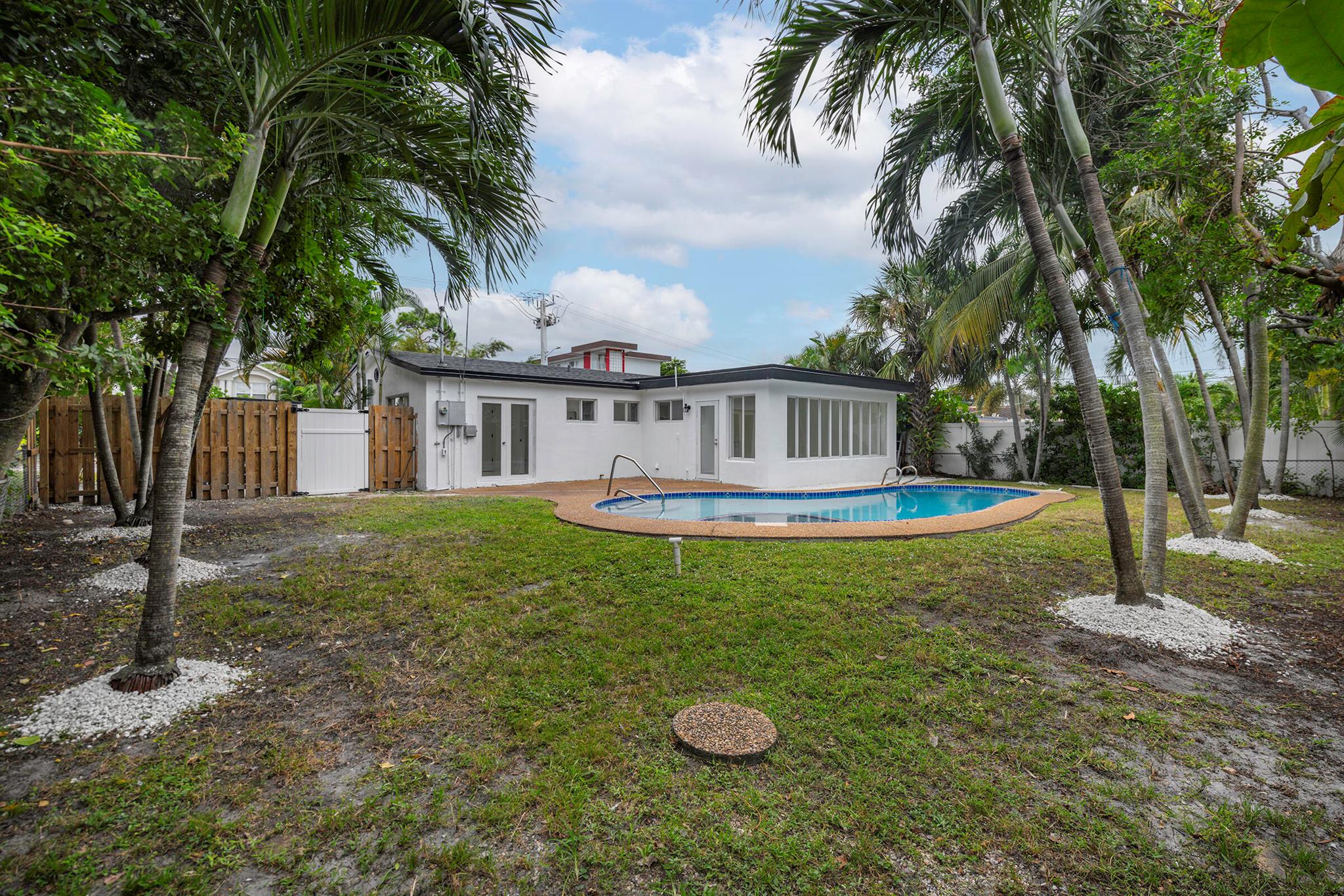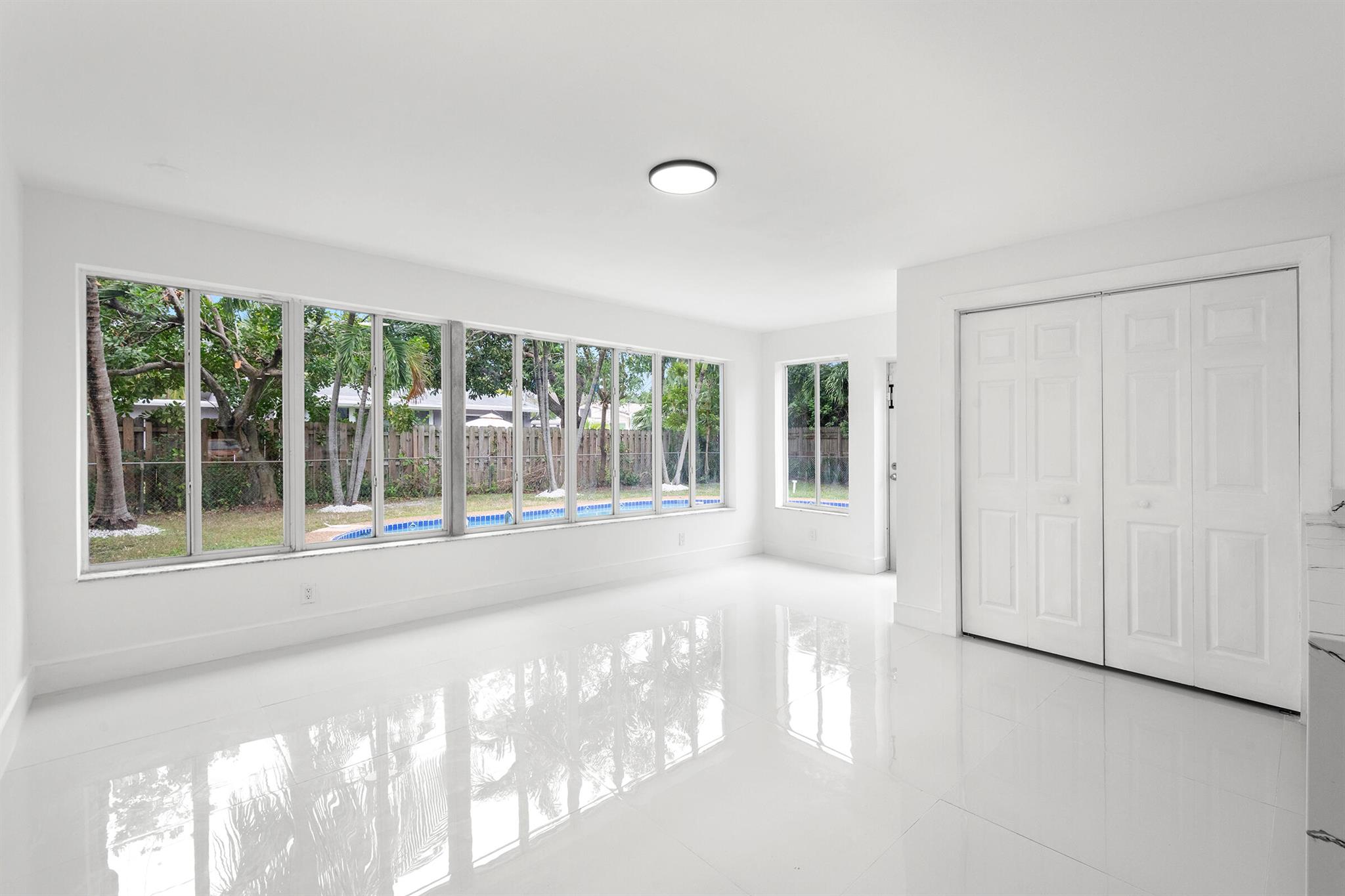 Discover this fully remodeled 3-bedroom, 2-bathroom home featuring a private pool and an open-concept design perfect for modern living. The chef’s kitchen boasts a central island and peninsula ideal for hosting friends and family, quartz countertops, sleek white gloss cabinets, and brand-new stainless steel appliances. The bathrooms have been completely updated with elegant floor-to-ceiling tiles, while the entire home features white porcelain flooring, creating a bright and welcoming atmosphere.Set on a spacious lot, the backyard is a true oasis with a cozy covered patio and a large pool, perfect for enjoying South Florida’s sunny climate year-round. Some pictures has been virtually staged.