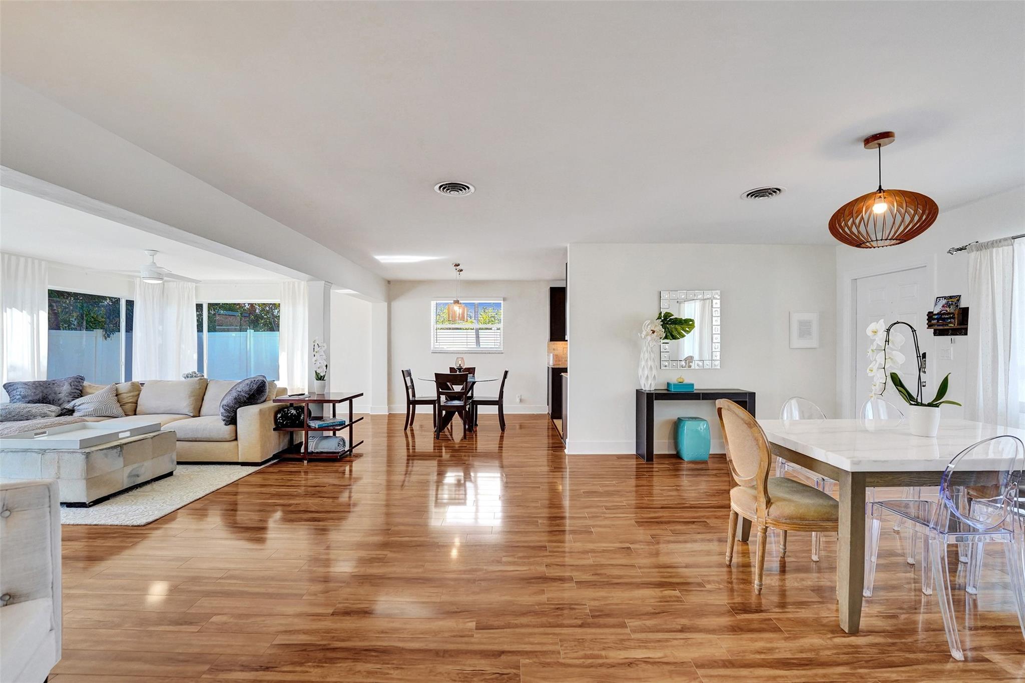 Modern 2-bedroom, 2-bath home in sought-after Imperial Point. Open great room for relaxing or entertaining, plus a chef’s kitchen with espresso cabinets, granite countertops, and stainless steel appliances. Spacious bedrooms, including a primary with ensuite bath. Hallway walk-in closet and oversized laundry room for extra storage. Fully fenced backyard, ideal for gatherings and pets. A/C (2016), tankless water heater, new electric panel, tile roof with 10+ years of life. Partial impact windows/doors. No HOA or rental/pet restrictions. Walkable neighborhood with sidewalks, street lamps, and less than 2 miles to the beach. Close to top schools: Westminster Academy, Pine Crest, McNab Elementary, and a short drive to Cardinal Gibbons High School. Close to U.S. 1 and easy access to I-95.