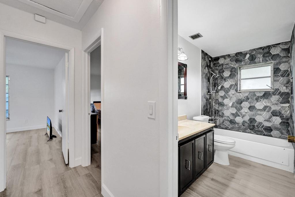 Welcome to this newly renovated 2-bedroom, 2-bathroom home nestled in a quaint neighborhood! You’ll love the beautiful brand new laminate floors that flow thru out the space, enhancing the inviting atmosphere. The exterior features a charming, freshly painted blue hue, while the interior has also been updated w/ a fresh coat of paint. This home boasts a NEW ROOF for added peace of mind and includes a conveniently located laundry room. The spacious family room & dining area are well-separated, providing an ideal layout for entertaining. The well-sized kitchen features a breakfast counter, perfect for casual dining or morning coffee. Don’t miss your chance to make this lovely home your own! Close to hwys, shopping, community park, dining & grocery. Easy to show! Contact me to show today!