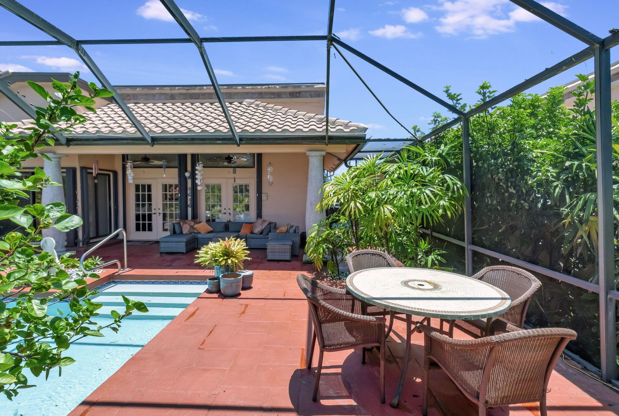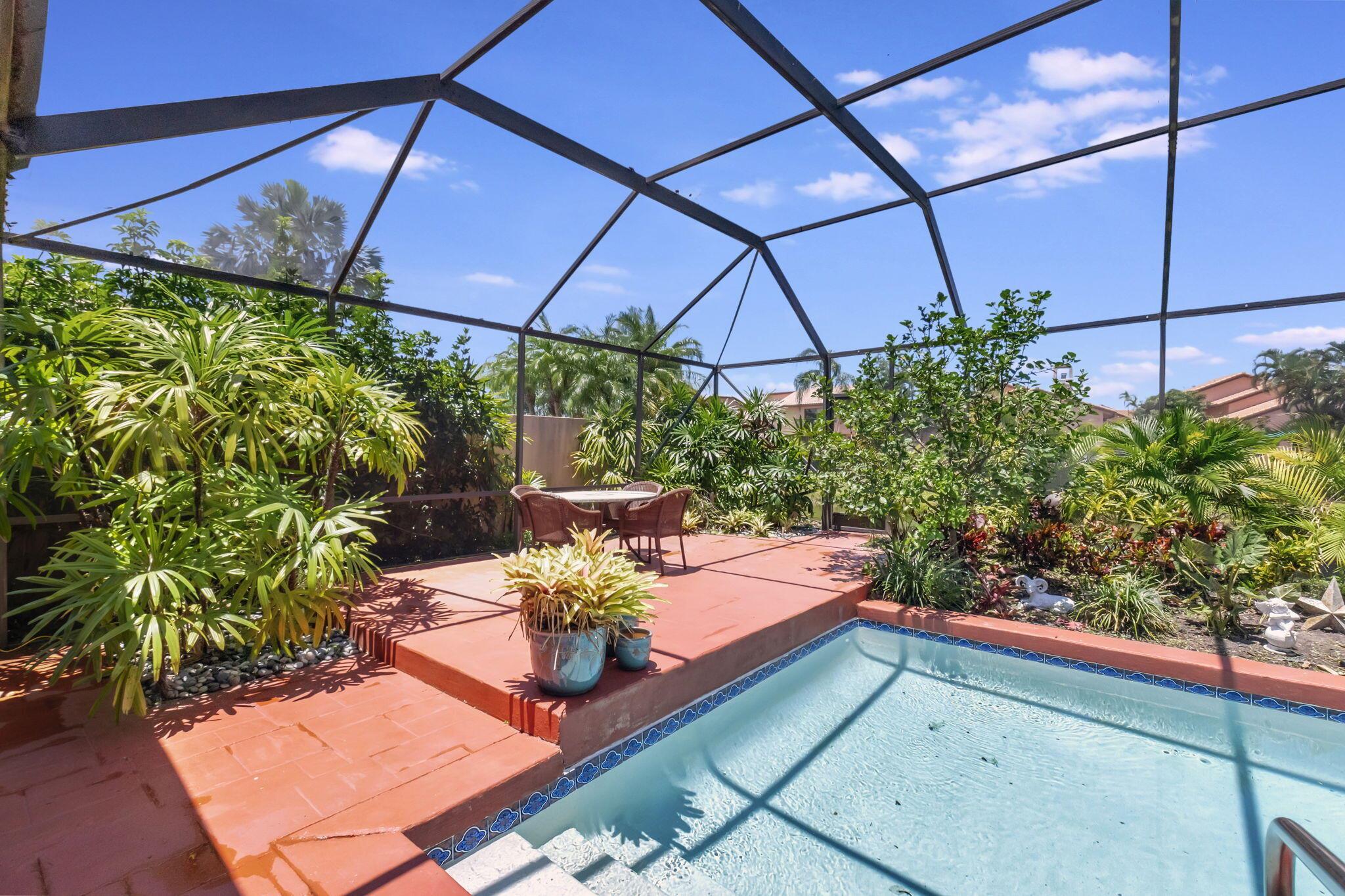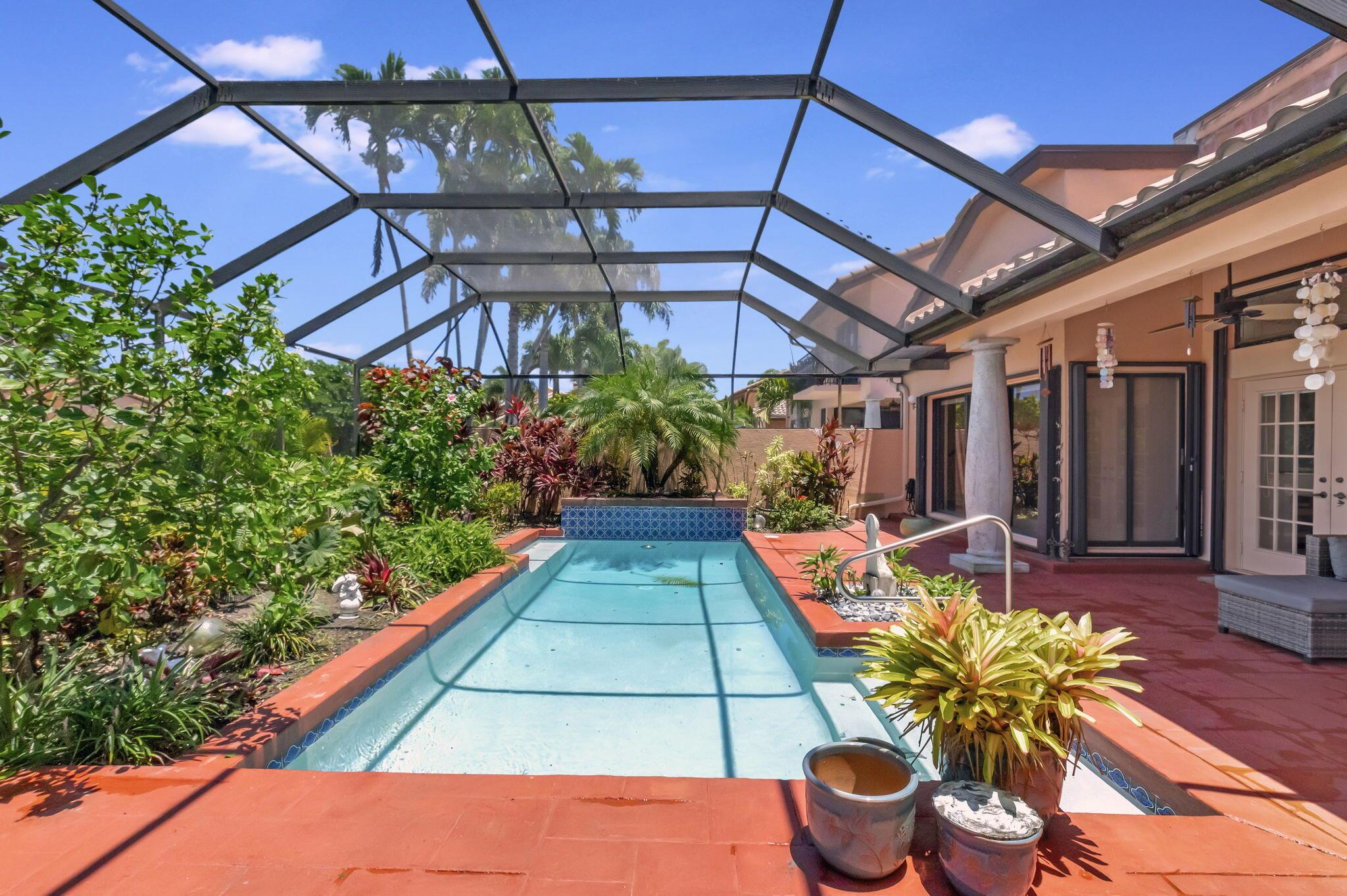 Welcome home to this stunning residence that offers privacy, luxury, and beauty located within the prestigious gated community of Boca Pointe. This immaculate single family home with 2 car garage features 2 bedrooms, 2 bathrooms and encompasses over 1800 Sqft of luxurious living space. Designed for entertaining, the open floor plan with volume ceilings effortlessly connects indoor and outdoor spaces, providing panoramic views of the new heated private pool and jasmine, hibiscus, and gardenias that decorate the backyard landscaping. The kitchen stands as a culinary haven, equipped with new stainless appliances, complemented by exquisite wood custom cabinetry. The spacious primary suite beckons with, new motorized blackout shade system, new carpeting, and ensuite bath with new jacuzzi tub