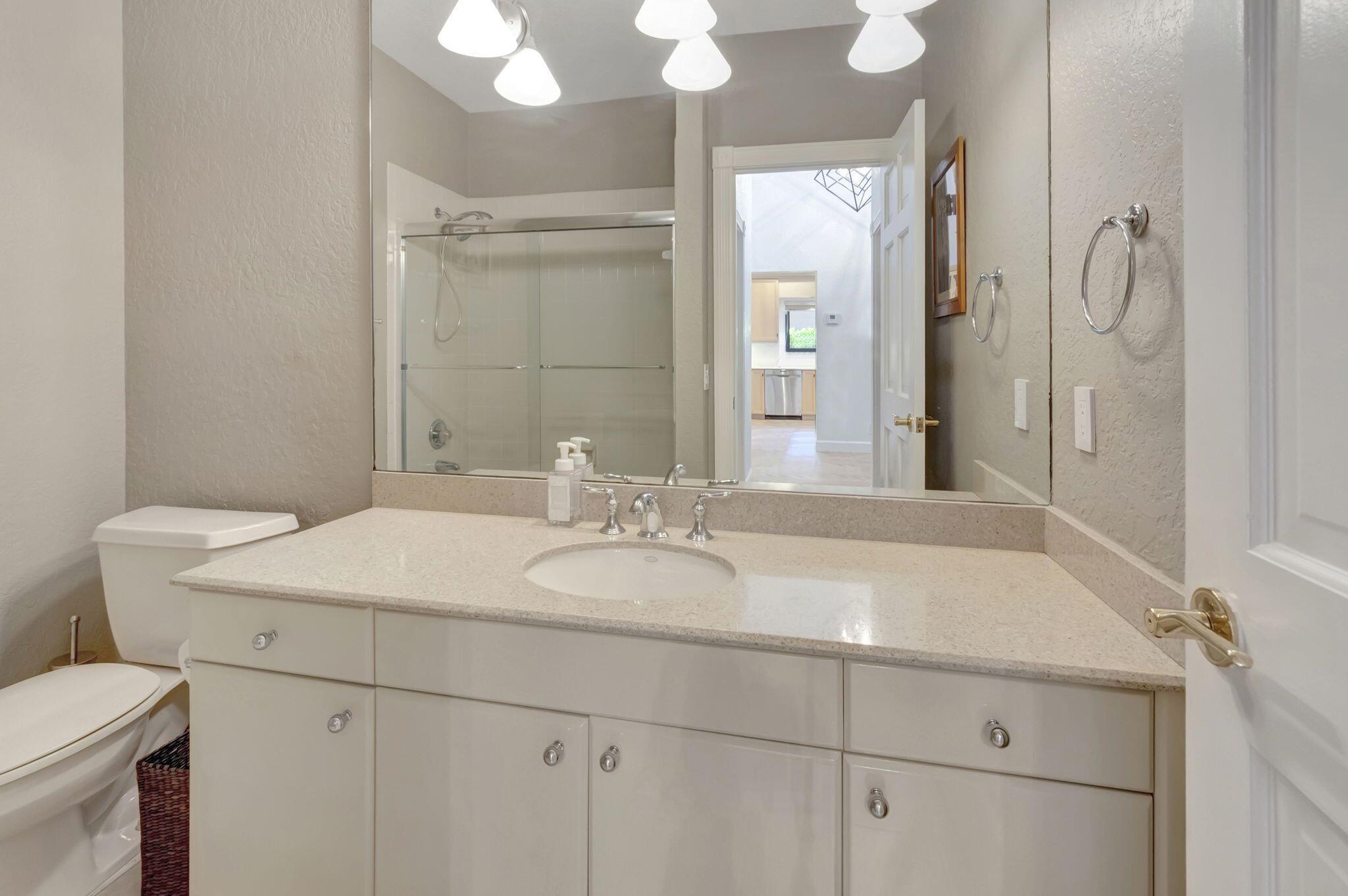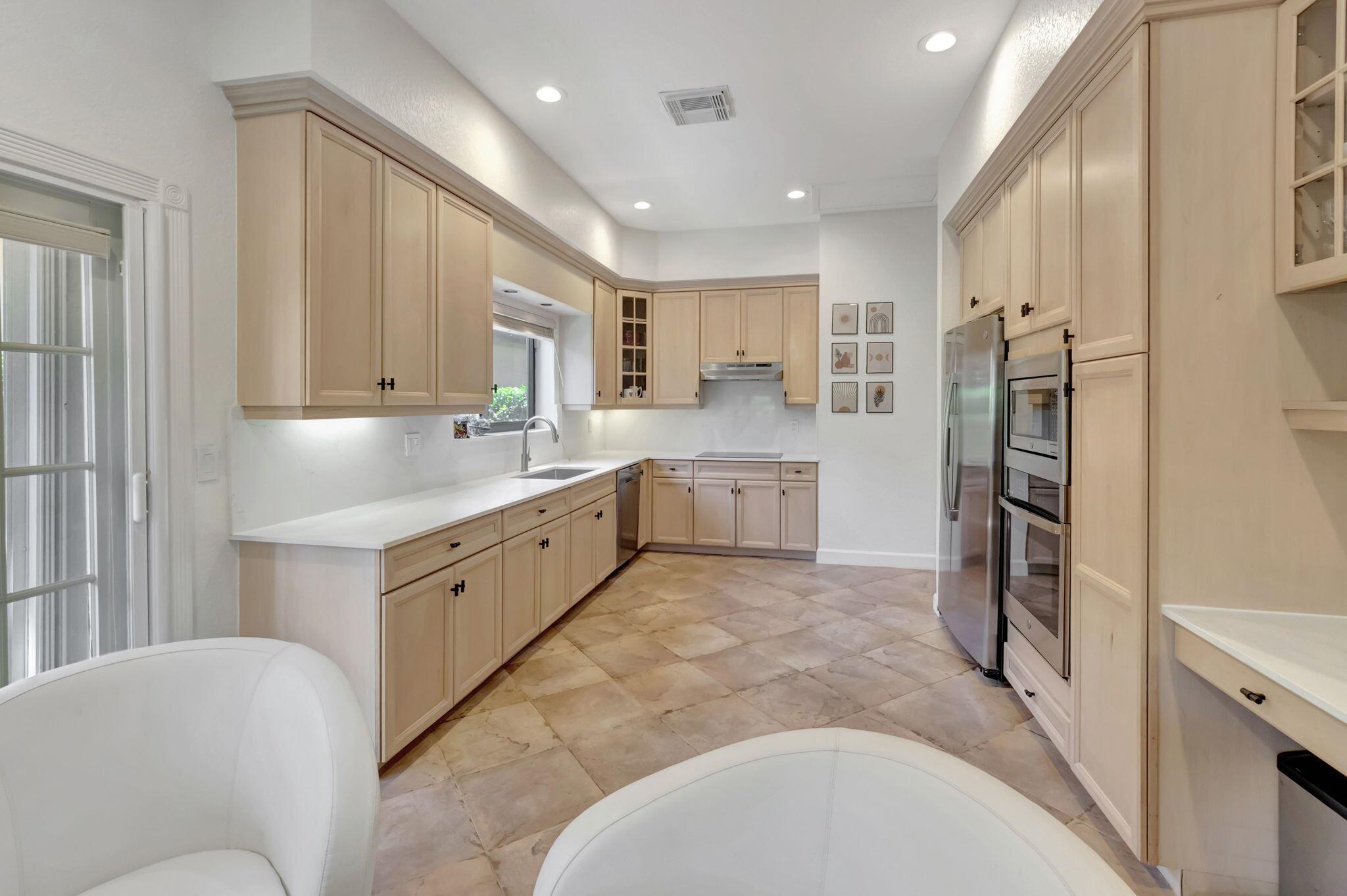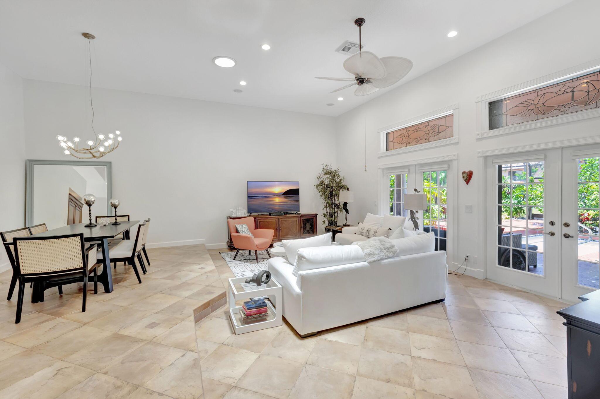 Welcome home to this stunning residence that offers privacy, luxury, and beauty located within the prestigious gated community of Boca Pointe. This immaculate single family home with 2 car garage features 2 bedrooms, 2 bathrooms and encompasses over 1800 Sqft of luxurious living space. Designed for entertaining, the open floor plan with volume ceilings effortlessly connects indoor and outdoor spaces, providing panoramic views of the new heated private pool and jasmine, hibiscus, and gardenias that decorate the backyard landscaping. The kitchen stands as a culinary haven, equipped with new stainless appliances, complemented by exquisite wood custom cabinetry. The spacious primary suite beckons with, new motorized blackout shade system, new carpeting, and ensuite bath with new jacuzzi tub