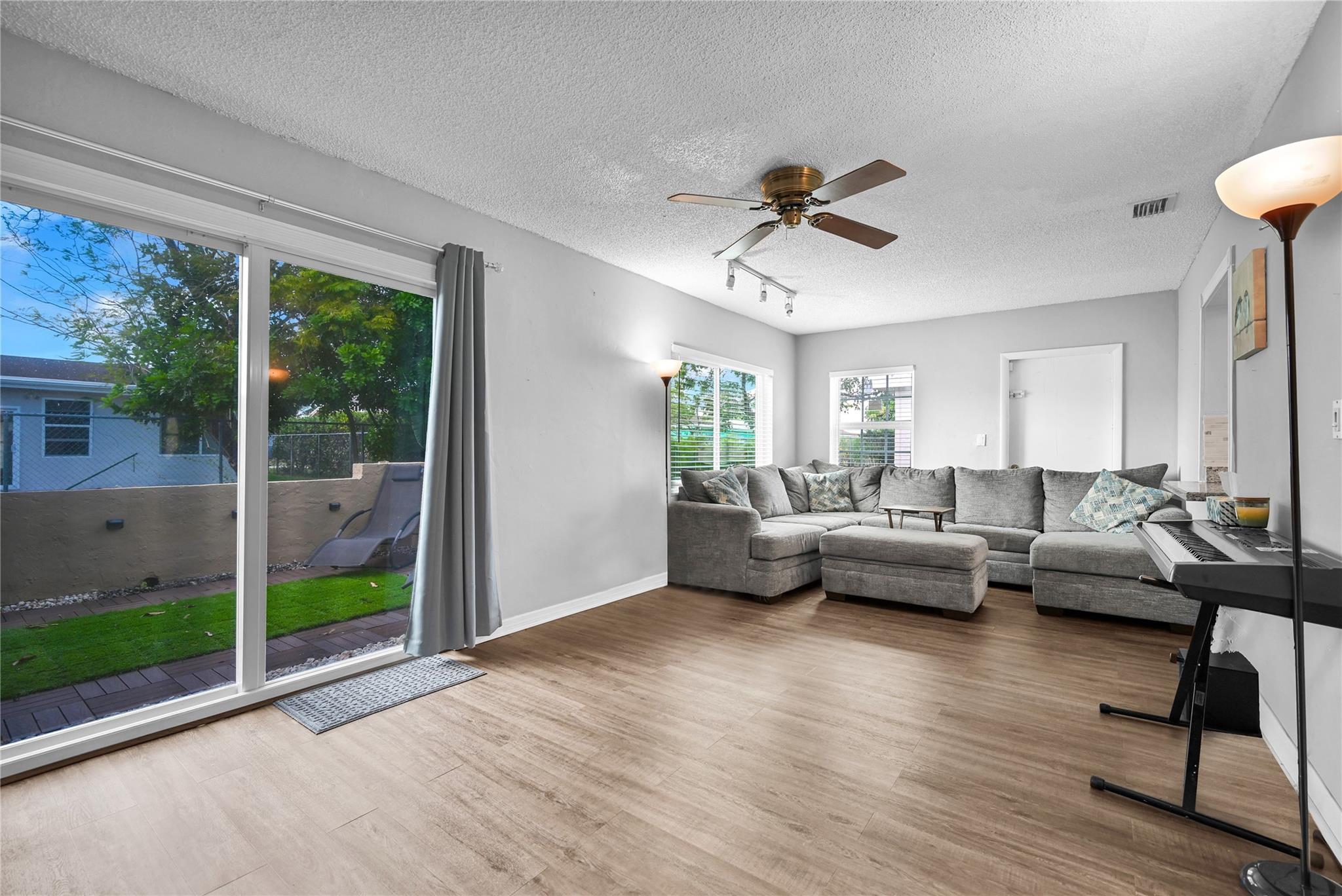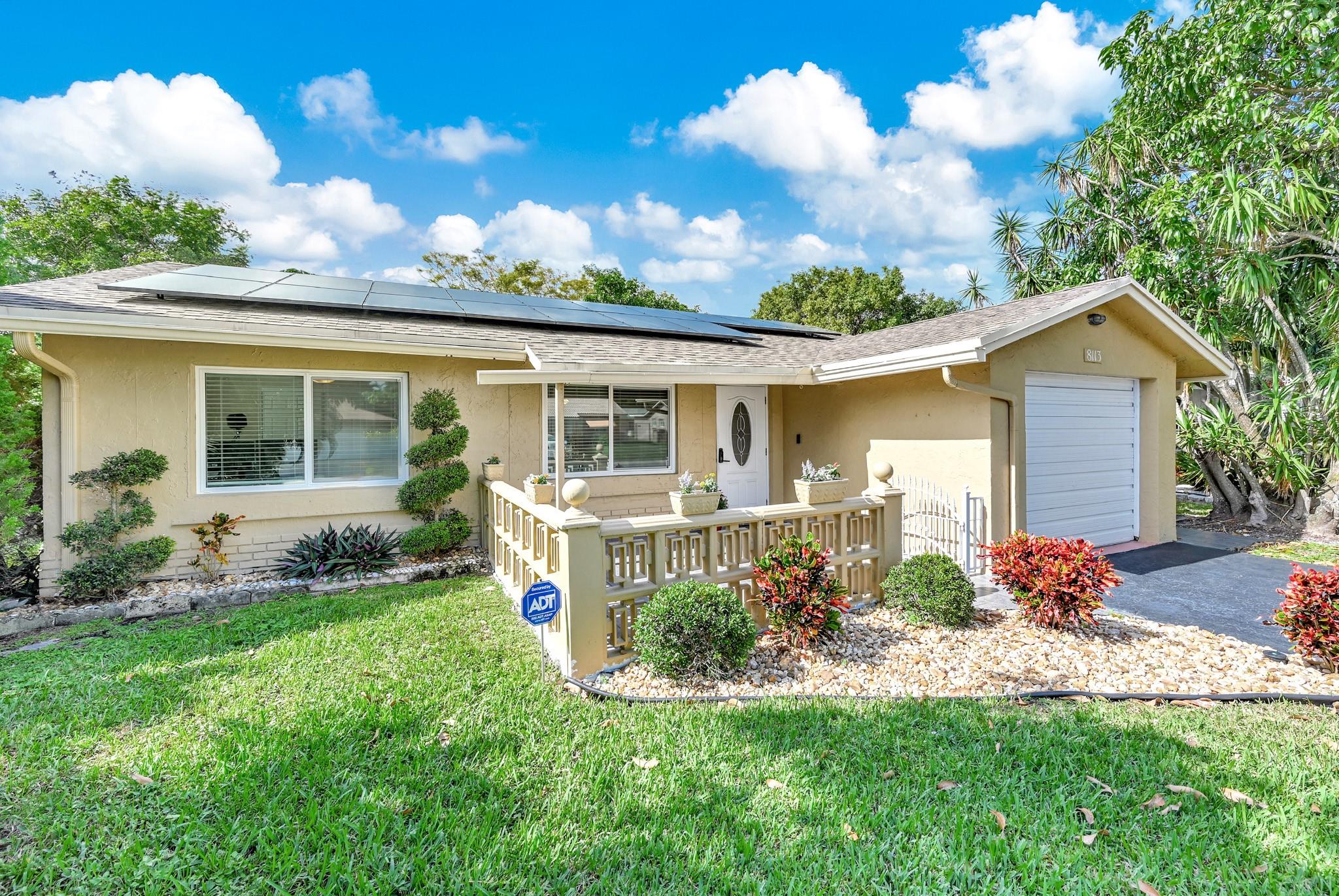 Step inside this beautiful Tamarac home with all the upgrades. The family room can easily be converted into 3rd bedroom or den. The kitchen features many modern updates, stainless steel appliances, a new refrigerator, granite countertops, and updated cabinets with plenty of storage. The spacious living space is filled with plenty of natural light. The recently remodeled guest bathroom adds a touch of sophistication. As you step outside you are greeted with a beautifully remodeled back patio, the perfect spot to enjoy your morning coffee or host weekend BBQs with friends and family. The backyard is a peaceful retreat, shaded by trees. Additional upgrades: New roof 2022, Low HOA, New flooring 2020, High impact windows 2021, Solar panels 2022.