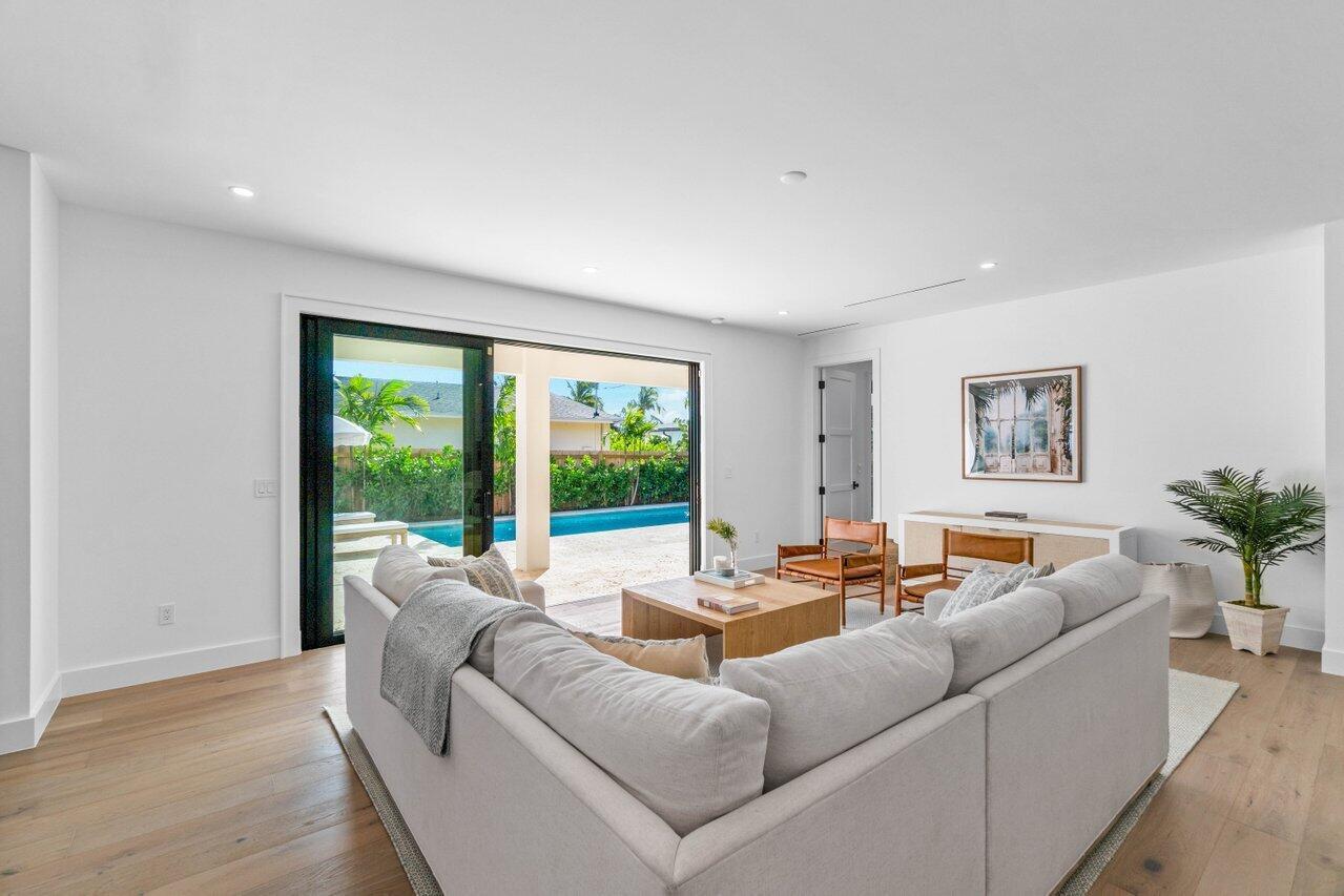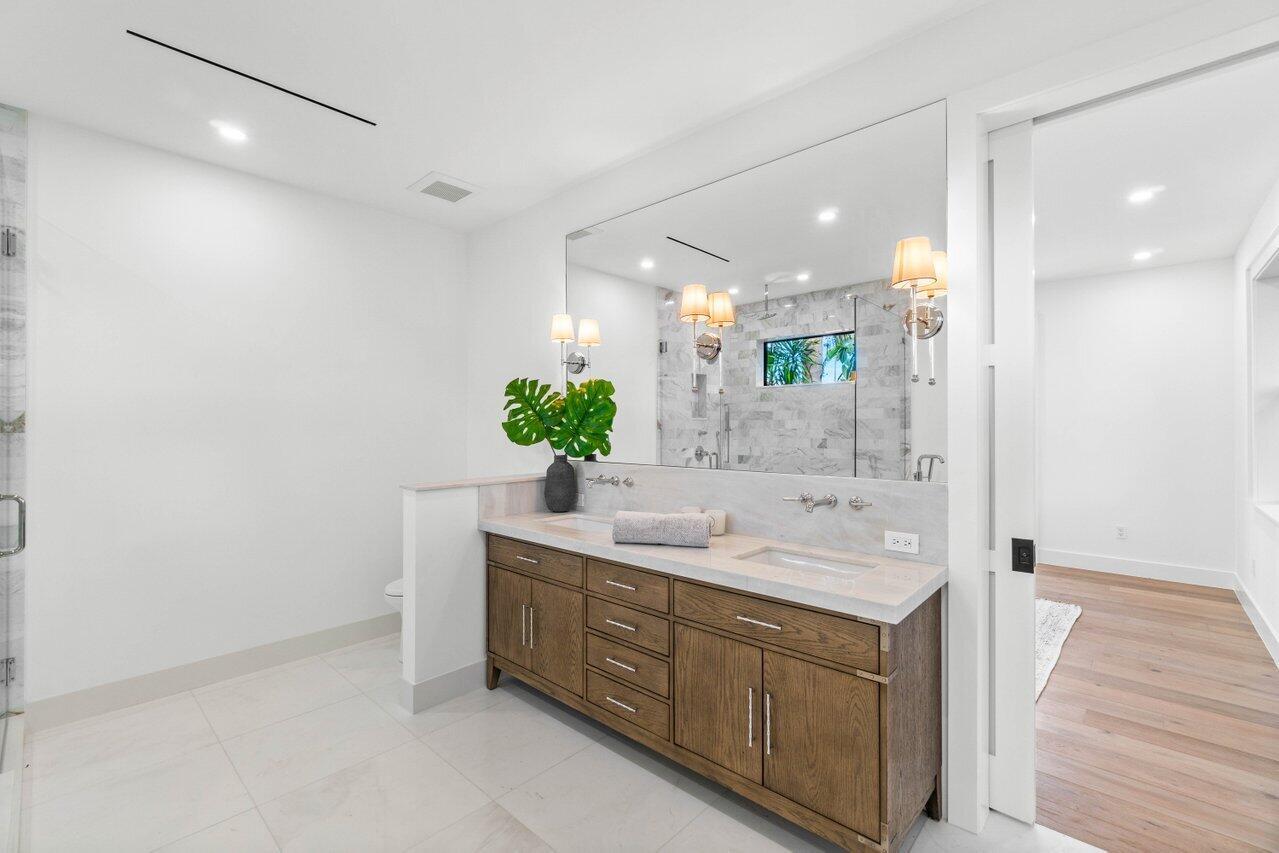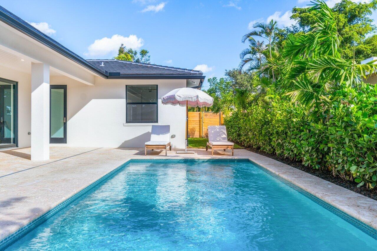 2024 NEW CUSTOM BUILD – 4-bedrooms, 3-bathrooms 2,473 SF living space with high ceilings throughout. Hardwood floors, with marble and limestone bathrooms. Thoughtful layout and beautiful design by Elizabeth Gray Homes. Solid 8′ doors throughout and 8′ sliding doors in the living room. Large bathrooms with custom designer mirrors and custom walk-in closets. Paneled decor fridge, wall oven, linear AC vents (very quiet), laundry room, heated and salt treated pool, large covered loggia for outdoor entertaining, clay tile roof with full spray foam insulation, all interior walls insulated for sound proofing. Quiet street with indirect access to Olive and Dixie therefore no through traffic. Close to excellent schools, public tennis courts, golf course and park. Fantastic location!