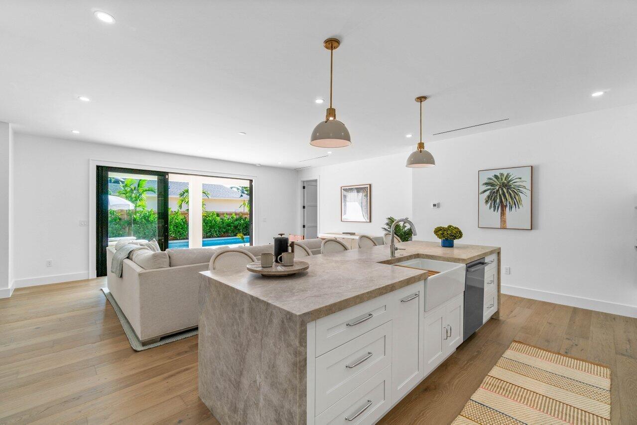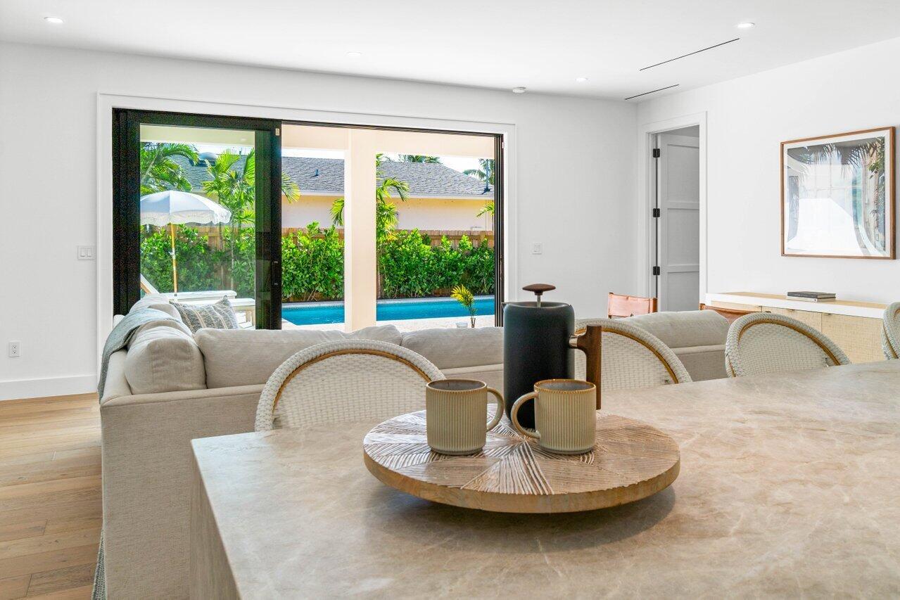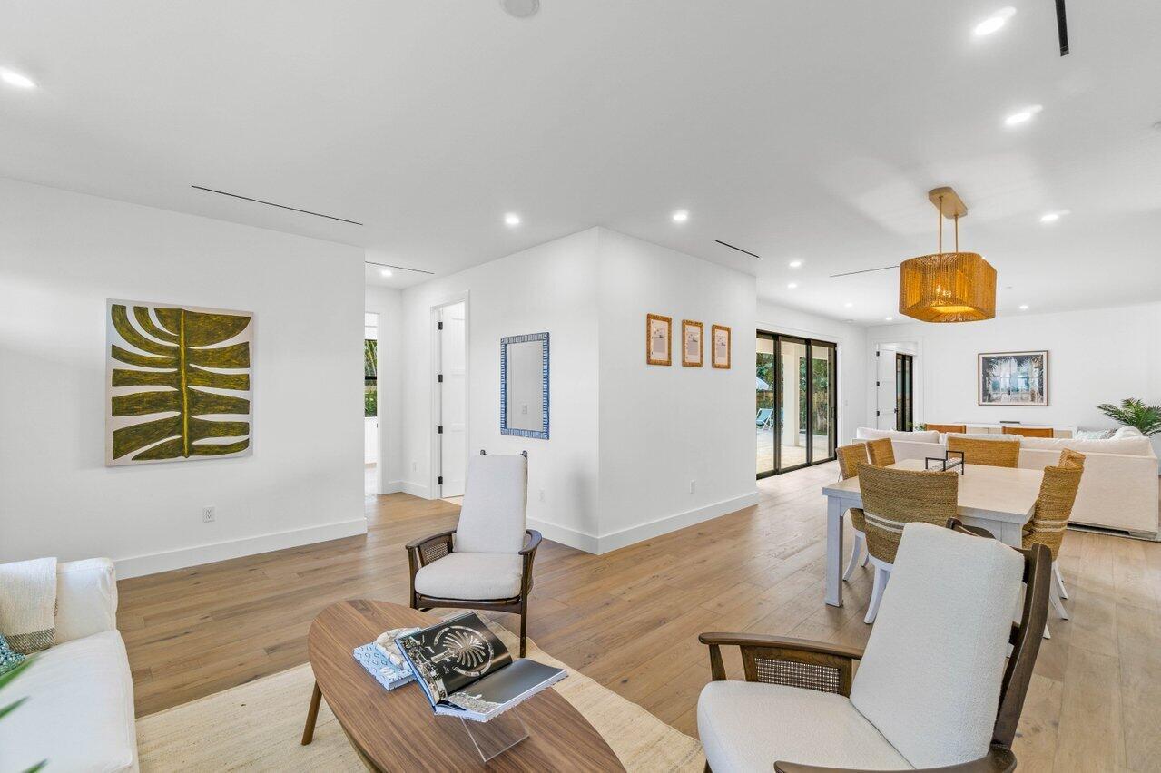 2024 NEW CUSTOM BUILD – 4-bedrooms, 3-bathrooms 2,473 SF living space with high ceilings throughout. Hardwood floors, with marble and limestone bathrooms. Thoughtful layout and beautiful design by Elizabeth Gray Homes. Solid 8′ doors throughout and 8′ sliding doors in the living room. Large bathrooms with custom designer mirrors and custom walk-in closets. Paneled decor fridge, wall oven, linear AC vents (very quiet), laundry room, heated and salt treated pool, large covered loggia for outdoor entertaining, clay tile roof with full spray foam insulation, all interior walls insulated for sound proofing. Quiet street with indirect access to Olive and Dixie therefore no through traffic. Close to excellent schools, public tennis courts, golf course and park. Fantastic location!