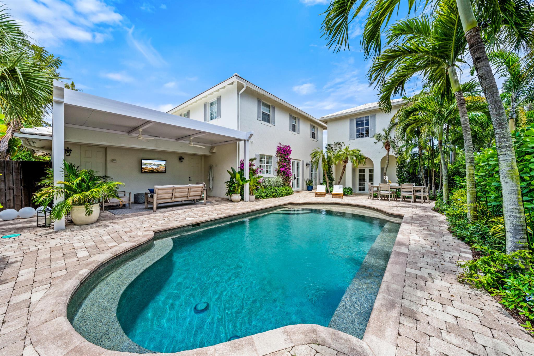 Beautifully renovated home on a fantastic neighborhood street in SoSo. This charming and elegant home offers a 3br main house, complete with chef’s kitchen (literally designed by a chef), private dining room; plus a detached 1br guest house. Great sun-filled pool and covered loggia with motorized retractable screens. A thoughtfully designed property inside and out – ready to welcome you home!