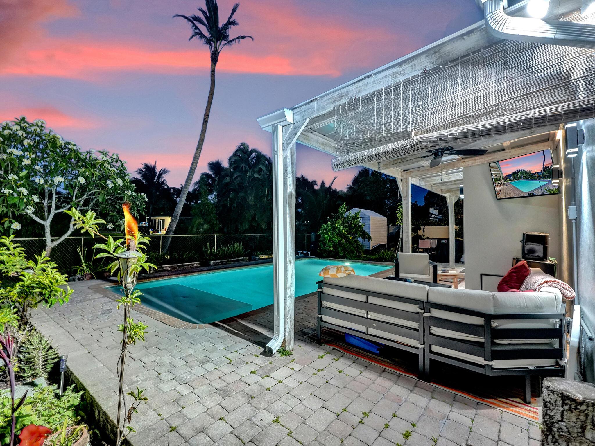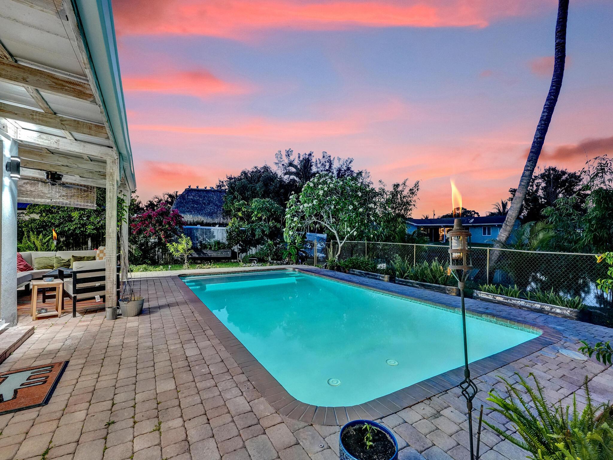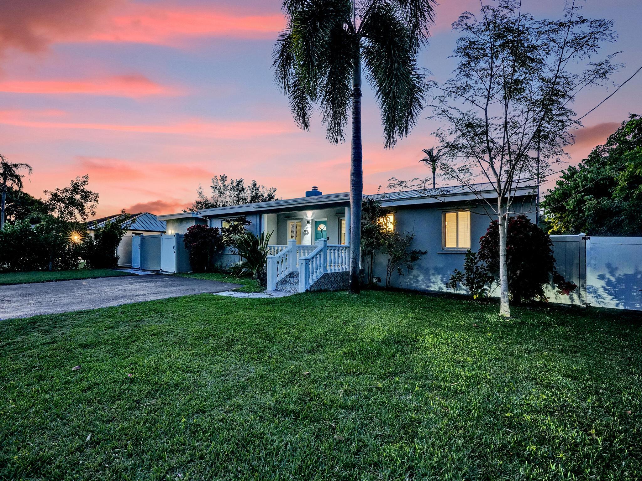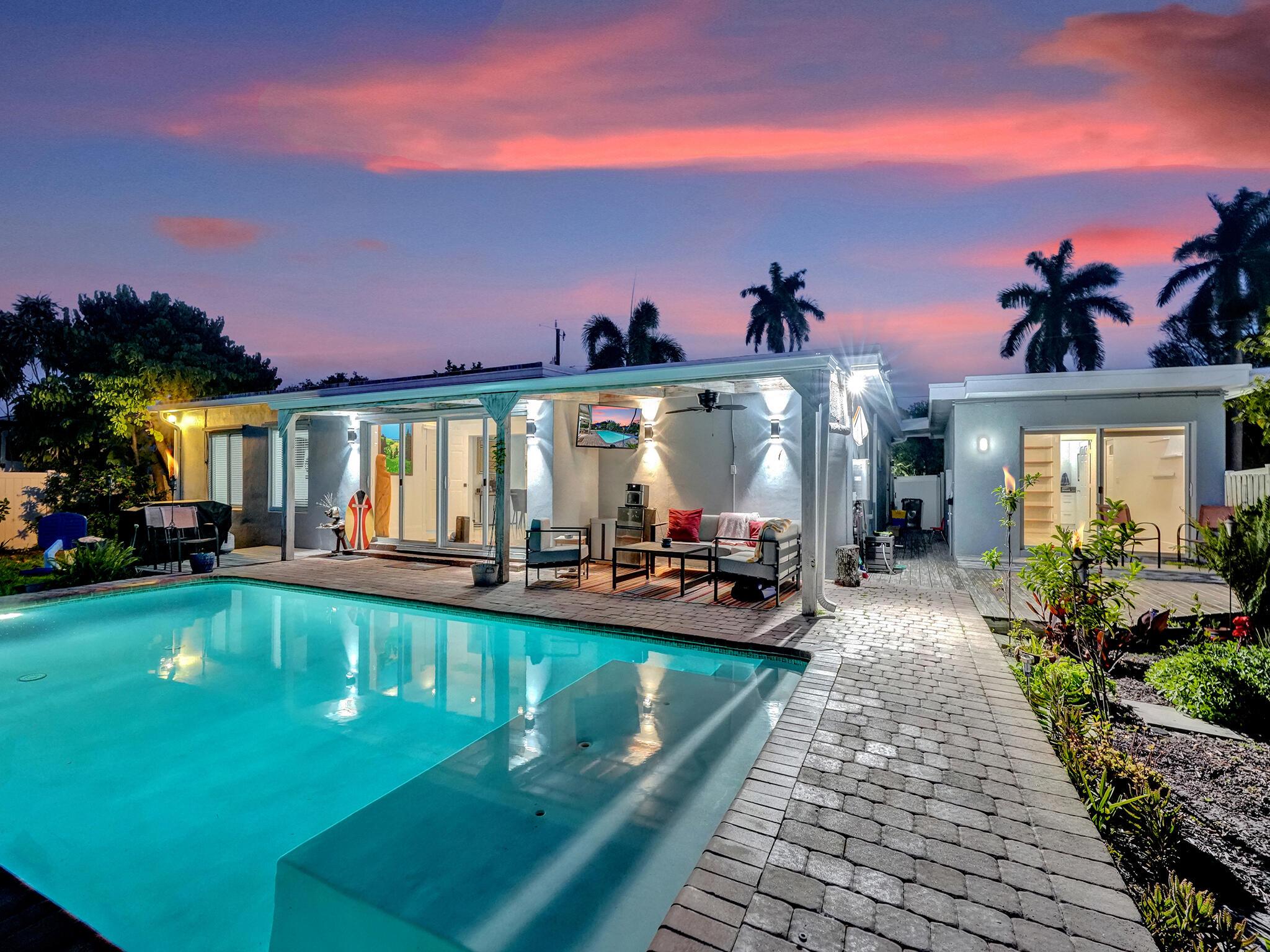 Discover your dream home just minutes from pristine beaches and I-95! This stunning 3-bedroom, 2.5-bathroom residence, complete with a den, has been beautifully renovated for modern living. Perfect for multigenerational families, it features a newly constructed 1-bedroom guest home (2020) with a private entrance, kitchenette, and chic bathroom.Entertain effortlessly in your fenced backyard with a heated saltwater pool and covered lanai, all while enjoying breathtaking lake views. Surrounded by lush tropical fruit trees, this property offers a serene escape.With NO HOA fees, ample parking, hurricane glass windows, and a whole home generator for peace of mind, this home is a must-see. Schedule your showing today!!See addl Features