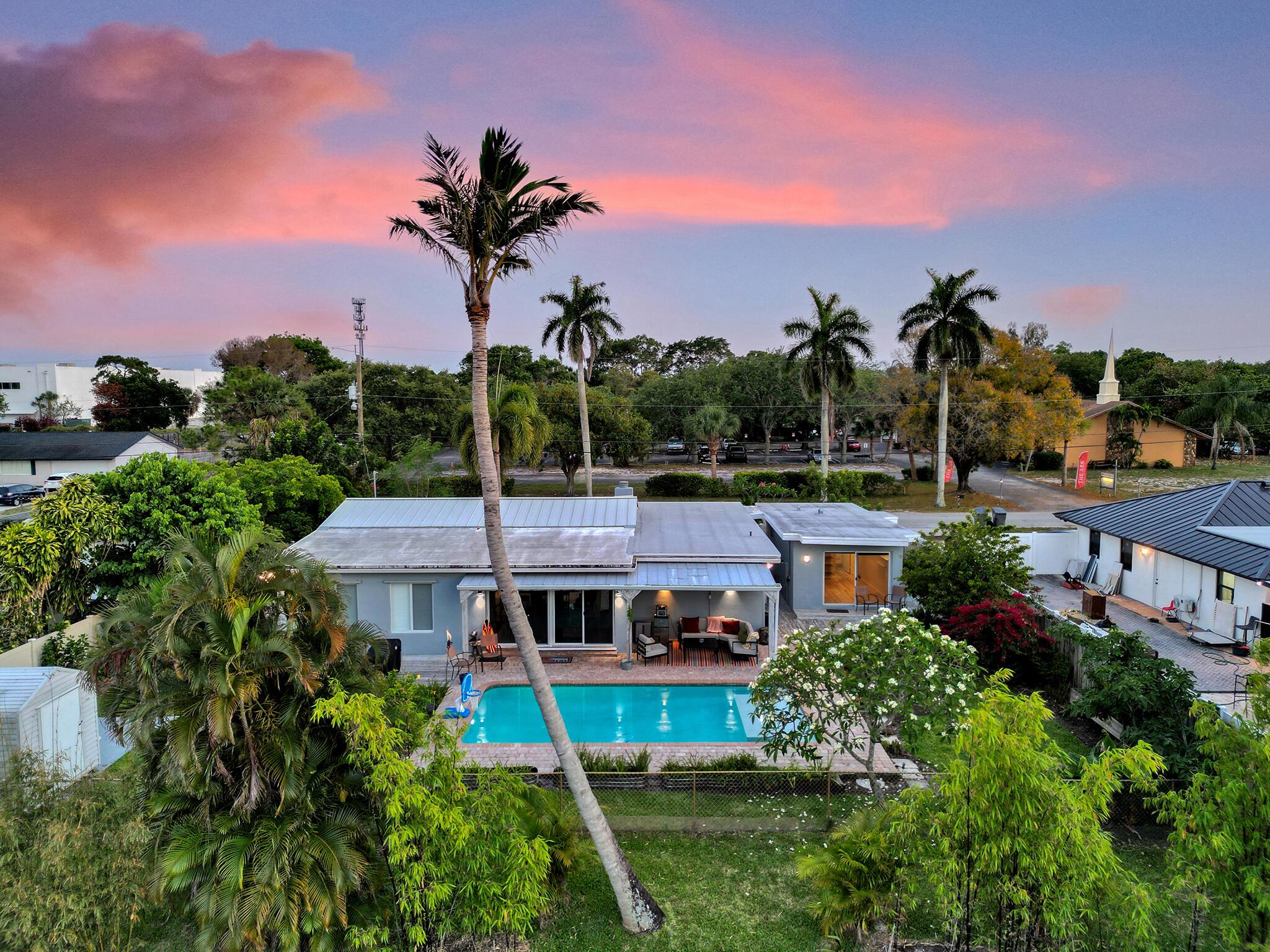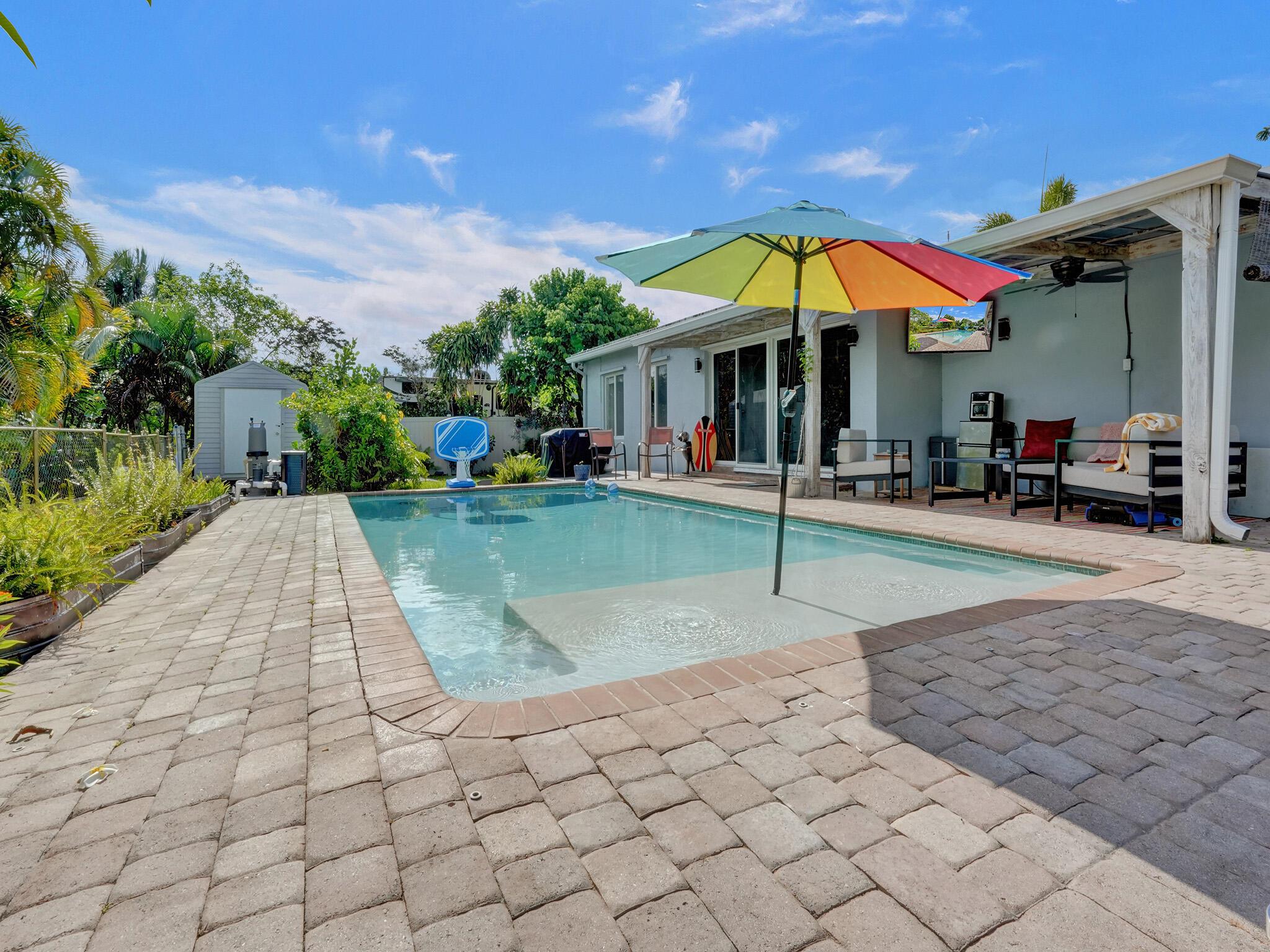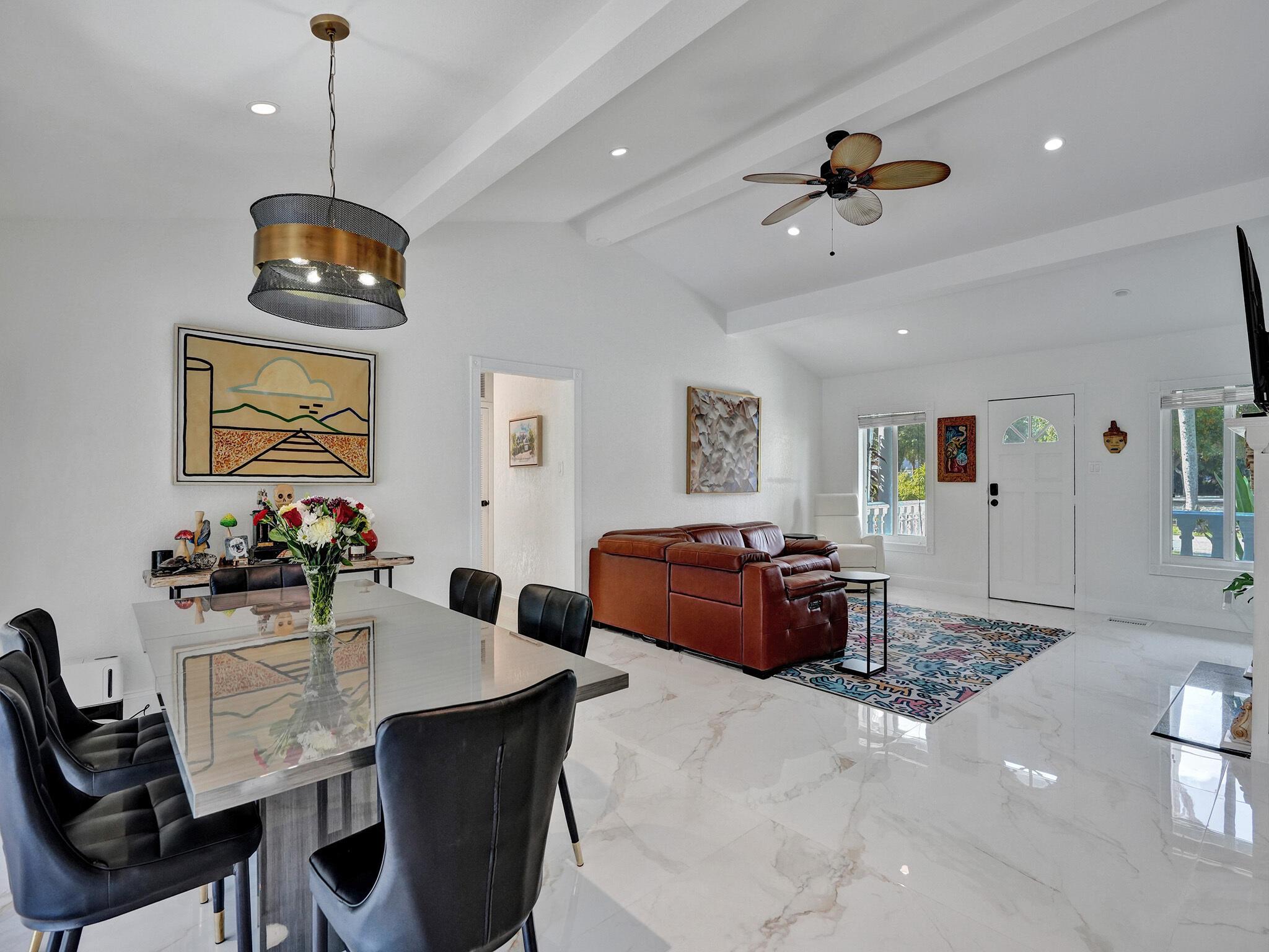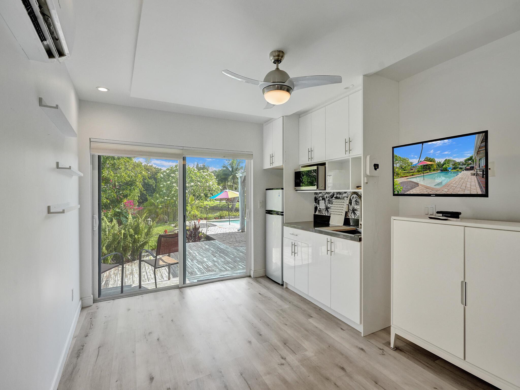 Discover your dream home just minutes from pristine beaches and I-95! This stunning 3-bedroom, 2.5-bathroom residence, complete with a den, has been beautifully renovated for modern living. Perfect for multigenerational families, it features a newly constructed 1-bedroom guest home (2020) with a private entrance, kitchenette, and chic bathroom.Entertain effortlessly in your fenced backyard with a heated saltwater pool and covered lanai, all while enjoying breathtaking lake views. Surrounded by lush tropical fruit trees, this property offers a serene escape.With NO HOA fees, ample parking, hurricane glass windows, and a whole home generator for peace of mind, this home is a must-see. Schedule your showing today!!See addl Features