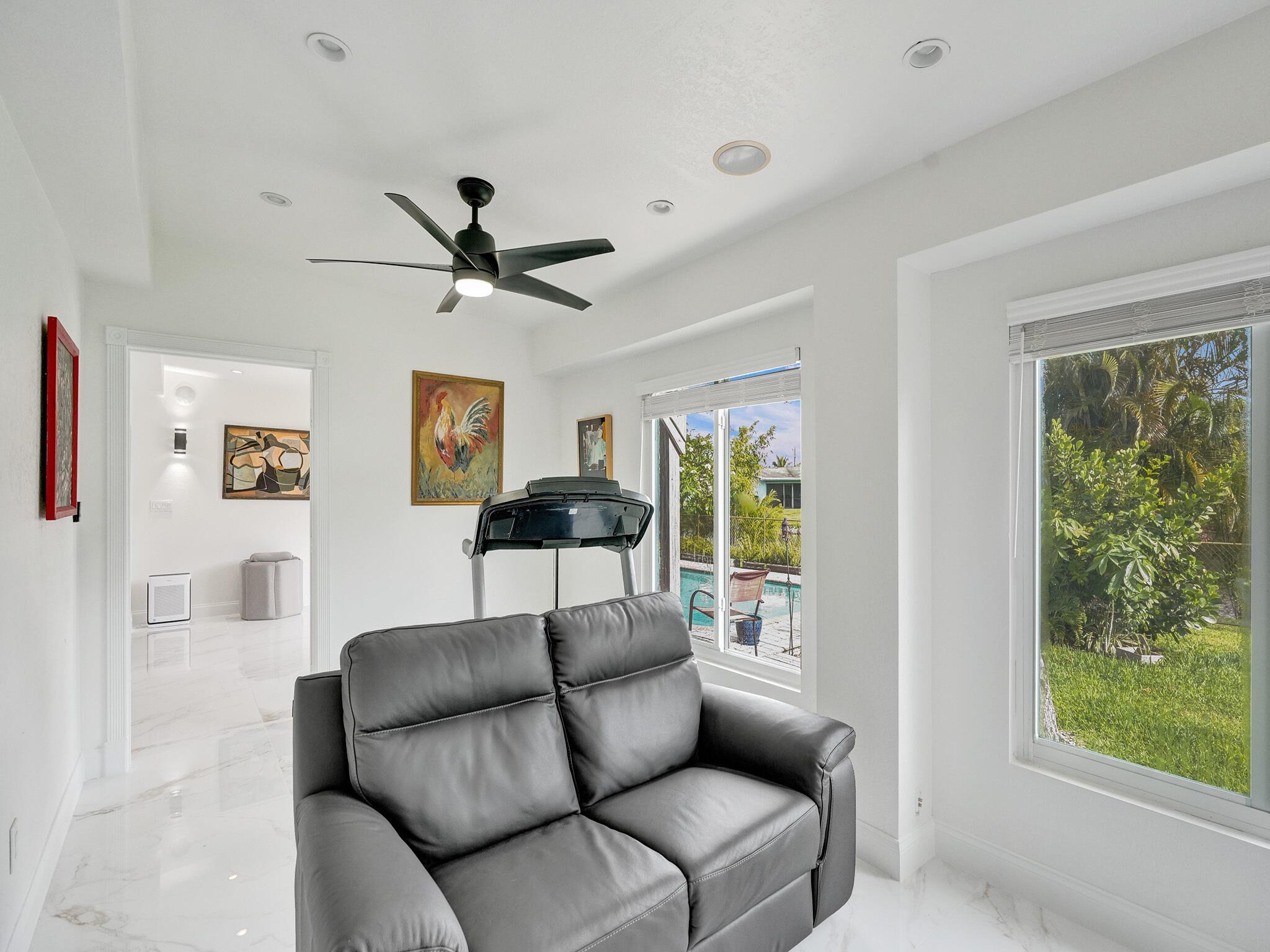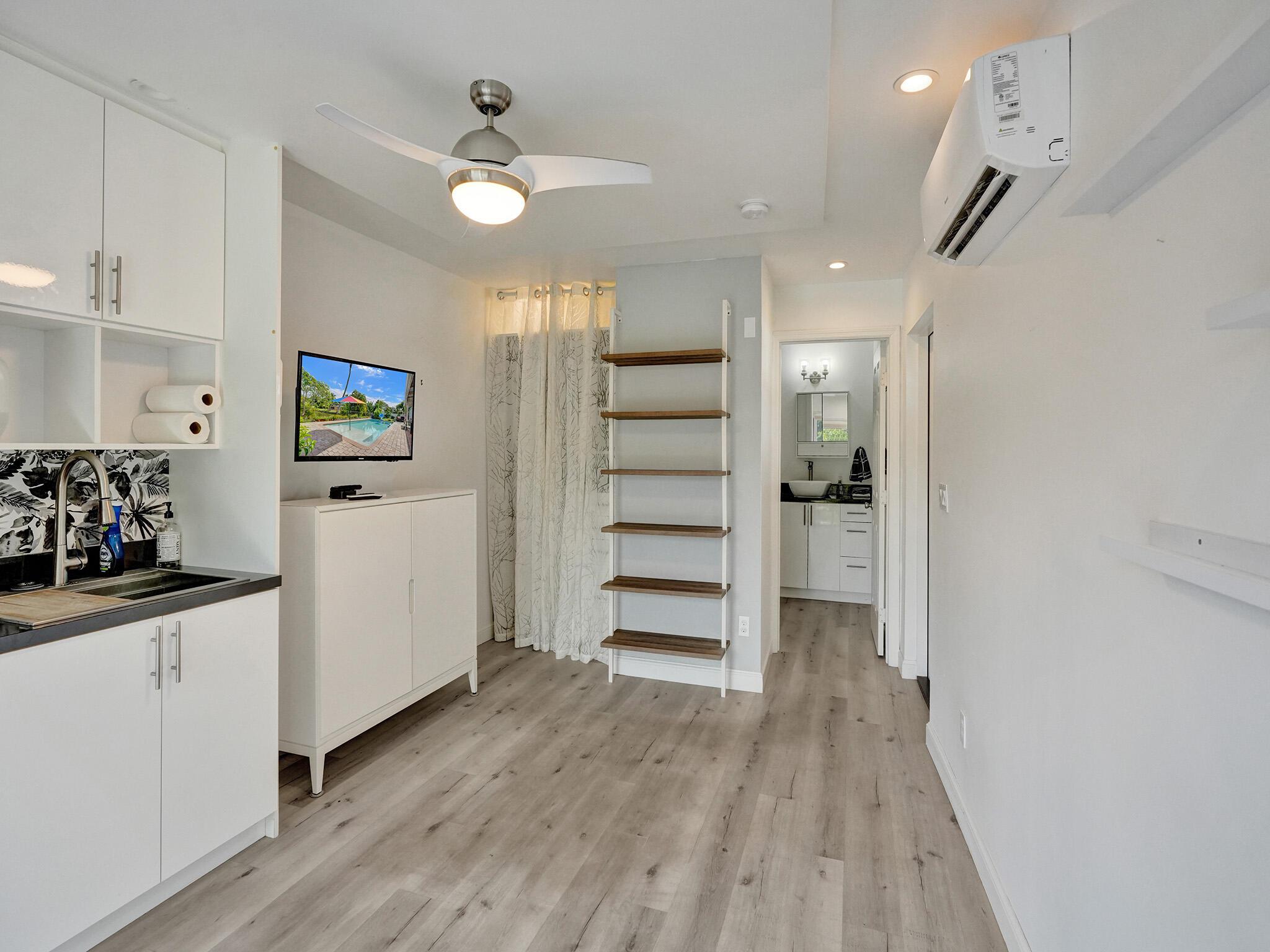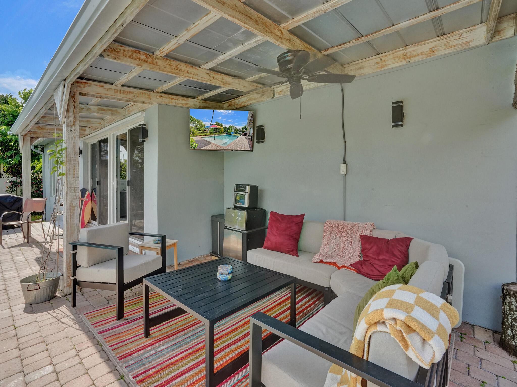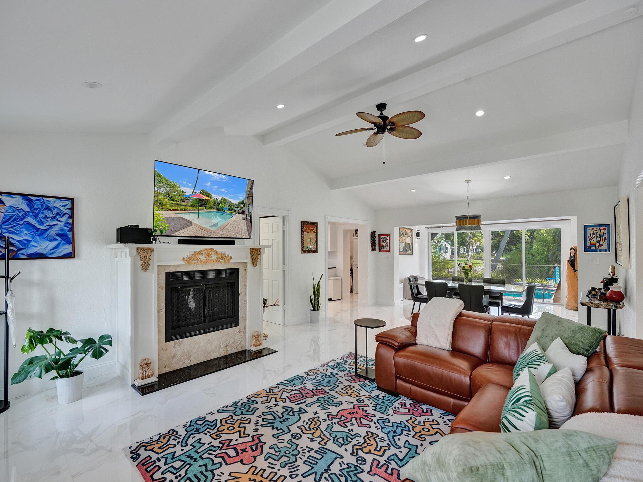 Discover your dream home just minutes from pristine beaches and I-95! This stunning 3-bedroom, 2.5-bathroom residence, complete with a den, has been beautifully renovated for modern living. Perfect for multigenerational families, it features a newly constructed 1-bedroom guest home (2020) with a private entrance, kitchenette, and chic bathroom.Entertain effortlessly in your fenced backyard with a heated saltwater pool and covered lanai, all while enjoying breathtaking lake views. Surrounded by lush tropical fruit trees, this property offers a serene escape.With NO HOA fees, ample parking, hurricane glass windows, and a whole home generator for peace of mind, this home is a must-see. Schedule your showing today!!See addl Features