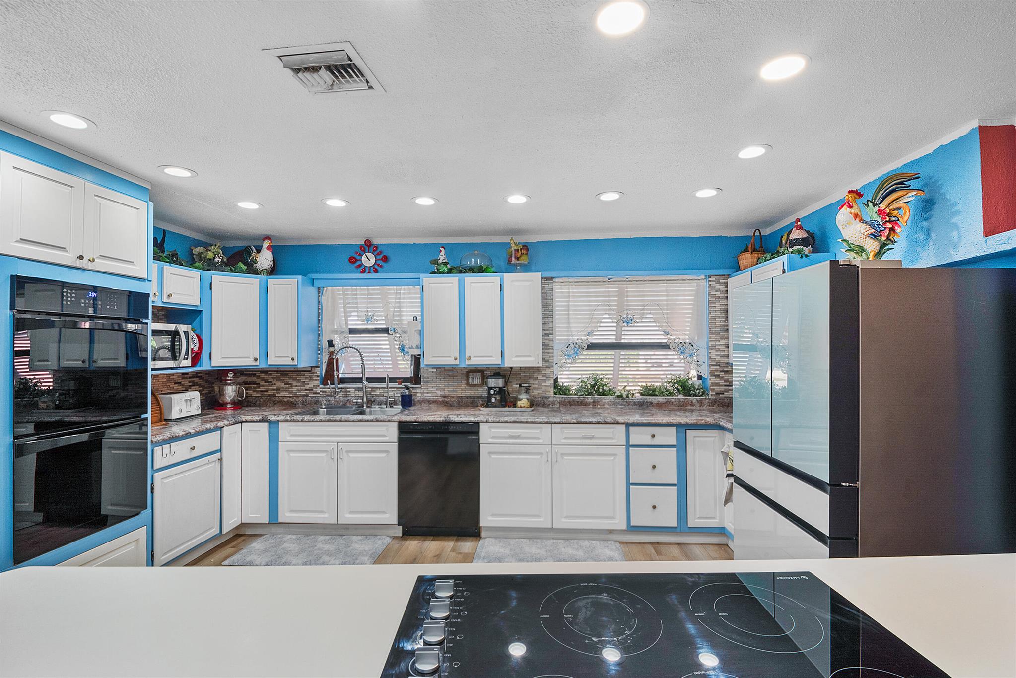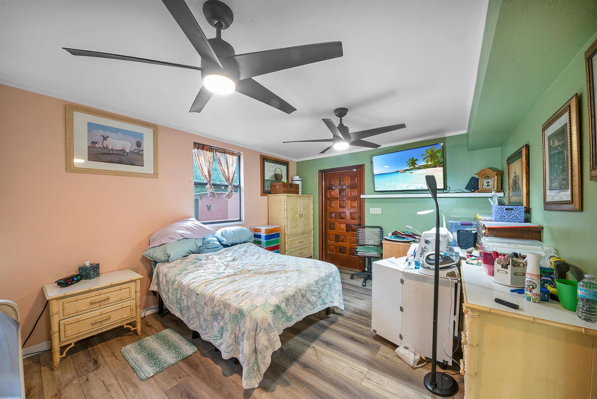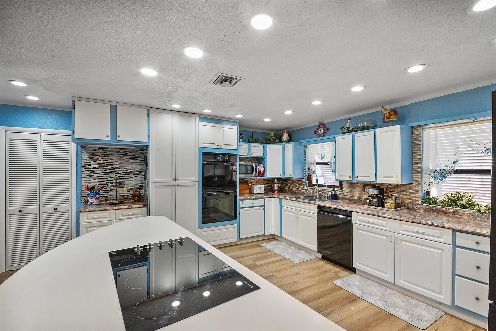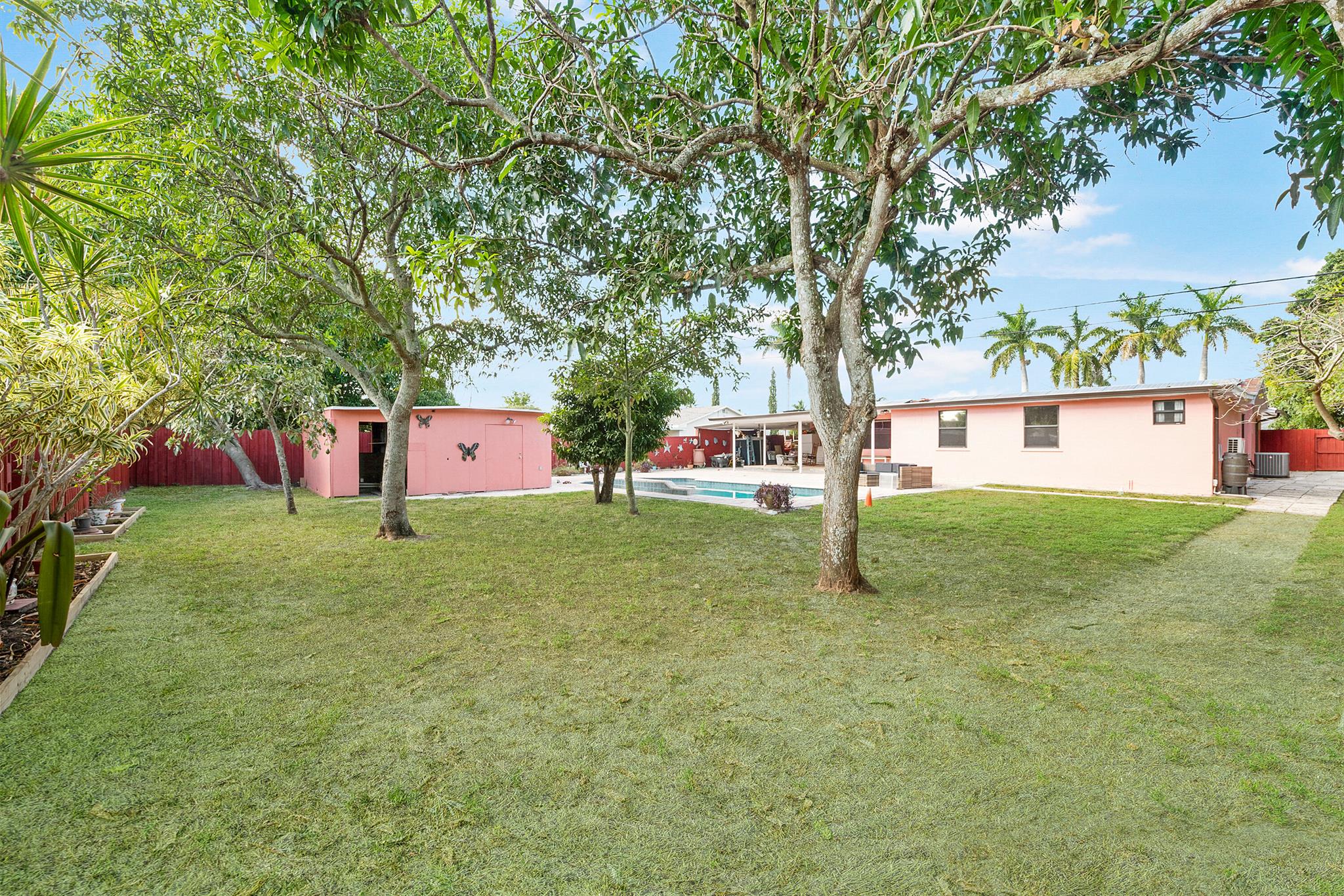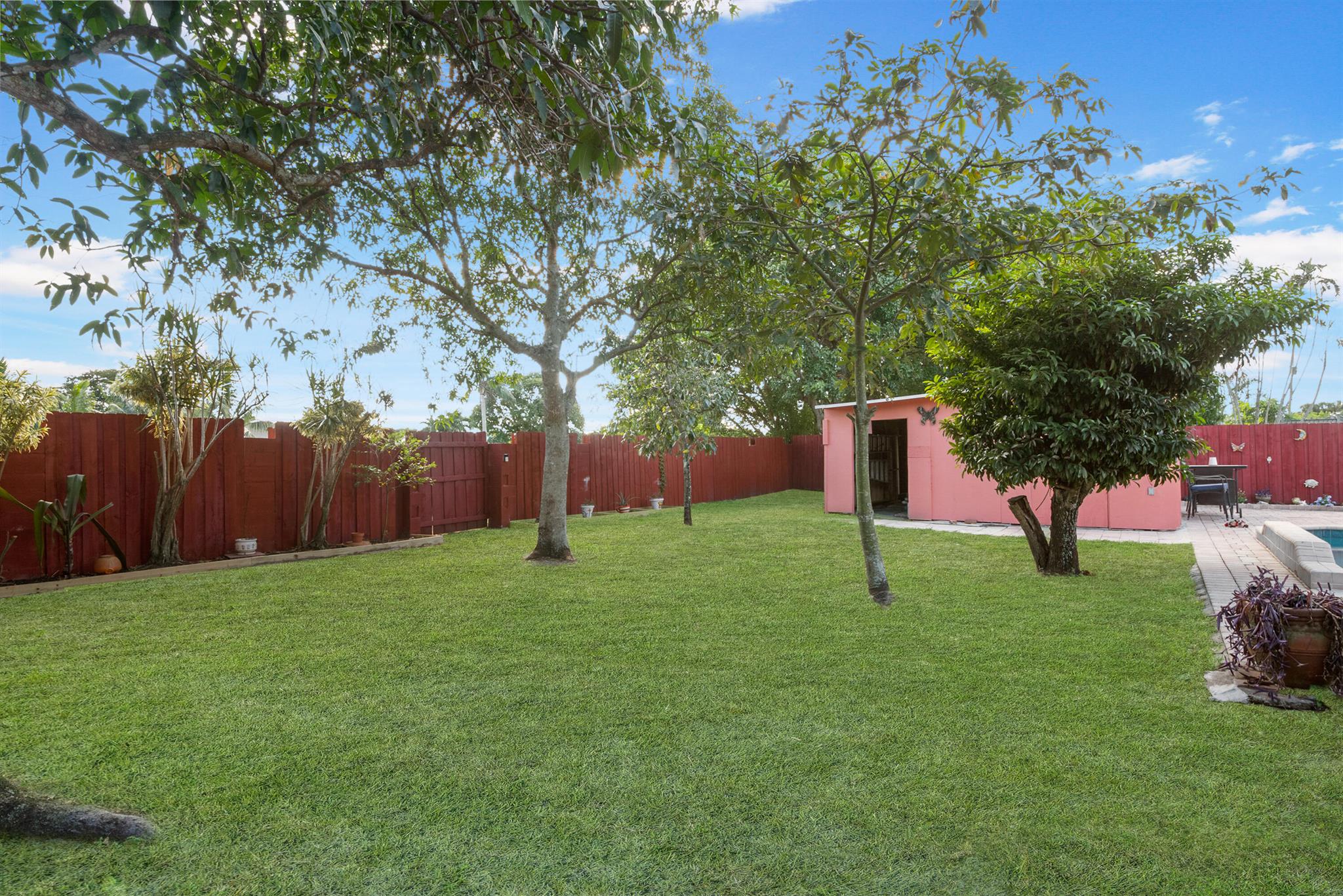 Large family home in desirable Florida Gardens with no HOA on over 1/3 acre. This 4 bedroom/3bath home has lots to offer. The huge cook’s kitchen is open to the dining and family living areas. Ithas double ovens (one is convection), 2 lazy susan’s, loads of cabinets, oversized breakfast bar,and the refrigerator has color insets that can be changed. There is a bonus room off the living areathat can be an office/play room. Two master suites. The main master is very large and has a door tothe outside. The master bath has an enormous shower/jacuzzi tub enclosure. The second masterhas a large closet, and the bath has a nice walk-in shower. The 3rd bath has been updated exceptfor the shower. The home features solar, tankless water heater, hurricane windows, a large outbuilding,