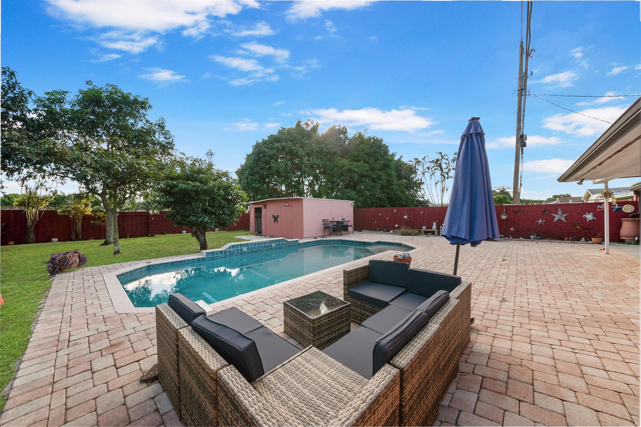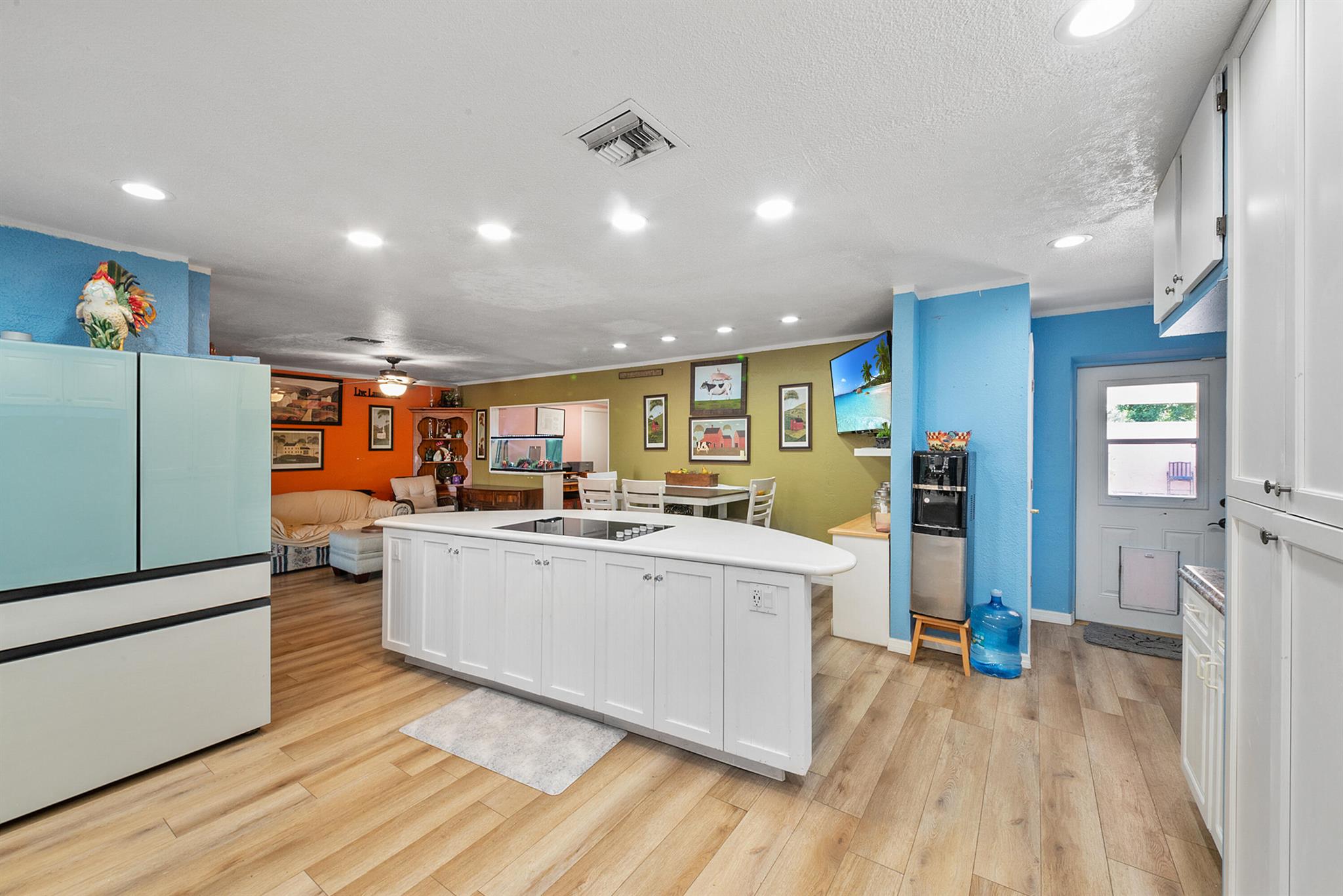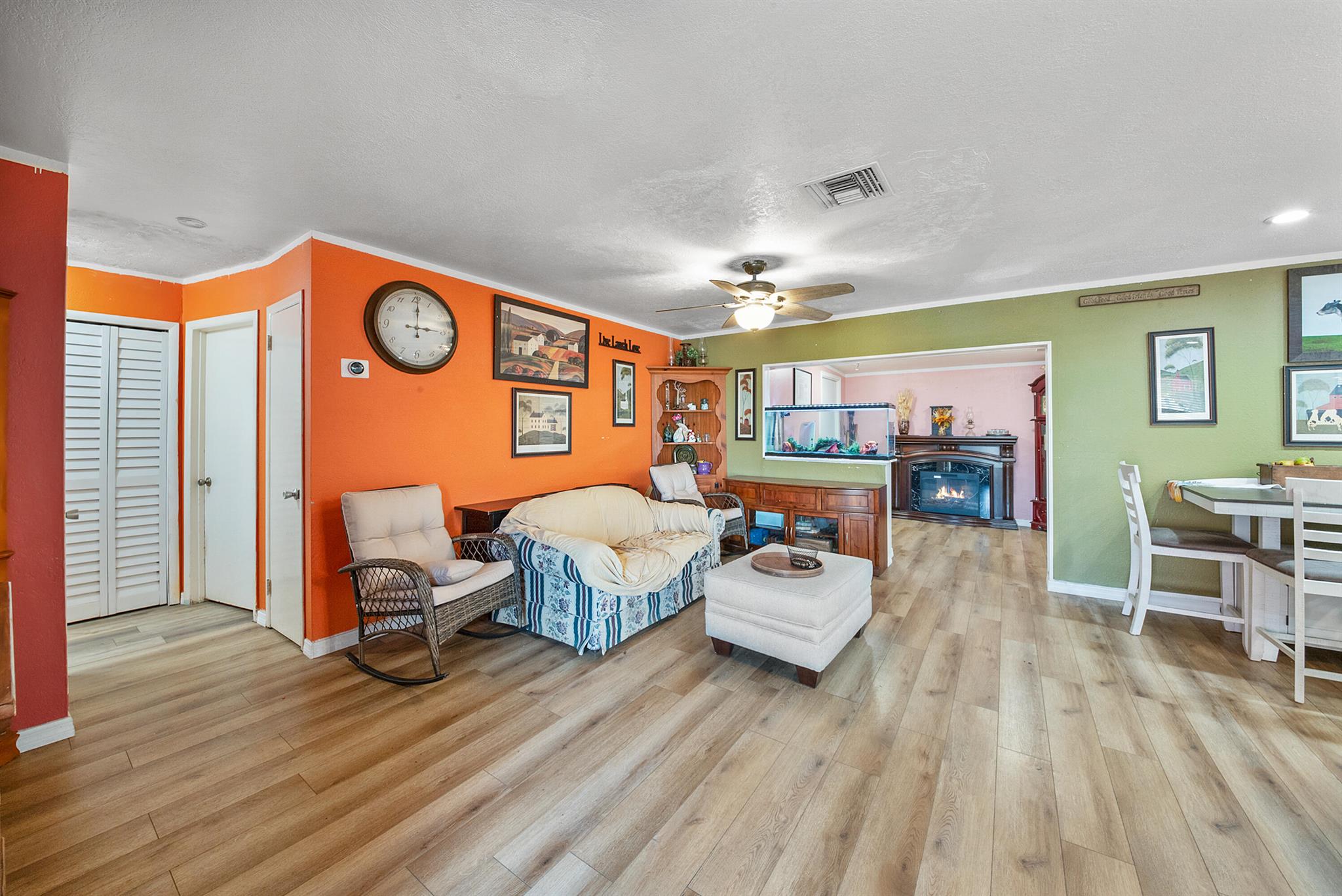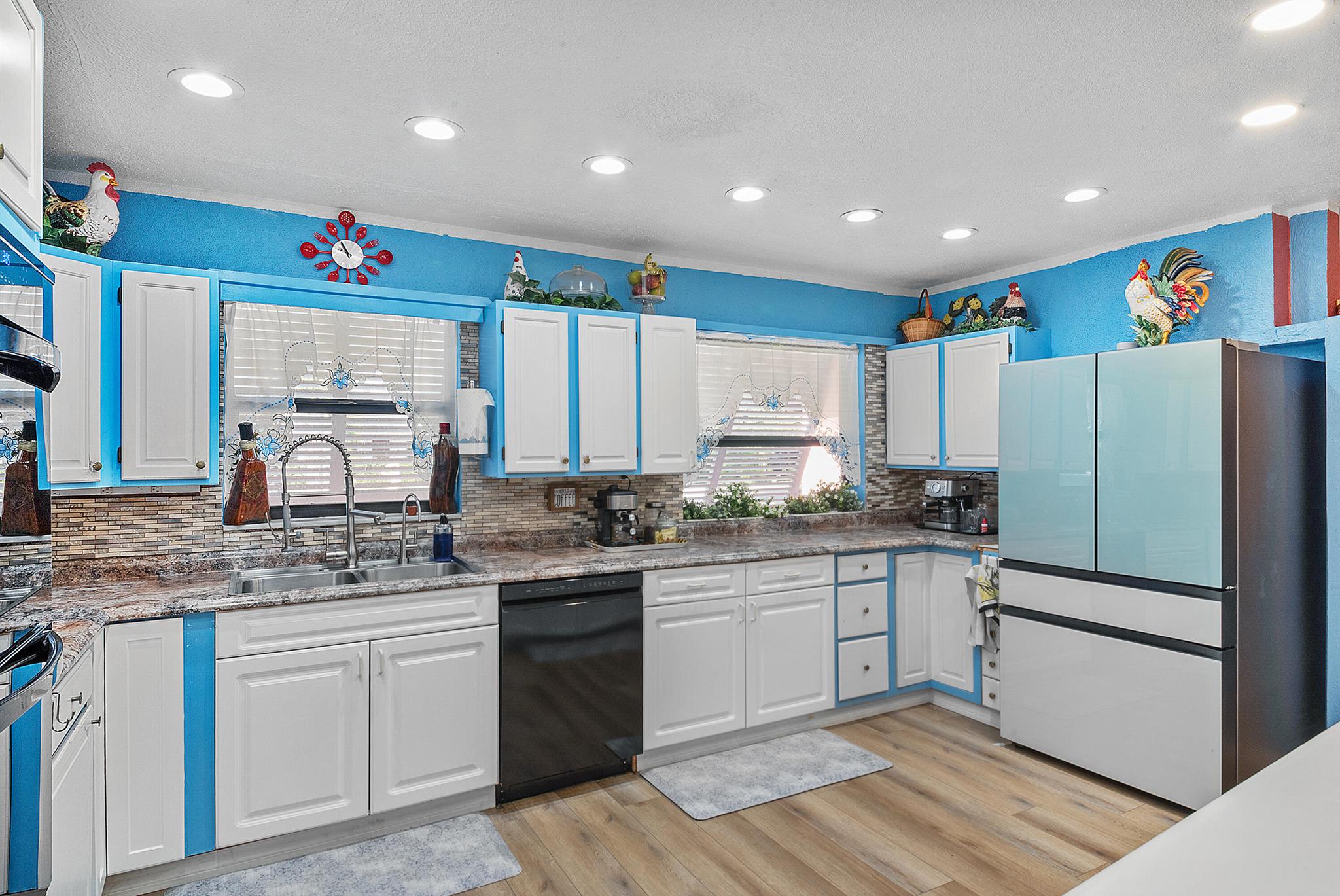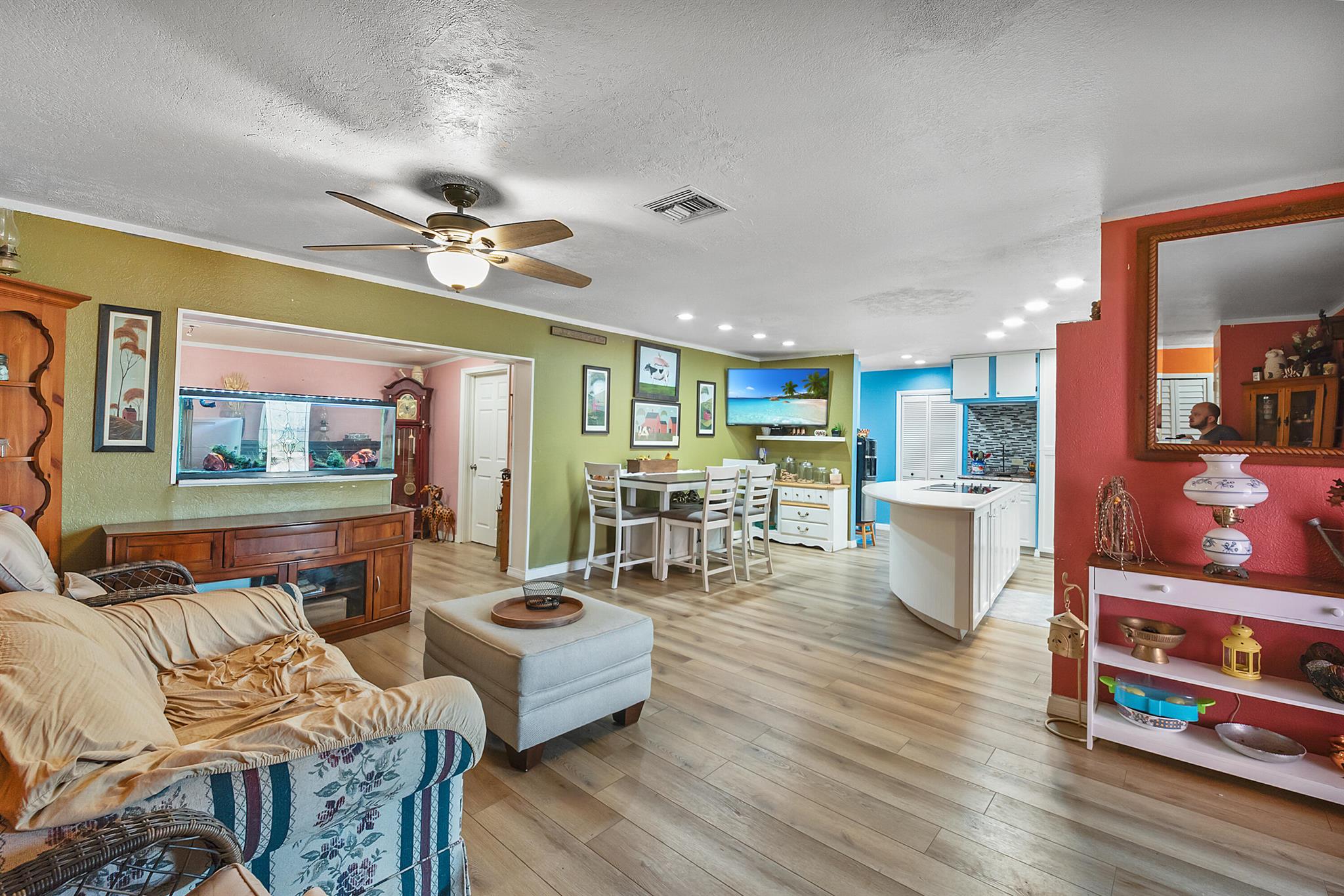 Large family home in desirable Florida Gardens with no HOA on over 1/3 acre. This 4 bedroom/3bath home has lots to offer. The huge cook’s kitchen is open to the dining and family living areas. Ithas double ovens (one is convection), 2 lazy susan’s, loads of cabinets, oversized breakfast bar,and the refrigerator has color insets that can be changed. There is a bonus room off the living areathat can be an office/play room. Two master suites. The main master is very large and has a door tothe outside. The master bath has an enormous shower/jacuzzi tub enclosure. The second masterhas a large closet, and the bath has a nice walk-in shower. The 3rd bath has been updated exceptfor the shower. The home features solar, tankless water heater, hurricane windows, a large outbuilding,