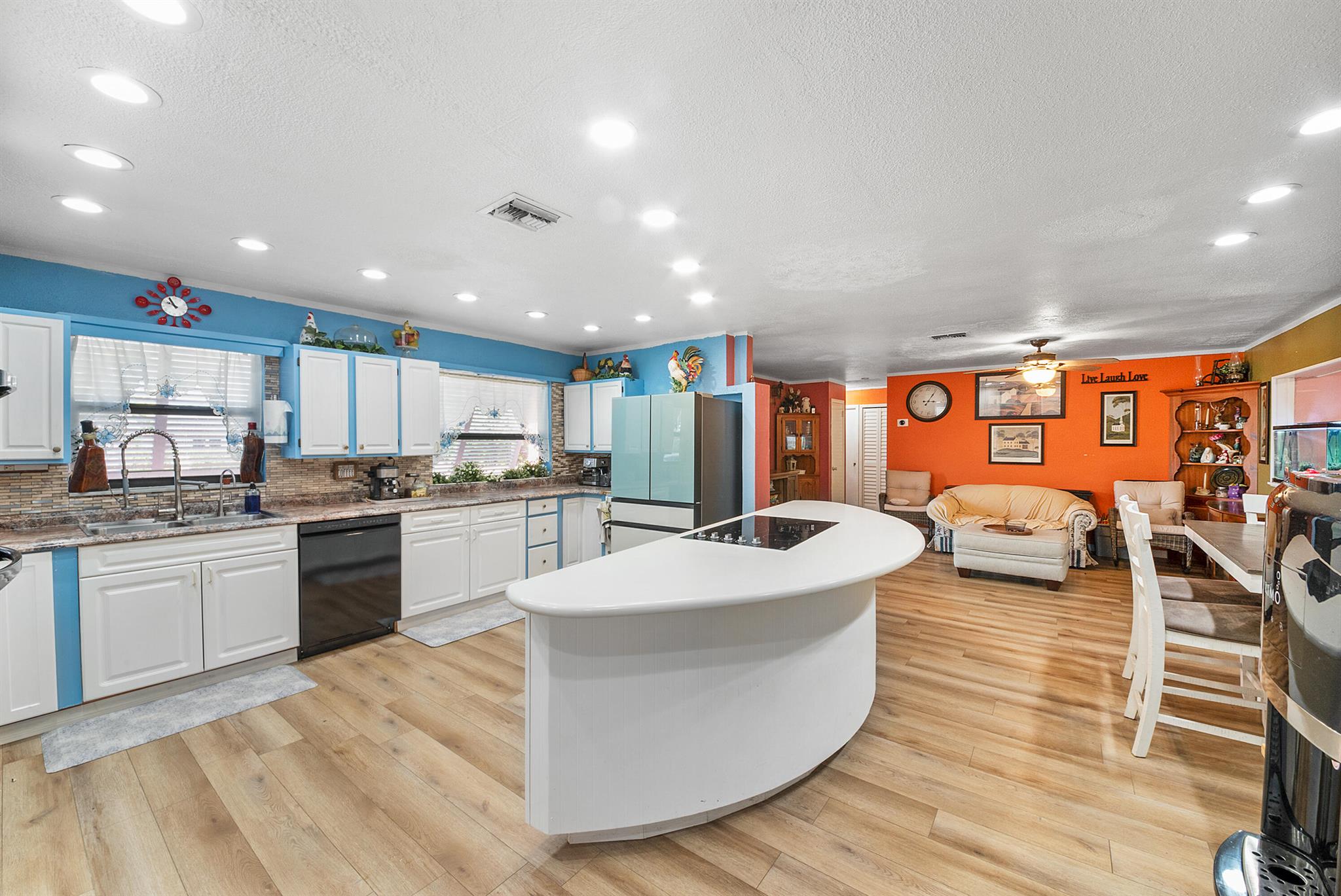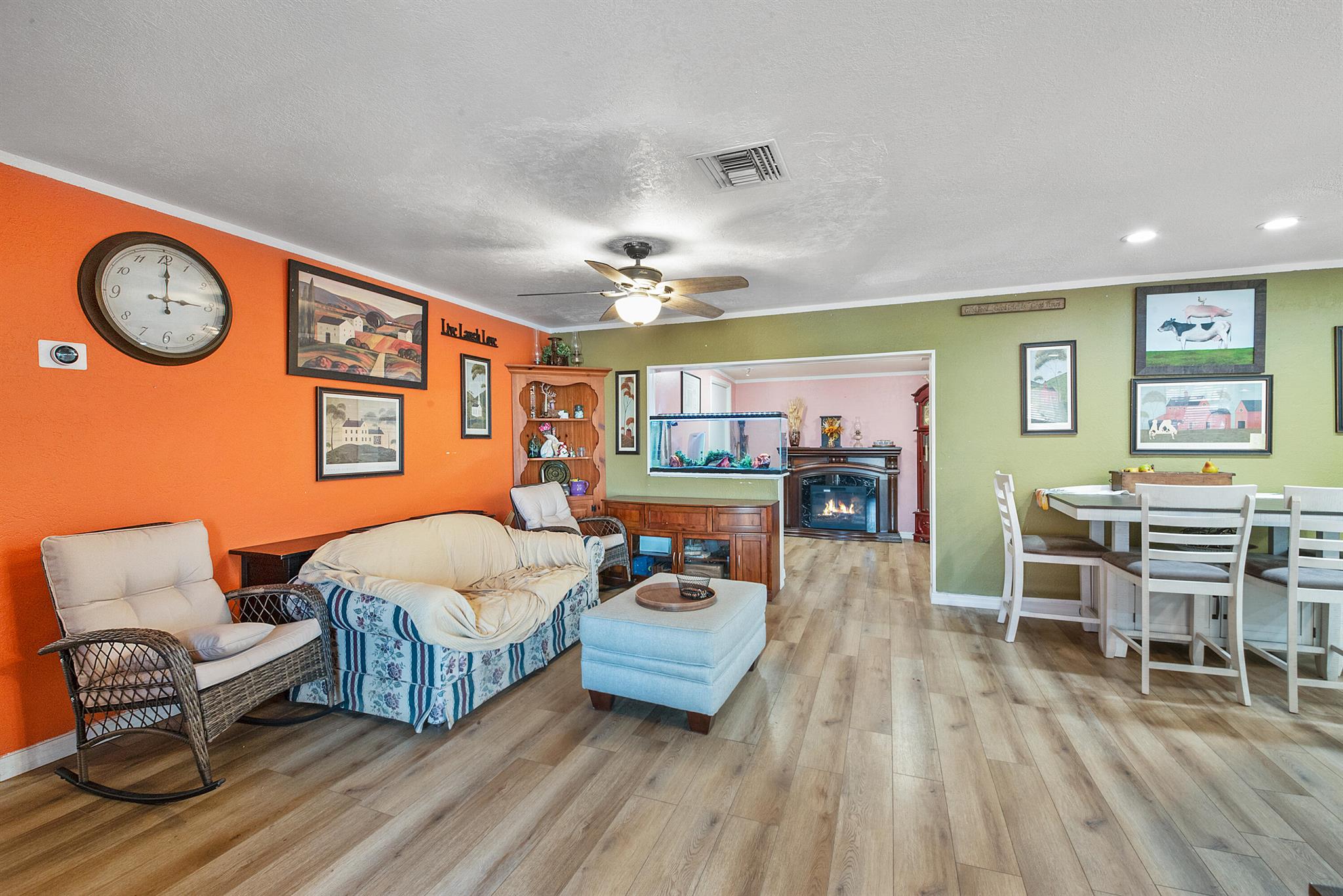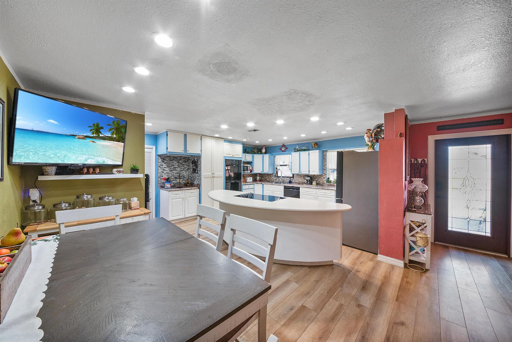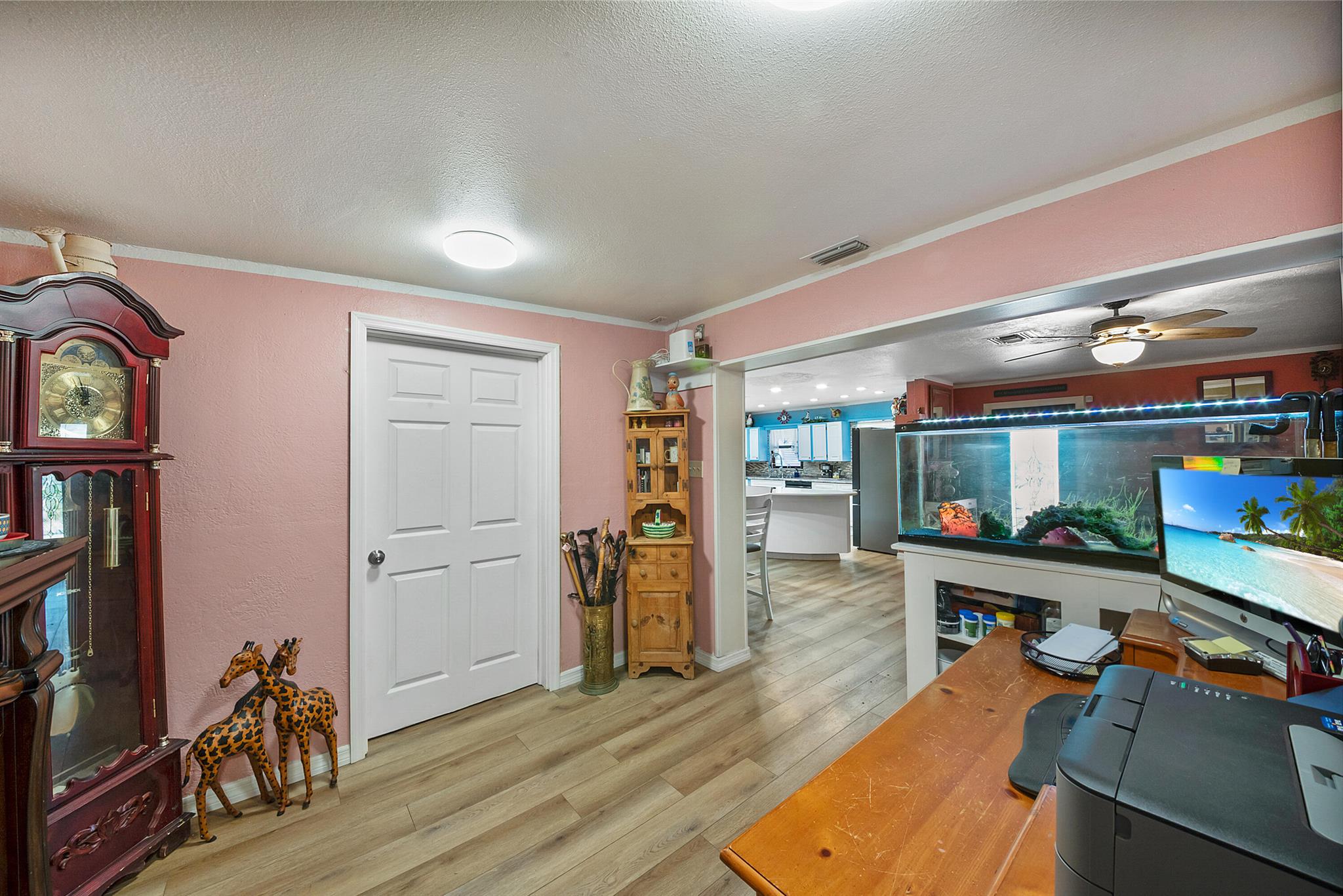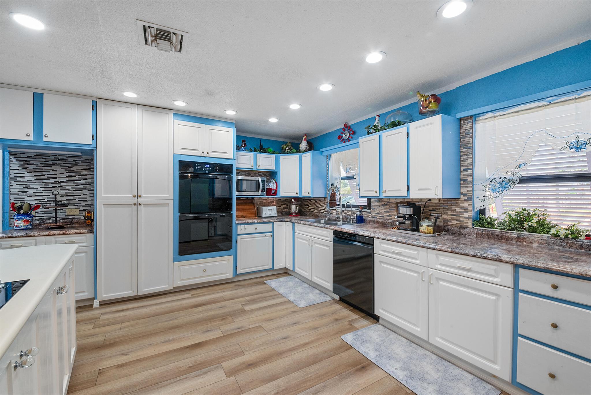 Large family home in desirable Florida Gardens with no HOA on over 1/3 acre. This 4 bedroom/3bath home has lots to offer. The huge cook’s kitchen is open to the dining and family living areas. Ithas double ovens (one is convection), 2 lazy susan’s, loads of cabinets, oversized breakfast bar,and the refrigerator has color insets that can be changed. There is a bonus room off the living areathat can be an office/play room. Two master suites. The main master is very large and has a door tothe outside. The master bath has an enormous shower/jacuzzi tub enclosure. The second masterhas a large closet, and the bath has a nice walk-in shower. The 3rd bath has been updated exceptfor the shower. The home features solar, tankless water heater, hurricane windows, a large outbuilding,