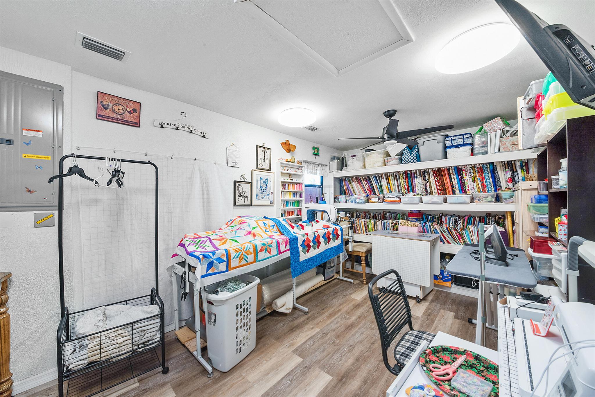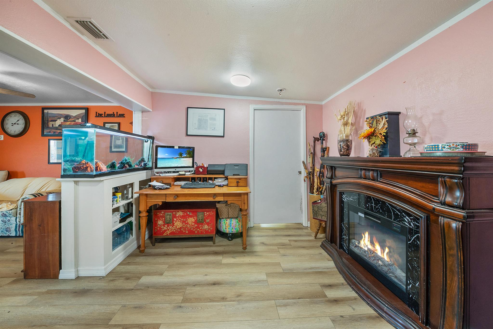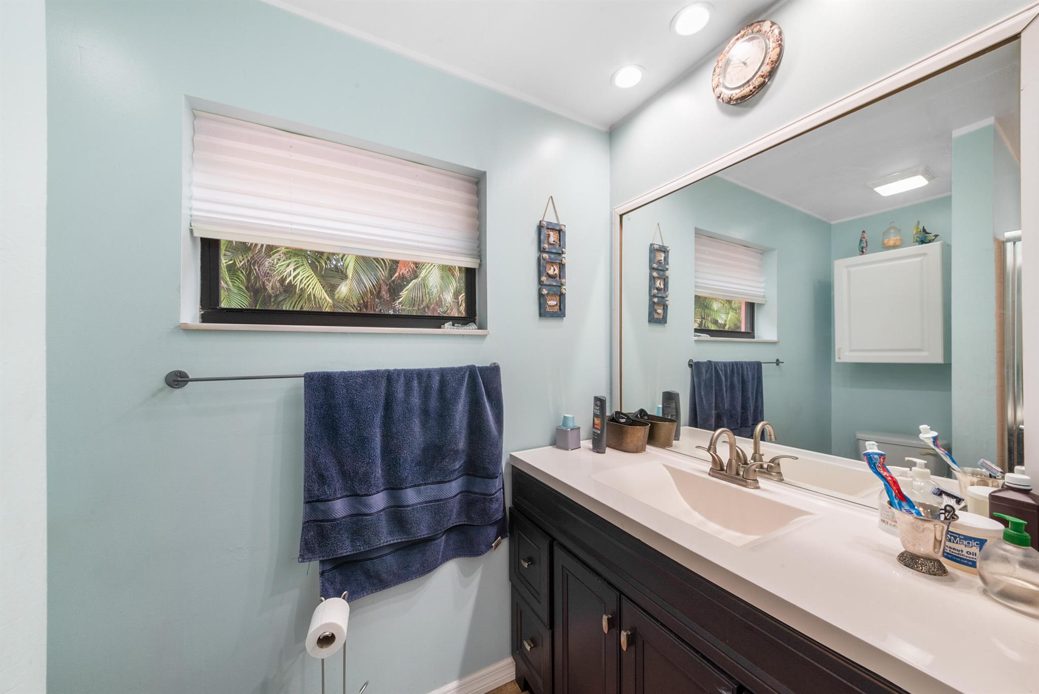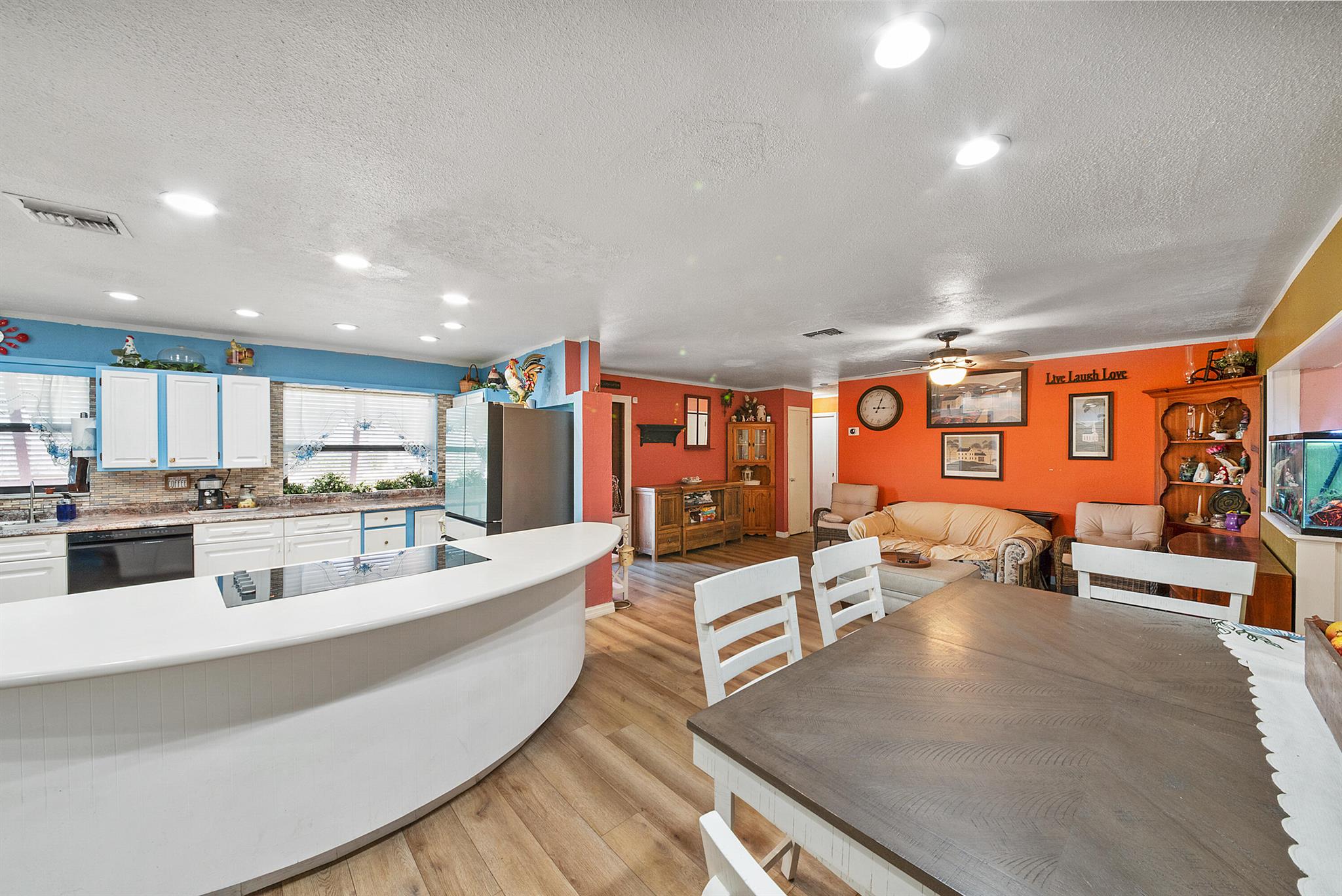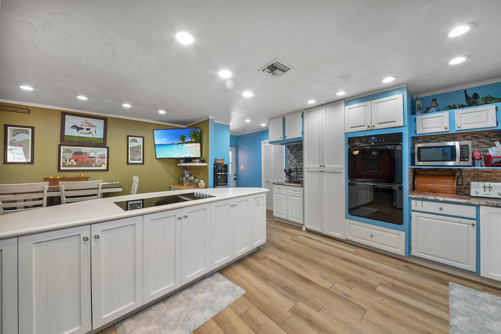 Large family home in desirable Florida Gardens with no HOA on over 1/3 acre. This 4 bedroom/3bath home has lots to offer. The huge cook’s kitchen is open to the dining and family living areas. Ithas double ovens (one is convection), 2 lazy susan’s, loads of cabinets, oversized breakfast bar,and the refrigerator has color insets that can be changed. There is a bonus room off the living areathat can be an office/play room. Two master suites. The main master is very large and has a door tothe outside. The master bath has an enormous shower/jacuzzi tub enclosure. The second masterhas a large closet, and the bath has a nice walk-in shower. The 3rd bath has been updated exceptfor the shower. The home features solar, tankless water heater, hurricane windows, a large outbuilding,