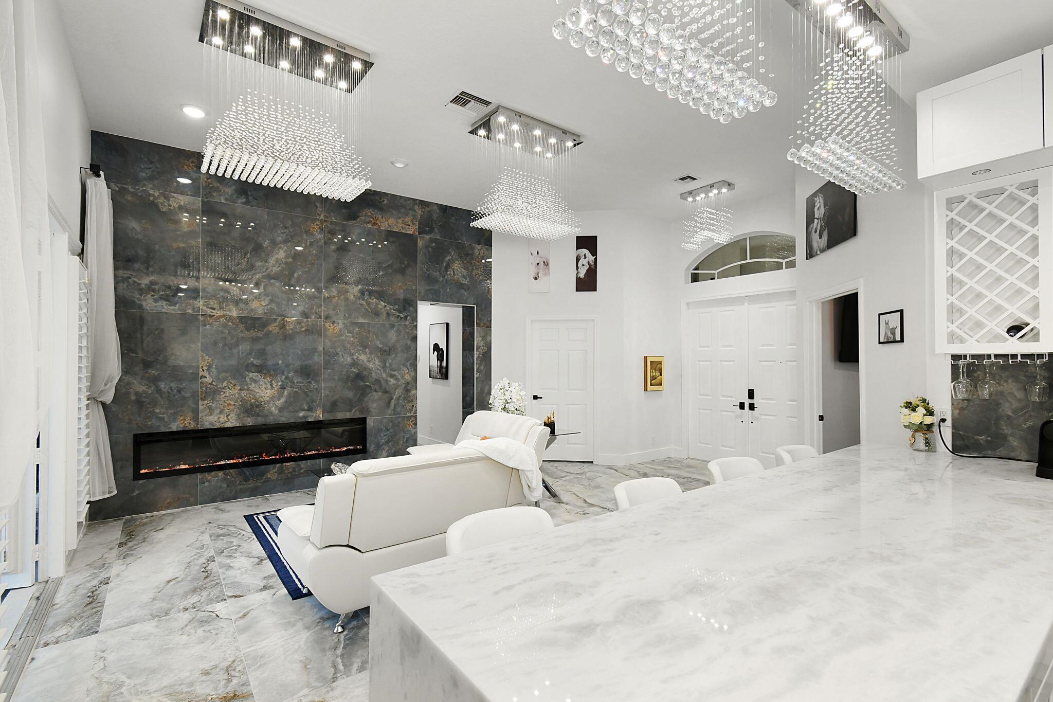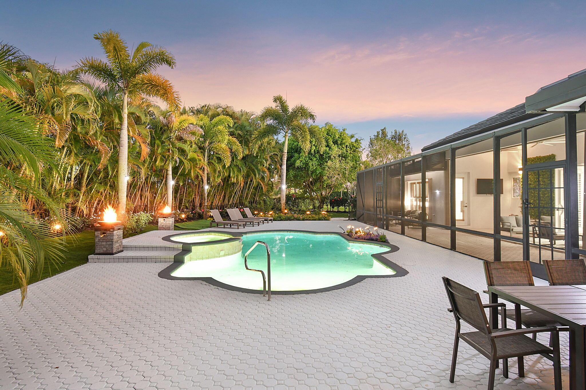 This lovely home, redesigned to be a peaceful retreat, is just a short distance from the horse show. It sits on about 1/2 acre of land, offering privacy and great views of the golf course. With six bedrooms and four bathrooms, the house has a modern style and covers 3,352 square feet. The main living areas have stunning pool views, blending indoor and outdoor spaces perfectly. The property also includes a spacious three-car garage with lots of storage space. Everything in the house has been updated, including the roof, appliances, kitchen, flooring, and lighting. Located in a quiet cul-de-sac, this home backs onto the golf course, making it even more peaceful.