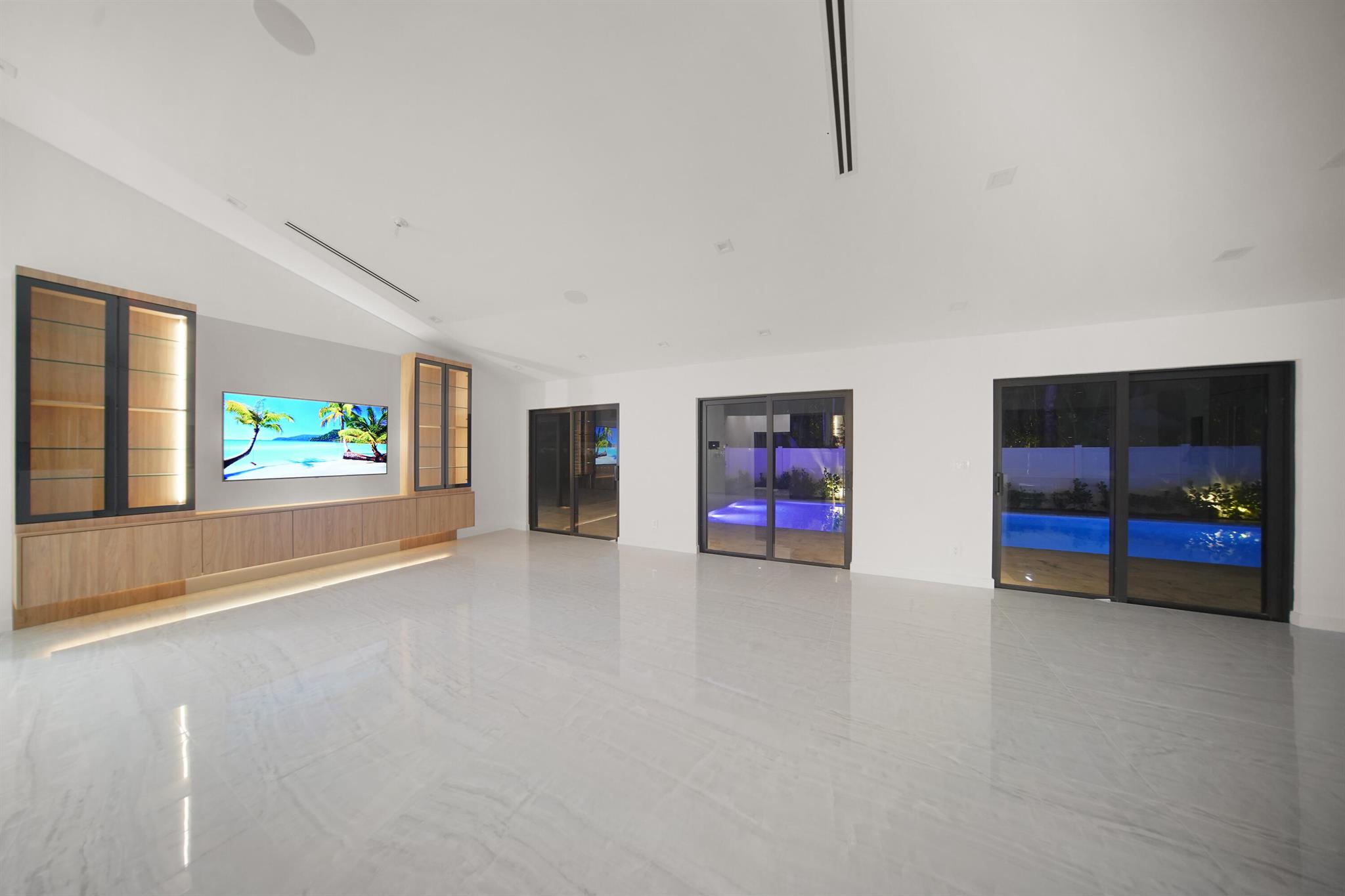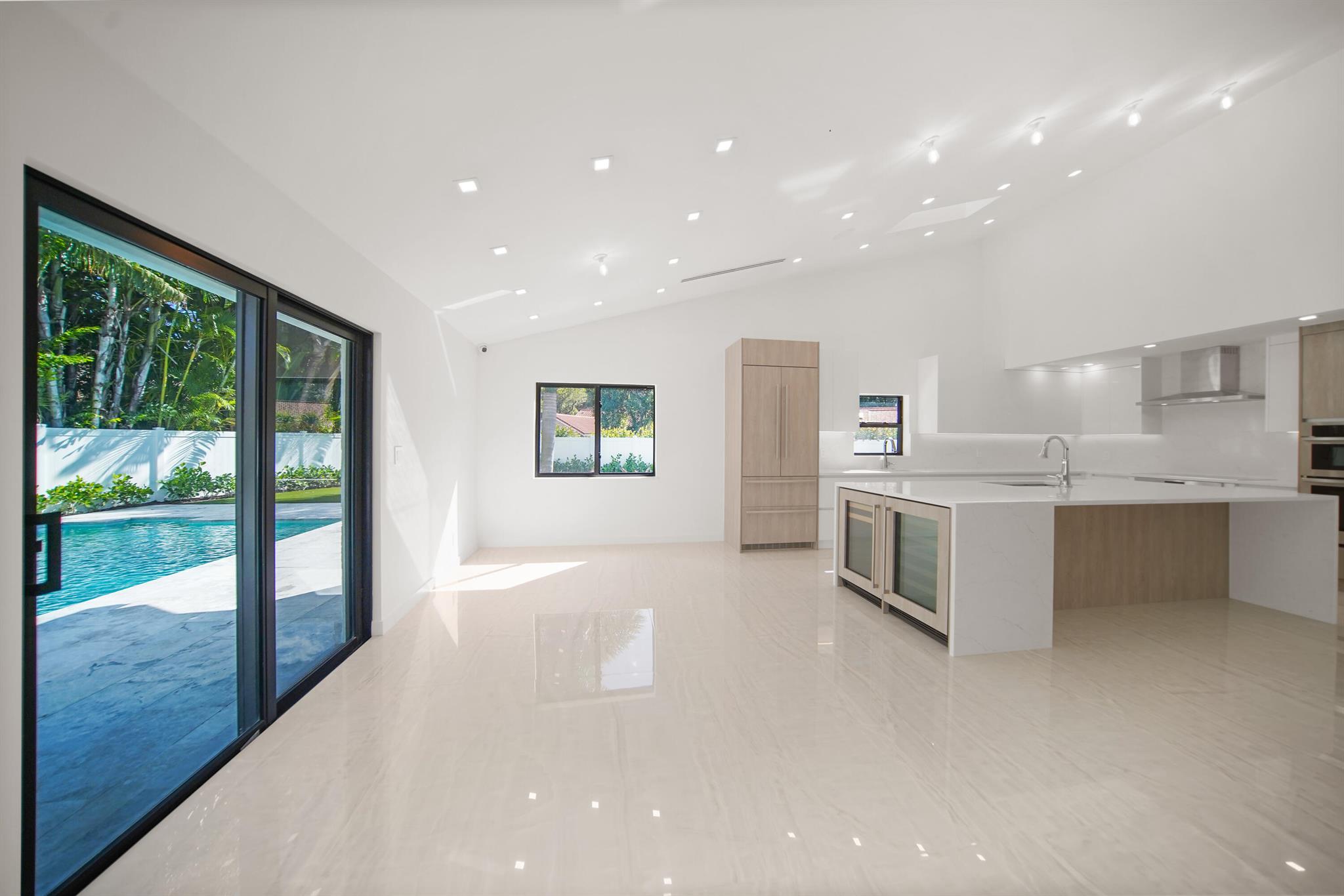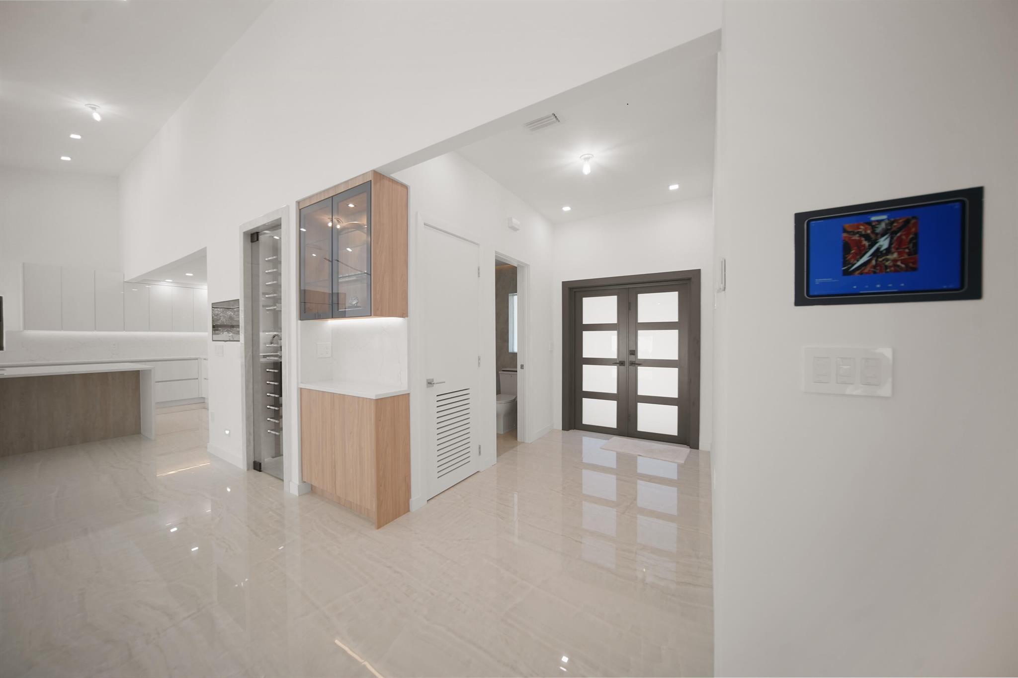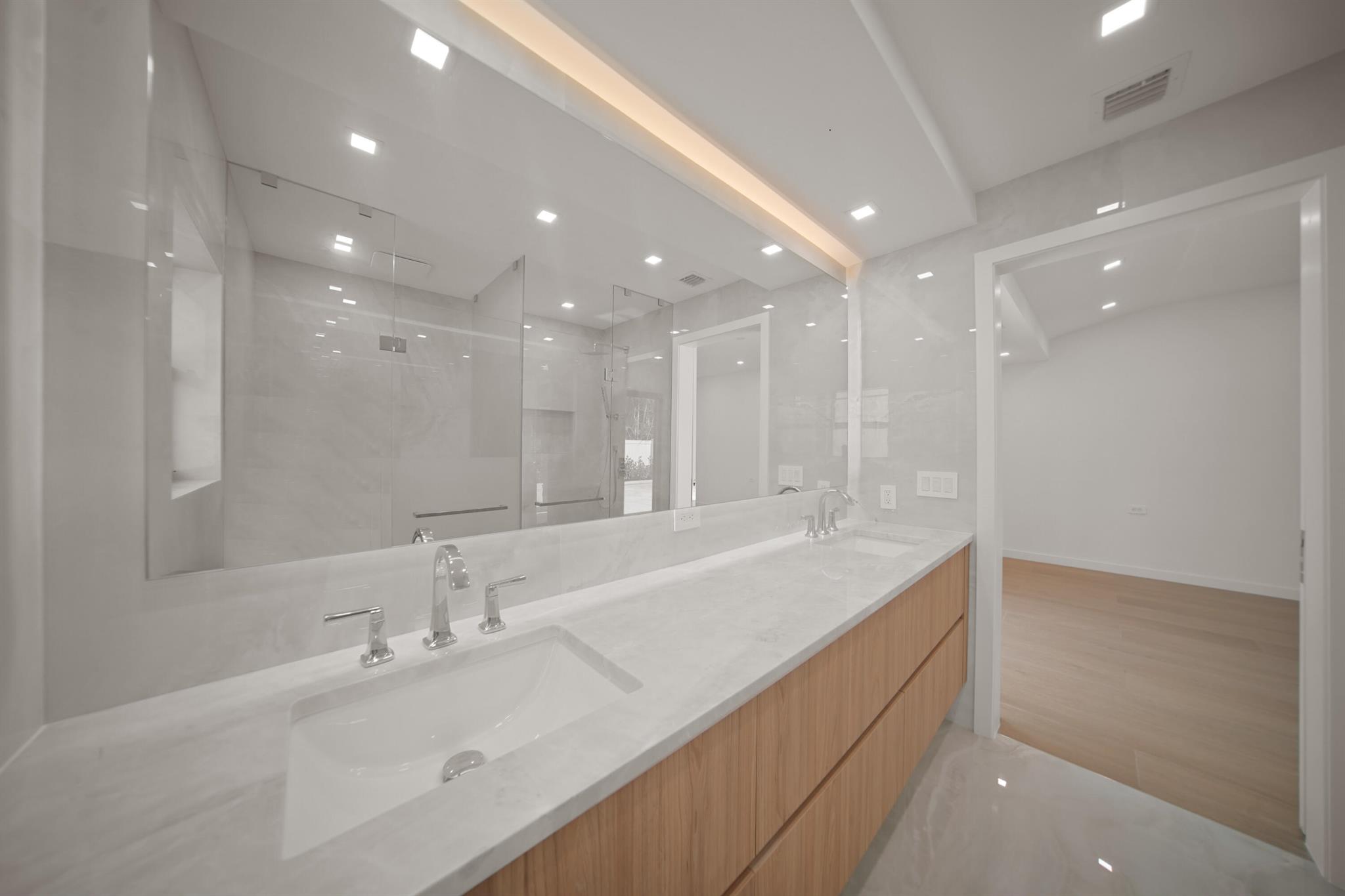 This house is a luxurious and modern masterpiece, built with high-end materials and designed with meticulous attention to detail, featuring porcelain tile flooring throughout, adding a touch of elegance to the space. The kitchen and bathroom are equipped with custom-made cabinets, providing ample storage space and the kitchen is equipped with quartzite countertops and backsplash and the appliances are all integrated and brand new. The bathroom vanities have custom marble countertops, that are both beautiful and durable. All new bathroom fixtures, plumbing, and toilets have been installed to ensuring the house is totally up-to-date. This home also features a central vacuum system that makes cleaning easy and convenient and a new tankless water heater that provides hot water on demand