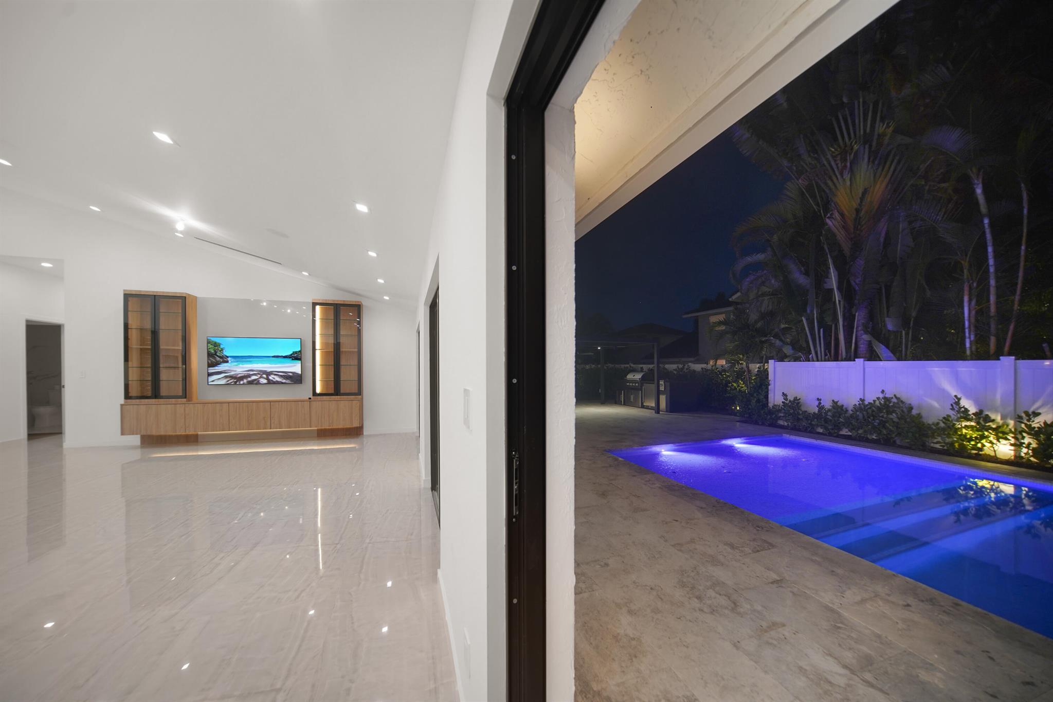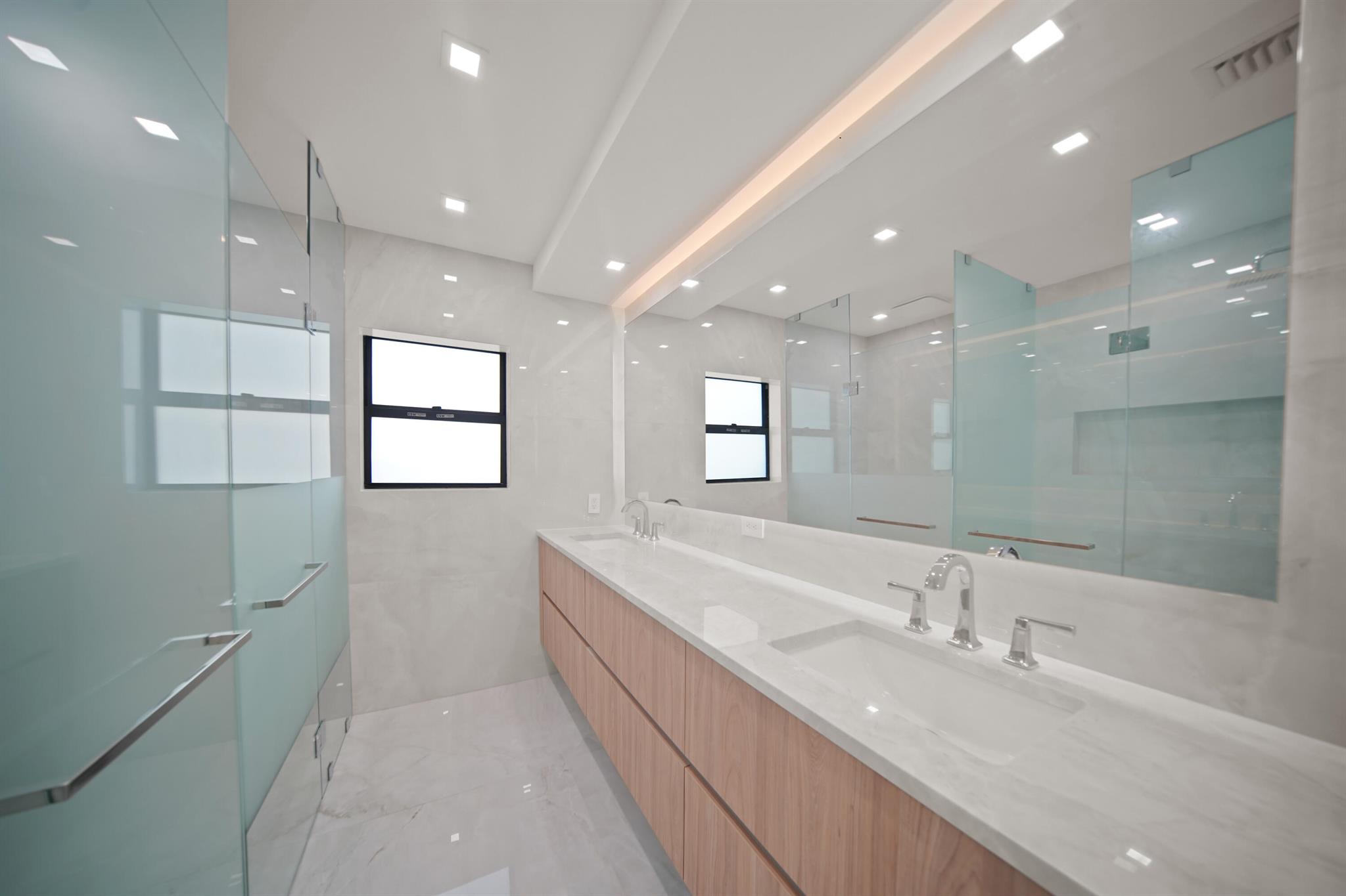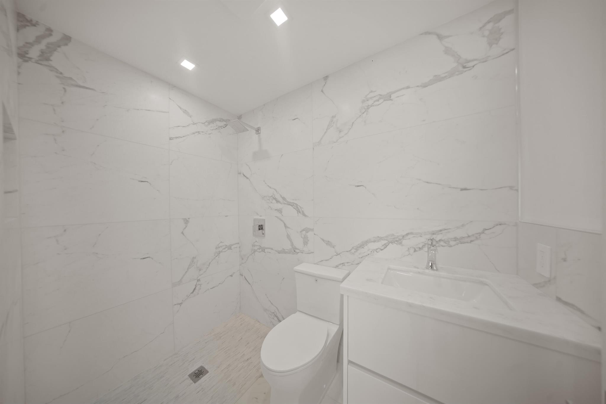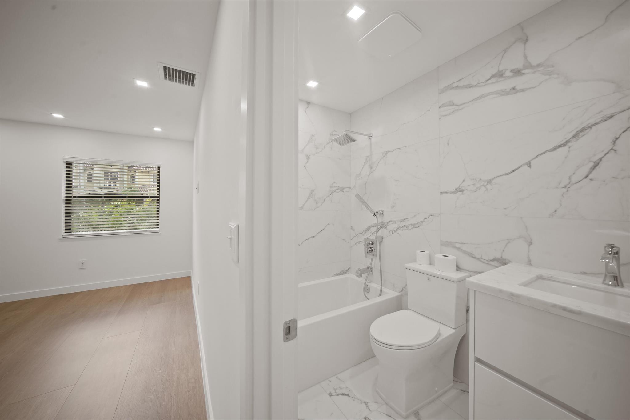 This house is a luxurious and modern masterpiece, built with high-end materials and designed with meticulous attention to detail, featuring porcelain tile flooring throughout, adding a touch of elegance to the space. The kitchen and bathroom are equipped with custom-made cabinets, providing ample storage space and the kitchen is equipped with quartzite countertops and backsplash and the appliances are all integrated and brand new. The bathroom vanities have custom marble countertops, that are both beautiful and durable. All new bathroom fixtures, plumbing, and toilets have been installed to ensuring the house is totally up-to-date. This home also features a central vacuum system that makes cleaning easy and convenient and a new tankless water heater that provides hot water on demand