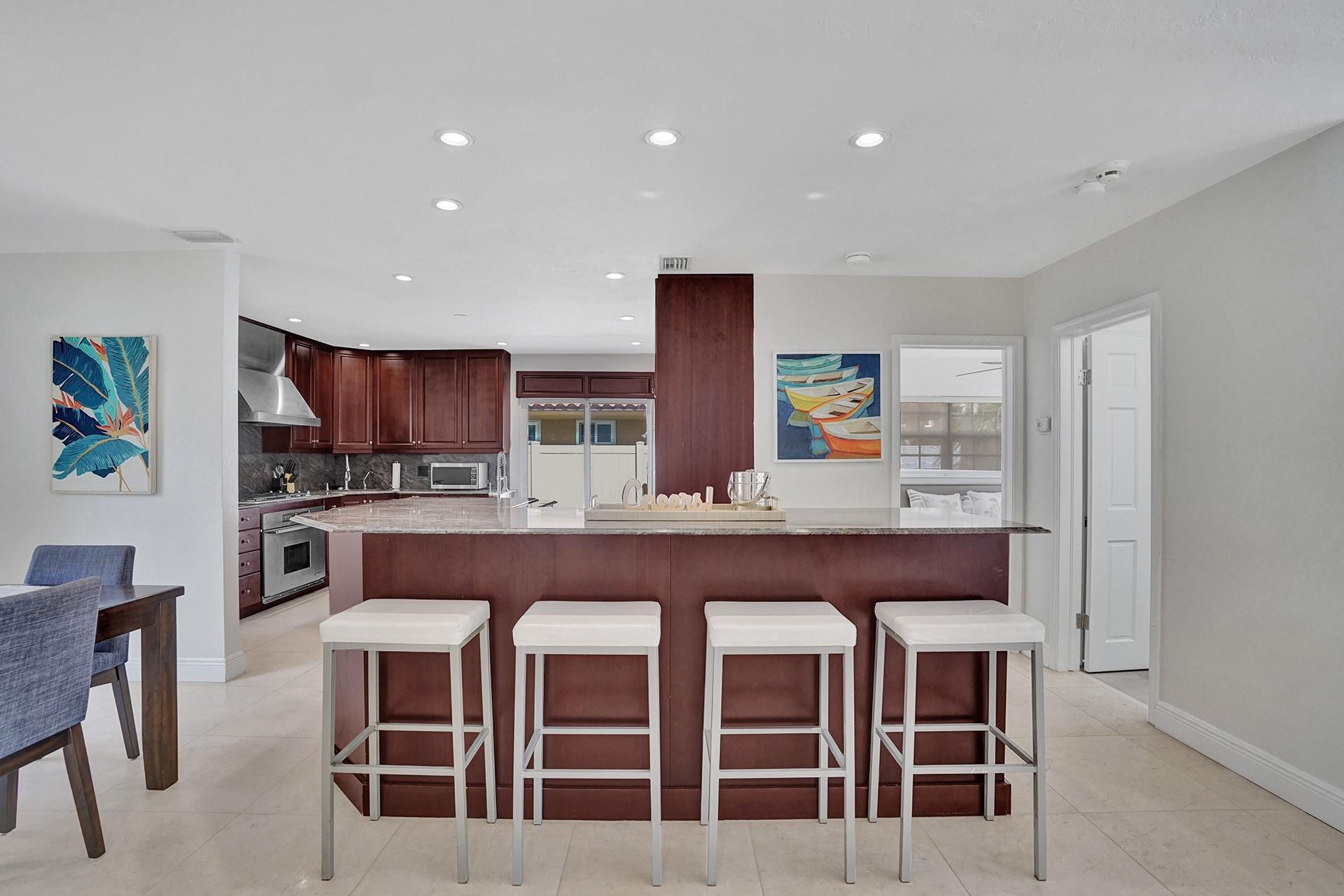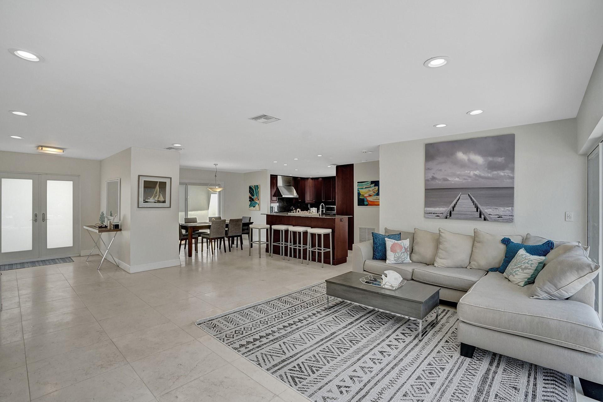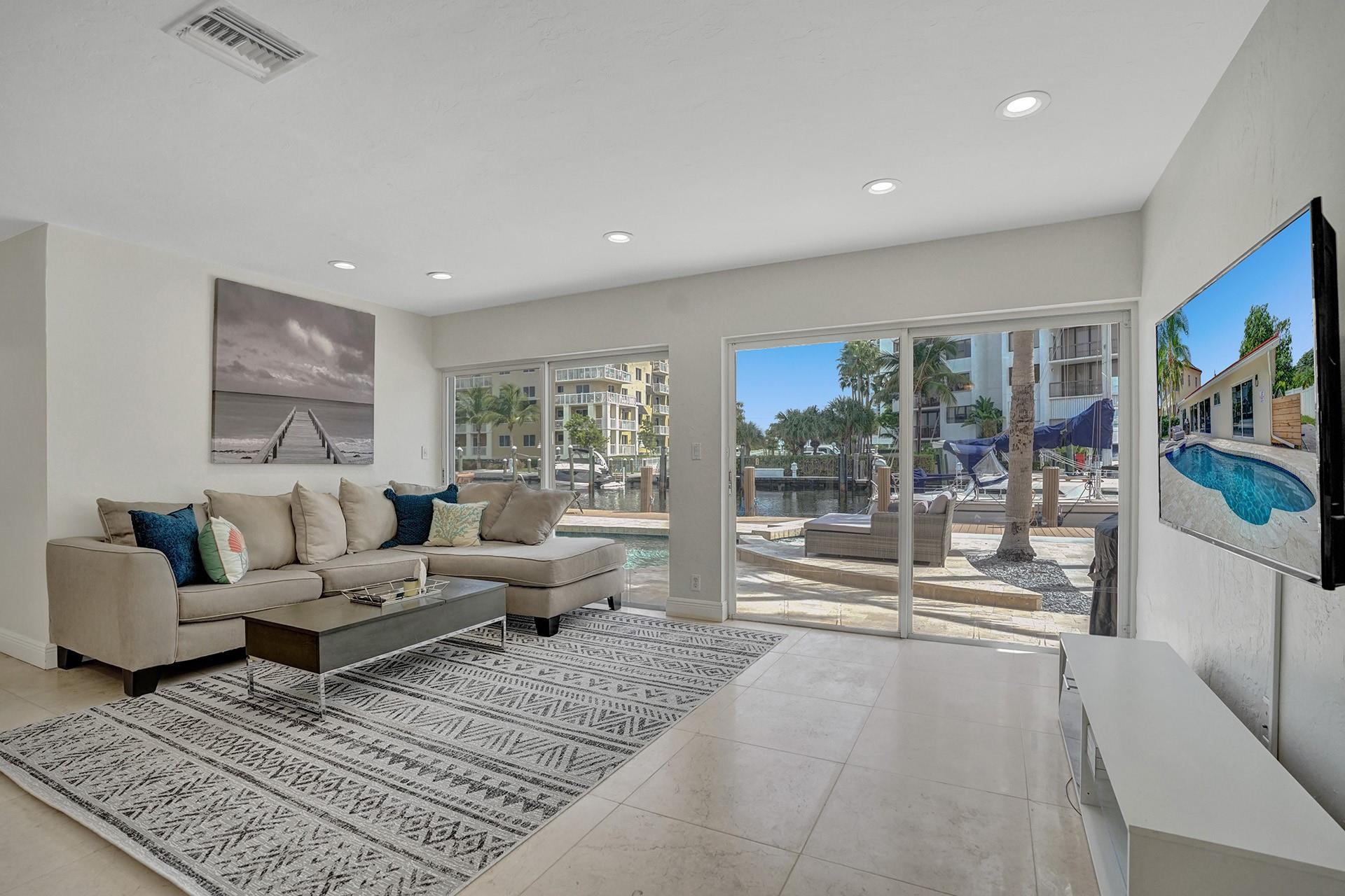 Amazing opportunity to own deepwater home east of the intracoastal with no fixed bridges in sought after Terra Mar Island. Property is located a short walk to the beach and less then 2 miles by boat to Hillsboro Inlet. This gorgeous open floor plan home has a luxury kitchen with a large Sub-Zero refrigerator, gas stove, and Dacor Oven. Heated Pool with Pebble Tec finish. Water views from almost every room. New 60ft dock built in 2021 with 30/50 amp power pedestal.75ft of water frontage. House is tastefully decorated in a coastal theme. It is being sold fully furnsihed and able to be rented short term immediatley. Master bedroom offers King Bed with ensuite master bath with jetted jacuzzi and double headed shower. Second bedroom has a queen size bed, ensuite bathroom, and waterviews.
