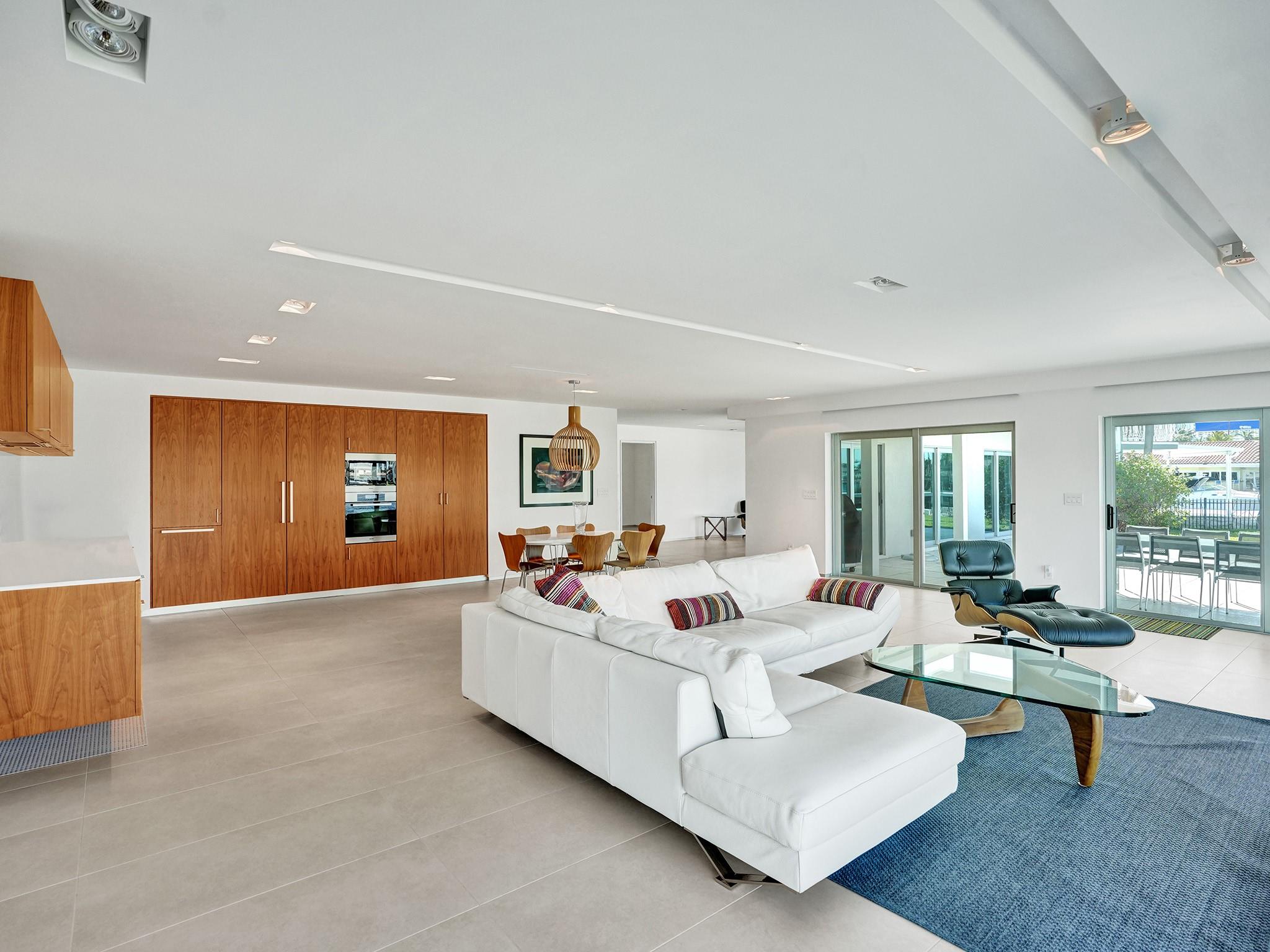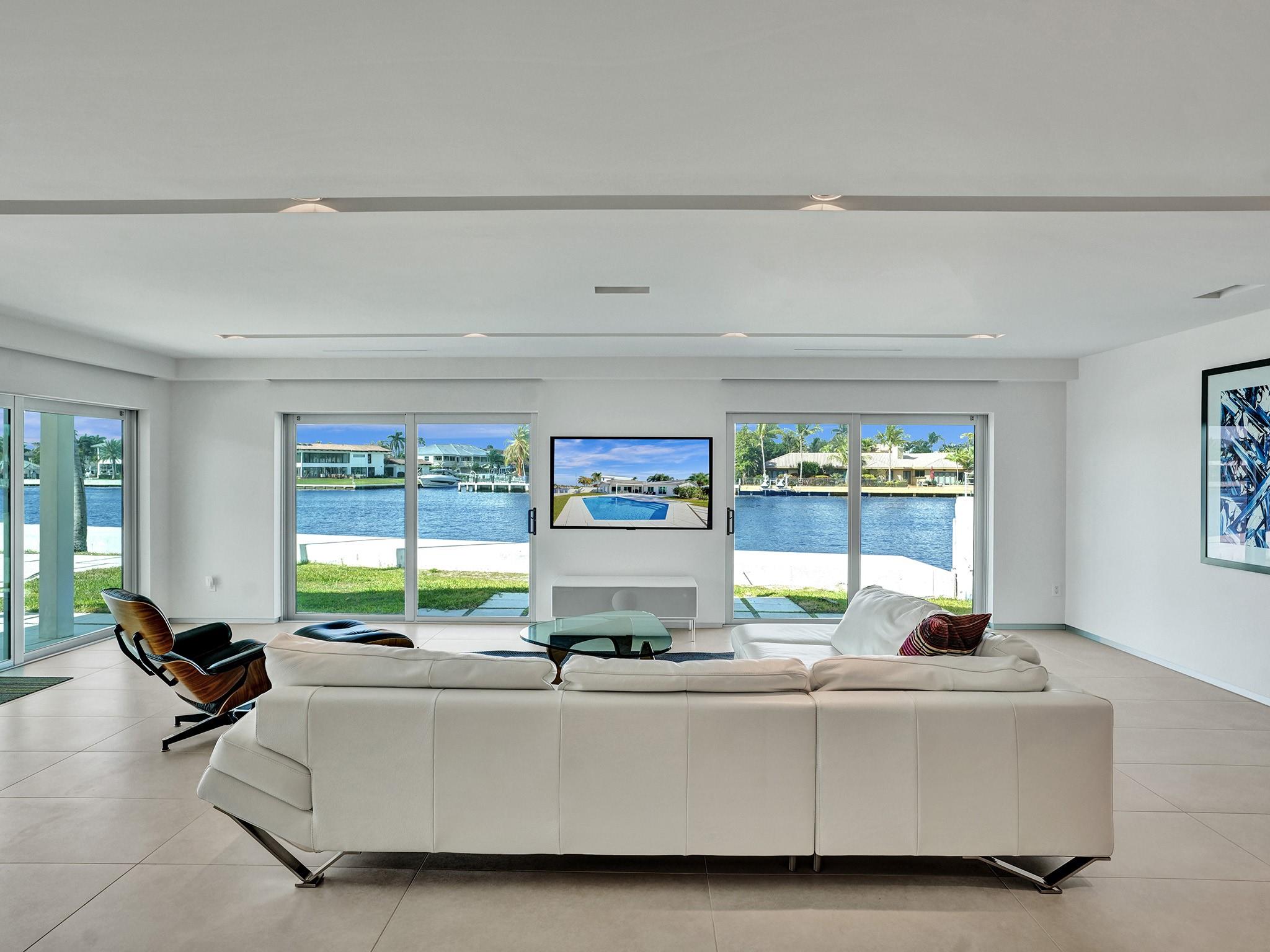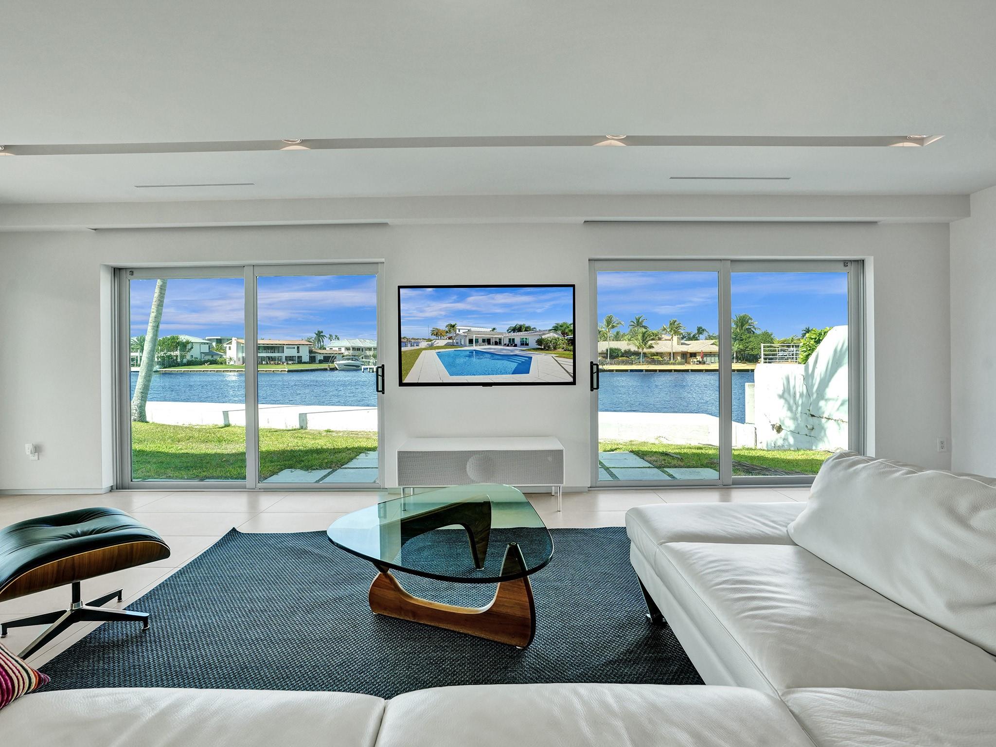RARELY AVAILABLE POINT LOT IN HIGHLY DESIRABLE BERMUDA RIVIERA! One-of-a-kind home featuring approx. 140′ on the Intracoastal & 51.9′ on the canal! Build your dream home on this oversized 14,661 SF lot or add to the existing 3 bed, 2 bath newer construction modern minimalist home. Ultra contemporary walnut concealed kitchen w/ Miele & Thermador appliances! Open floor plan w/ floor-to-ceiling impact sliders allowing panoramic views to watch yachts go by & enjoy from your private backyard w/ pool! NEW concrete dock! High-end European fixtures & electric shades thru/out! Fully controllable remotely via phone or ipad! Short walk to Fort Lauderdale Beach, restaurants & shopping! One entrance guardhouse! Home being sold completely turn-key. Must see all this desirable property has to offer!