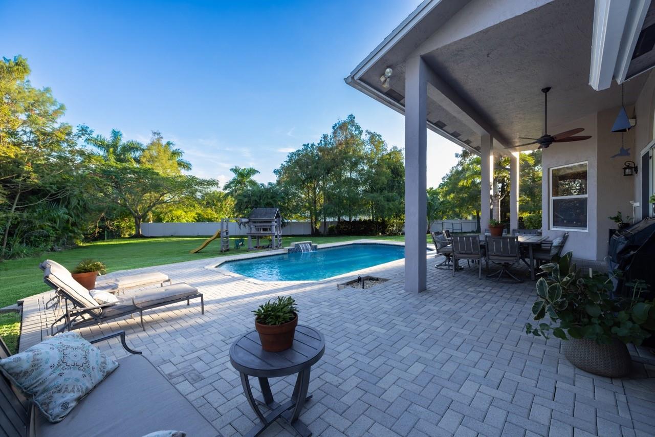 The Cooper City Charmer is a CUSTOM 4-bed BLOCK home that combines style and functionality with its open floor plan, 12 ft ceilings, and travertine floors. Beyond the 12 ft sliding glass doors lies a spacious pool and swing set overlooking a private dock leading to the canal. This home features NEW IMPACT WINDOWS, 12 FT vaulted ceilings, plantation shutters, custom woodwork, NO HOA, AGRICULTURE ZONING, and SPACIOUS LAUNDRY ROOM! You can PARK your RV or boat on the property!! The master suite features a spacious U-shaped walk-in closet, walk-in shower, and jacuzzi tub. Situated on 1 acre in Cooper City’s A+ school zone, this lot has plenty of space to build a barn or MIL suite in addition to the 2-car garage. YOU MUST SEE THIS IN PERSON! 1.5 miles to CC High and 1 mile to CC Elementary!