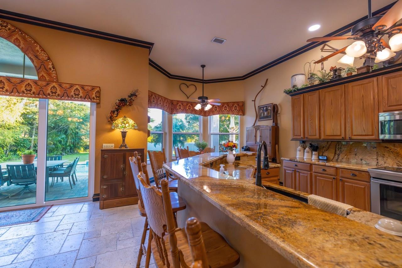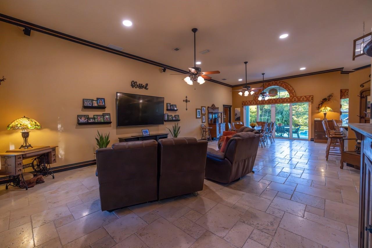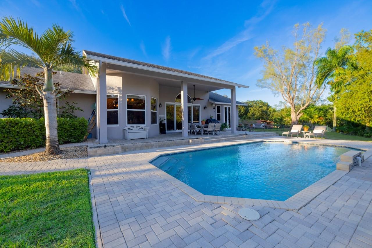 The Cooper City Charmer is a CUSTOM 4-bed BLOCK home that combines style and functionality with its open floor plan, 12 ft ceilings, and travertine floors. Beyond the 12 ft sliding glass doors lies a spacious pool and swing set overlooking a private dock leading to the canal. This home features NEW IMPACT WINDOWS, 12 FT vaulted ceilings, plantation shutters, custom woodwork, NO HOA, AGRICULTURE ZONING, and SPACIOUS LAUNDRY ROOM! You can PARK your RV or boat on the property!! The master suite features a spacious U-shaped walk-in closet, walk-in shower, and jacuzzi tub. Situated on 1 acre in Cooper City’s A+ school zone, this lot has plenty of space to build a barn or MIL suite in addition to the 2-car garage. YOU MUST SEE THIS IN PERSON! 1.5 miles to CC High and 1 mile to CC Elementary!
