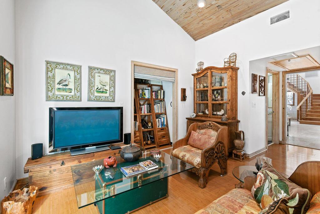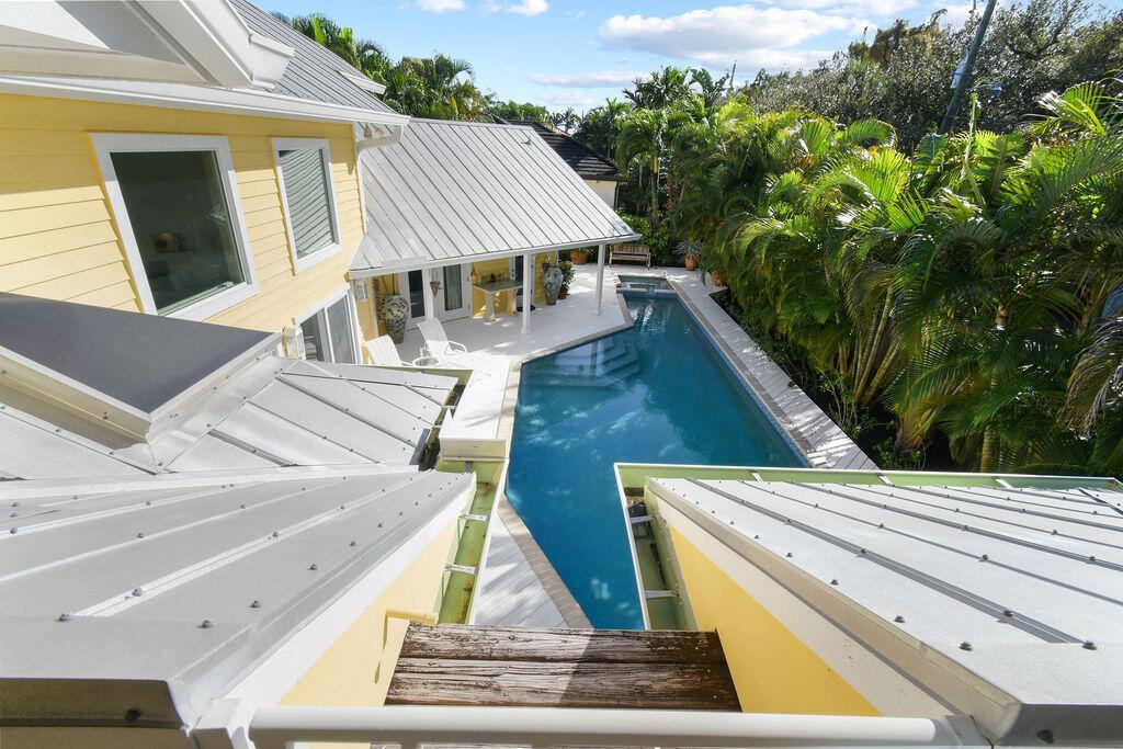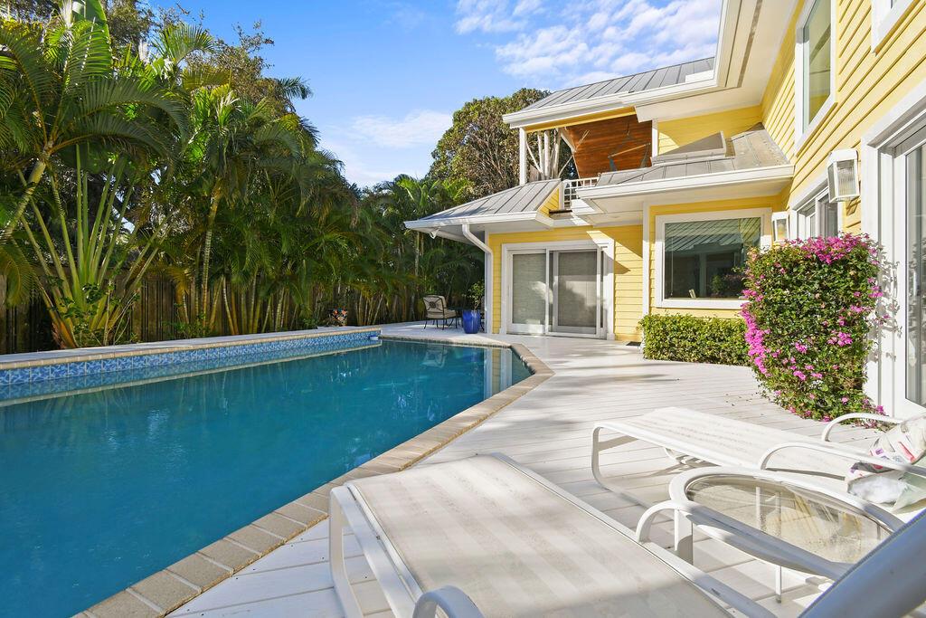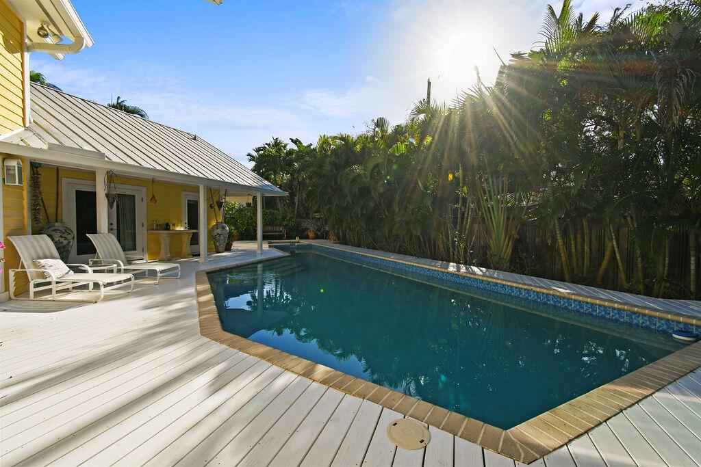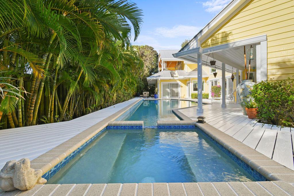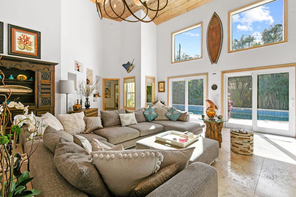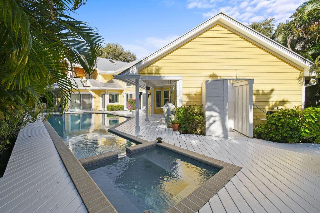 SELLER MOTIVATED! This exquisite home oozes coastal charm and timeless elegance, featuring abundant pecky cypress accents and subtle nautical touches throughout. Step inside to discover a spacious living area adorned with vaulted ceilings, clever design features, and ample natural light. The gourmet kitchen is complete with custom cabinetry, built in appliances, and a center island. Retreat to the relaxing primary suite, a serene oasis with a treehouse-like balcony boasting an outdoor shower and soaking tub surrounded by tropical foliage. Additional highlights include primary suites on both floors, a Generac whole house generator (2021), and a lushly landscaped backyard with a 51′ pool. Palm Harbor’s 21 residences also enjoy exclusive access to a day dock on the intracoastal.