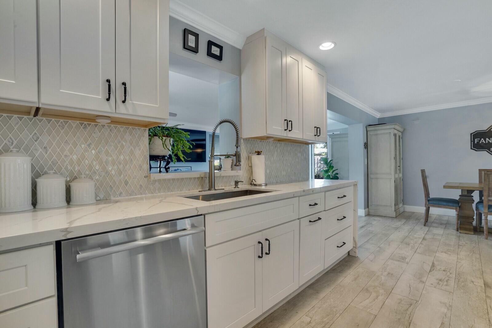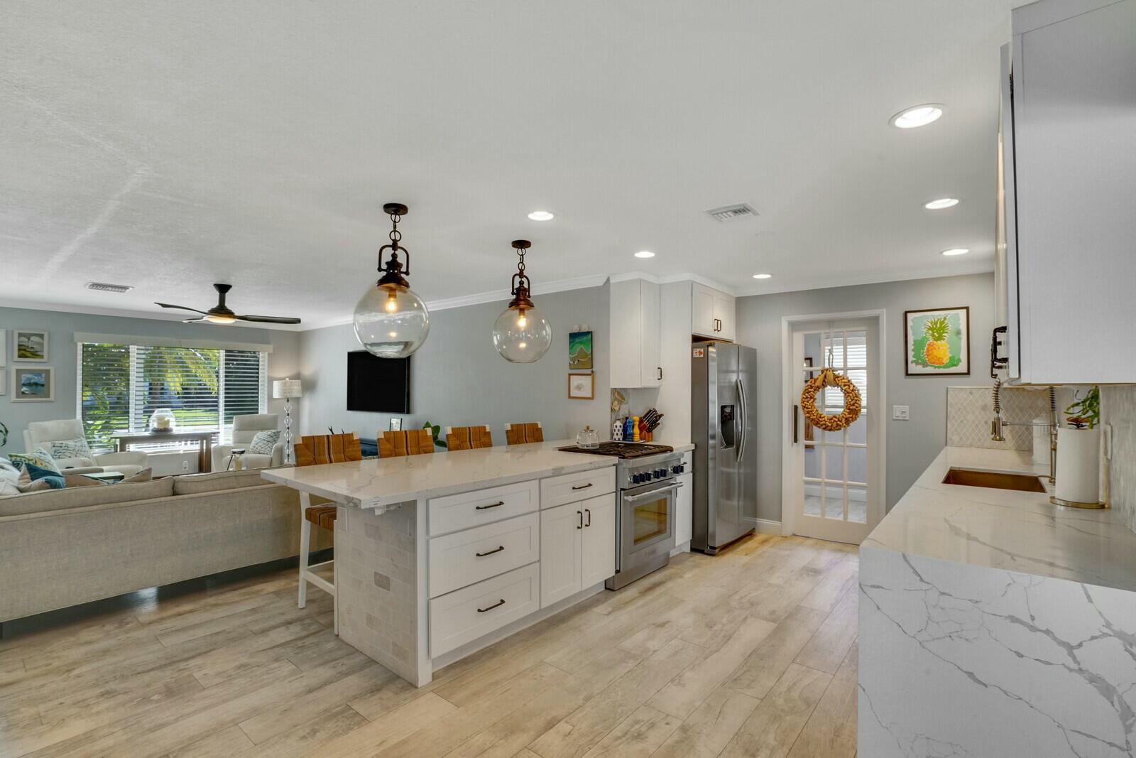 Highly Sought-After Lake Ida Charmer!Welcome to this meticulously maintained 3-bedroom, 2-bathroom pool home, ideally nestled on an oversized lot in the coveted Lake Ida neighborhood. With exceptional curb appeal and thoughtful upgrades throughout, this home offers a lifestyle of both comfort and sophistication. From the stately brick-paved circular driveway to the inviting covered front porch, this residence exudes charm from the moment you arrive.Pride of ownership is immediately evident in every detail. The interior is beautifully appointed with durable wood-look tile flooring throughout, creating a seamless flow between the living spaces. The gourmet kitchen is a true standout, featuring high-end Thermador appliances, a spacious island with seating, and sleek stone