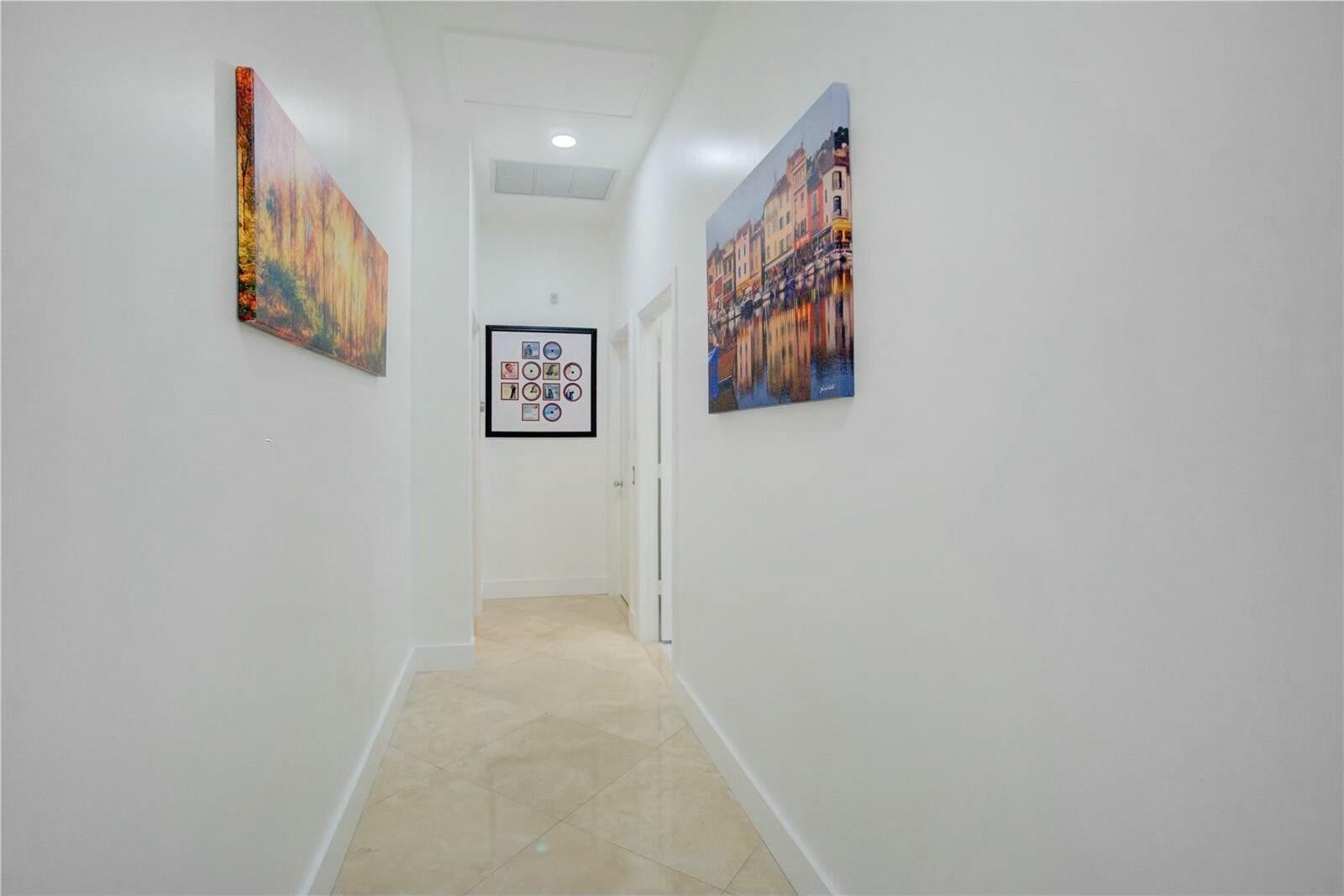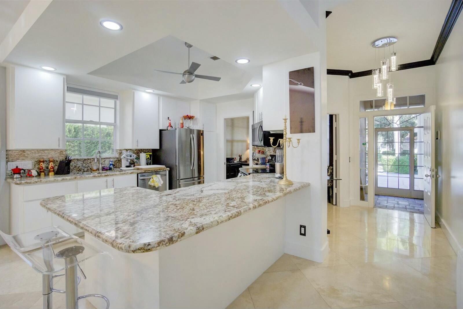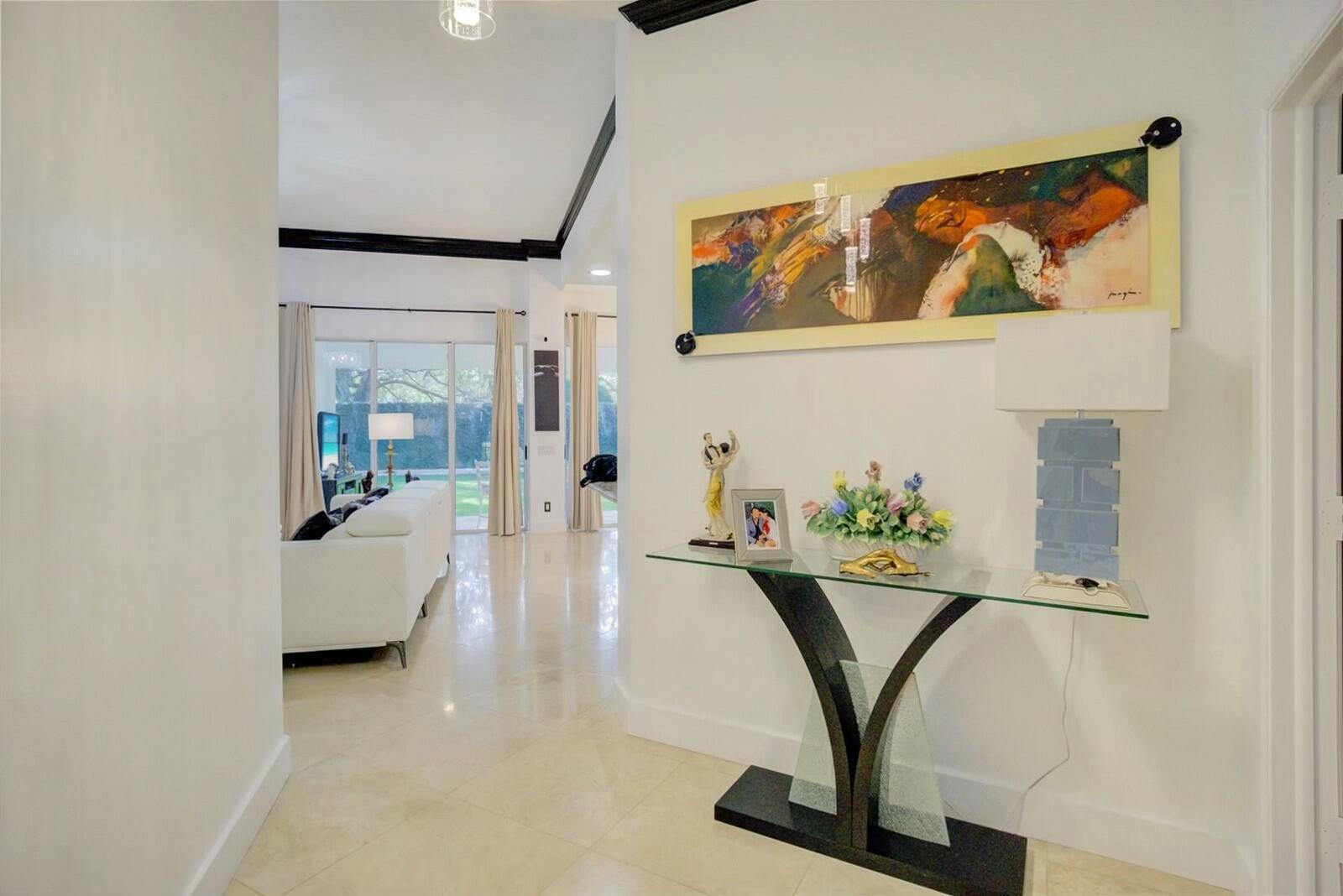 Exquisitely renovated, this 3-bedroom plus den, 2-bathroom home exudes European elegance with clean lines, soaring ceilings, and pristine marble throughout, including in the luxurious bathrooms. Every inch of this meticulously maintained residence reflects unparalleled craftsmanship and attention to detail. The serene screened-in patio overlooks a private, lush artificial turf yard, while the garage features an epoxy-coated floor and a storm-rated hurricane garage door. Enjoy top-of-the-line stainless steel appliances, Italian Massa outdoor tiles, crown moldings, and hurricane-impact sliding doors. The primary bath is a spa-like retreat with a jacuzzi tub and body jet shower. For added peace of mind, the home includes cameras mounted inside and out, ready to connect with an alarm system.