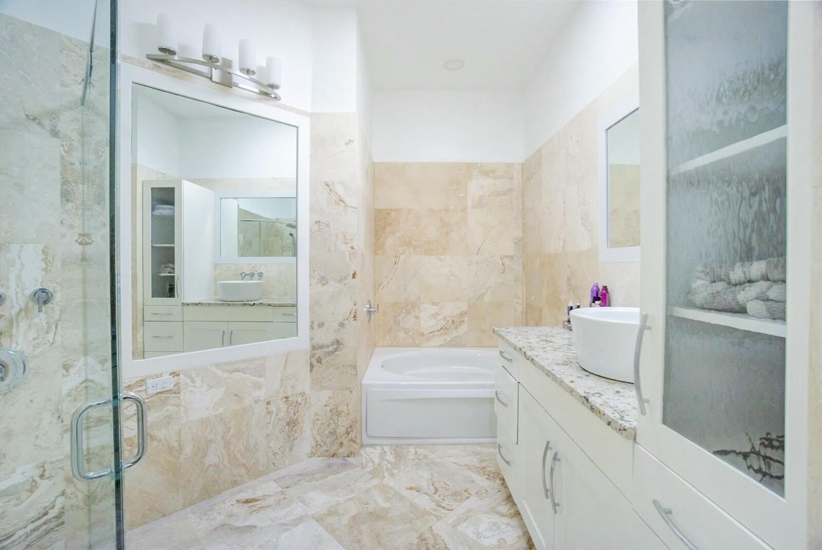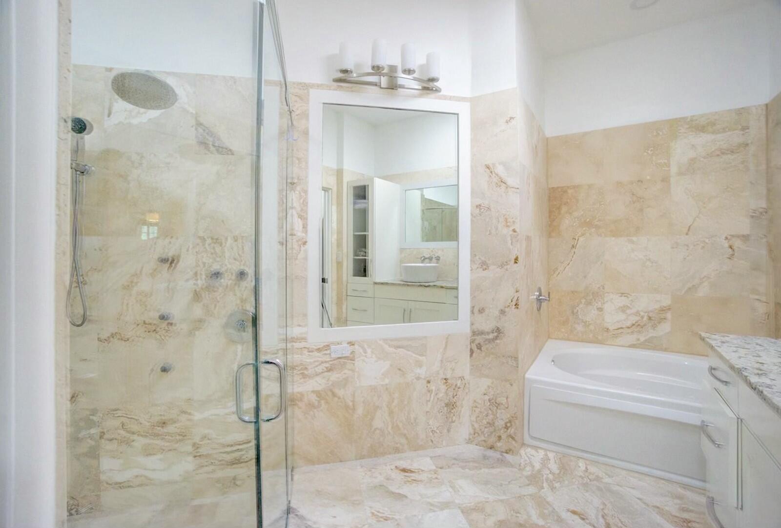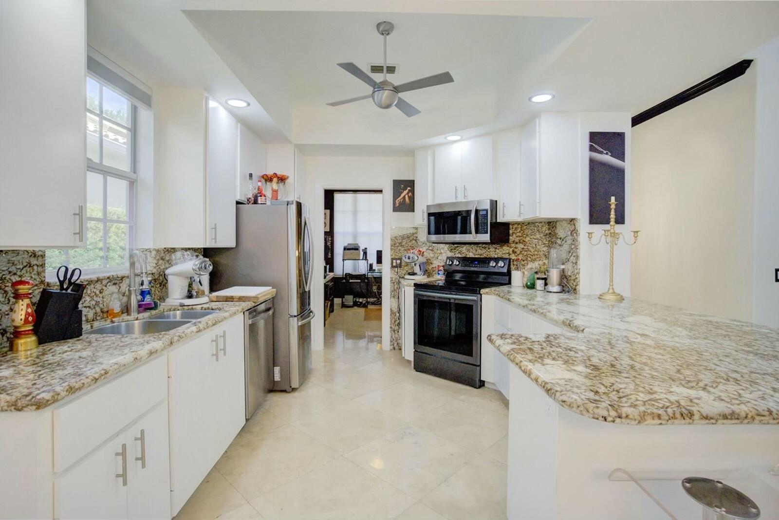 Exquisitely renovated, this 3-bedroom plus den, 2-bathroom home exudes European elegance with clean lines, soaring ceilings, and pristine marble throughout, including in the luxurious bathrooms. Every inch of this meticulously maintained residence reflects unparalleled craftsmanship and attention to detail. The serene screened-in patio overlooks a private, lush artificial turf yard, while the garage features an epoxy-coated floor and a storm-rated hurricane garage door. Enjoy top-of-the-line stainless steel appliances, Italian Massa outdoor tiles, crown moldings, and hurricane-impact sliding doors. The primary bath is a spa-like retreat with a jacuzzi tub and body jet shower. For added peace of mind, the home includes cameras mounted inside and out, ready to connect with an alarm system.