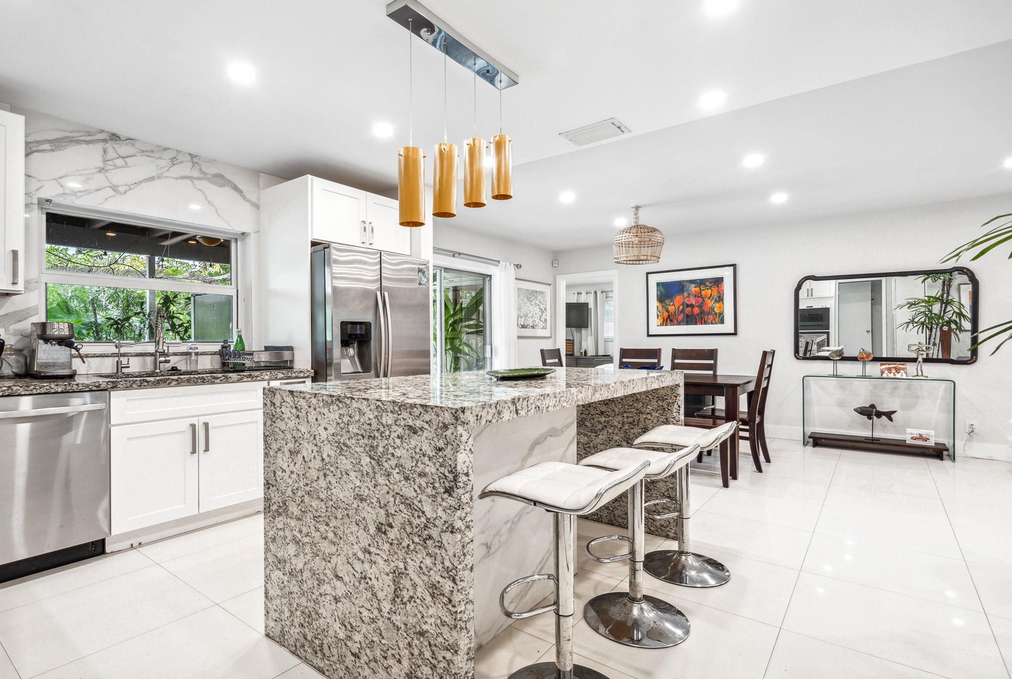 Welcome Home! This stunning 4/2/2 with a pool will not disappoint! From ceiling to floor this home is gorgeous. White tile floors, magnificent backsplash, high end countertops and tastefully updated bathrooms await you! As you step outside prepare to relax and enjoy the serene sound of a waterfall spilling into a koi pond, an inviting swimming pool, a relaxing spa and several entertaining areas perfect for entertaining in complete privacy. This home also boasts a brand new roof less than 1yr, impact windows, a water purification system and a tankless water heater providing peace of mind. Hurry this one won’t last!