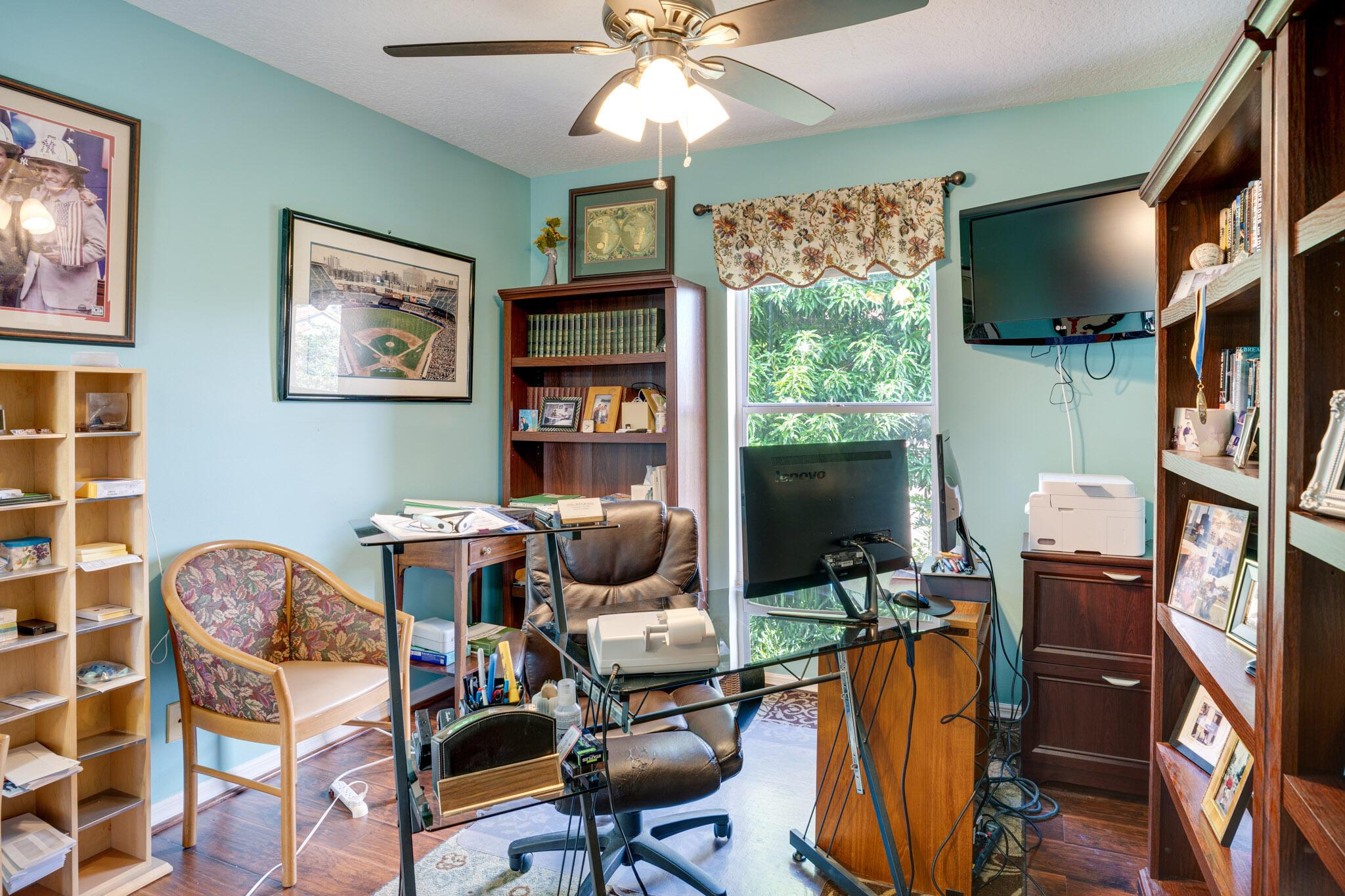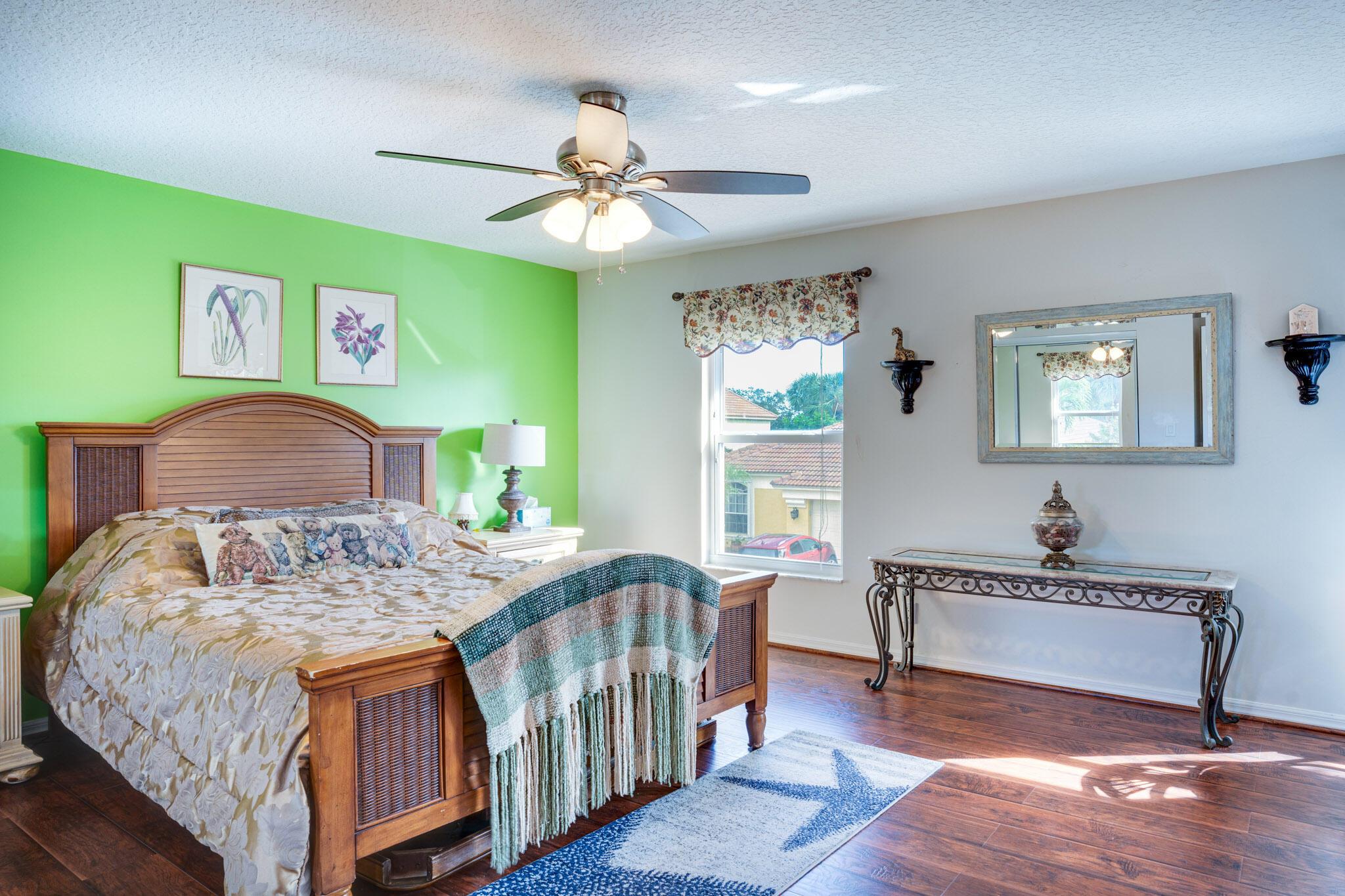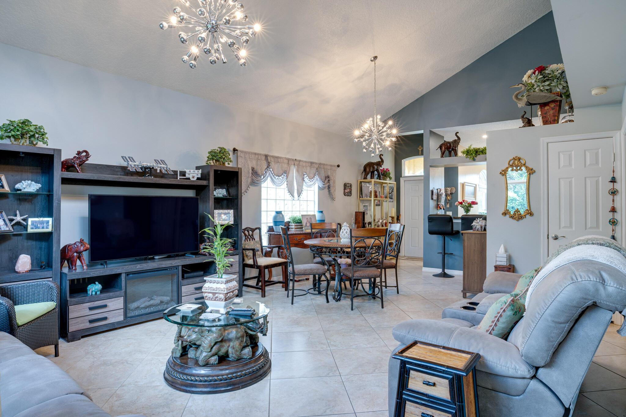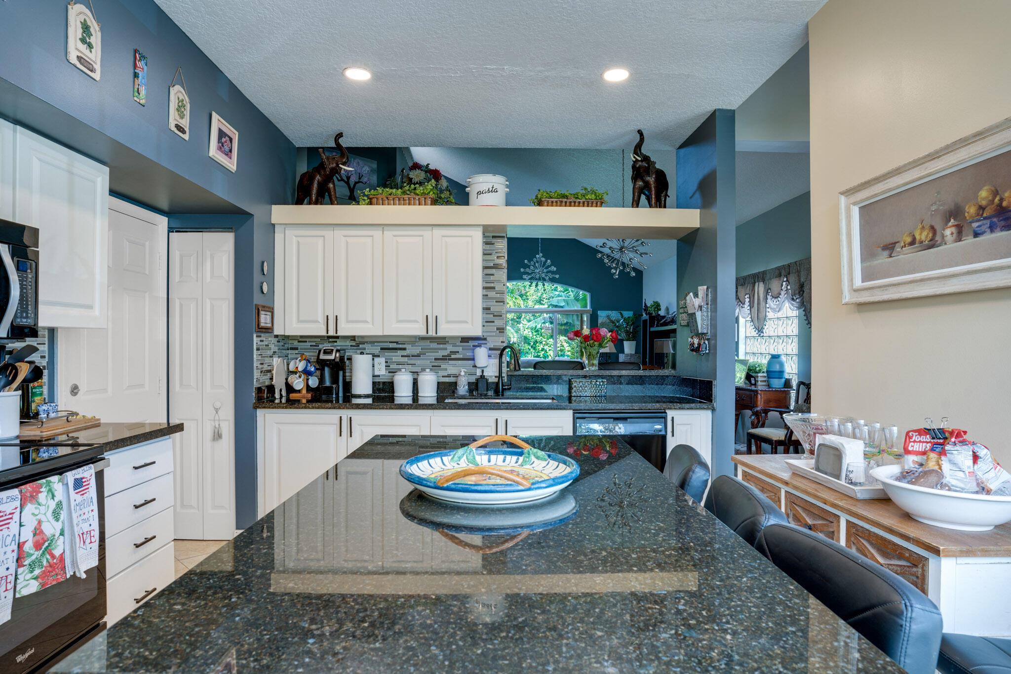 This beautifully updated 4-bedroom, 2.5-bathroom home (with the 4th bedroom converted to a loft) offers both style and function. Featuring a brand new roof, hurricane-impact windows throughout, and a new A/C, this home is move-in ready. The modern kitchen, complete with an island, granite countertops, and newer appliances, is ideal for both cooking and entertaining, seamlessly overlooking the open dining and living areas with vaulted ceilings and chic, modern lighting.The first-floor primary bedroom boasts two spacious closets and a spacious bathroom, while the upstairs has brand-new flooring, an open loft space perfect for a home office or play area (and easily converted back to a fourth bedroom).