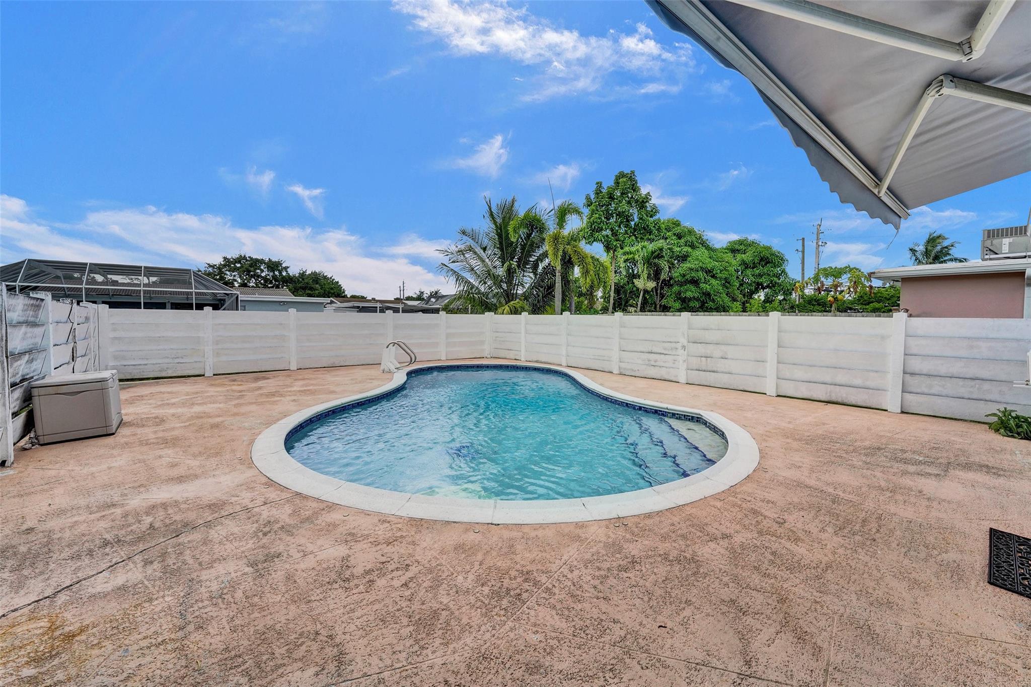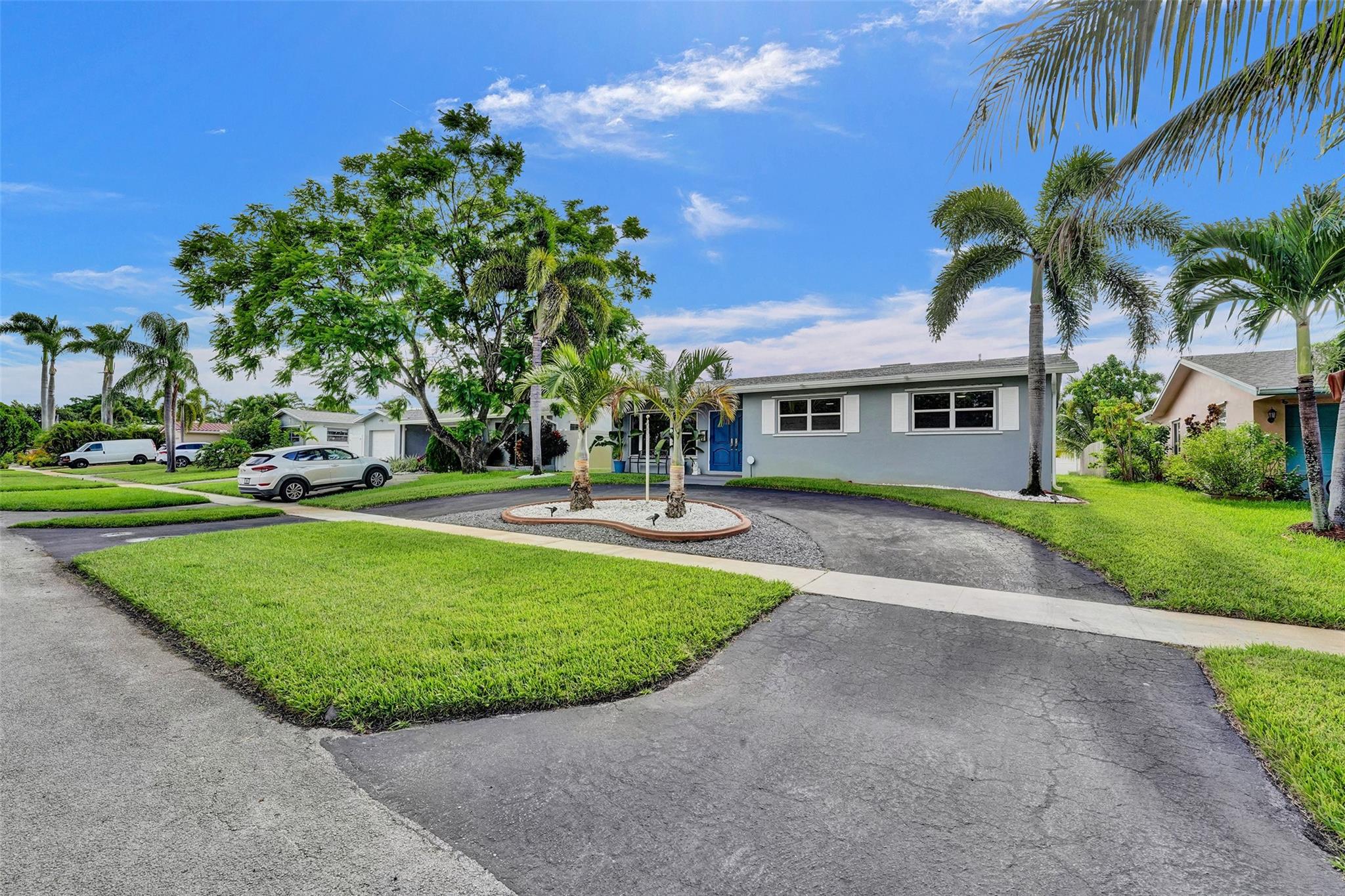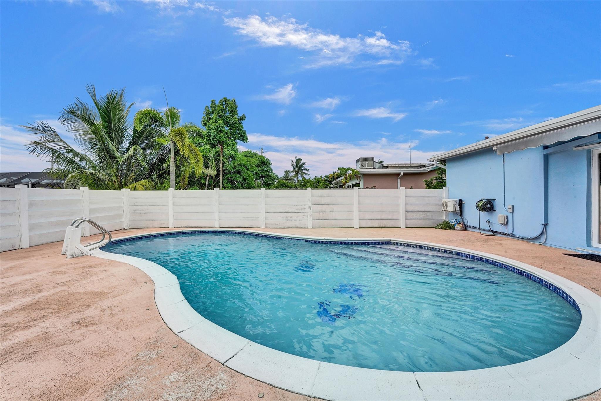 Hollywood pool home. This three bedroom, two bath home is updated and ready to be moved in. The kitchen has updated stainless steel appliances. Cook top sits on a center island with room for seating. The roof and A/C are Approximately three years old and are still under warranty. Pool is great for entertaining and is surrounded by a wall and fence. The bedrooms are large with a walk in closet in the master bedroom. Two driveways for this house, a circle one up front with great curb appeal and one in the rear of the house that leads to the attached garage. The house has hurricane shutters and French doors that lead to the pool. House has city water and sewer, however the sprinklers use well water. This house is close to hospitals, highways and shopping.